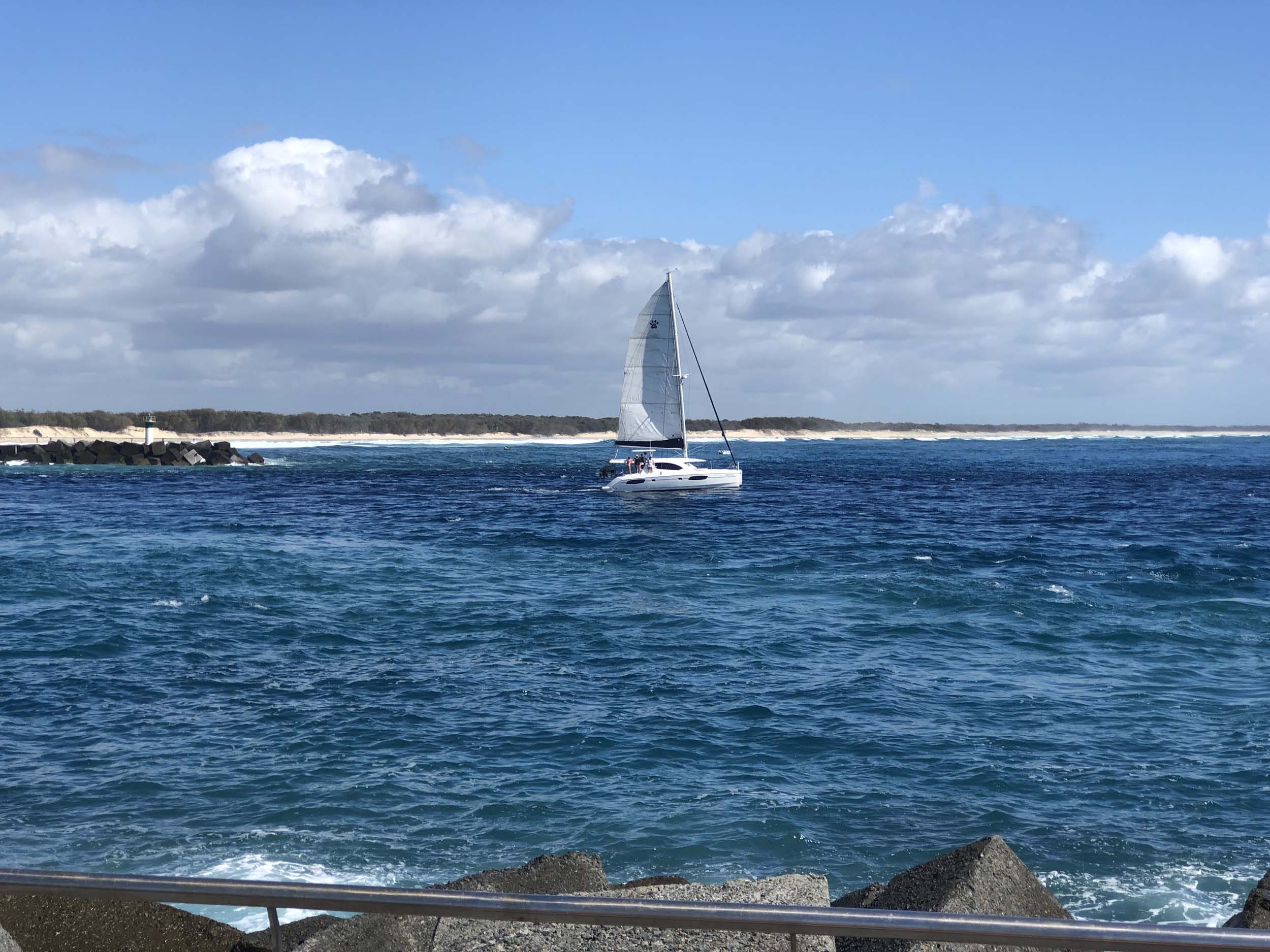 I left home at 7:48am, after going for a coffee and some shopping at Coles Lab Park. The breeze started off light and slowly building from the North. The Broadwater was smooth, being protected by the land BUT the Coral Sea was rough as.