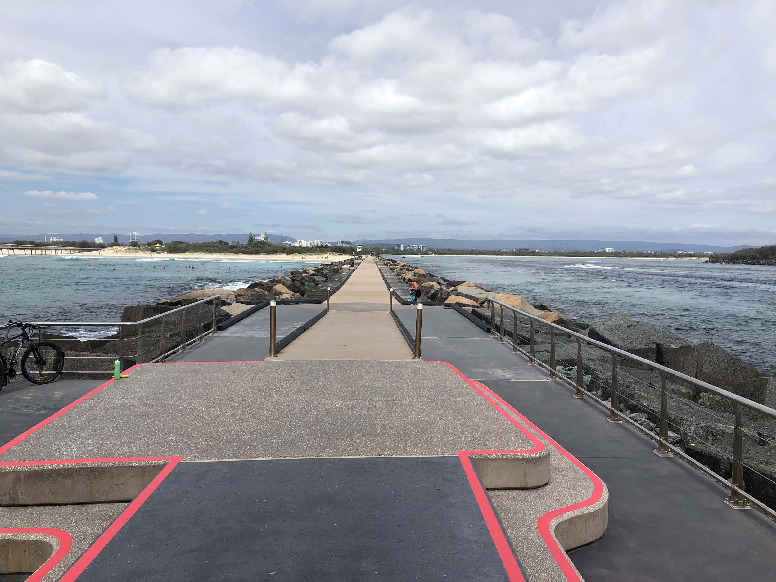 Headed off towards The Seaway/Spit, via the Federation Walk. Continued riding to the tip of the Seawall/Spit. Stopped and took my photos and ate my banana. Rode to the tip of the Moondarewa Spit, took more photos then did another lap to both Spits.