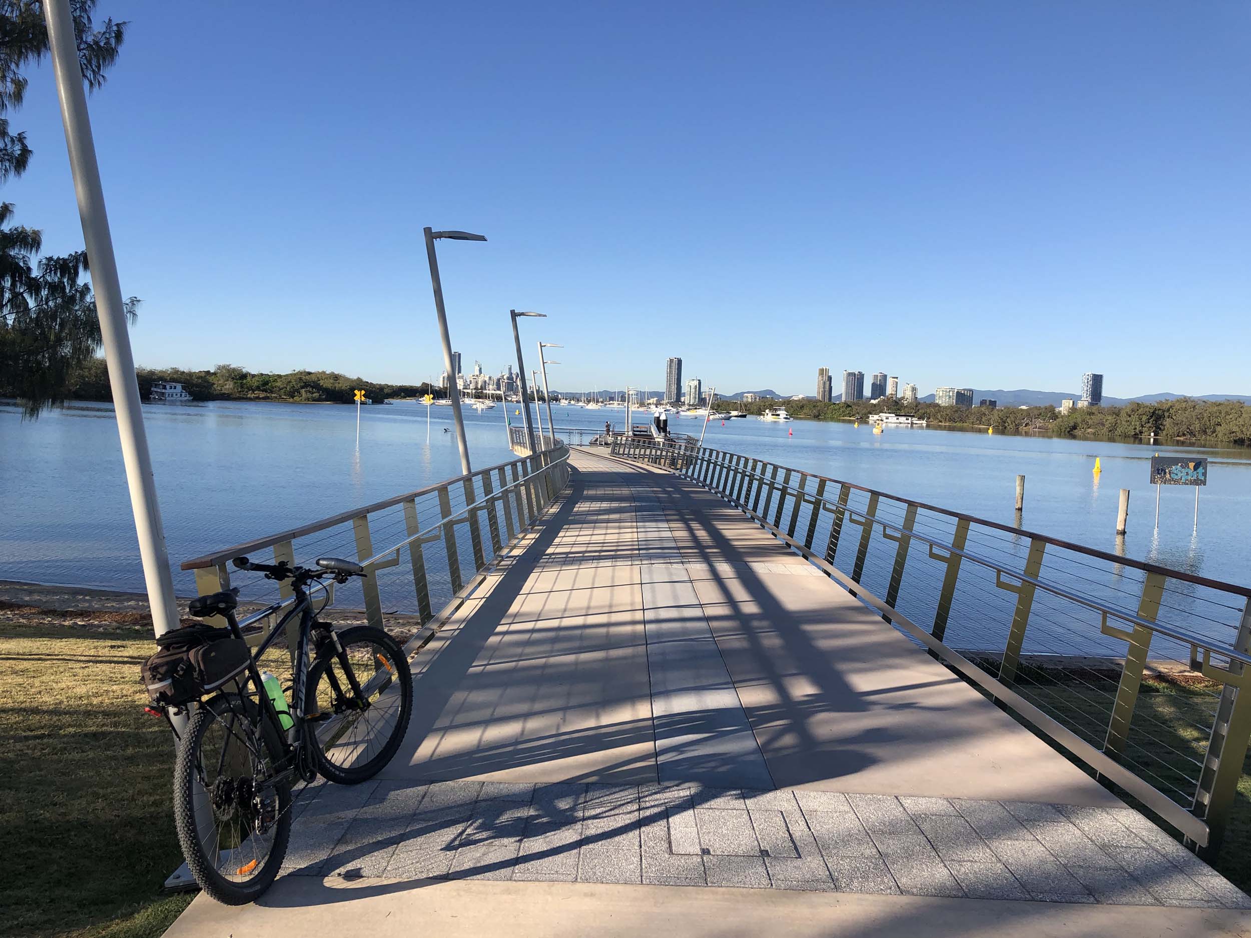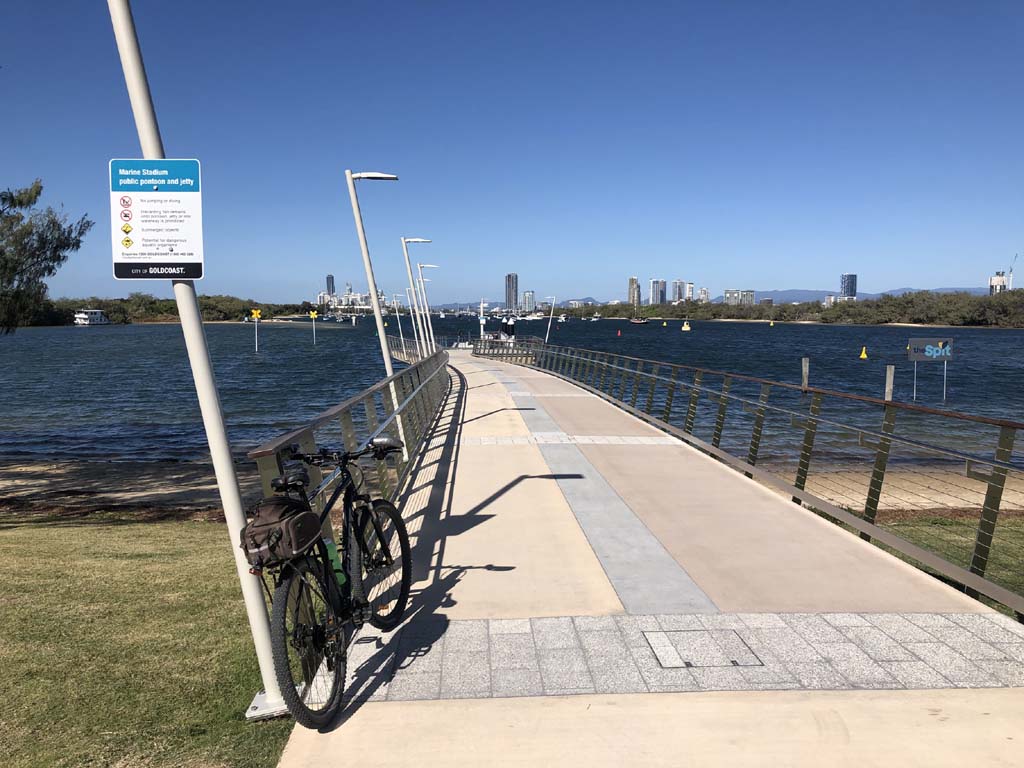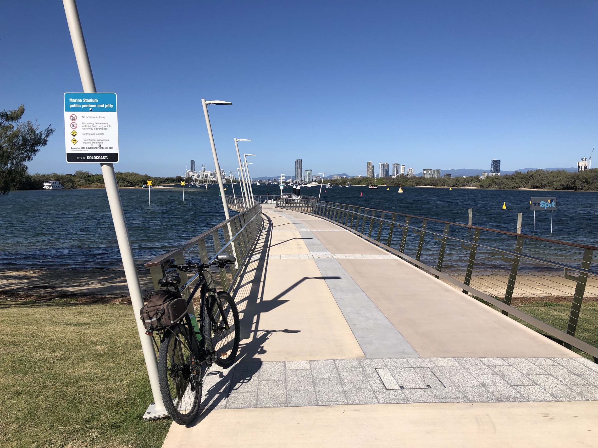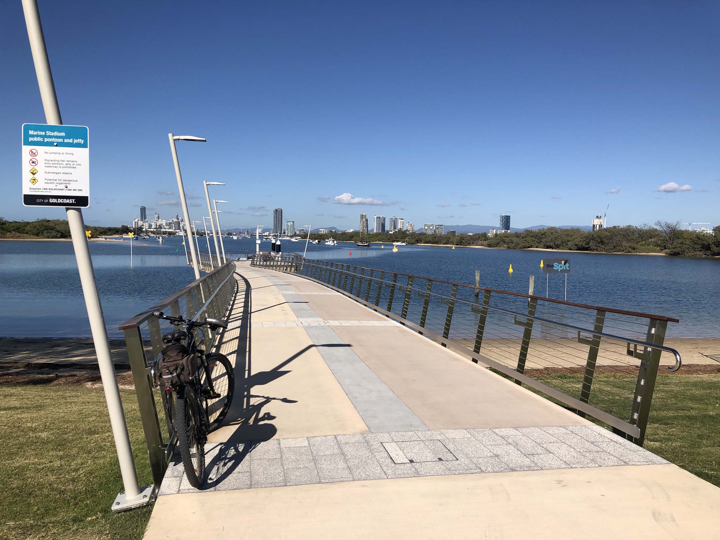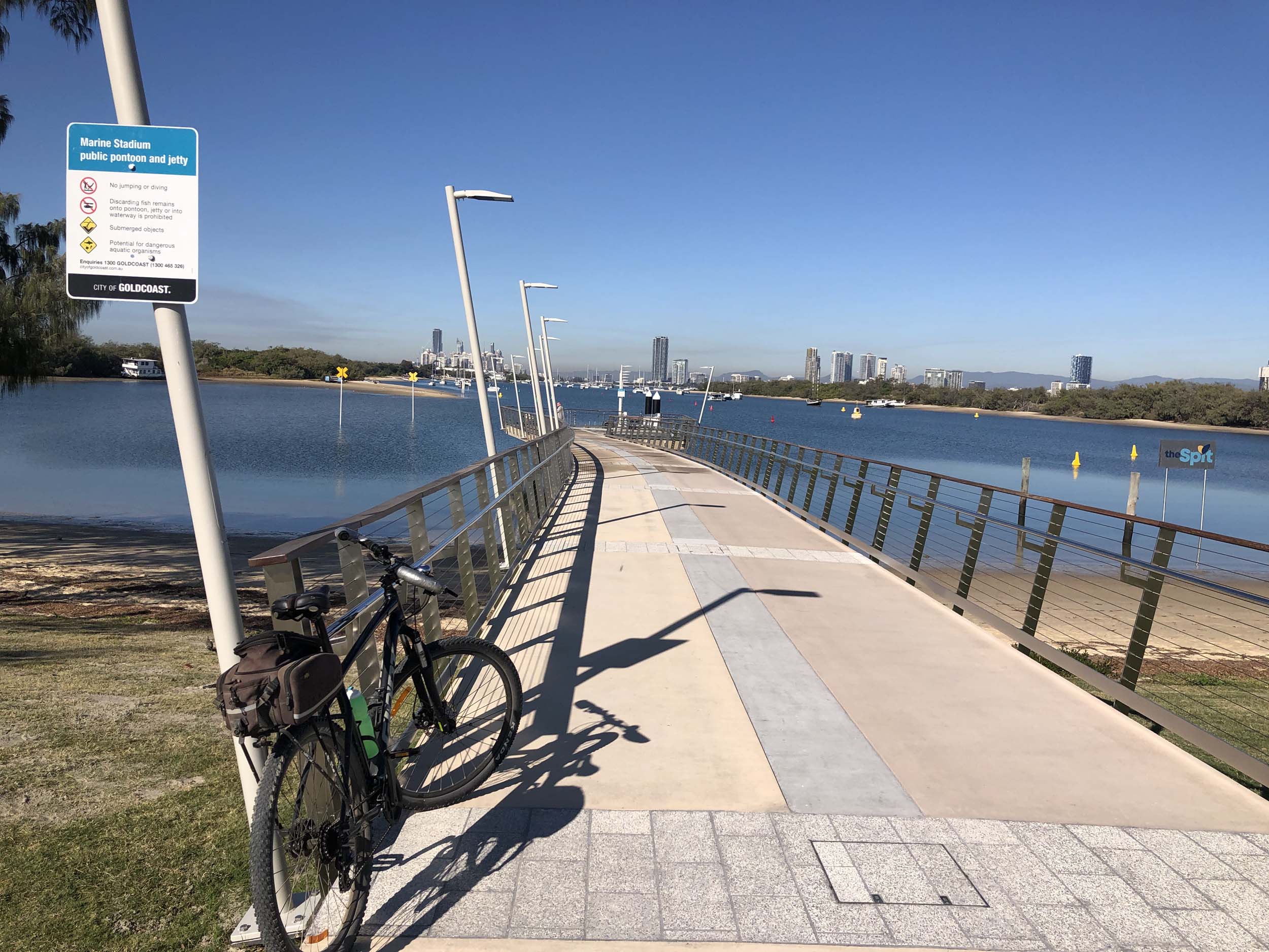 Did a lap of the Seaworld carpark, then rode around Marina Mirage, past Helitours which is on the jetty. Continued back to MacIntosh Island, did another lap.