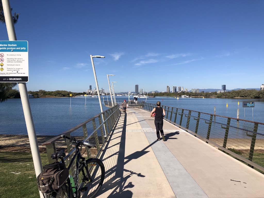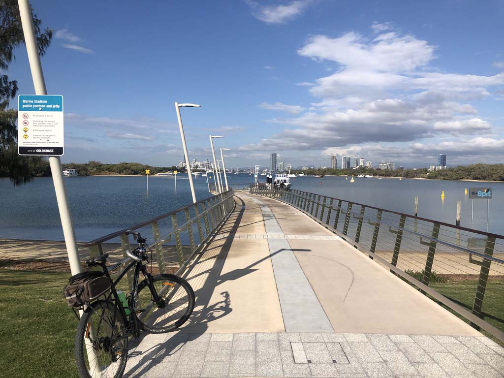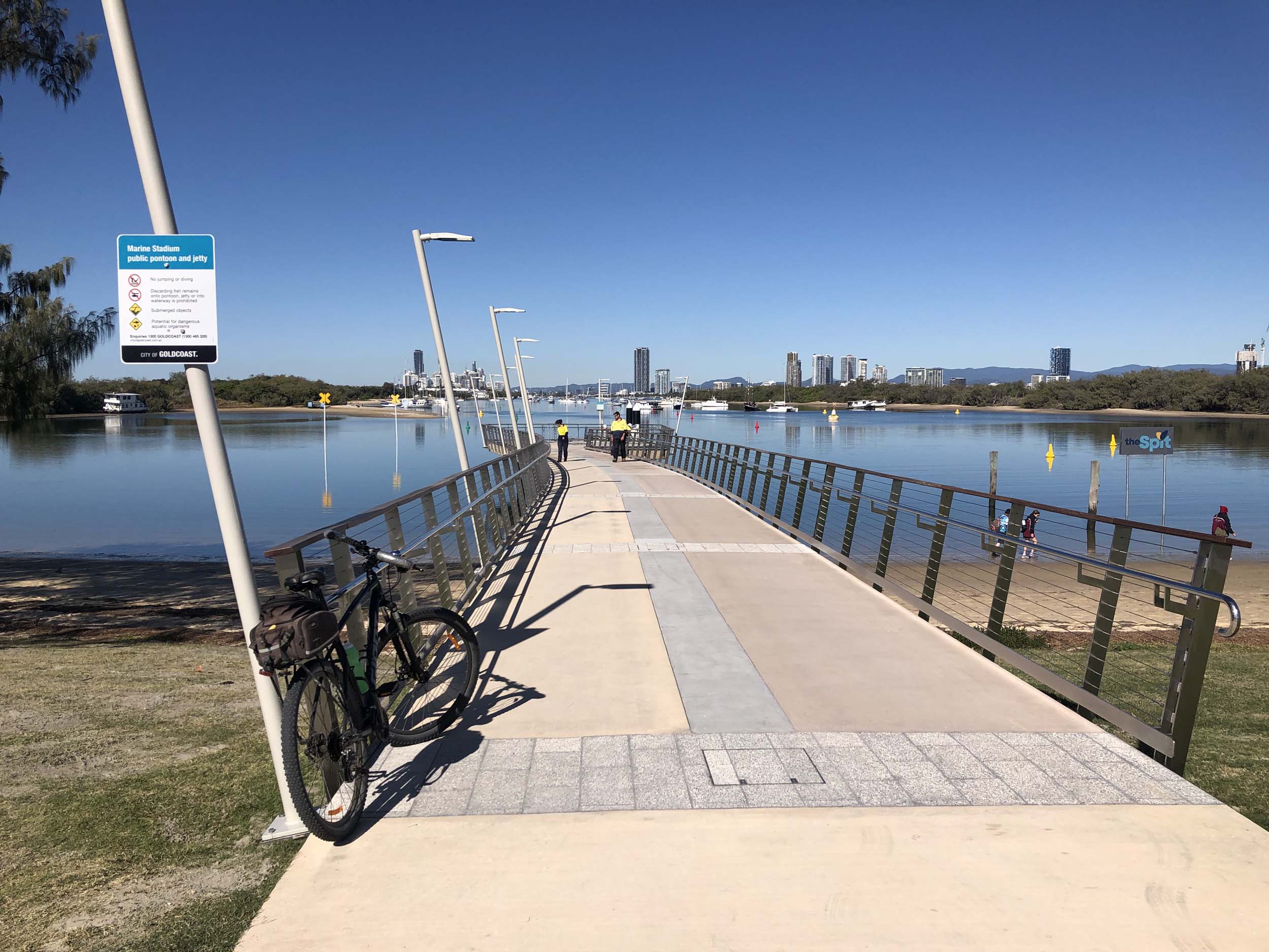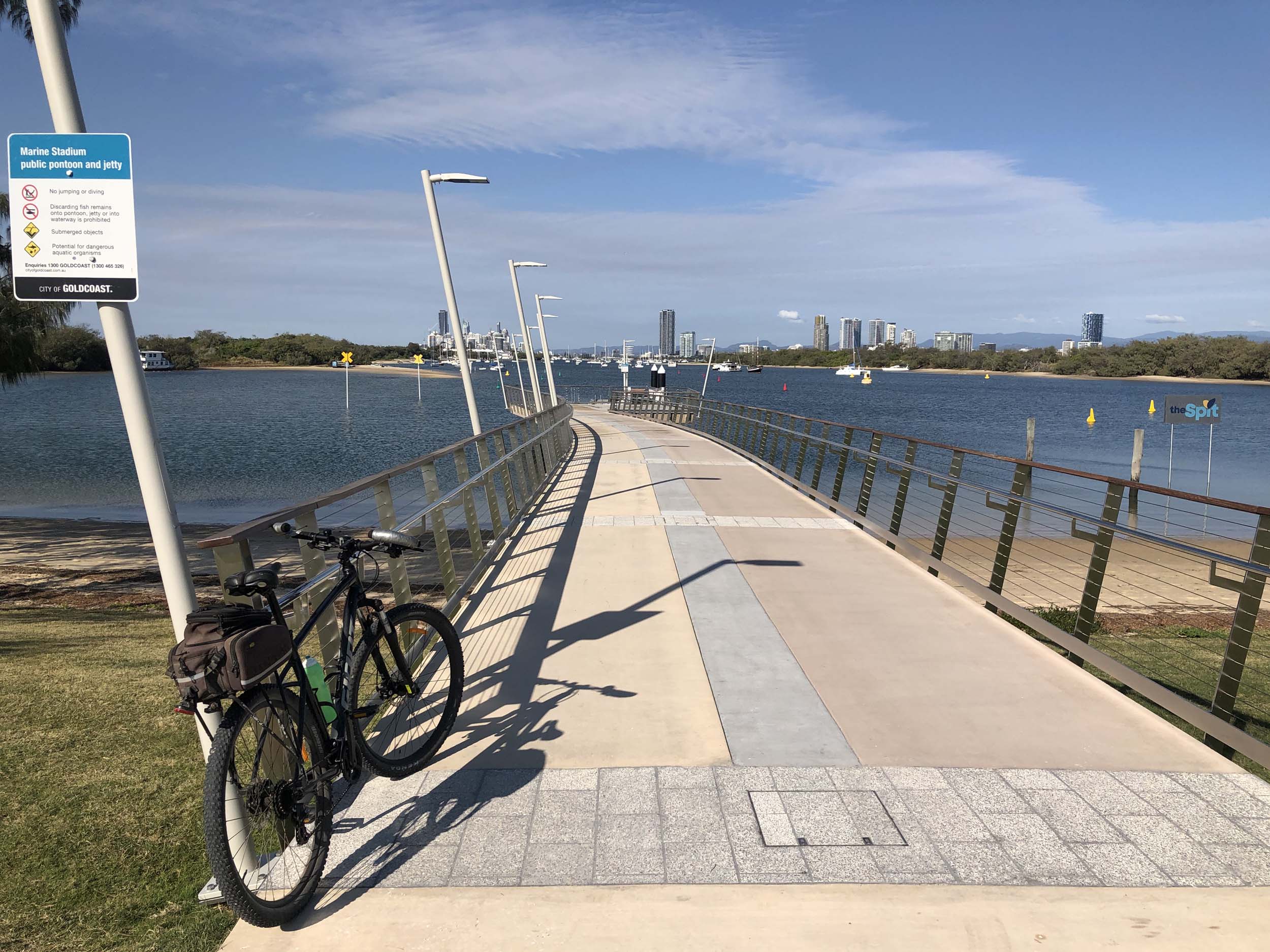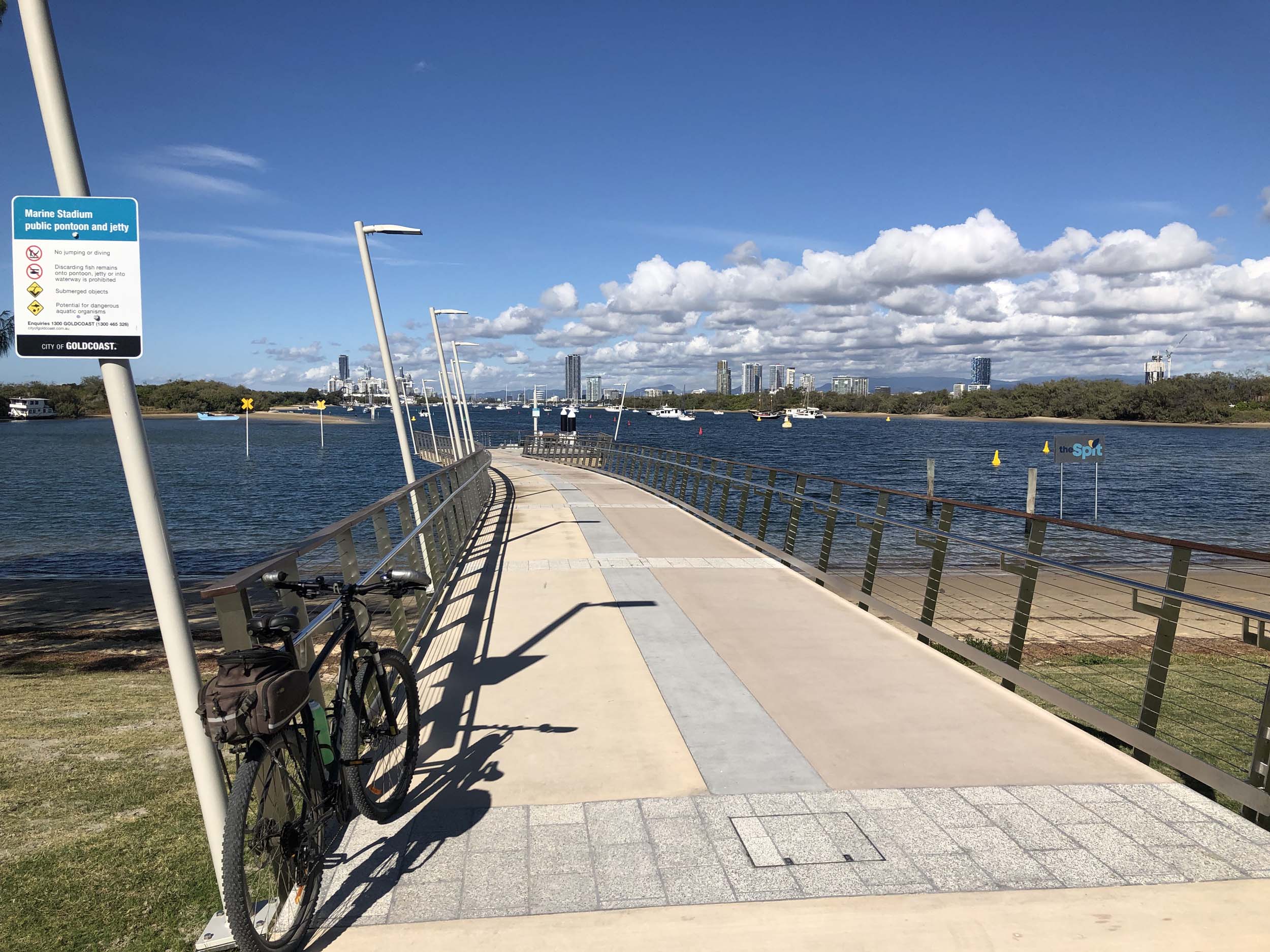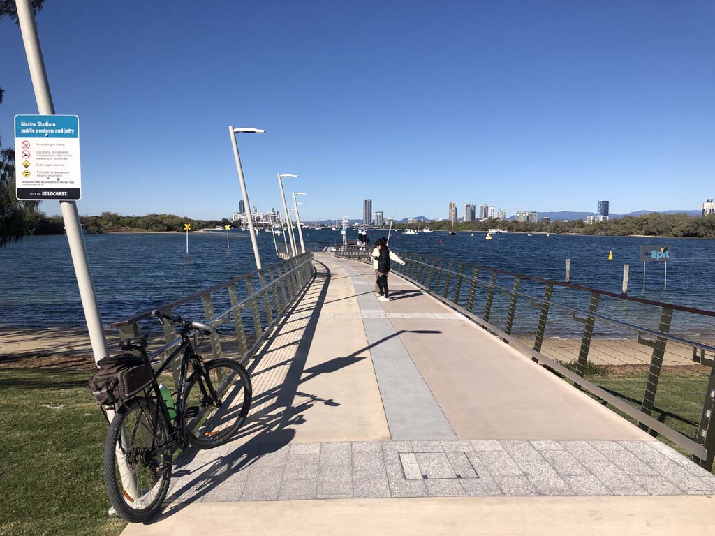 Did a lap of the Seaworld carpark, then rode around Marina Mirage, past Helitours which is on the jetty. Continued back to MacIntosh Island, did another lap.