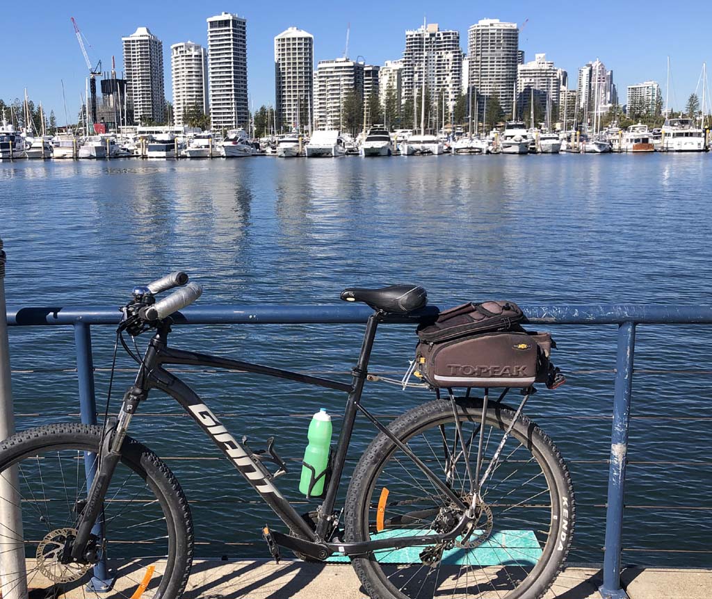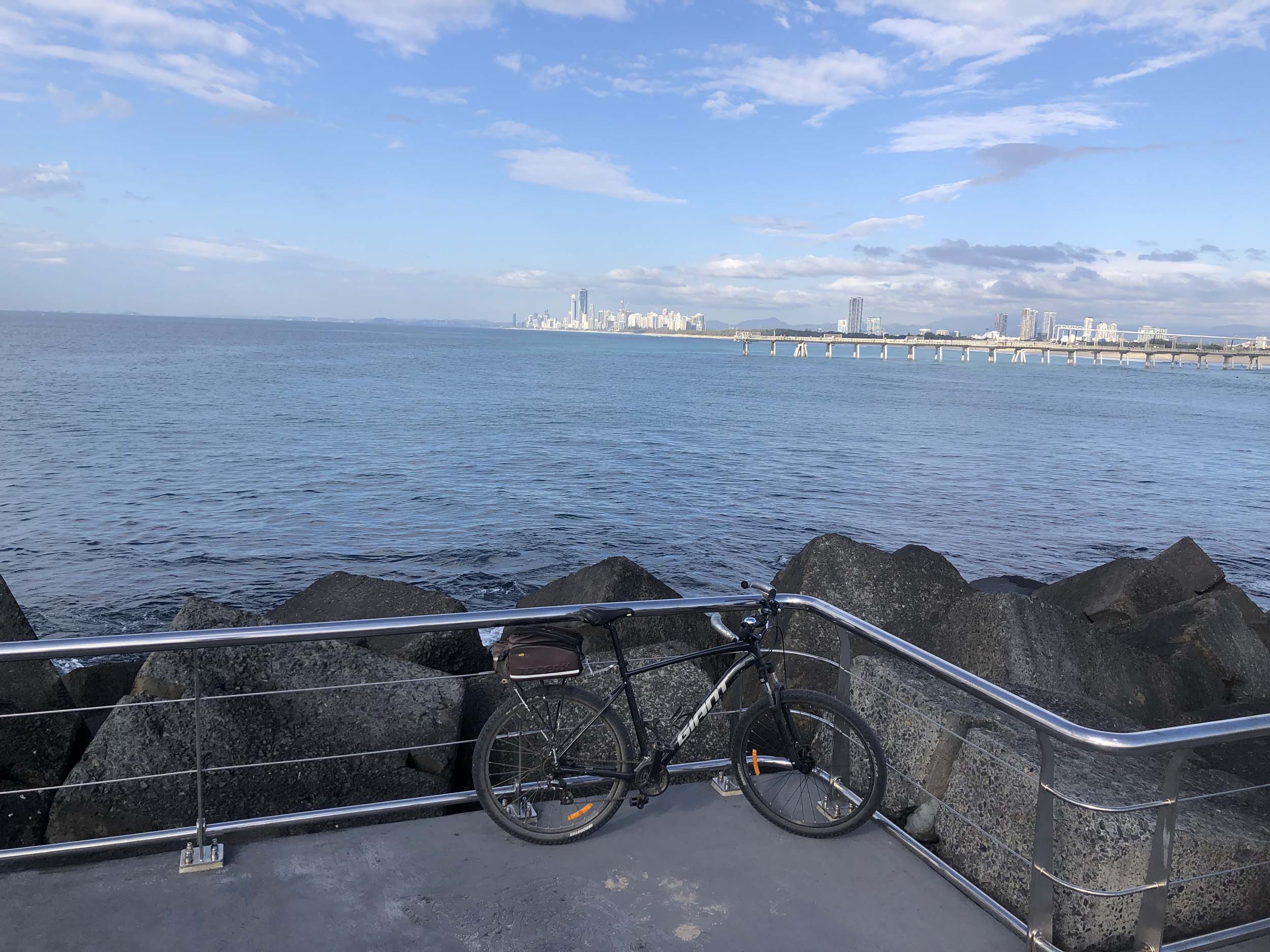 I left The Spit, and continued along the Shared Path that runs beside Seaworld Drive, rode through Muriel Henchman park, did a lap of the Seaworld carpark, then rode around Marina Mirage, past Helitours which is on the jetty. Feeling a bit knackered, I headed straight home.