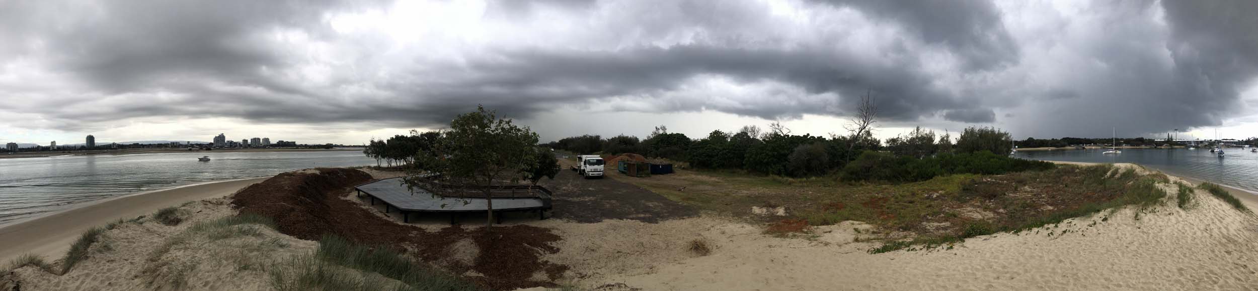 Checked out the progress of packing up after the Supercar round. Over the Bridge at Narrowneck then along the Shared Path, to Surfers, to take my weather photos.