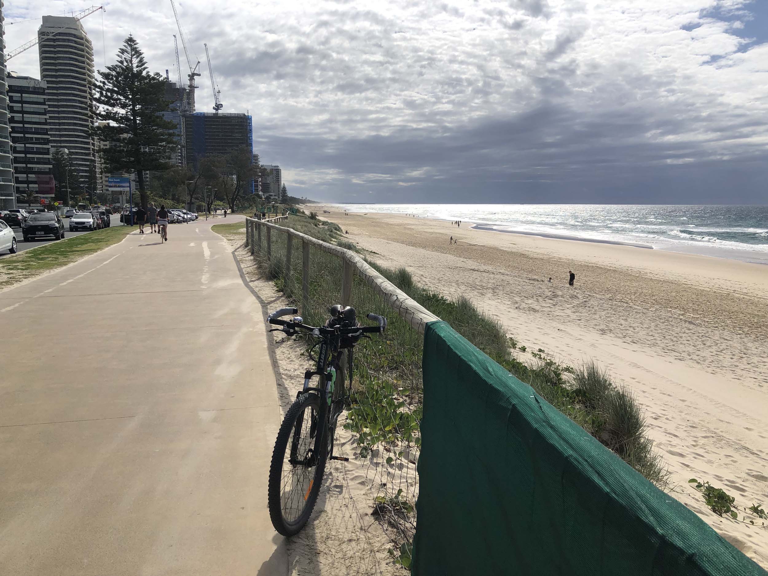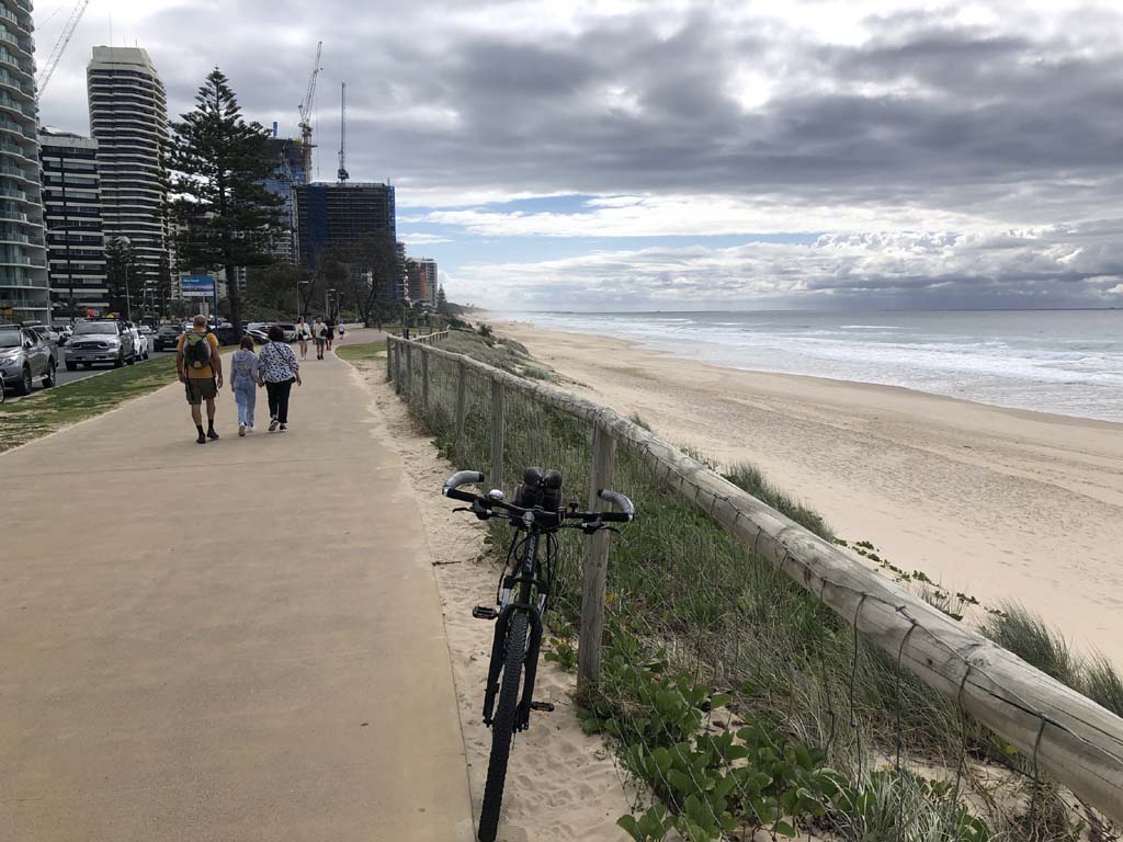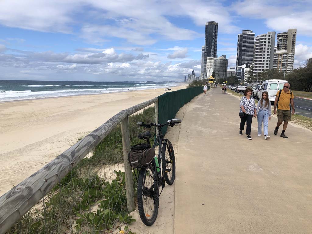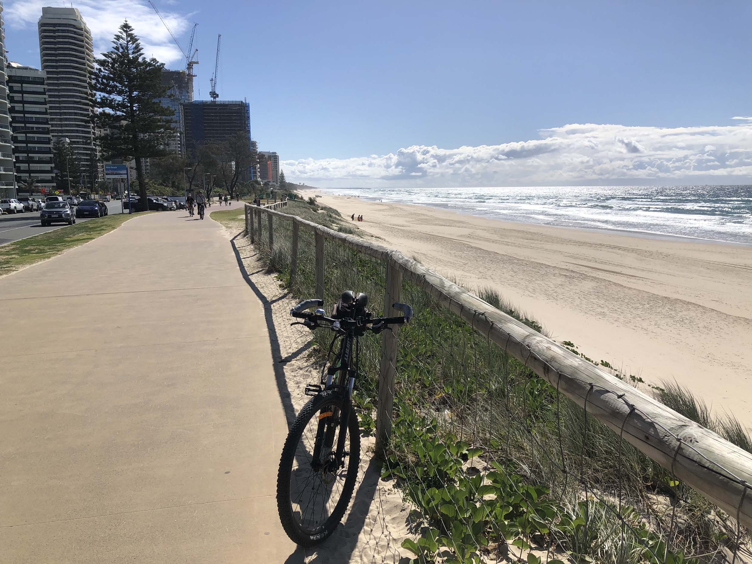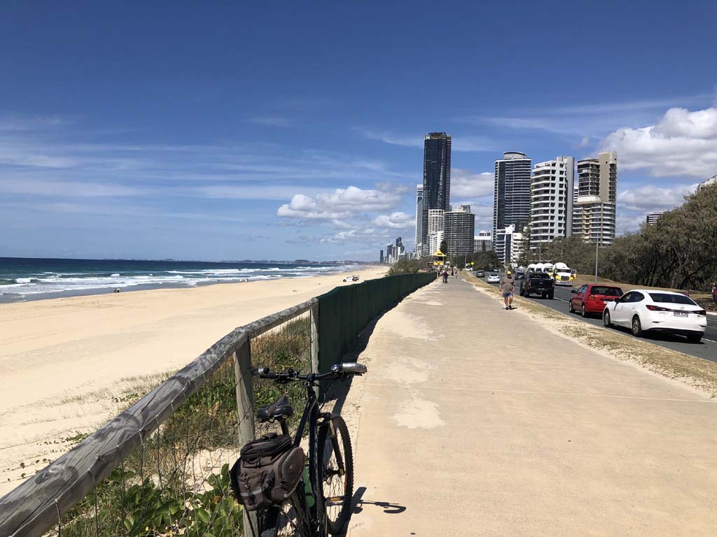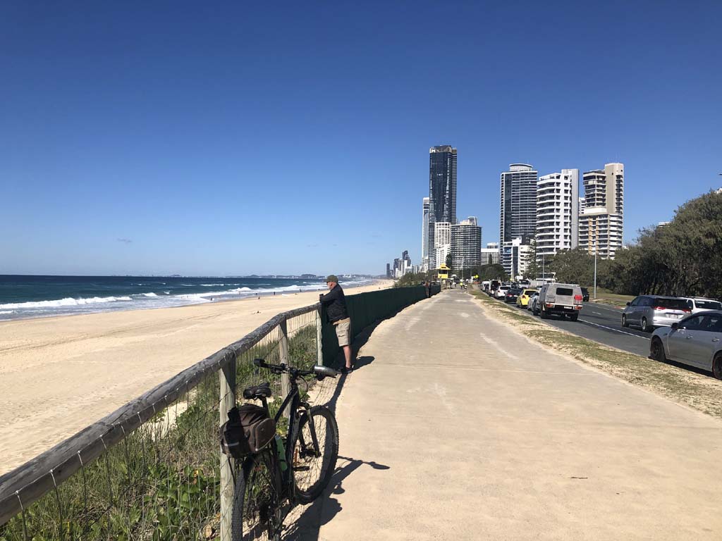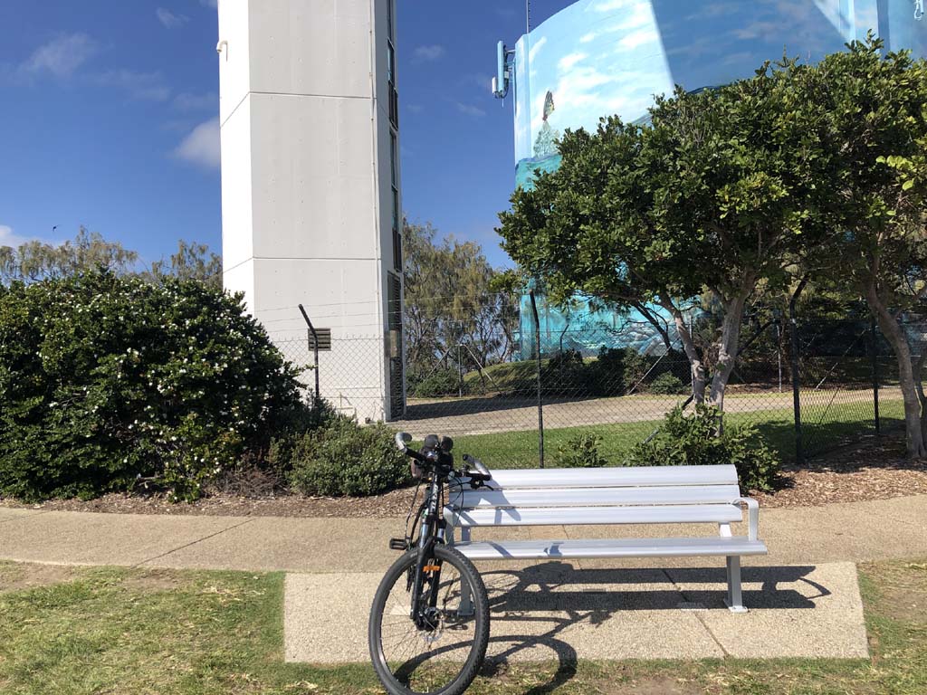 I left the Caravan park and headed along the shared path and sometimes along the quiet back streets parallel to the beach. I rode through the highrises being built in the BIG PADDOCK and spoke to a few locals.