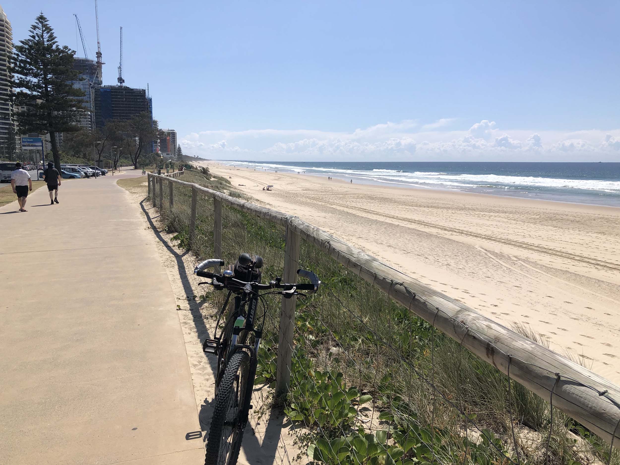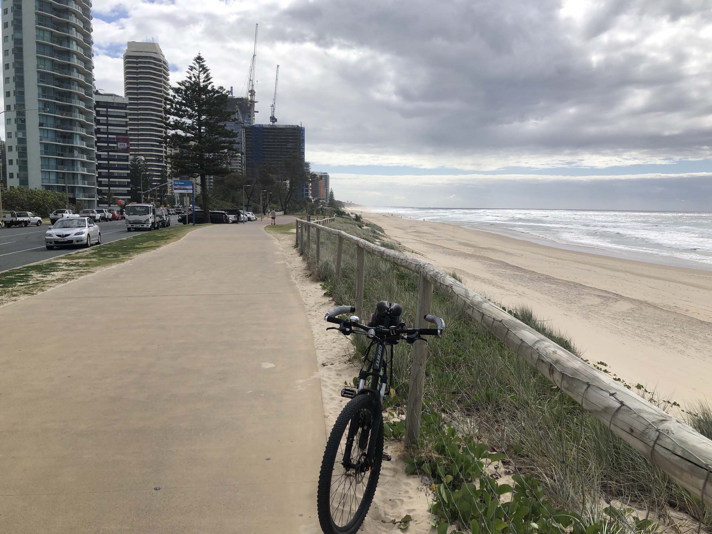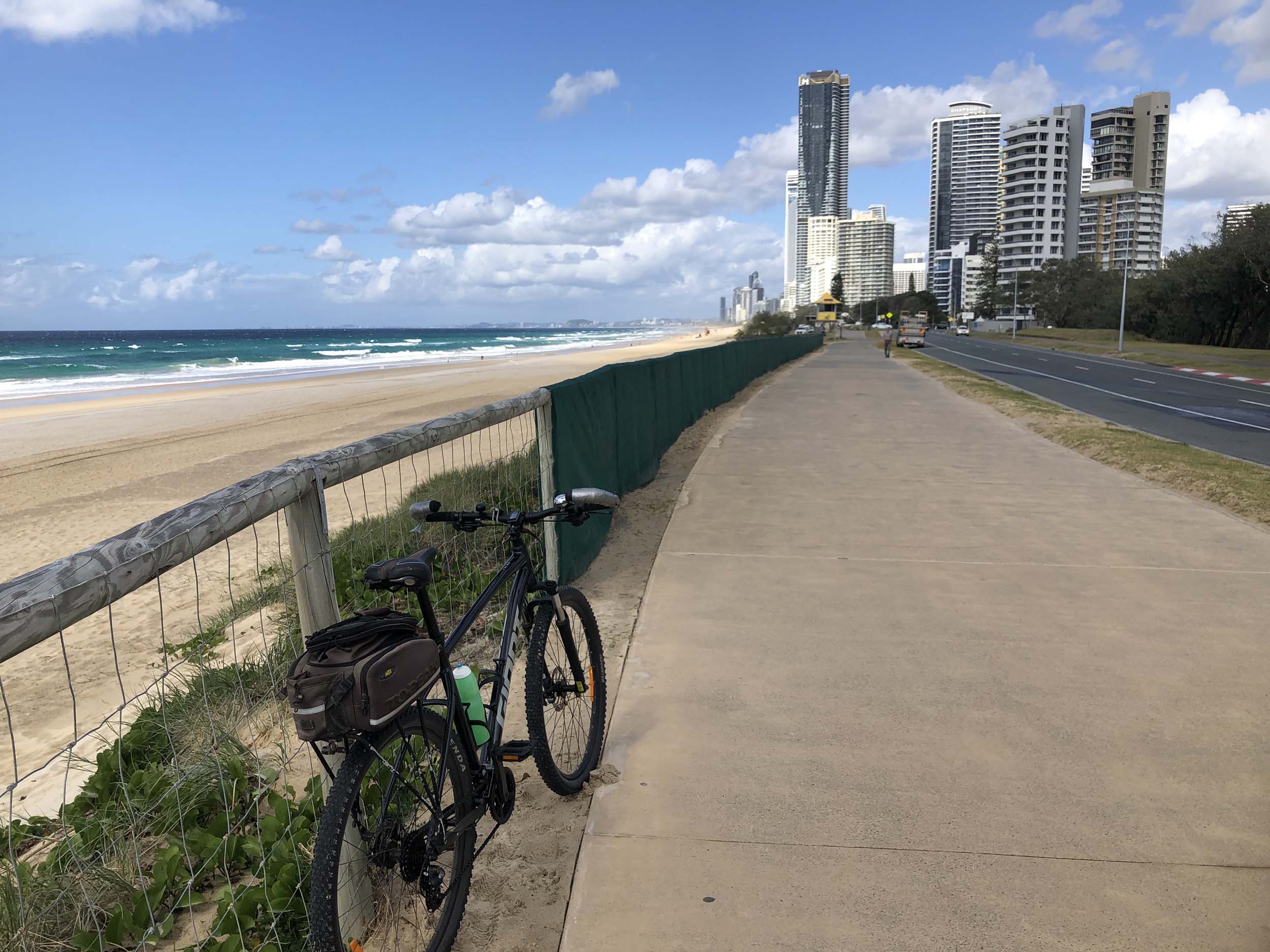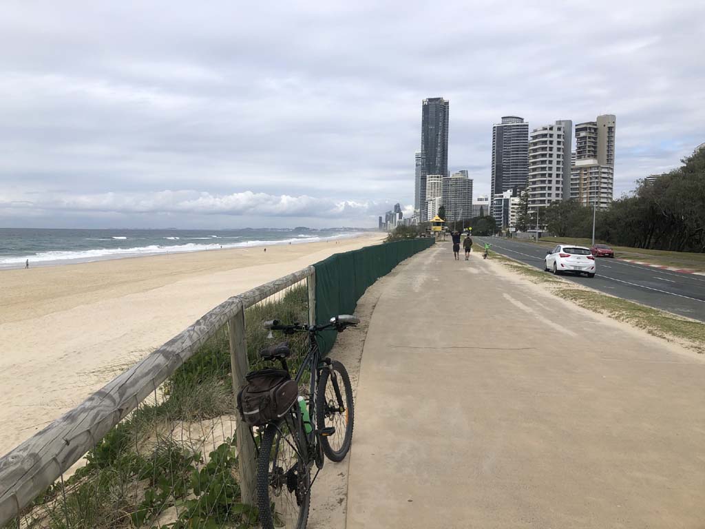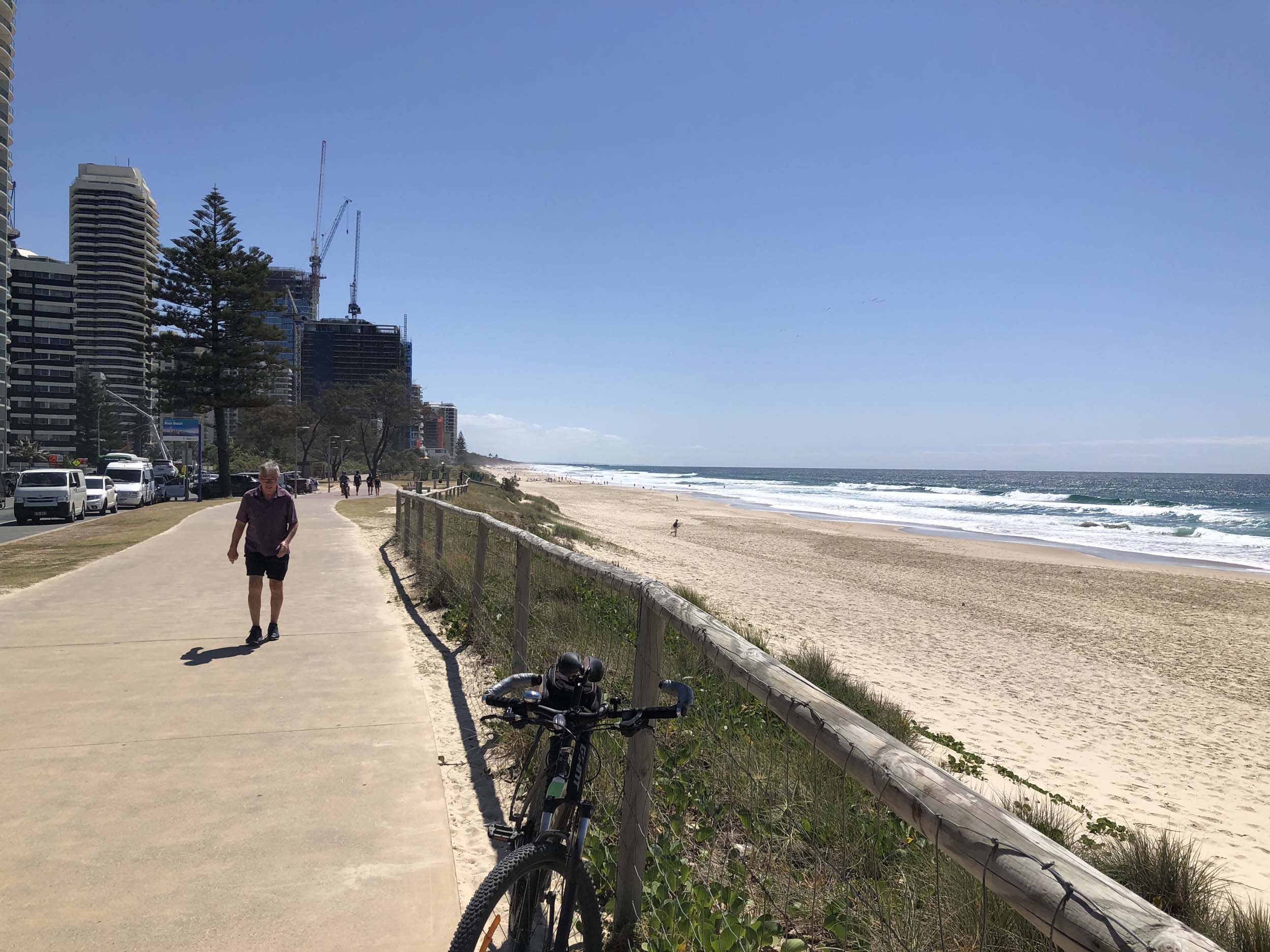 I left the Caravan park and headed along the shared path and sometimes along the quiet back streets parallel to the beach. I rode through the highrises being built in the BIG PADDOCK and spoke to a few locals.
