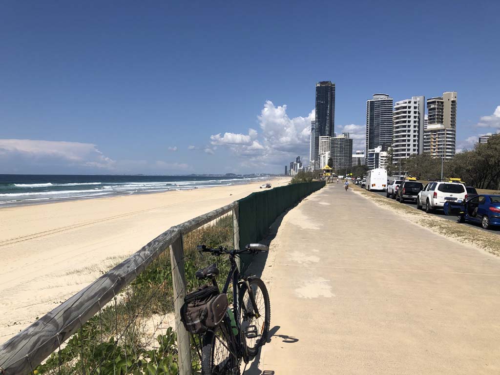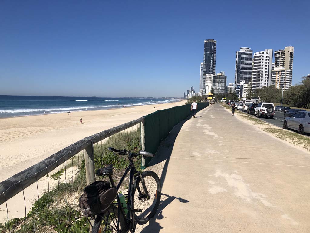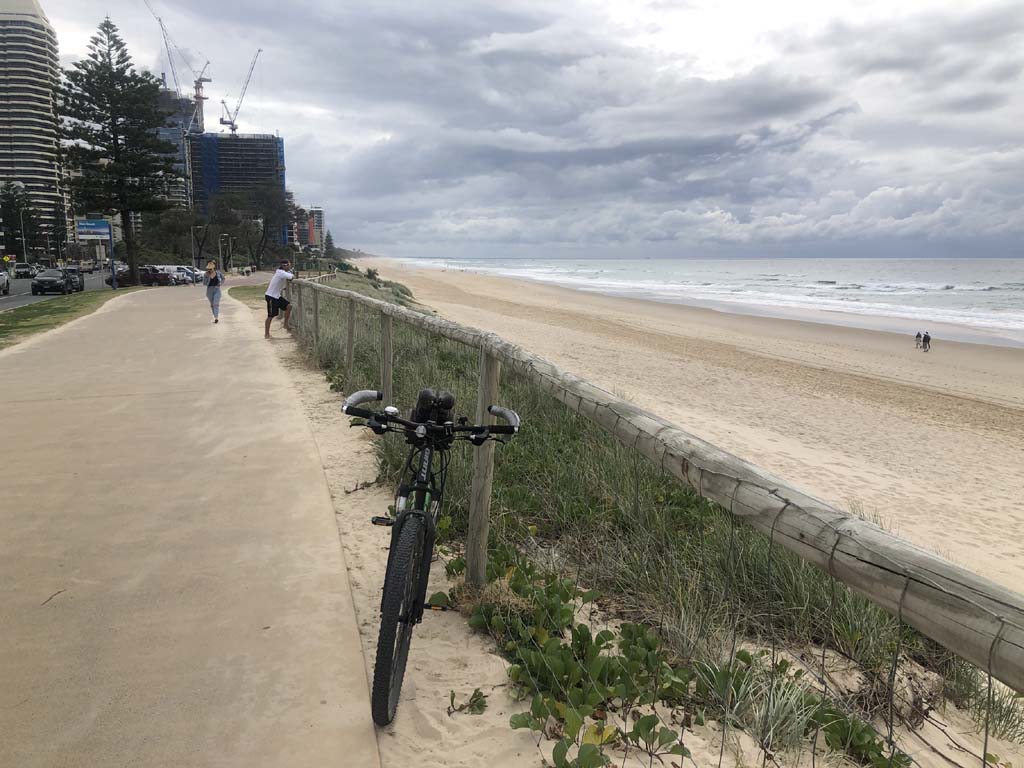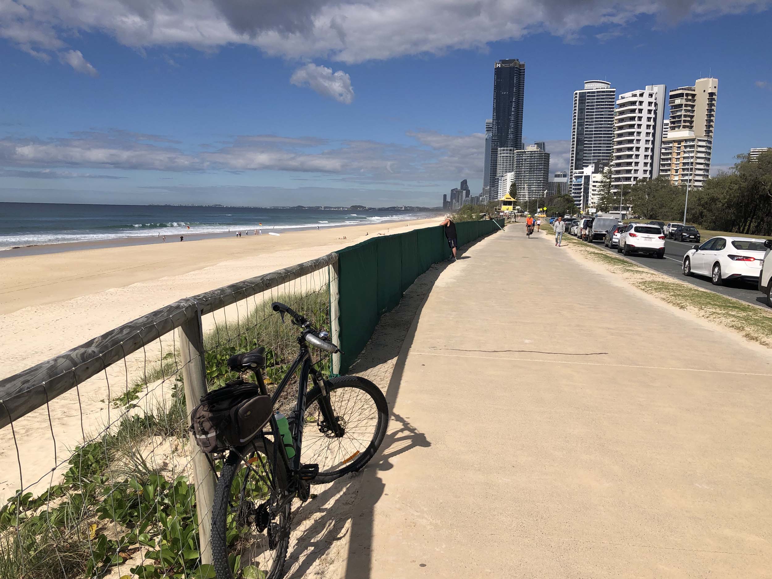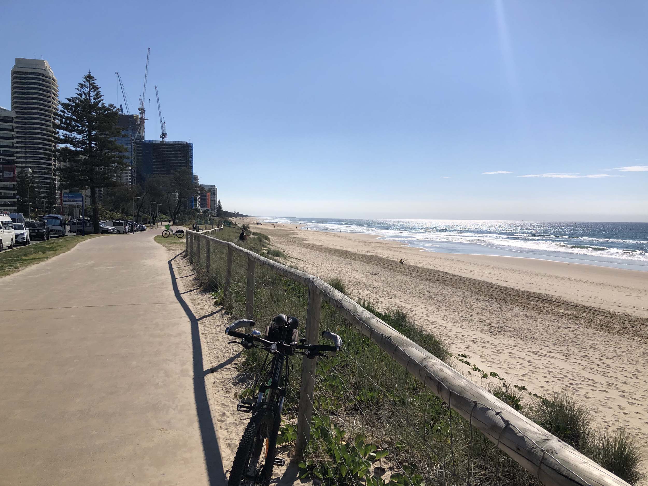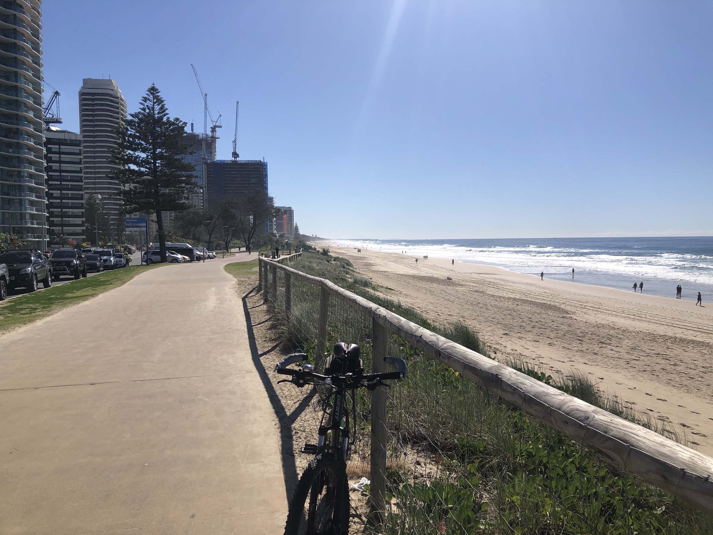 I left the Caravan park and headed along the shared path and sometimes along the quiet back streets parallel to the beach. I rode through the highrises being built in the BIG PADDOCK and spoke to a few locals.