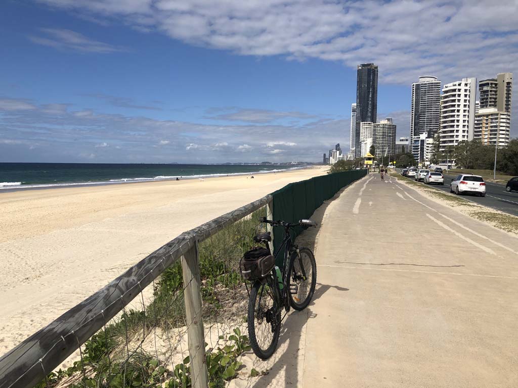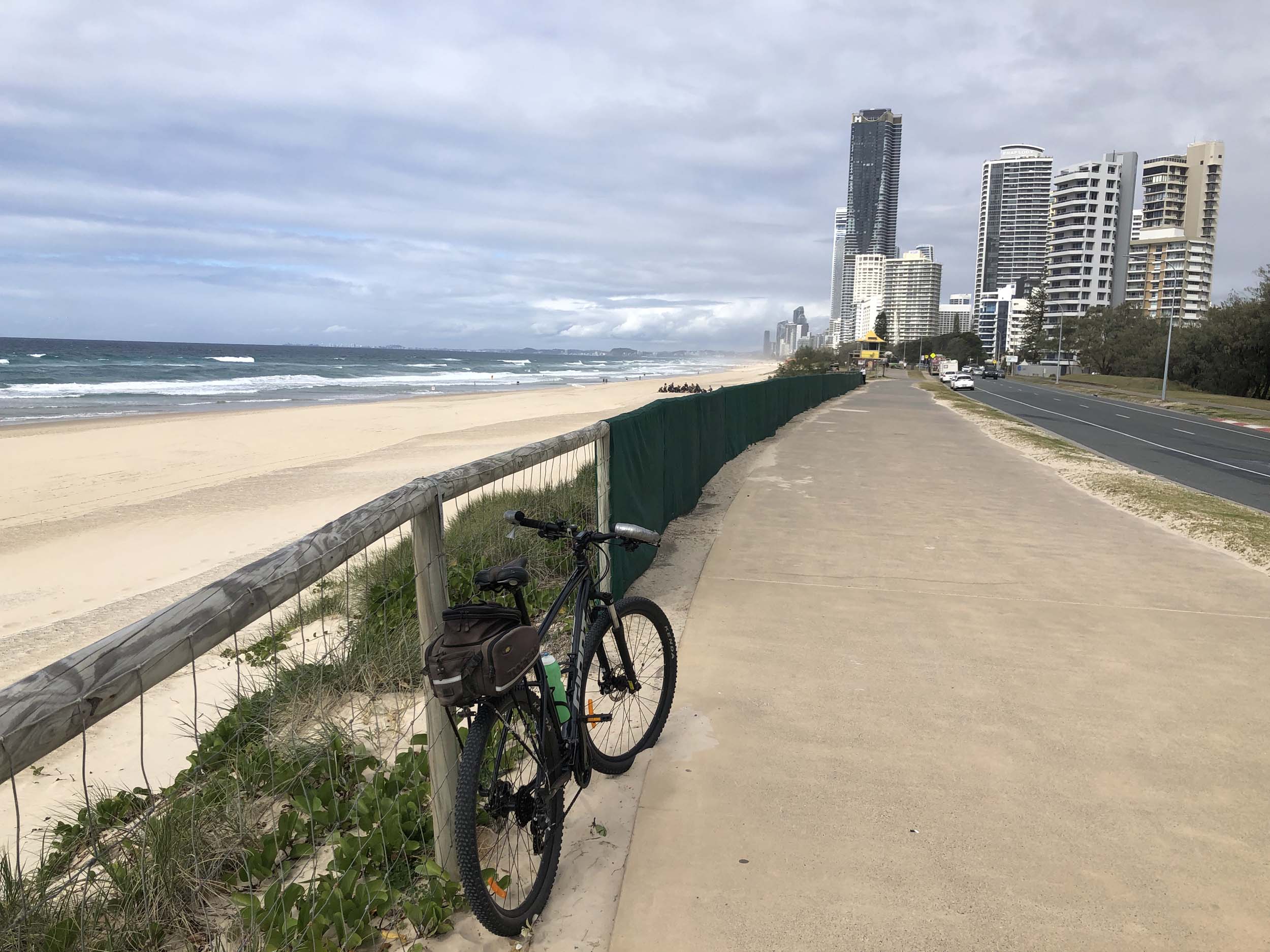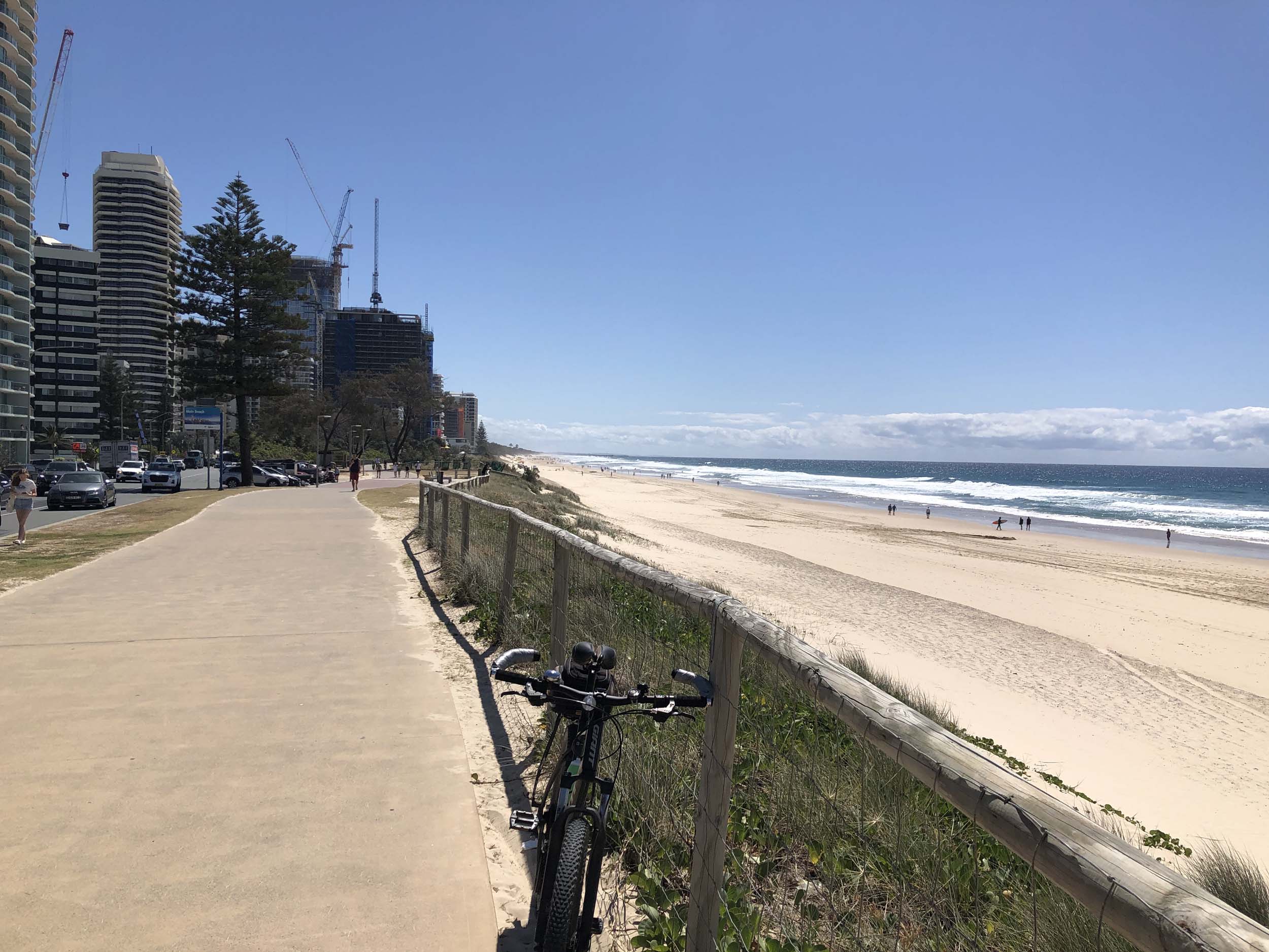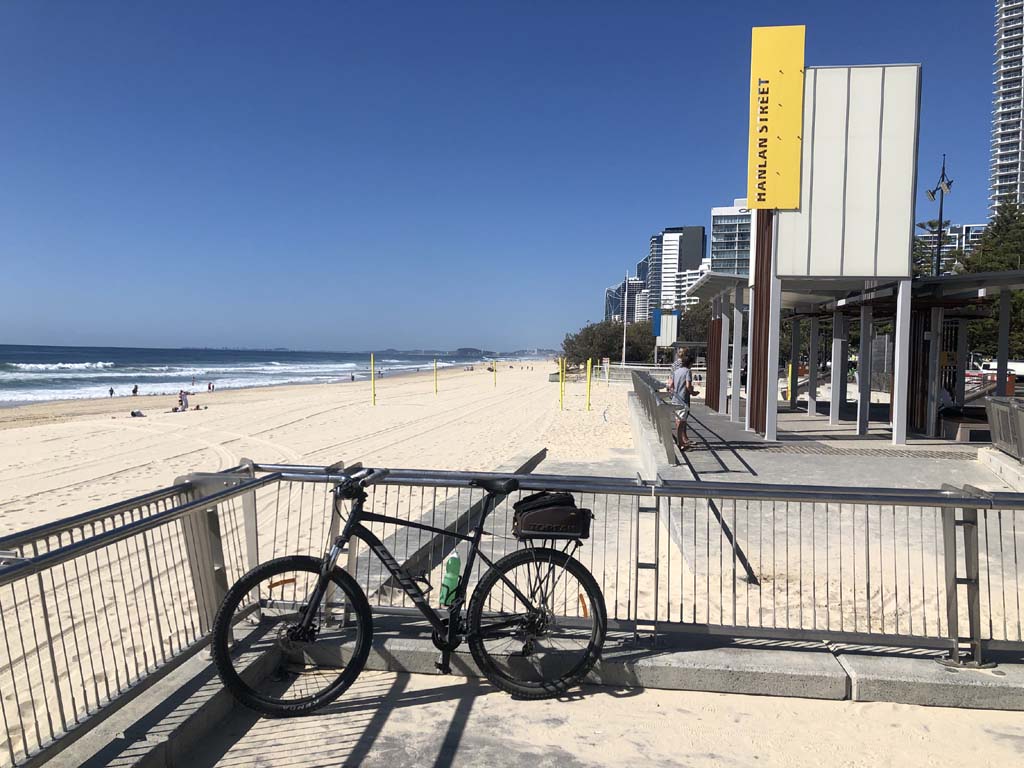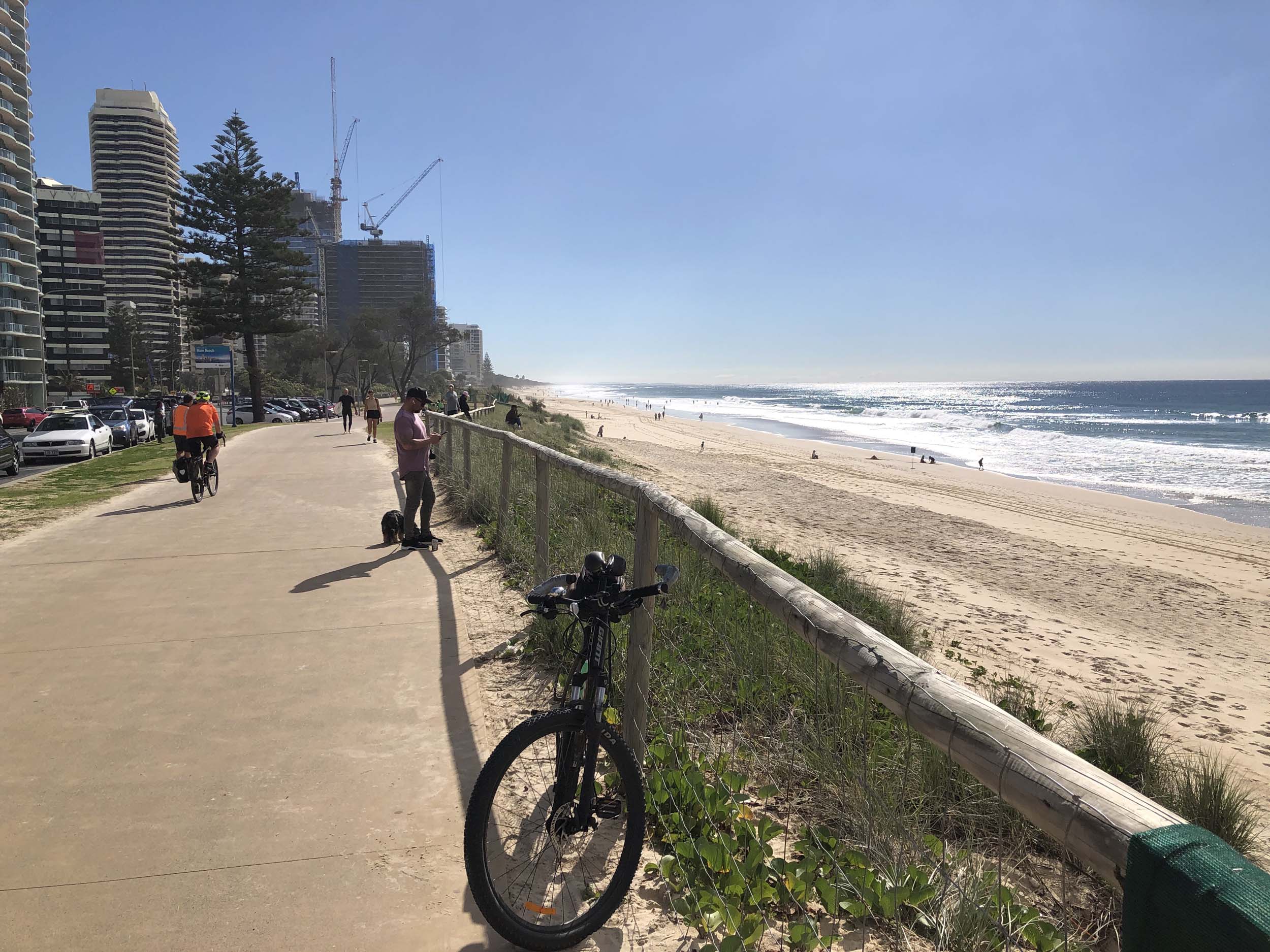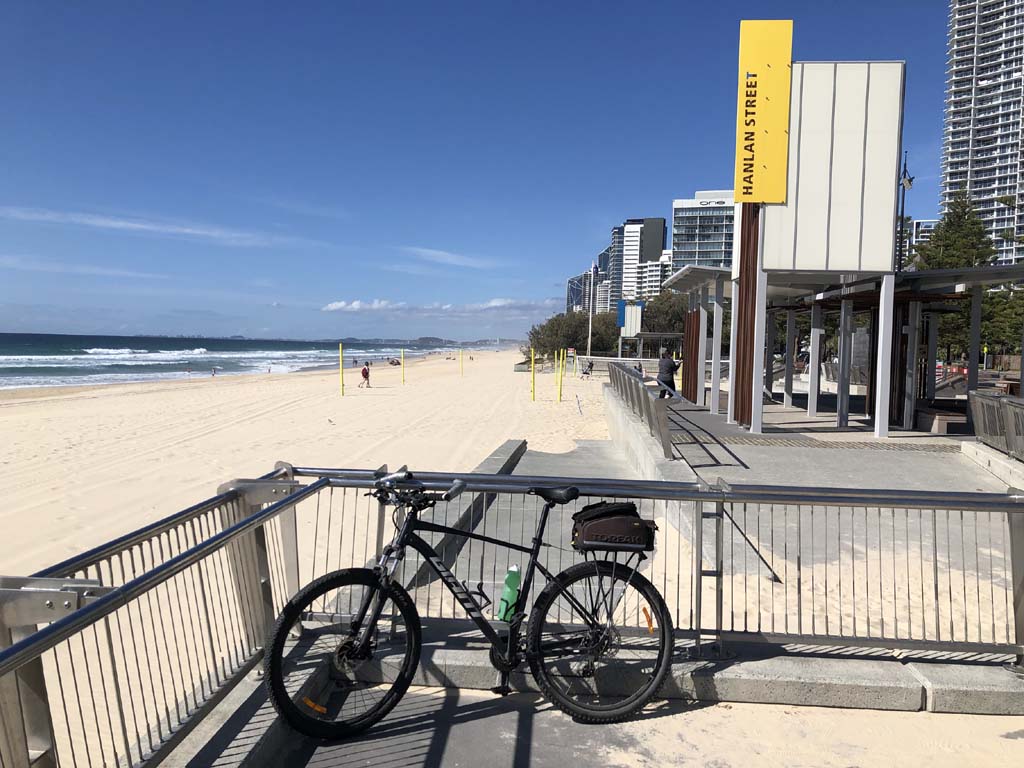I left the Caravan park and headed along the shared path and sometimes along the quiet back streets parallel to the beach. I rode through the highrises being built in the BIG PADDOCK and spoke to a few locals.