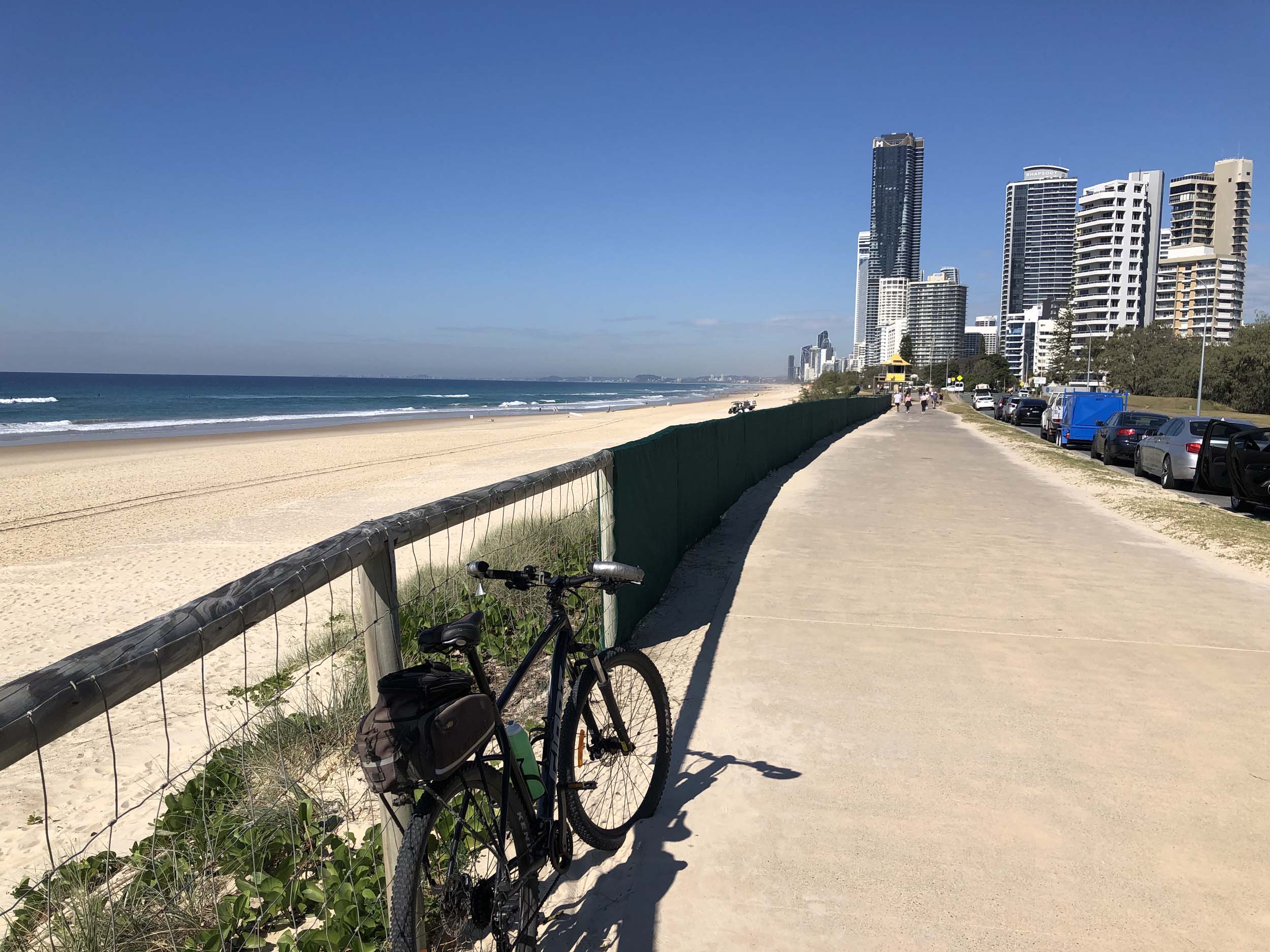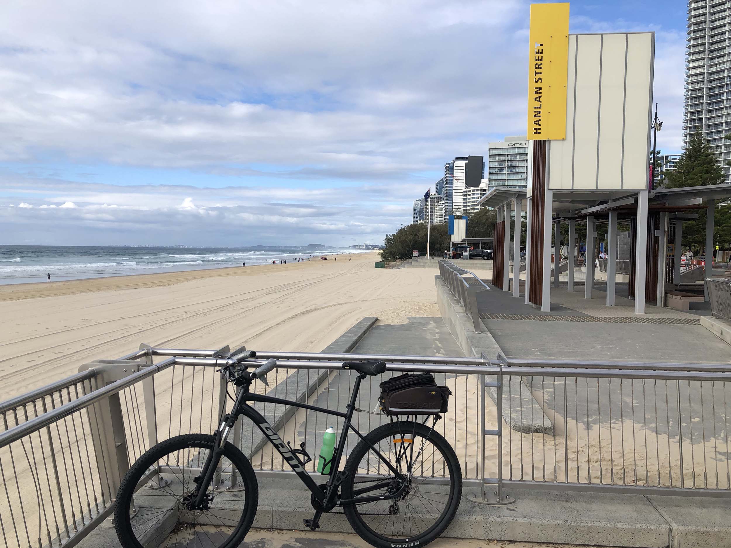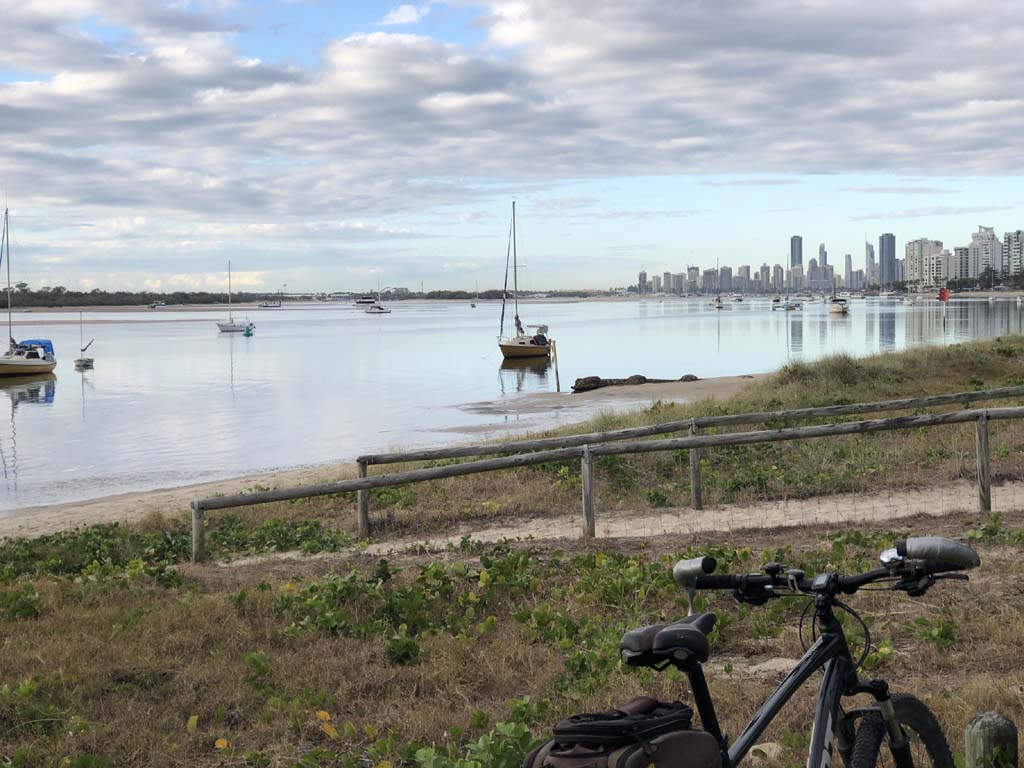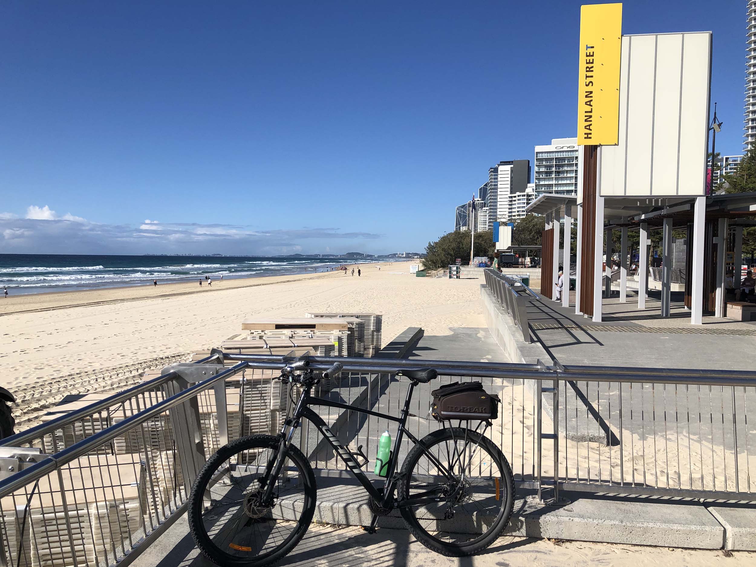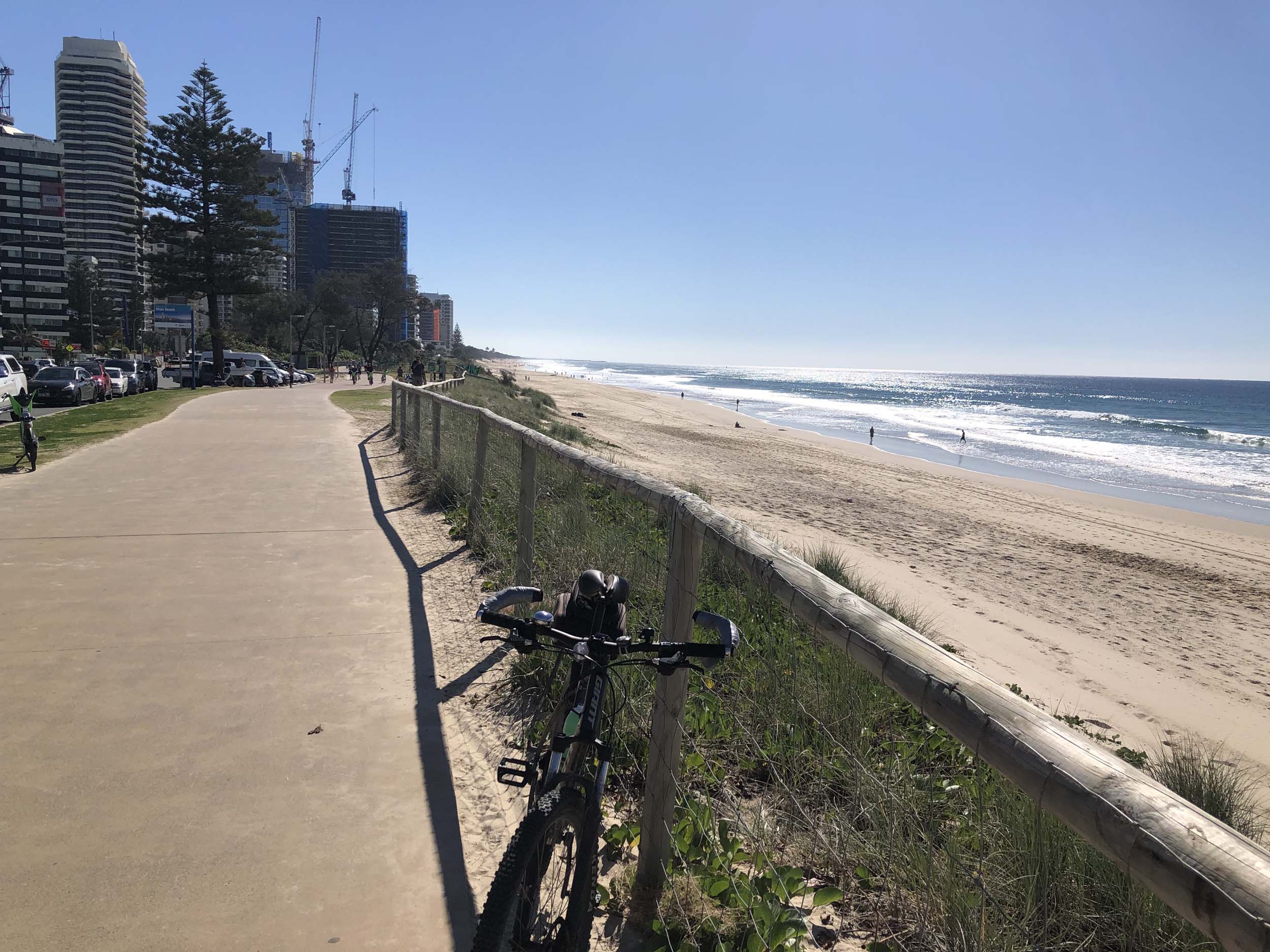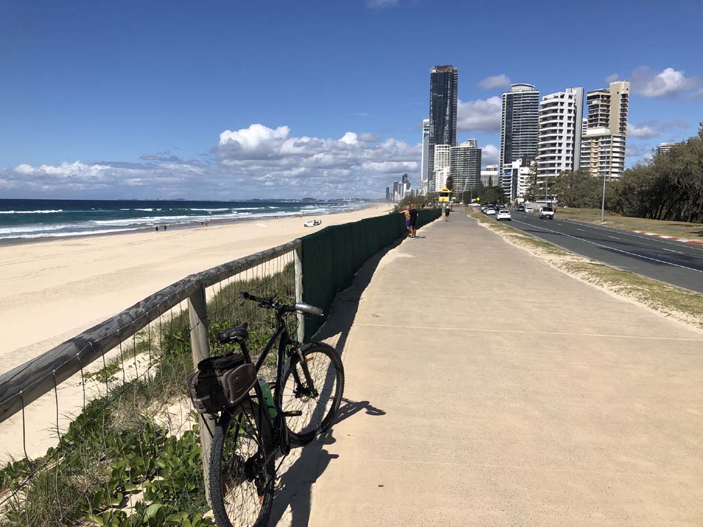 I left the Caravan park and headed along the shared path and sometimes along the quiet back streets parallel to the beach. I rode through the highrises being built in the BIG PADDOCK and spoke to a few locals.