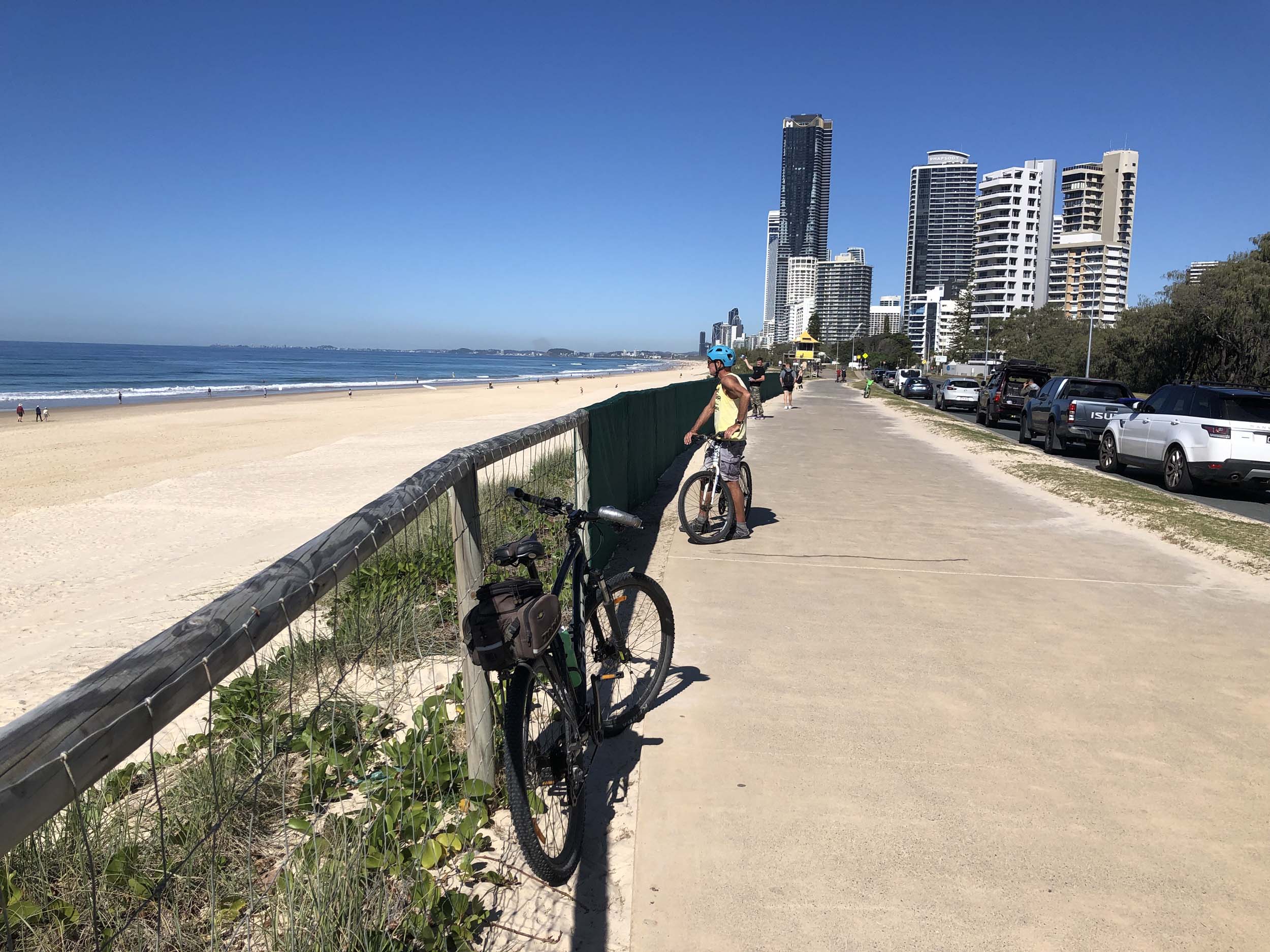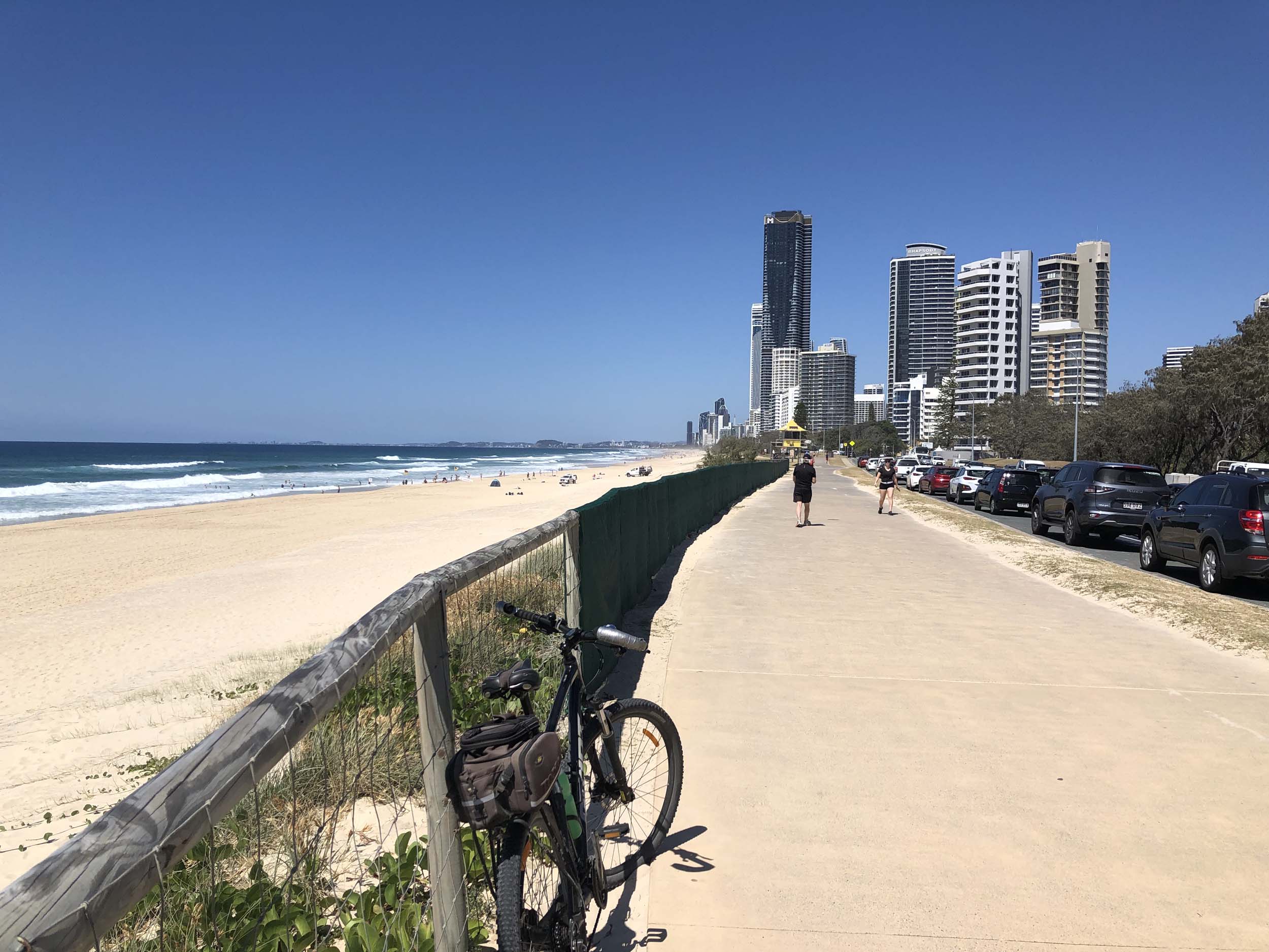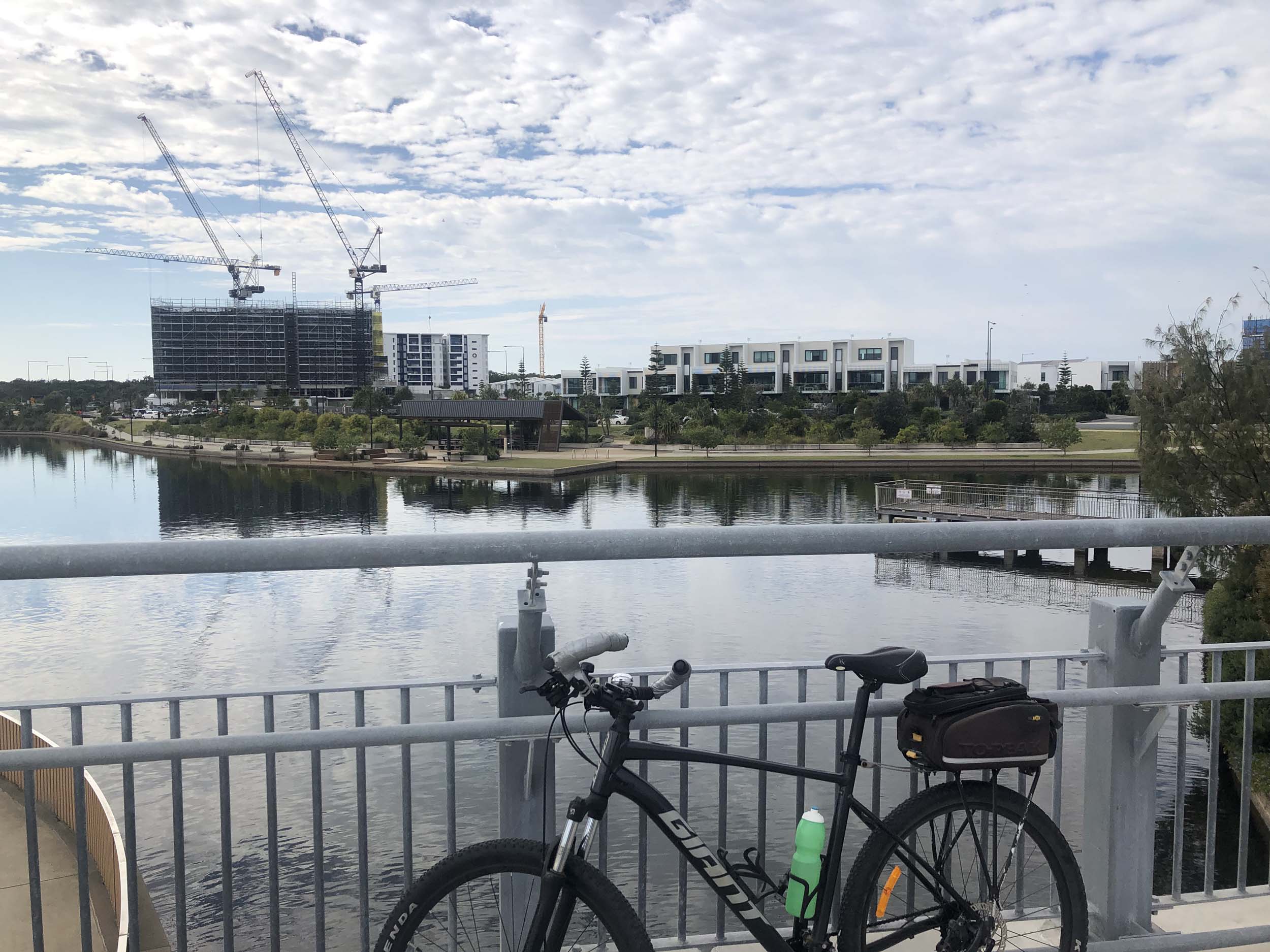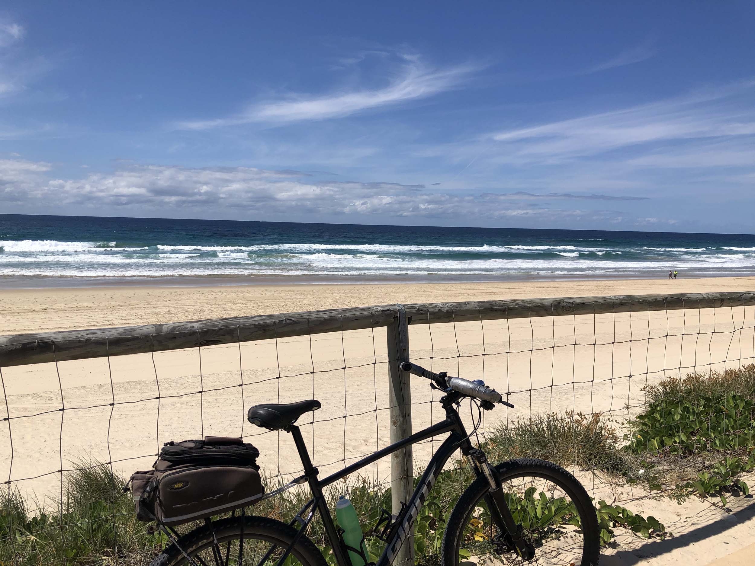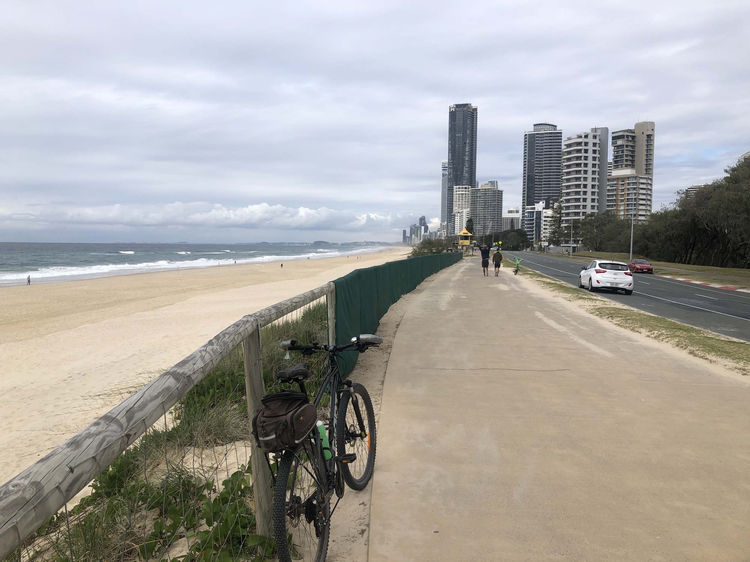 I left the Caravan park and headed along the shared path and sometimes along the quiet back streets parallel to the beach. I rode through the highrises being built in the BIG PADDOCK and spoke to a few locals.