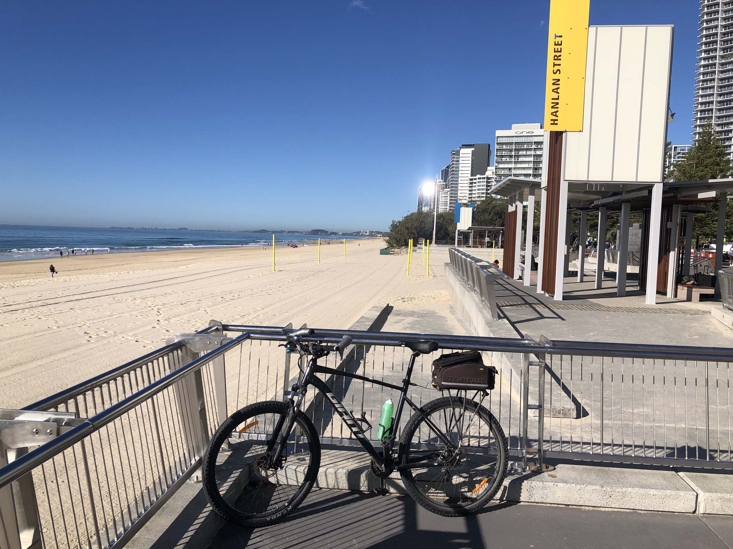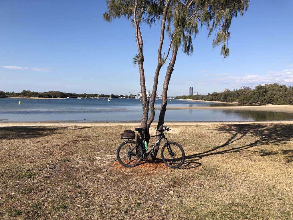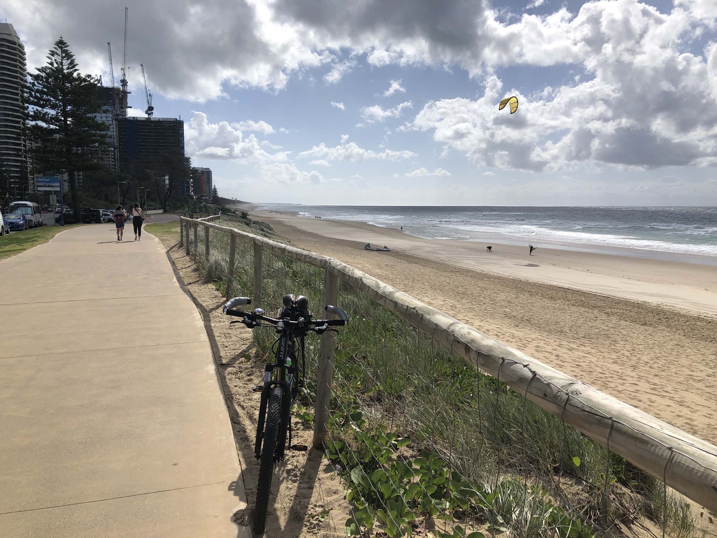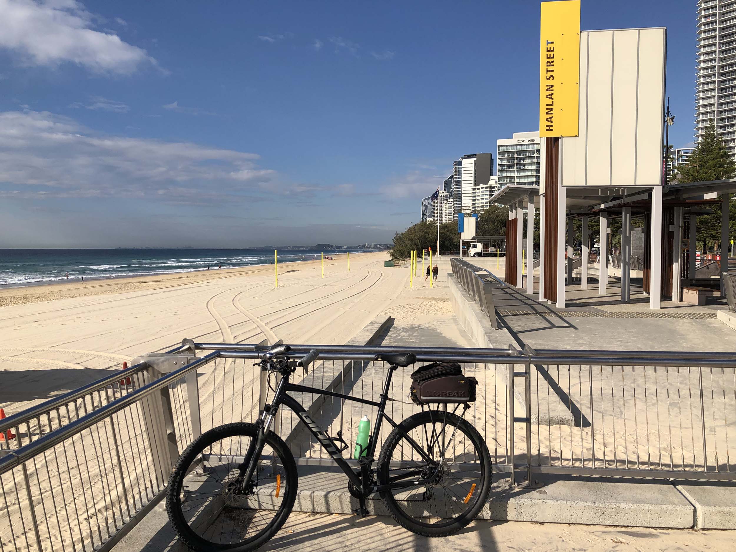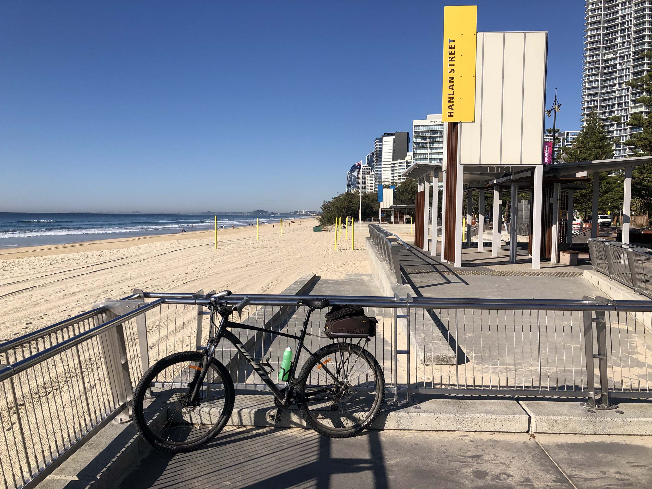 I left the Caravan park and headed along the shared path and sometimes along the quiet back streets parallel to the beach. I rode through the highrises being built in the BIG PADDOCK and spoke to a few locals.
