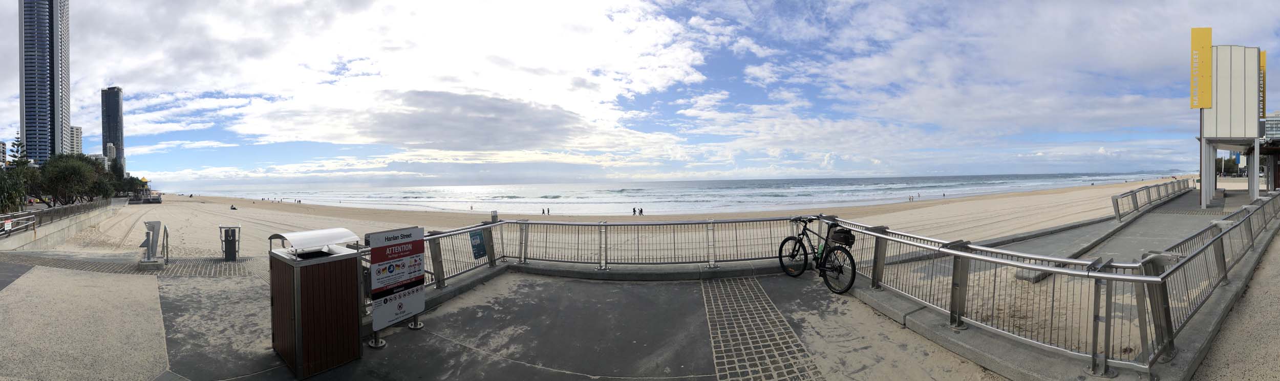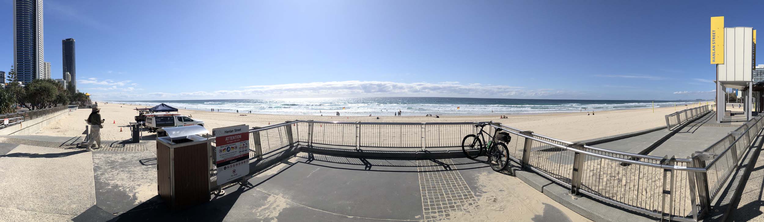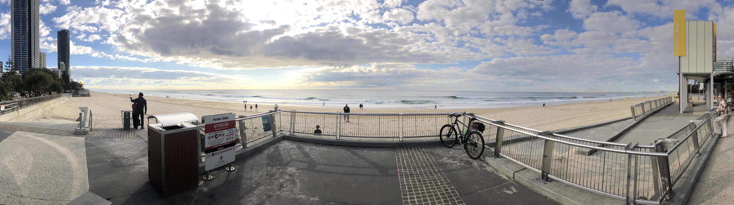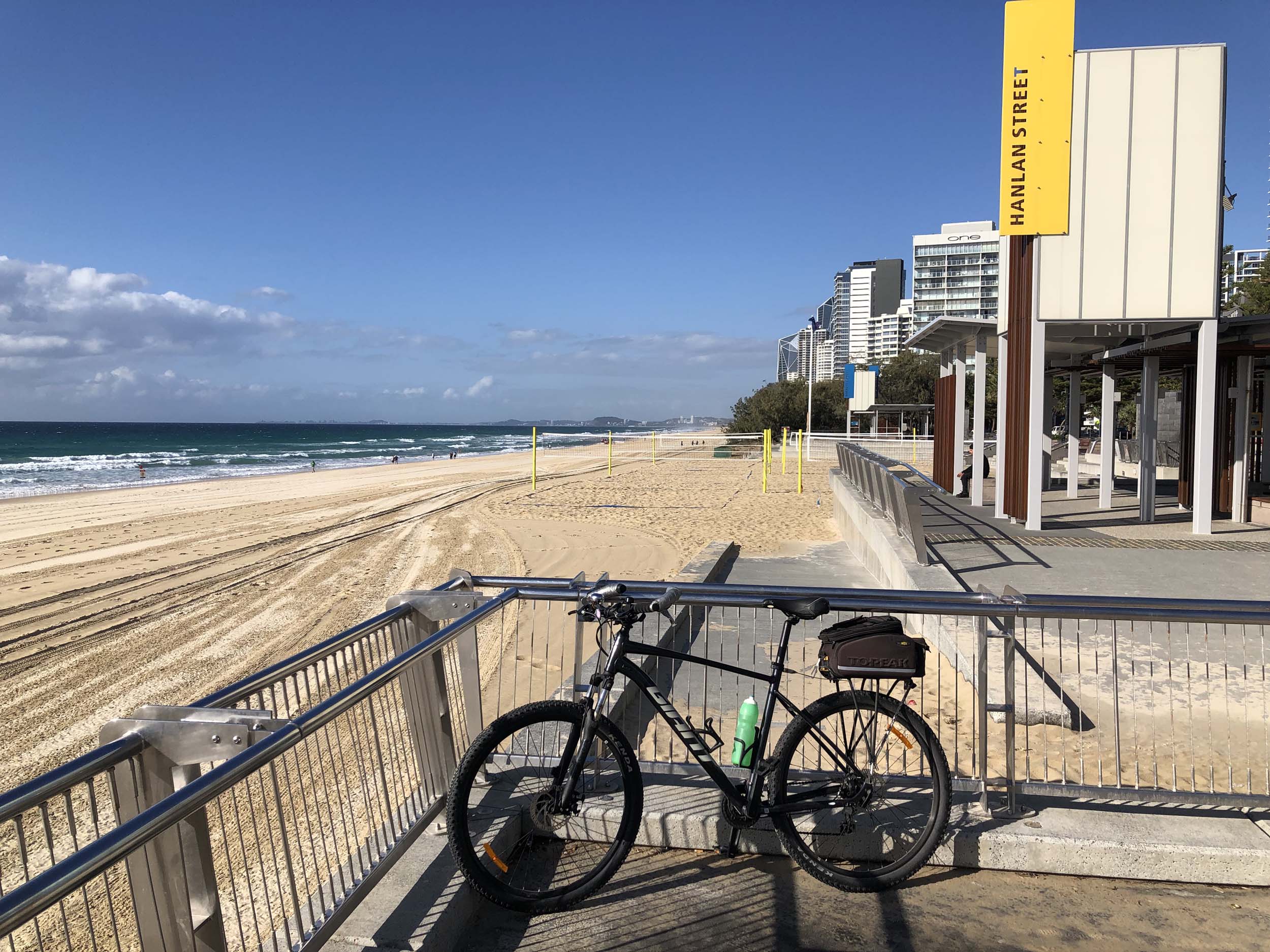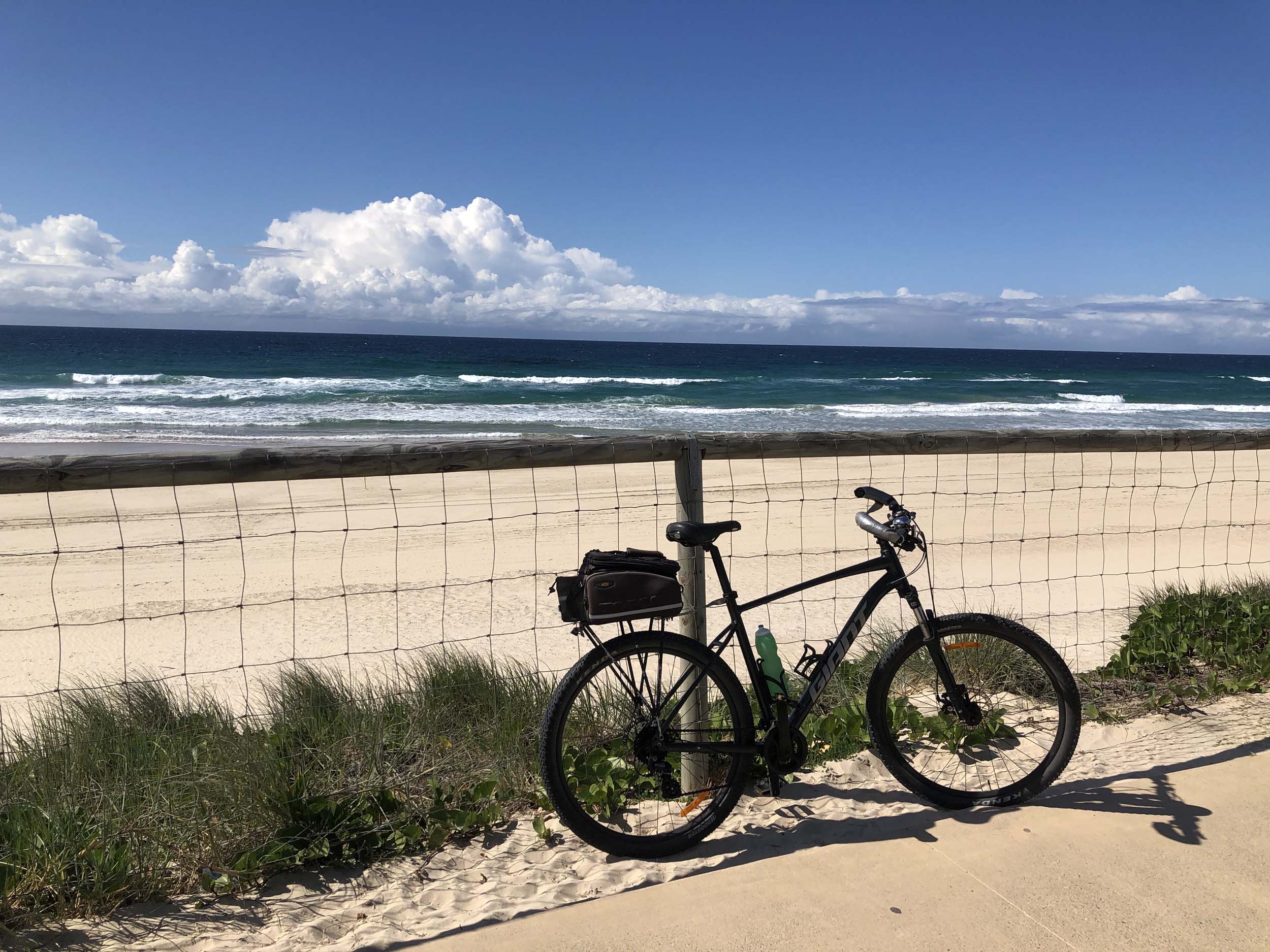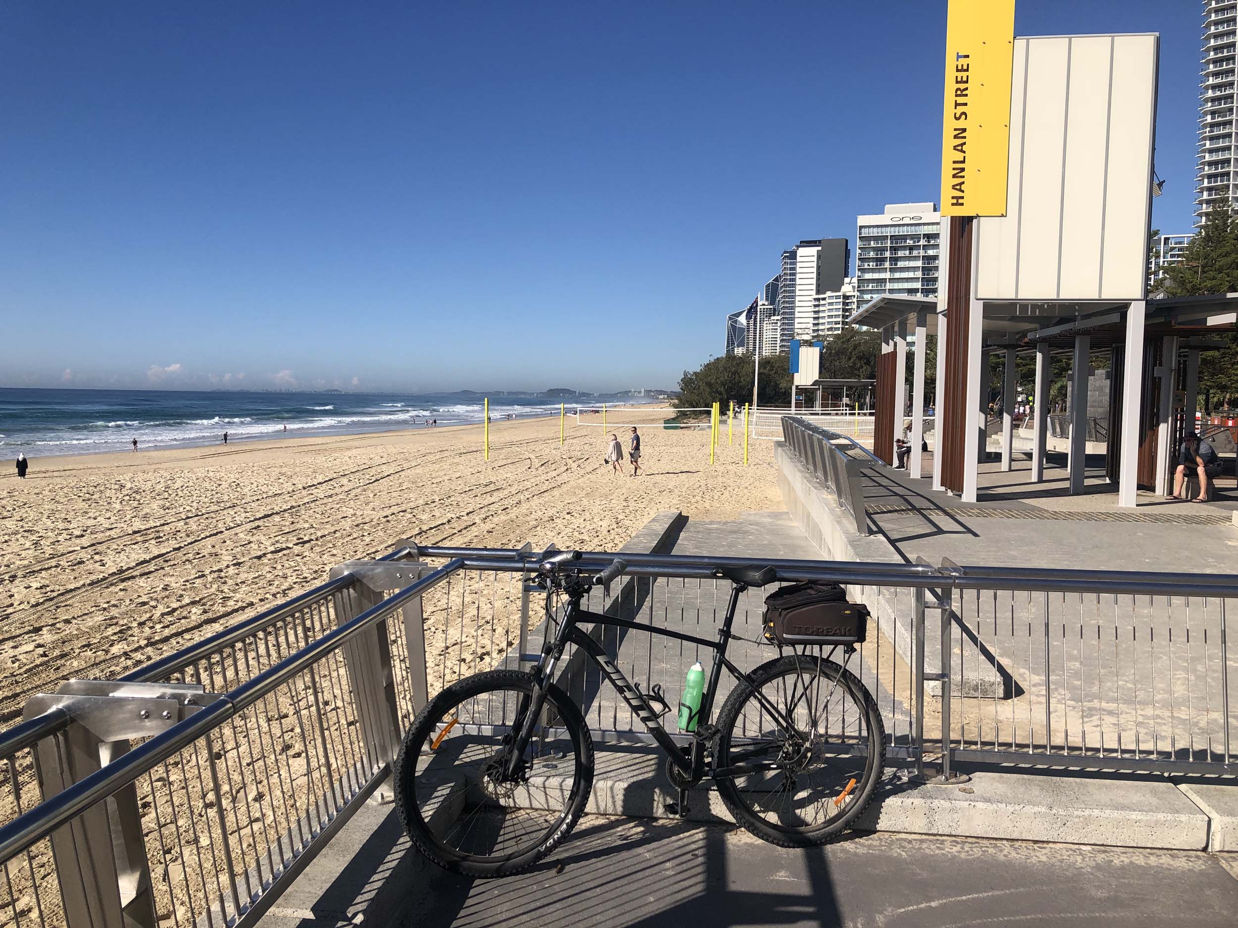 I left the Caravan park and headed along the shared path and sometimes along the quiet back streets parallel to the beach. I rode through the highrises being built in the BIG PADDOCK and spoke to a few locals.