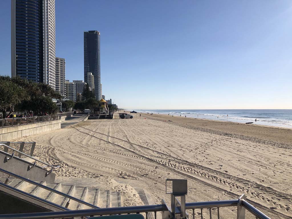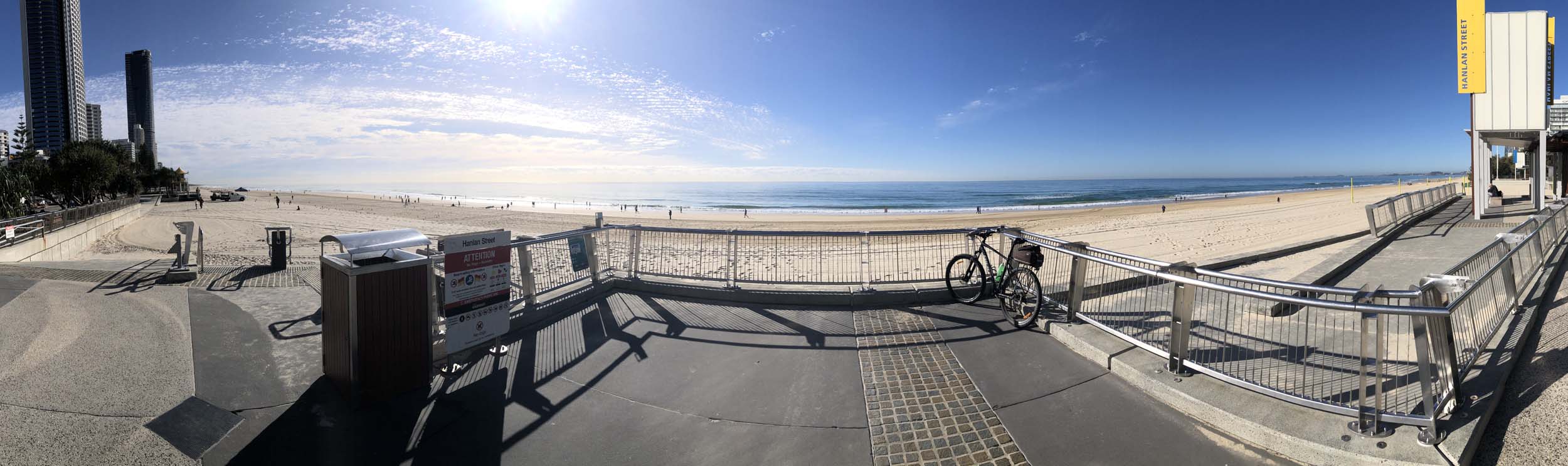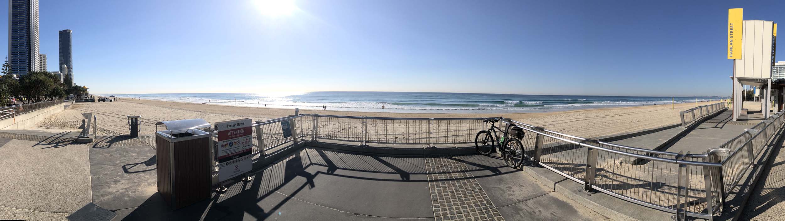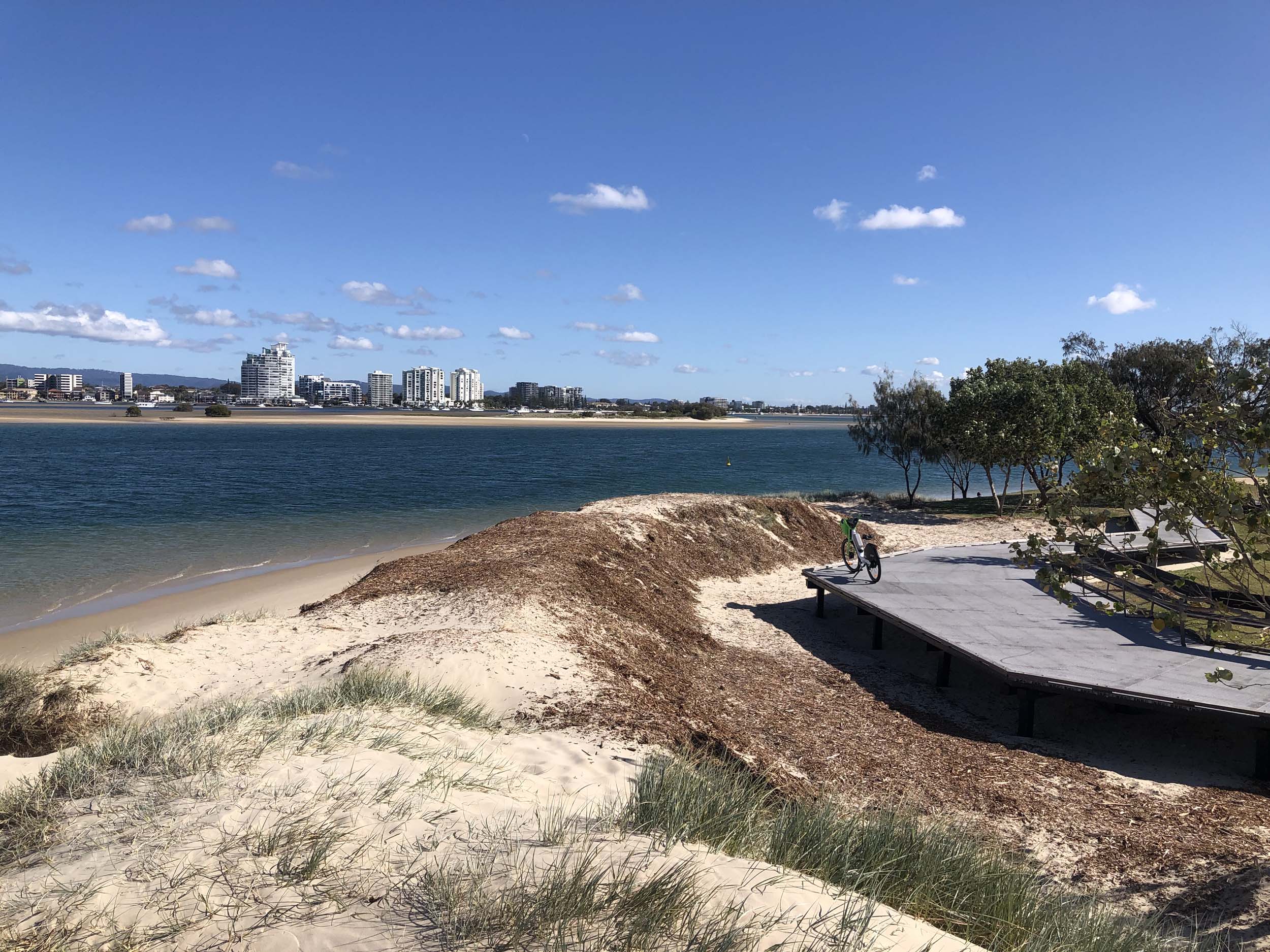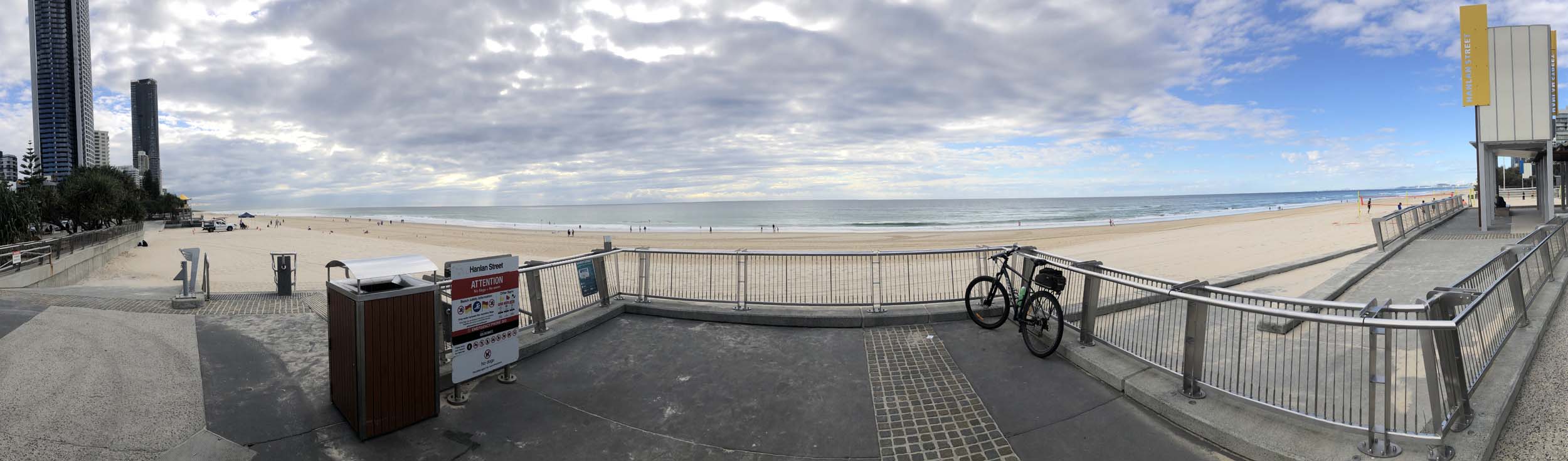 I left the Caravan park and headed along the shared path and sometimes along the quiet back streets parallel to the beach. I rode through the highrises being built in the BIG PADDOCK and spoke to a few locals.