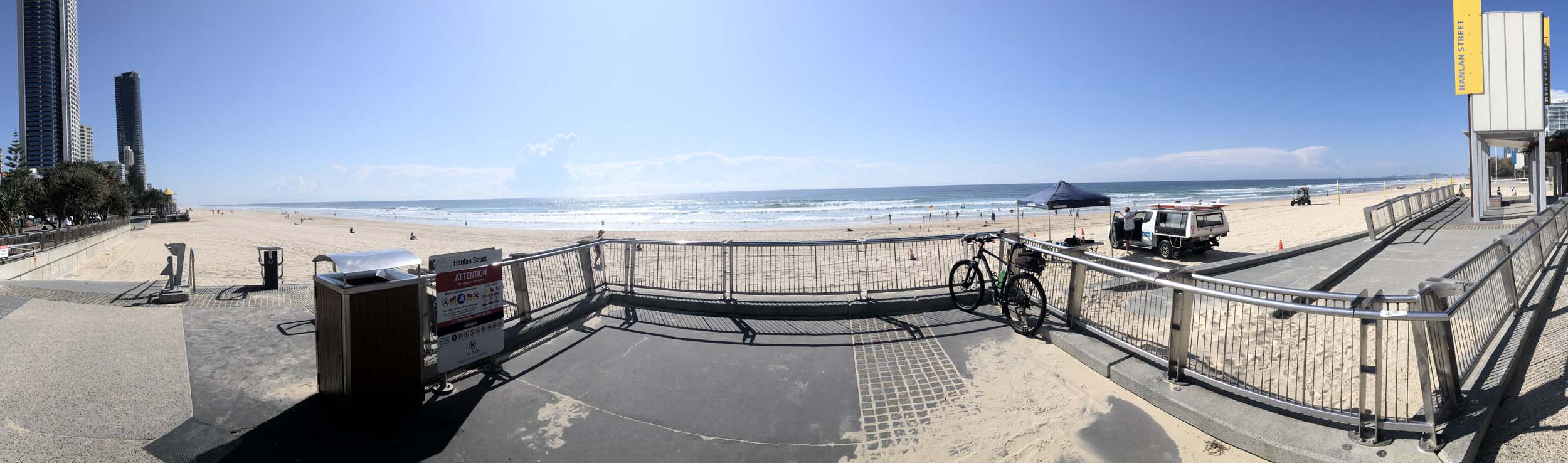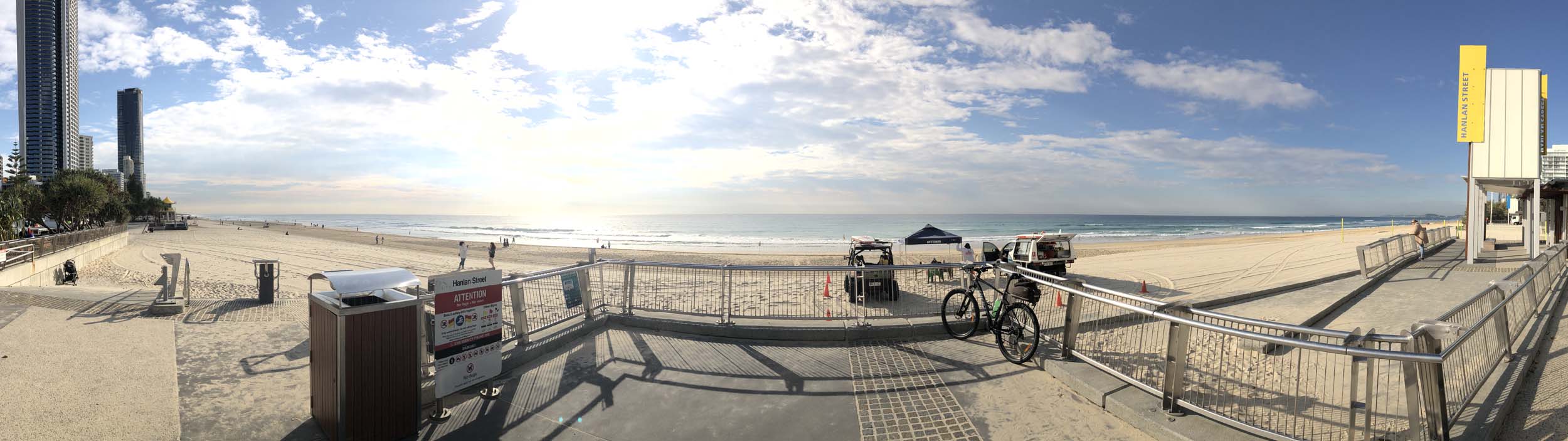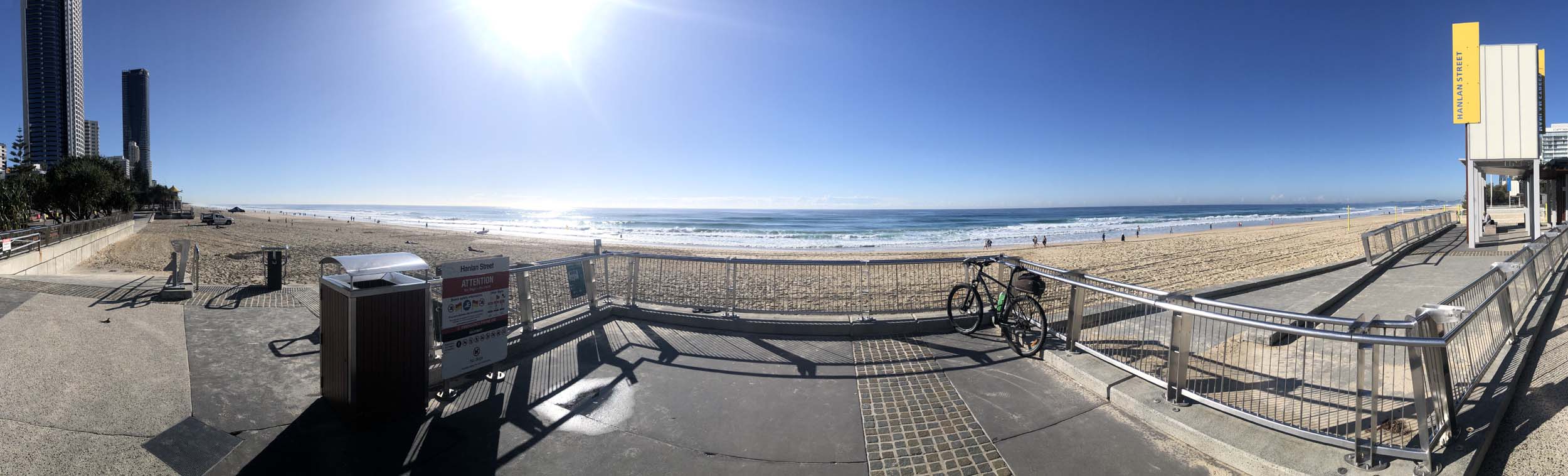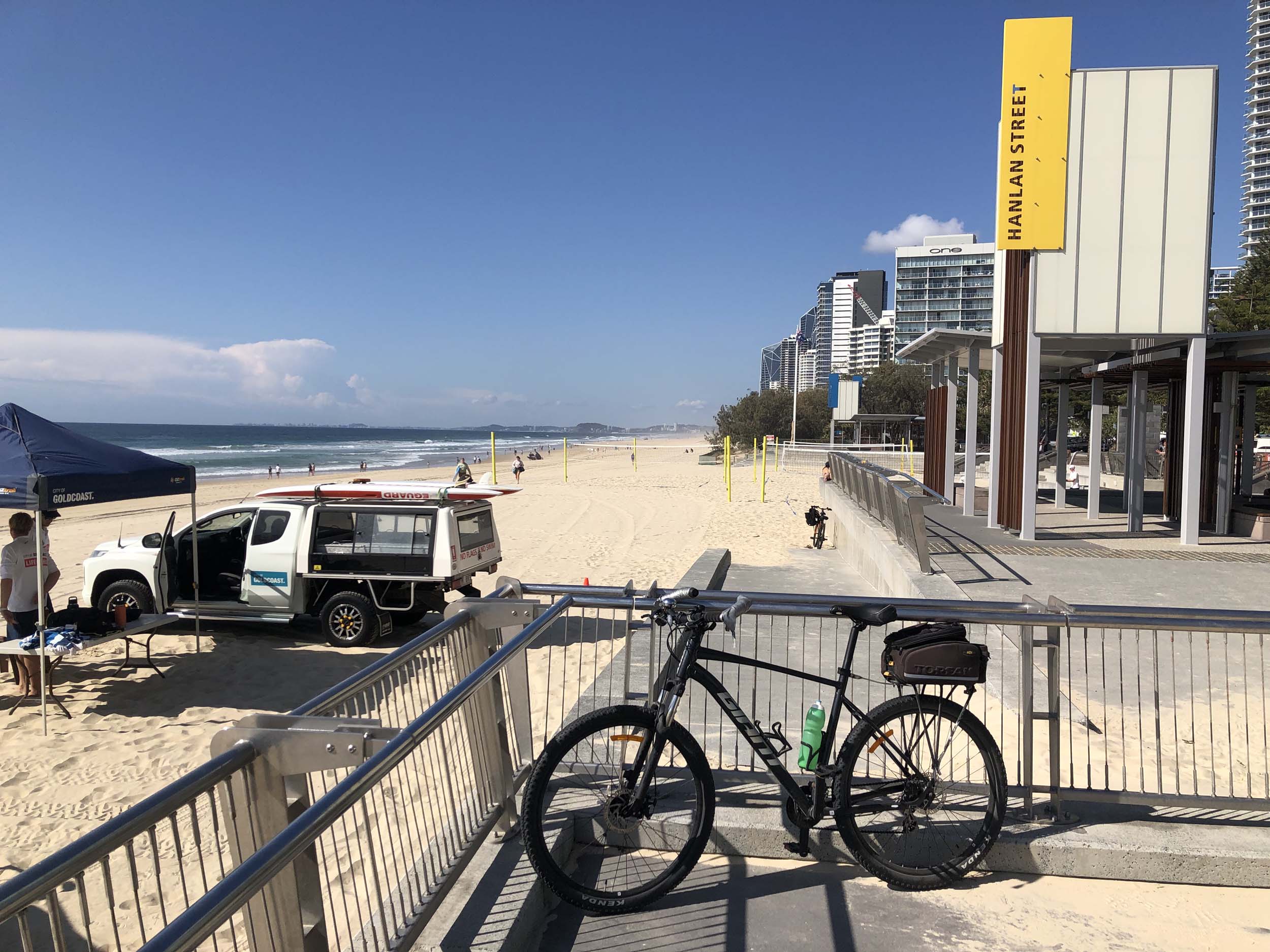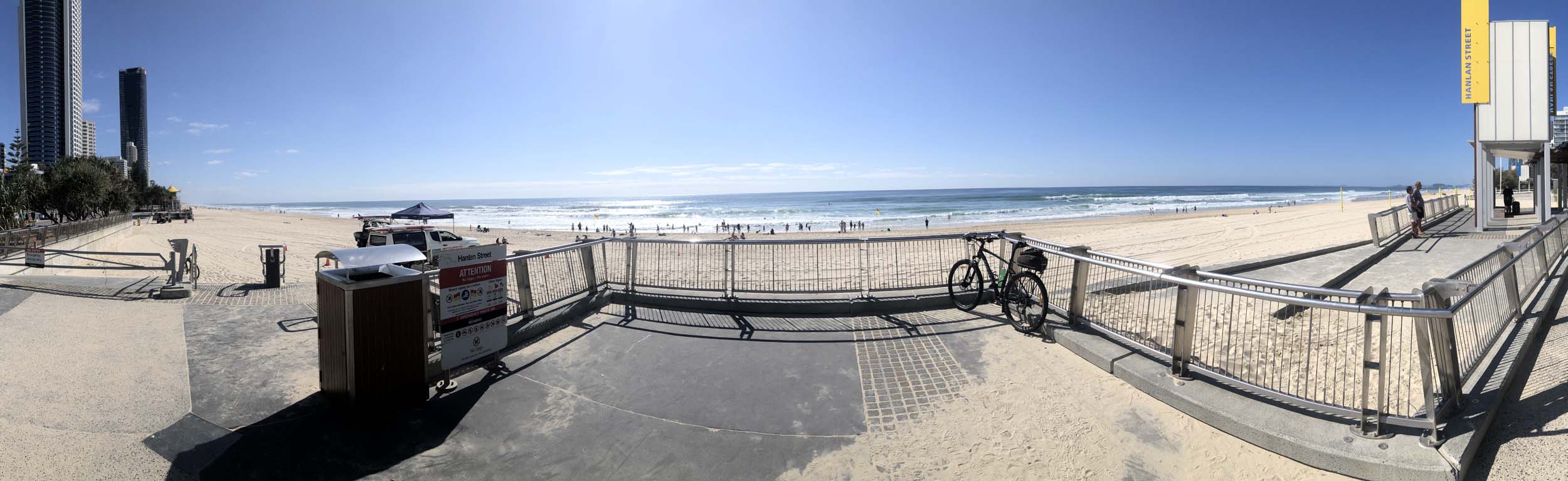 I left the Caravan park and headed along the shared path and sometimes along the quiet back streets parallel to the beach. I rode through the highrises being built in the BIG PADDOCK and spoke to a few locals.