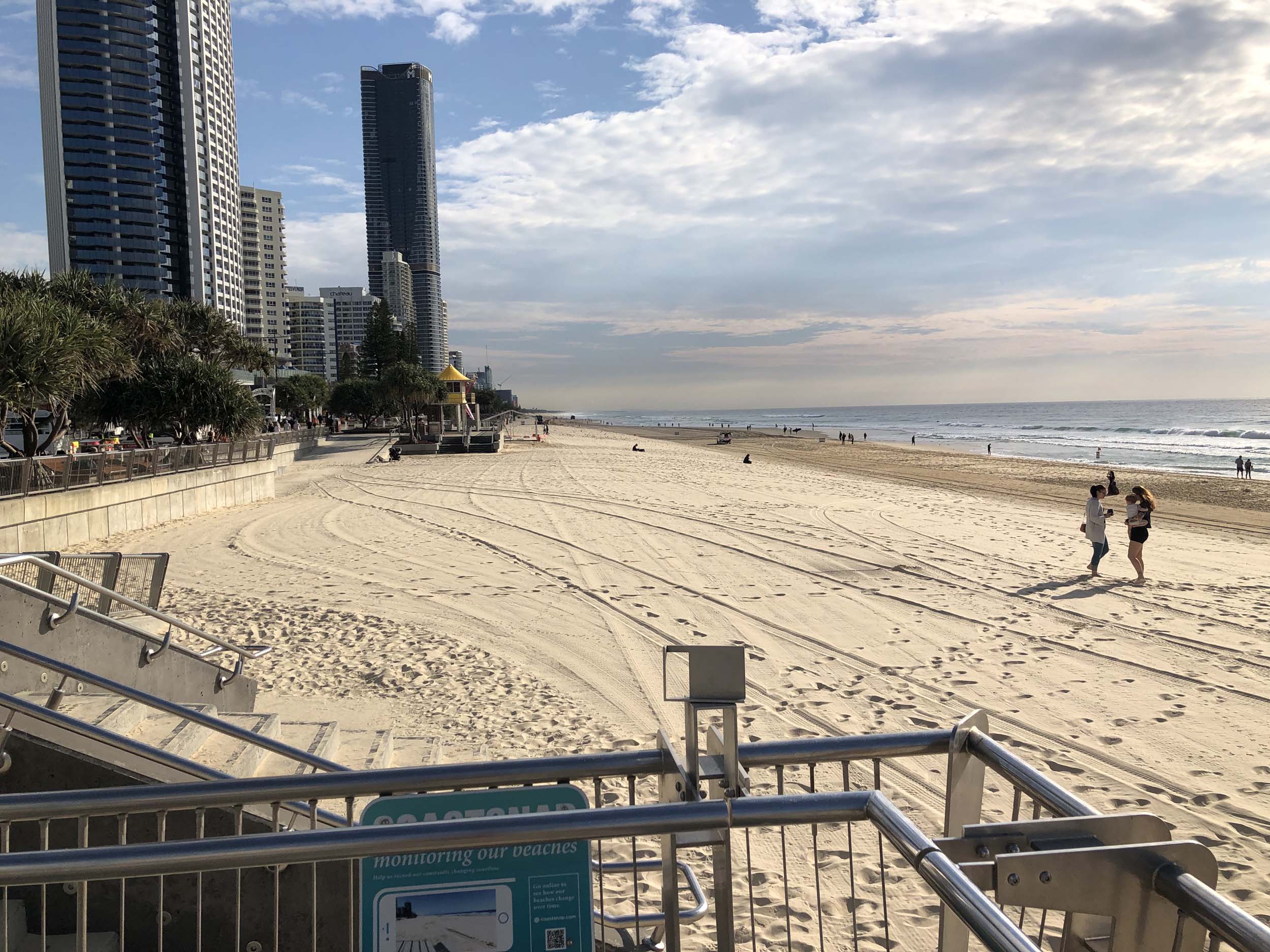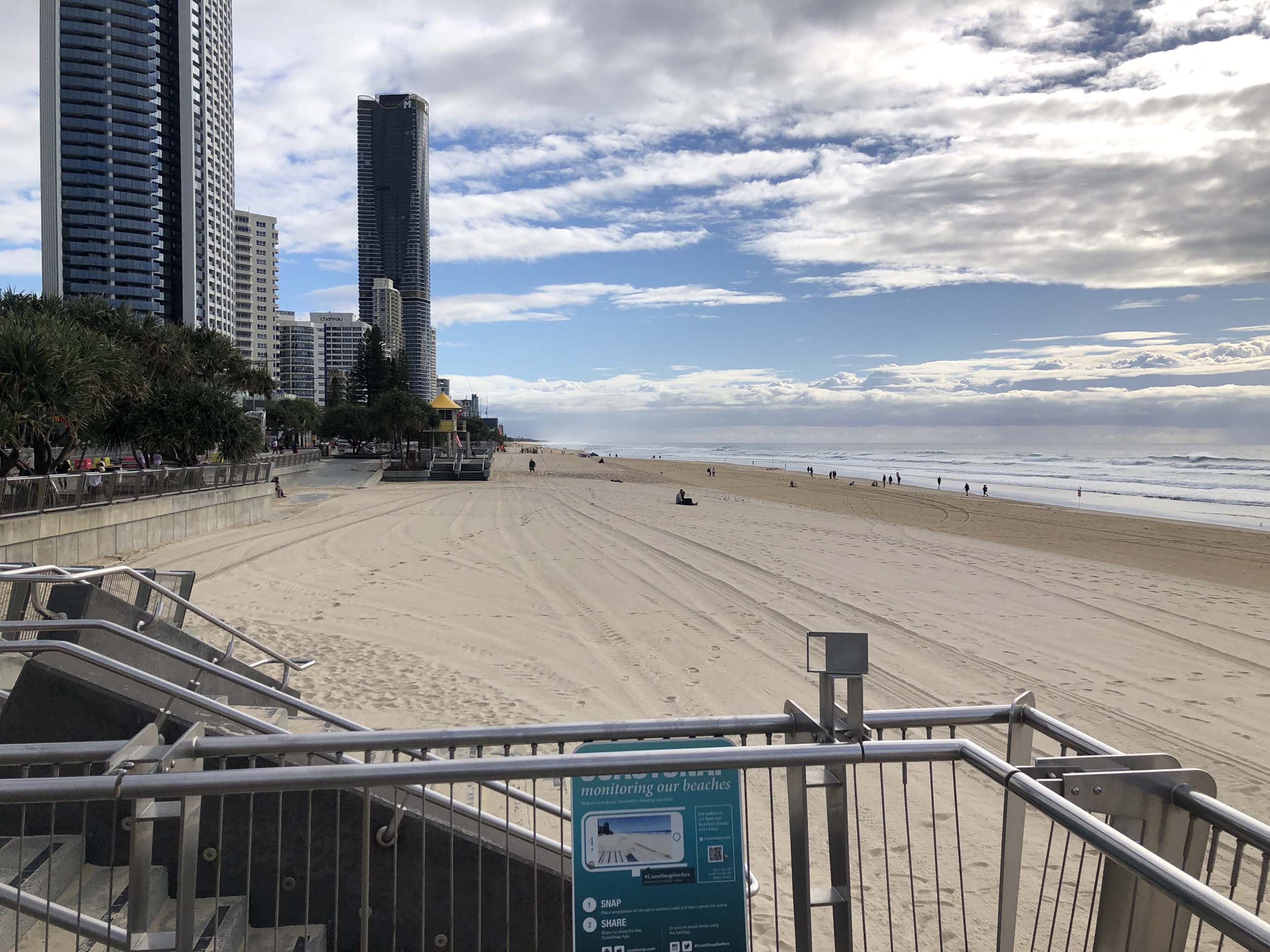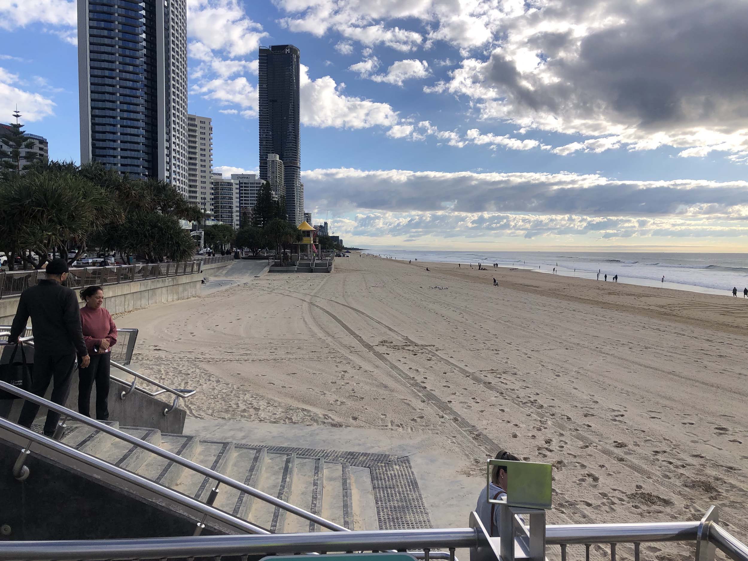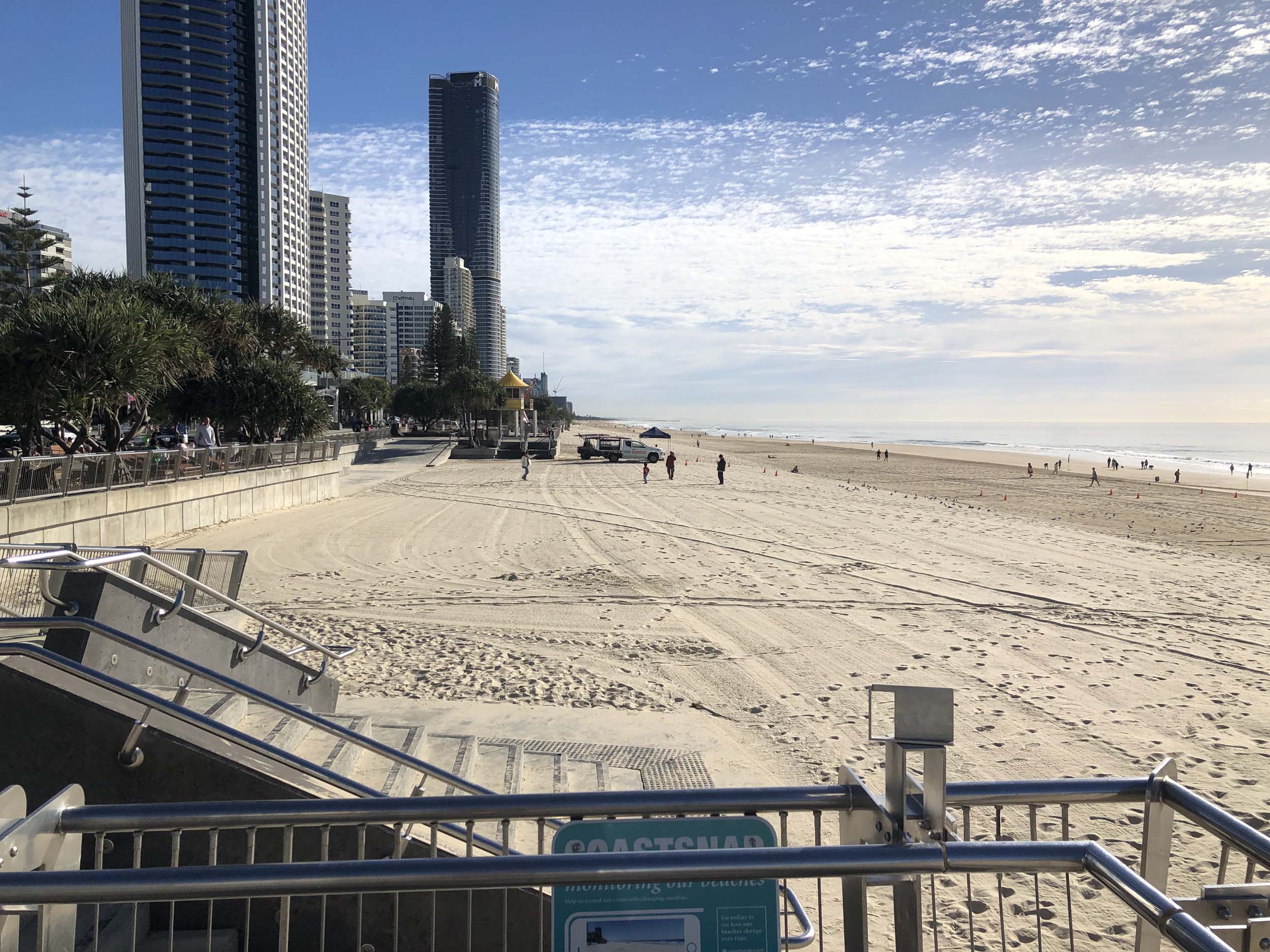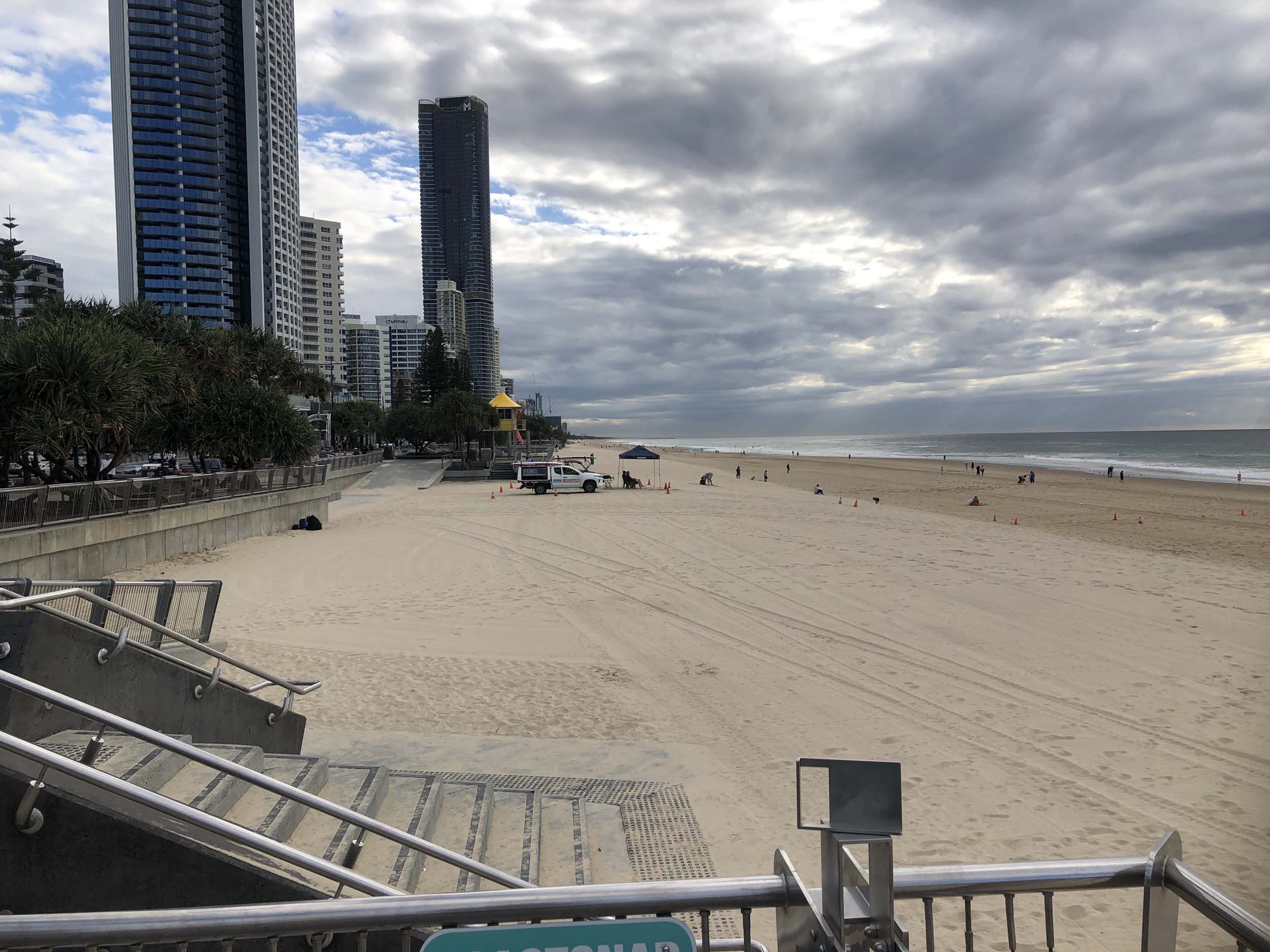 As usual, I rode Northward, to my Lands End turnaround point. Continued through the Broadwater Parklands to MacIntosh Is, did a lap. Over the Bridge at Narrowneck then along the Shared Path, to Surfers, to take my weather photos. I rode past the French women's soccer team who were out walking.