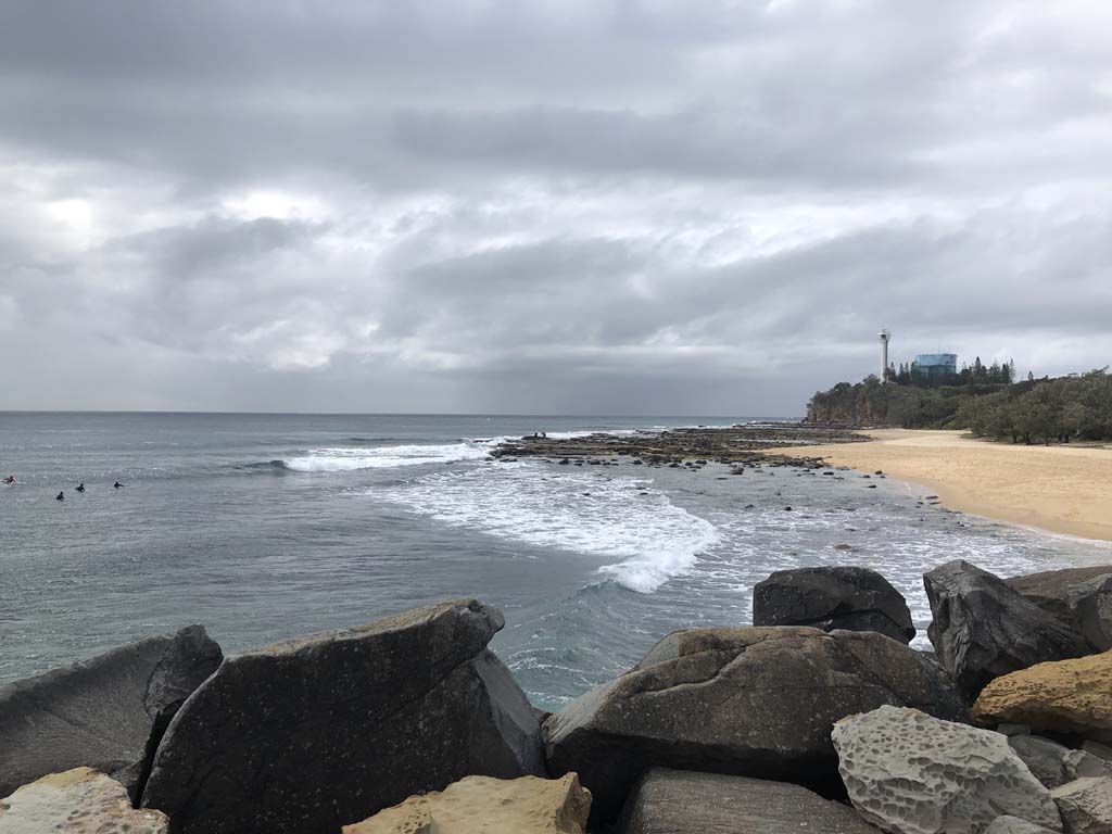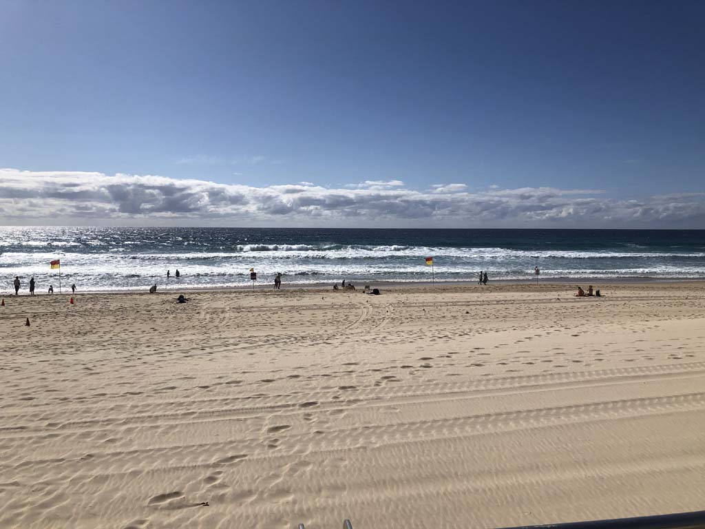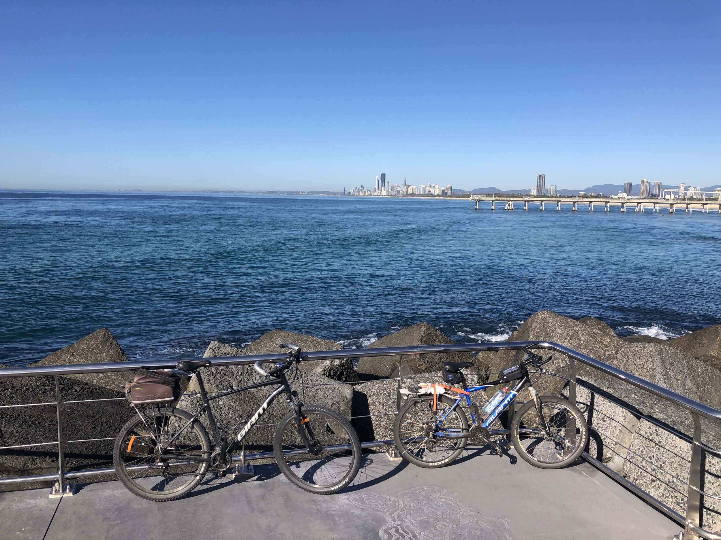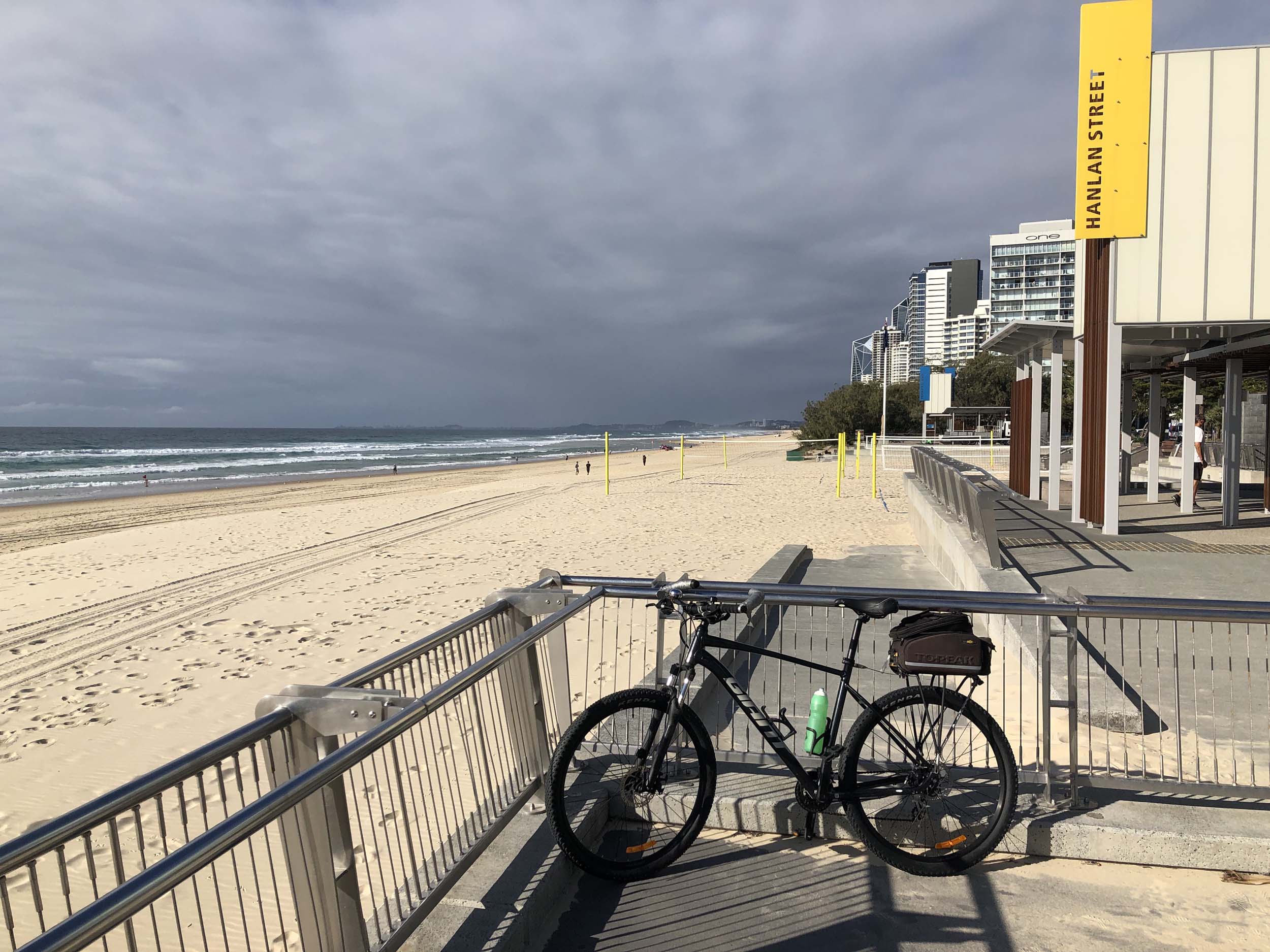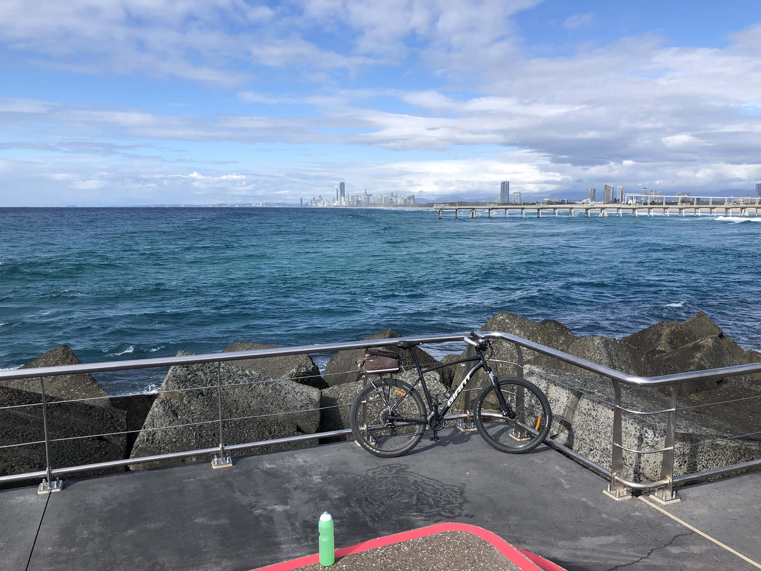 Home to Turnaround Pt down to Surfers via GC600 Park to Surfers to The Spit (both ends - twice) then back through GC600 Park back to Cafe Rockpool and finally back Home about 50+kms.
