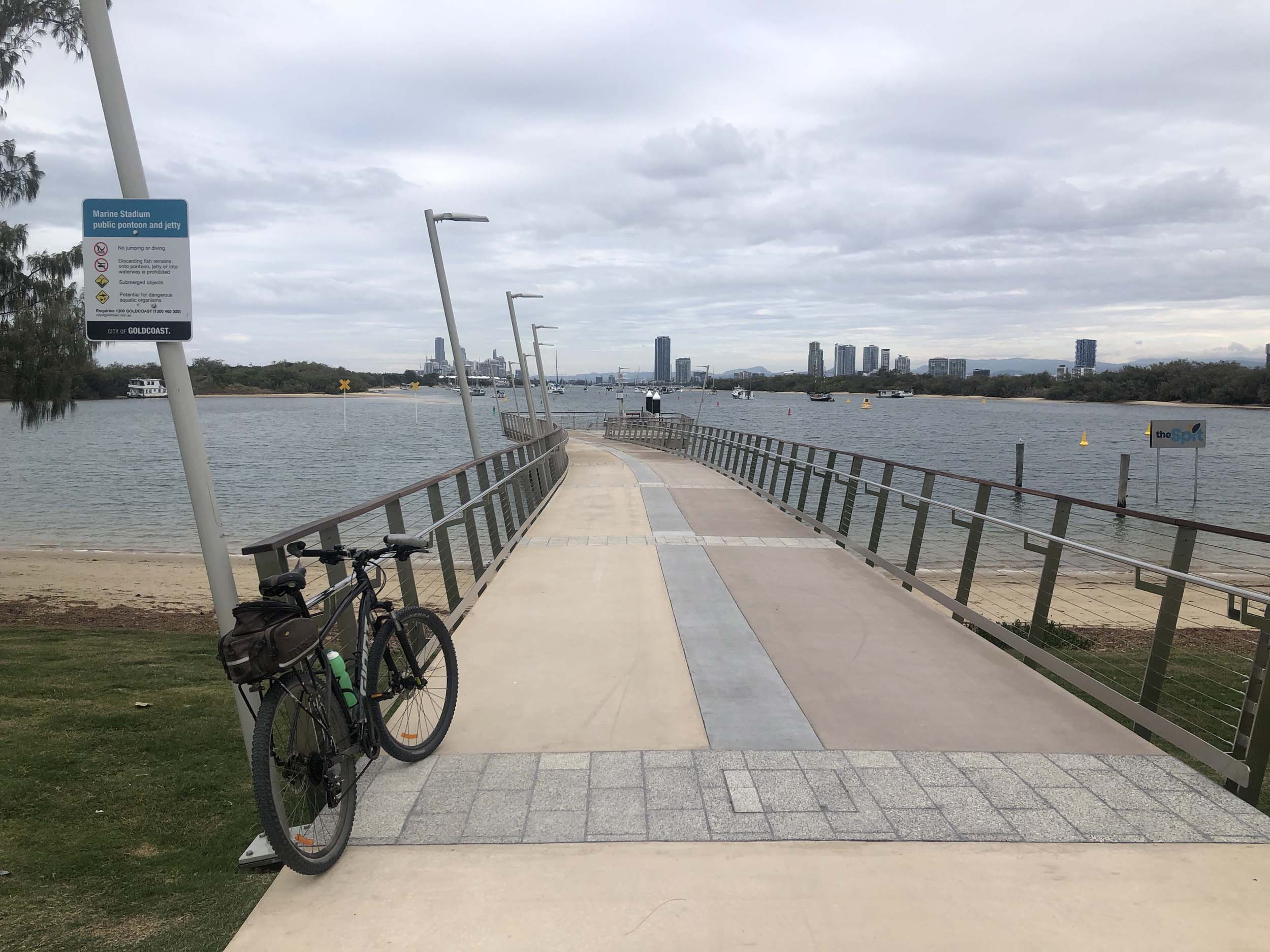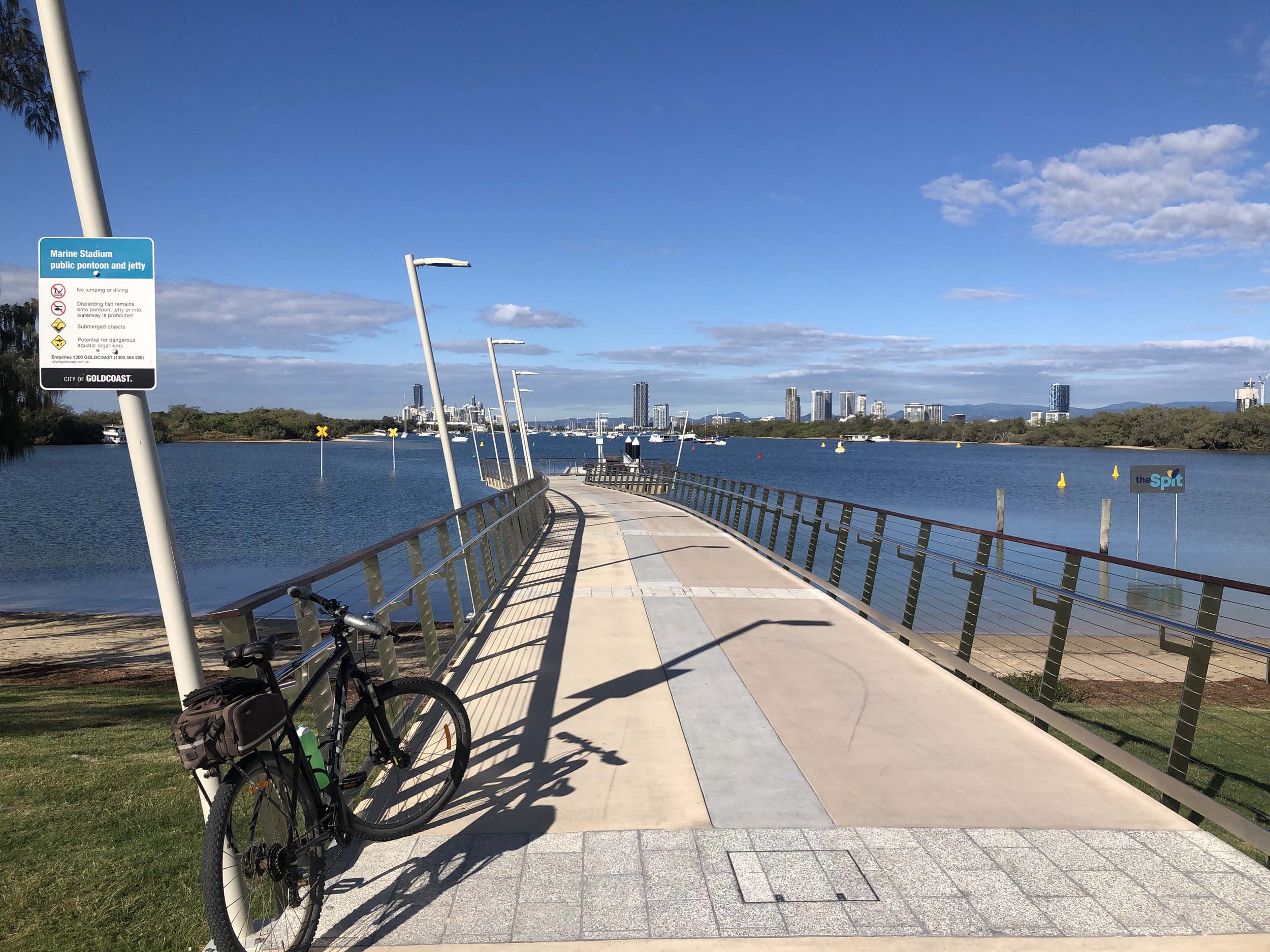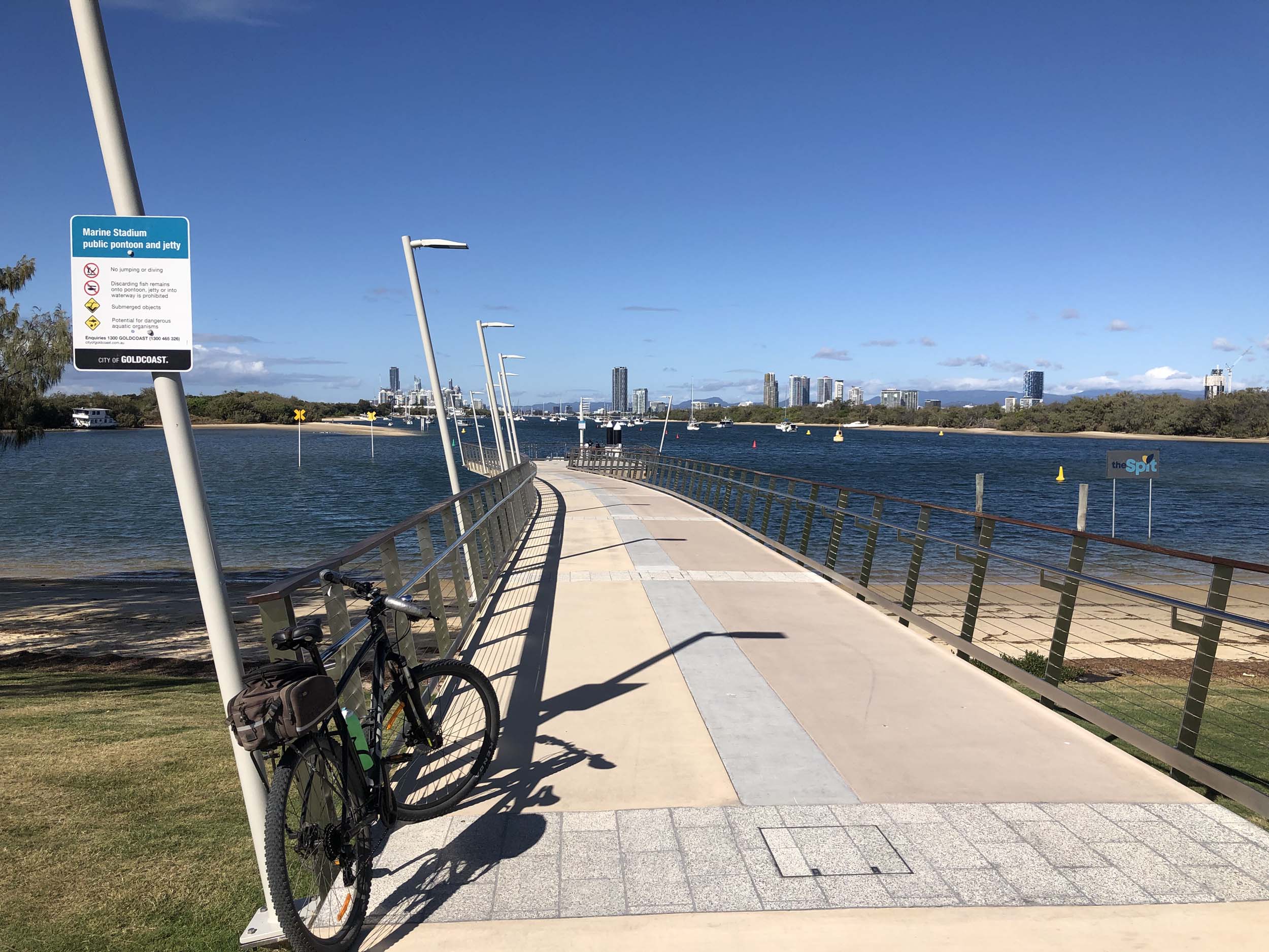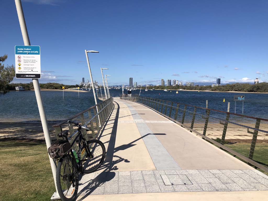 I left The Spit, and continued along the Shared Path that runs beside Seaworld Drive, rode through Muriel Henchman park, did a lap of the Seaworld carpark, then rode around Marina Mirage, past Helitours which is on the jetty. Feeling a bit knackered, I headed straight home.