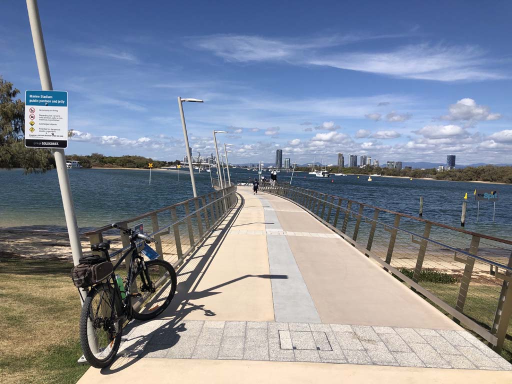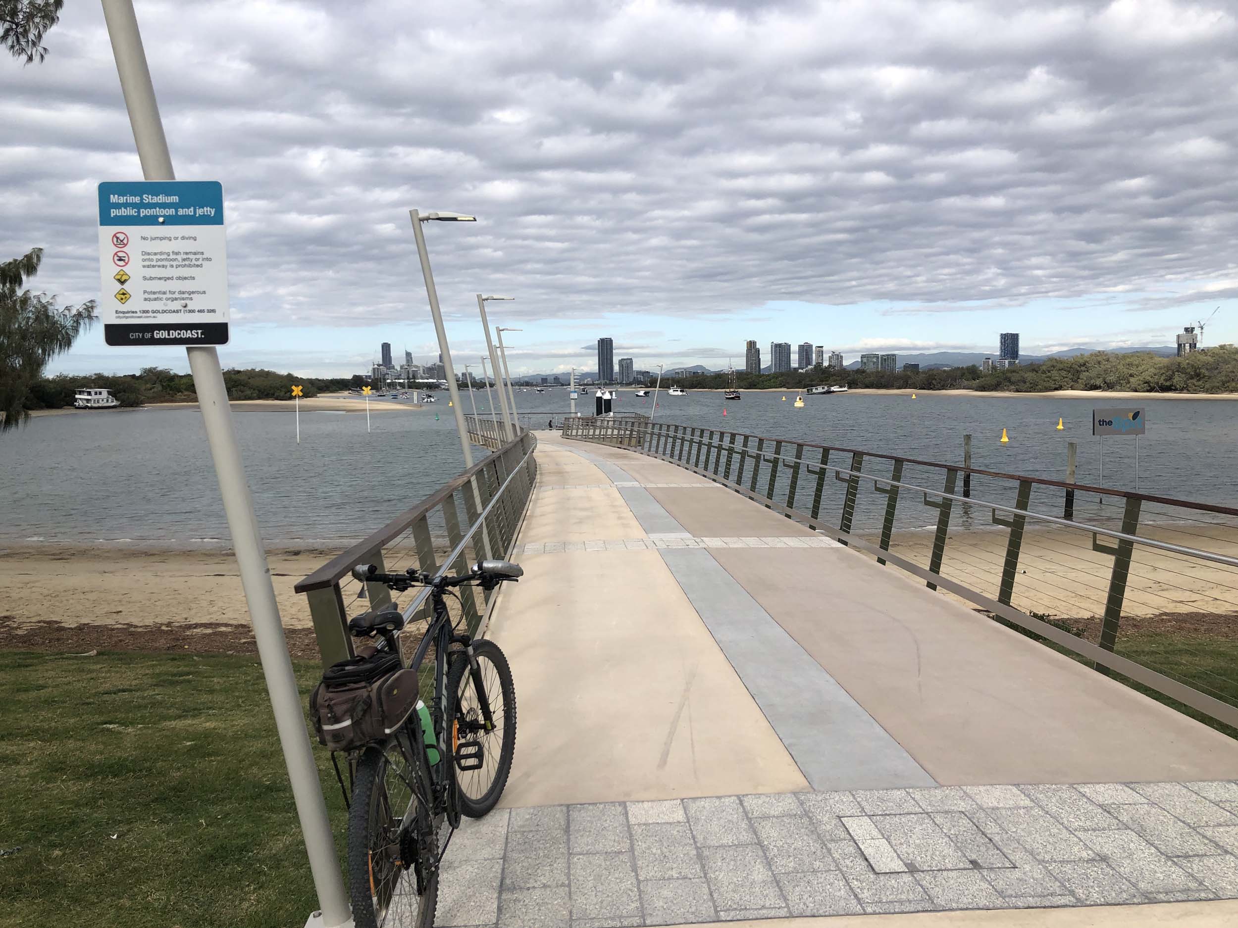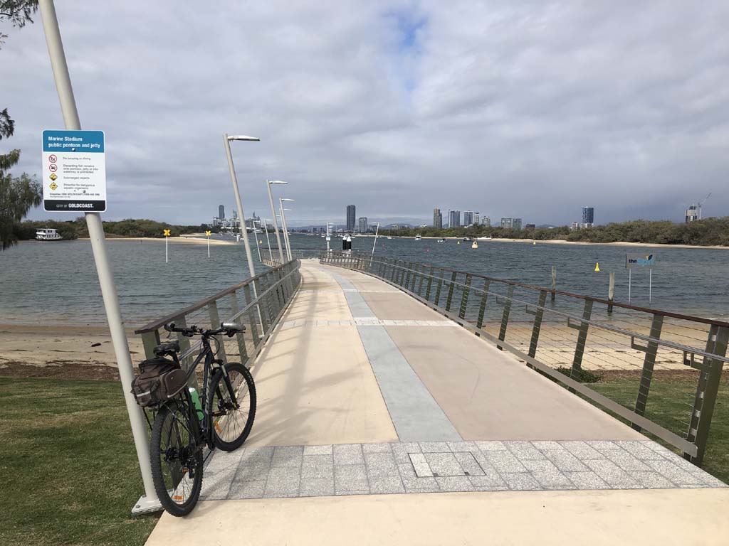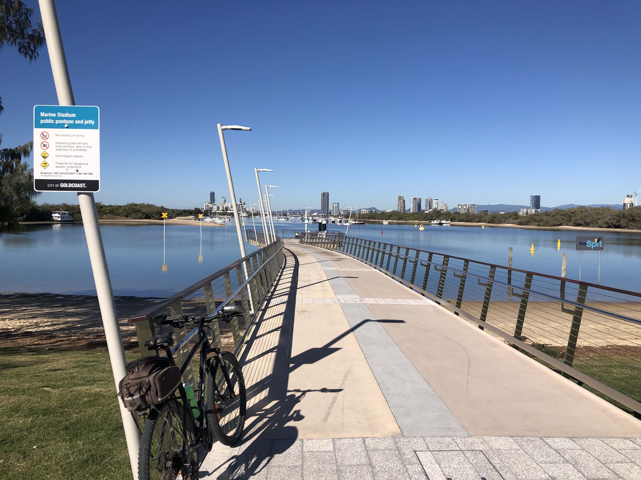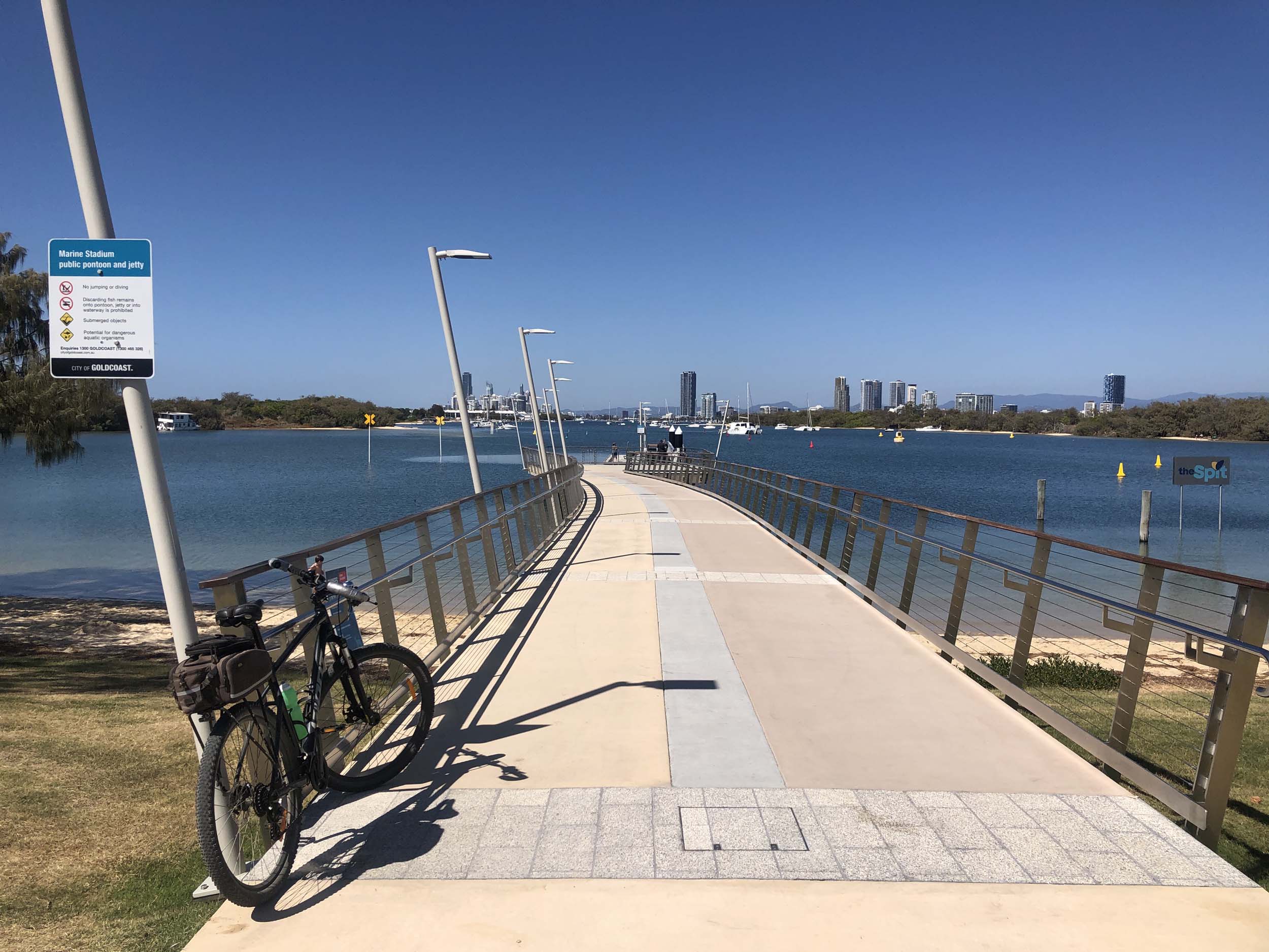 I left The Spit, and continued along the Shared Path that runs beside Seaworld Drive, rode through Muriel Henchman park, did a lap of the Seaworld carpark, then rode around Marina Mirage, past Helitours which is on the jetty. Feeling a bit knackered, I headed straight home.