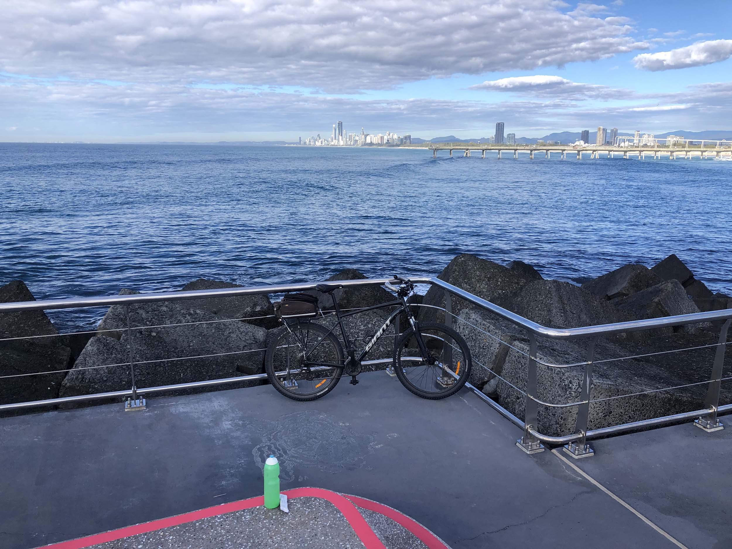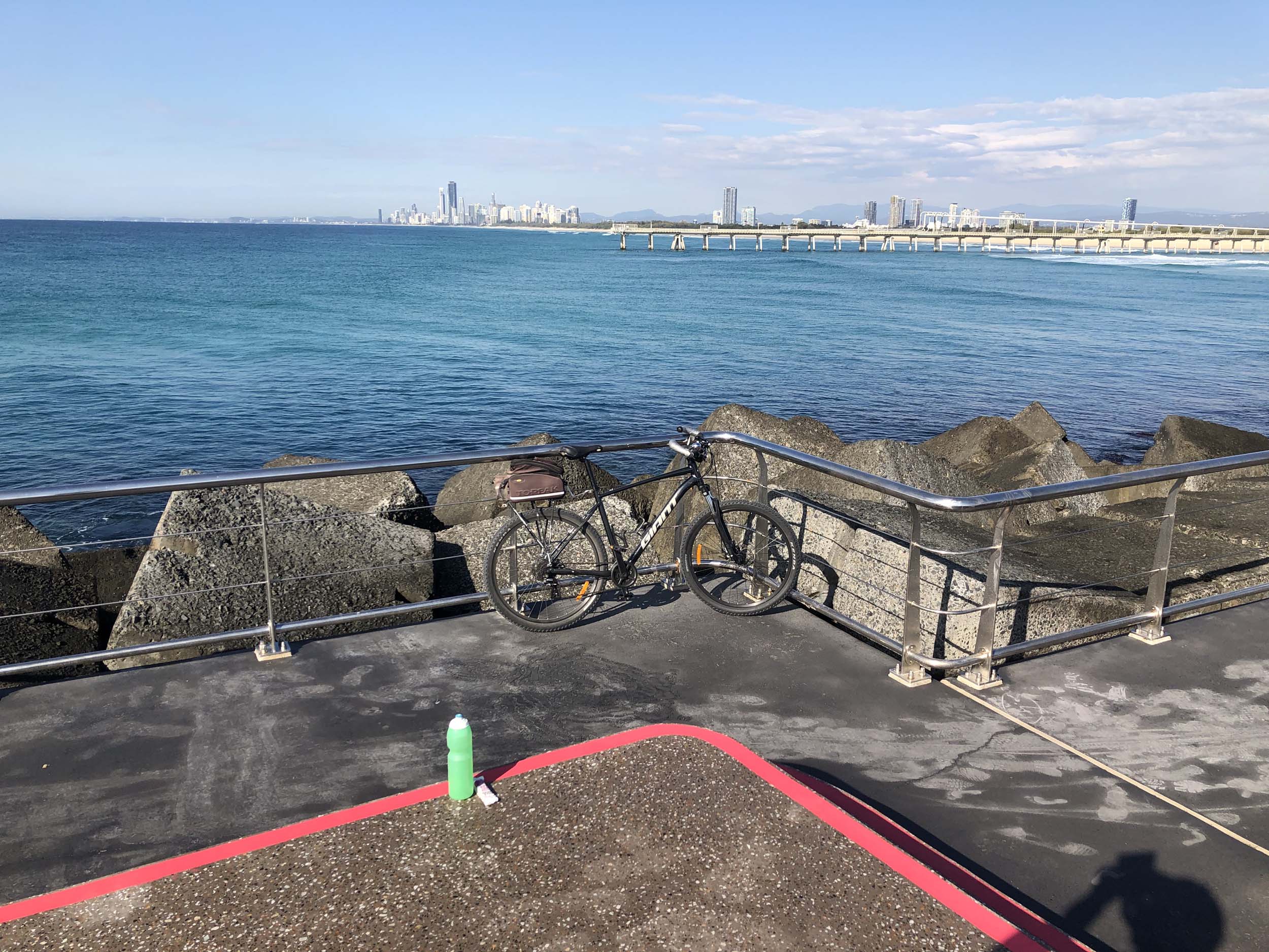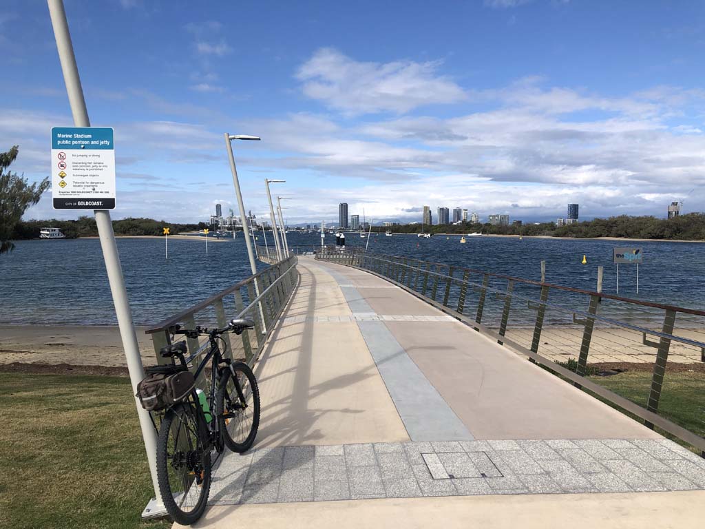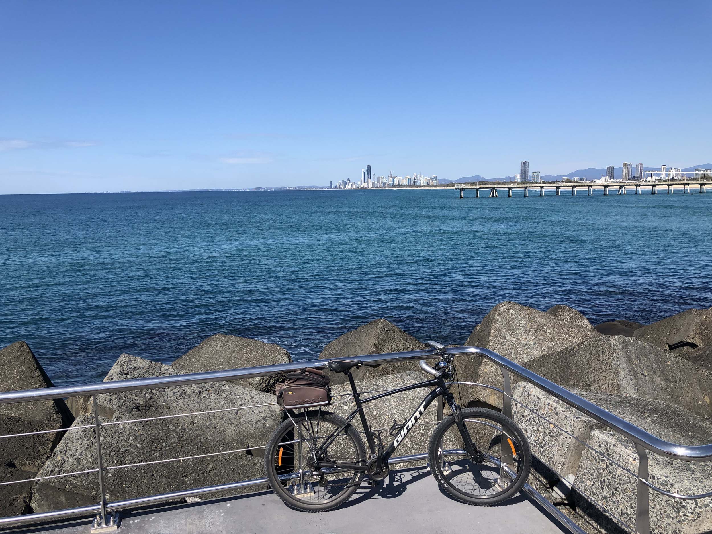 I left The Spit, and continued along the Shared Path that runs beside Seaworld Drive, rode through Muriel Henchman park, did a lap of the Seaworld carpark, then rode around Marina Mirage, past Helitours which is on the jetty. Feeling a bit knackered, I headed straight home.