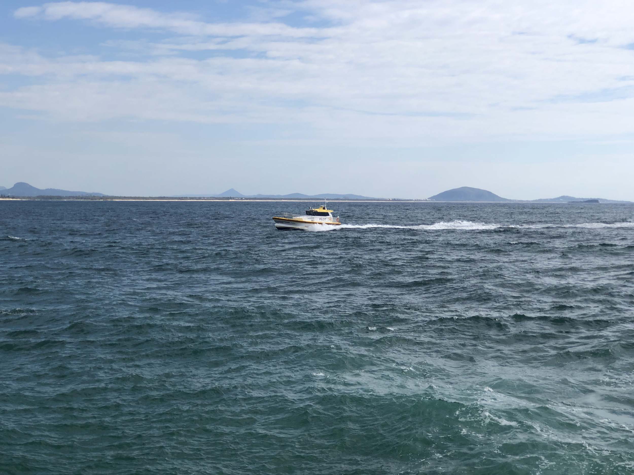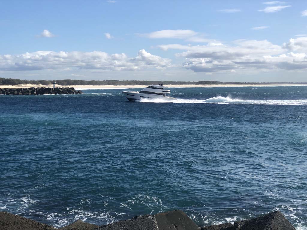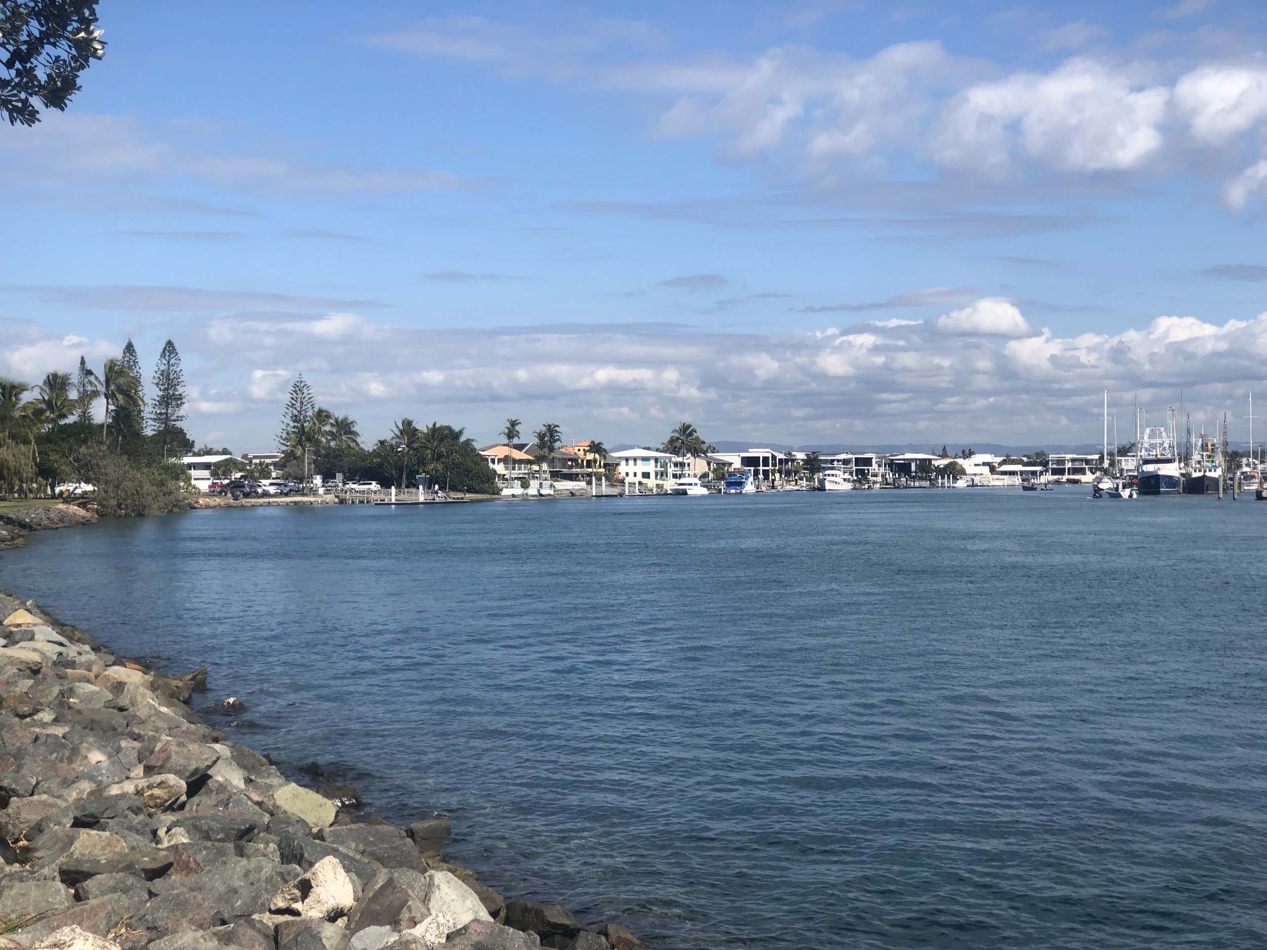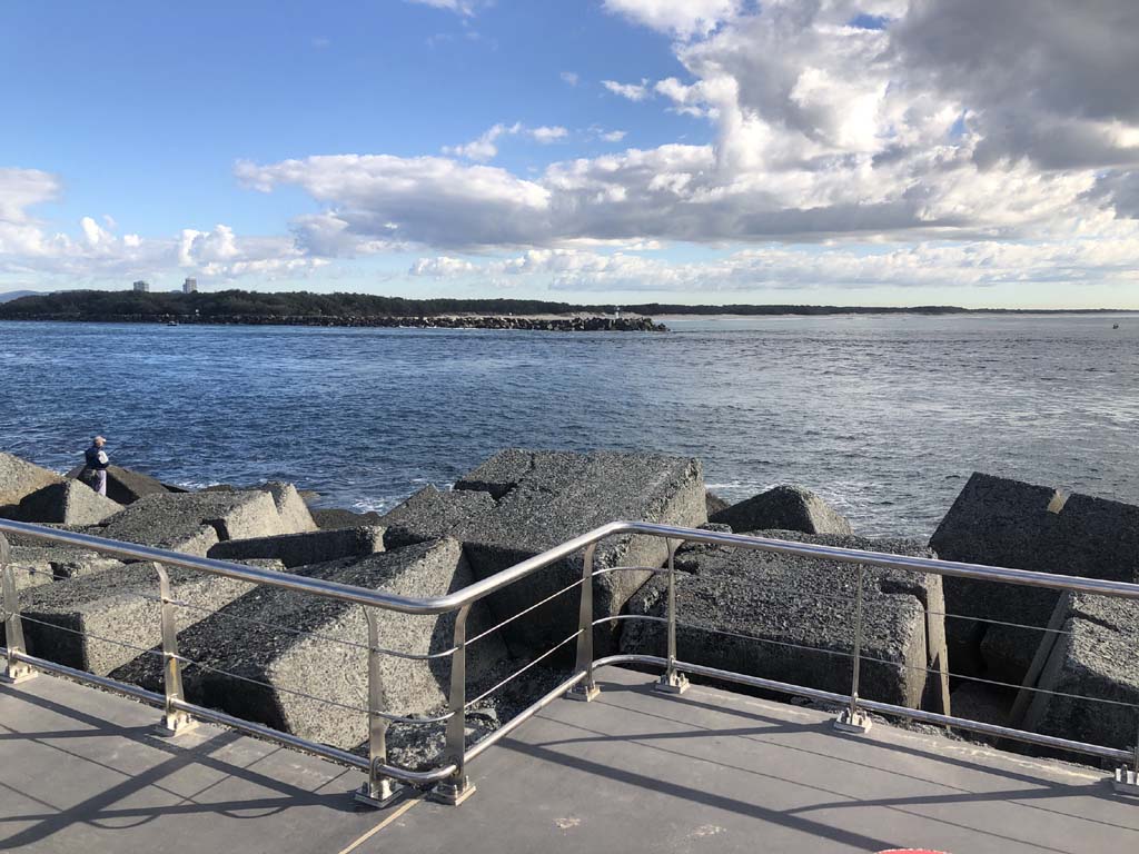 I left home at 7:49am, after going for a coffee and some shopping at Coles Lab Park. The breeze was blowing from the South. The Broadwater had a chop.
