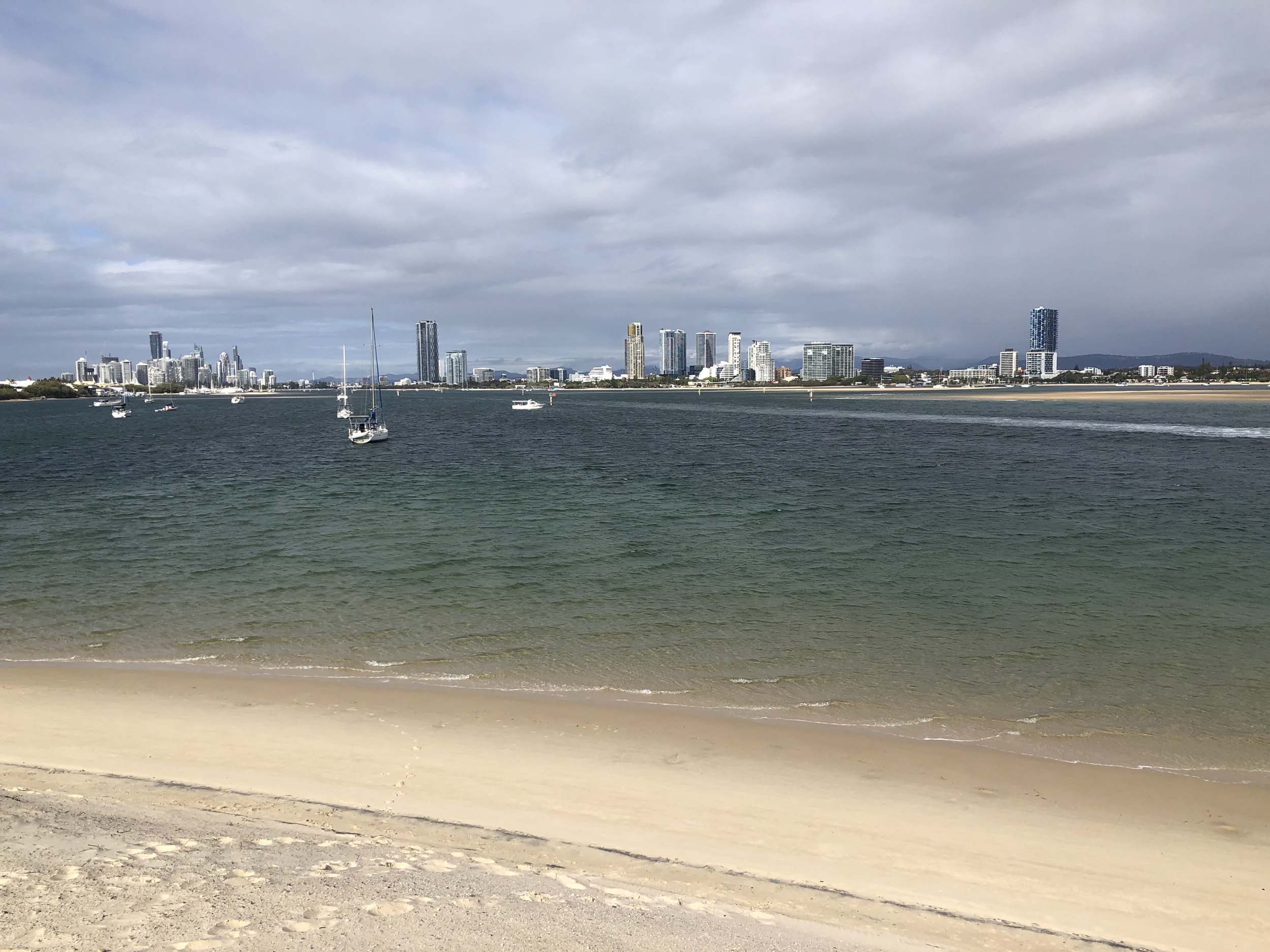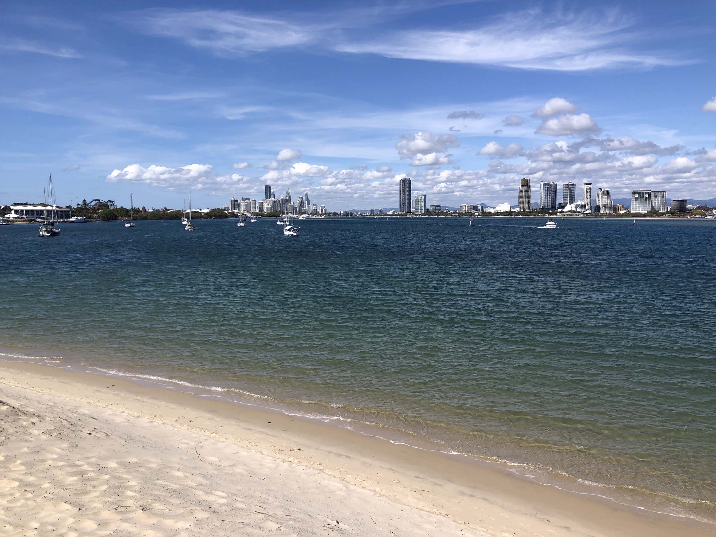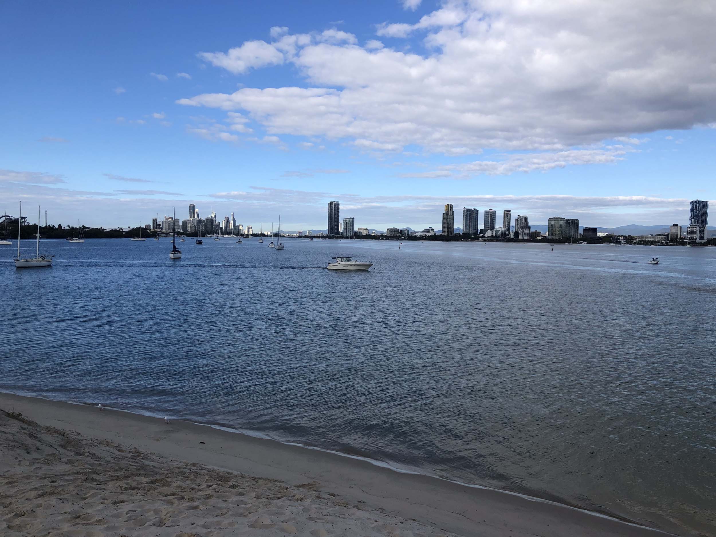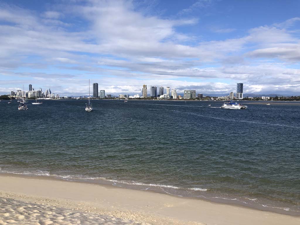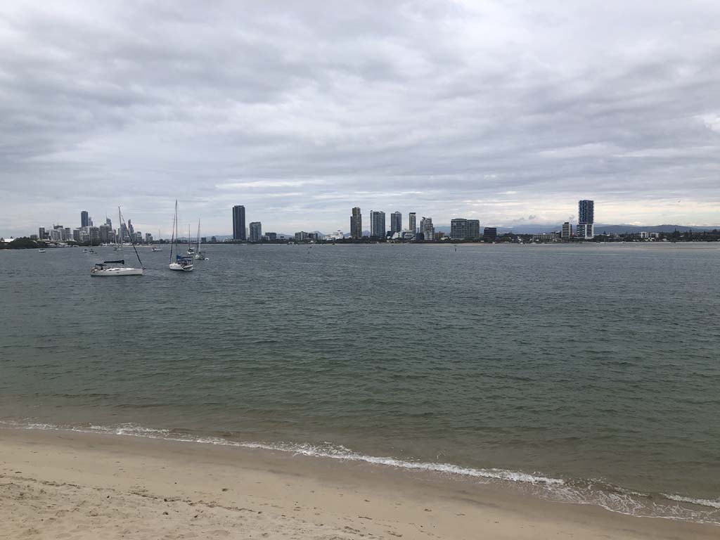 I left home at 7:58am, after going for a coffee and some shopping at Coles Lab Park. The breeze was blowing from the South. The Broadwater had a chop.