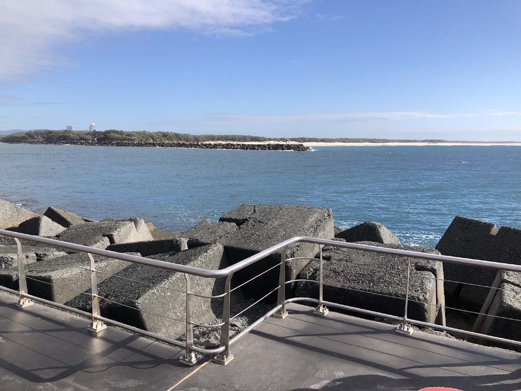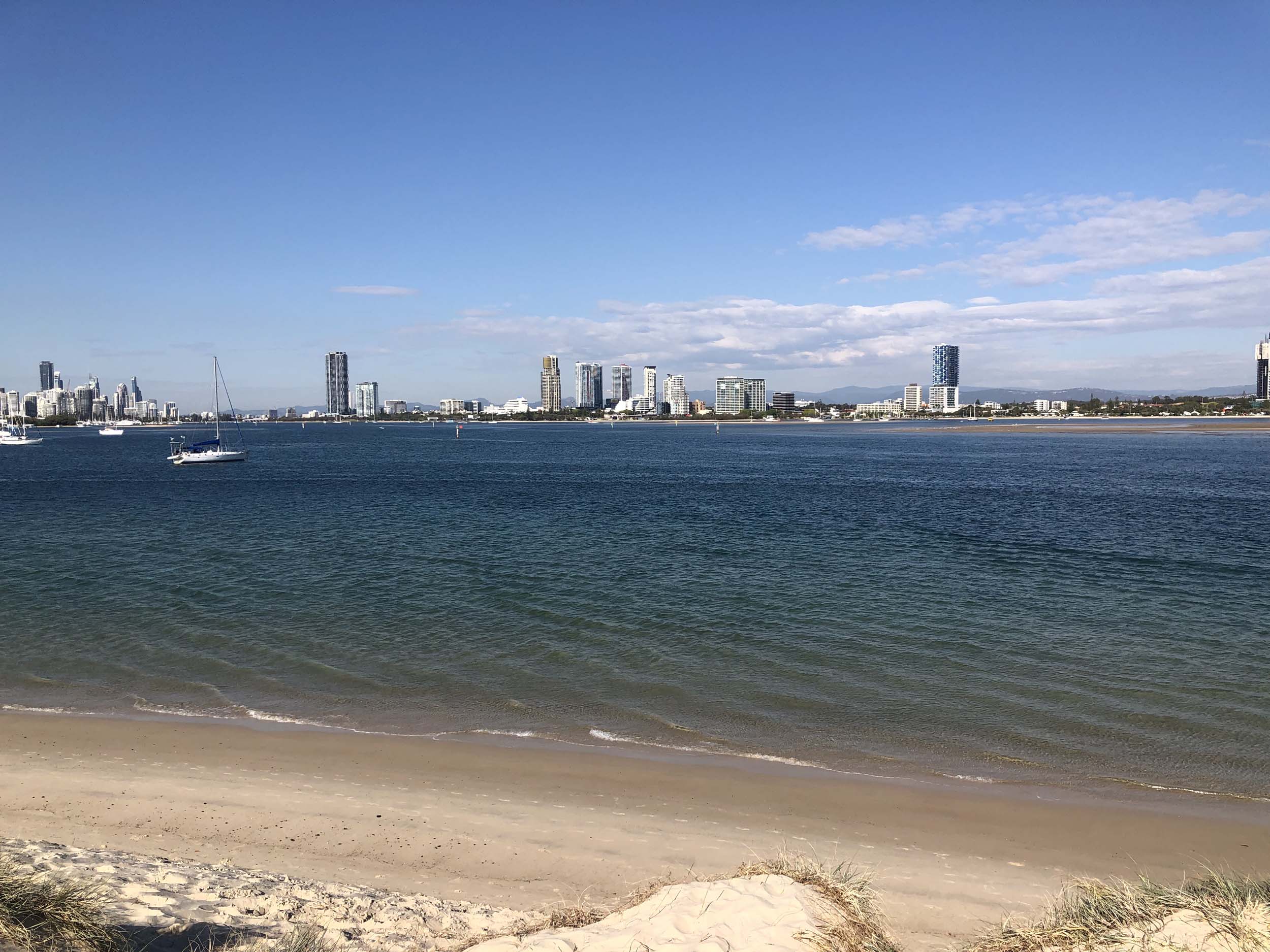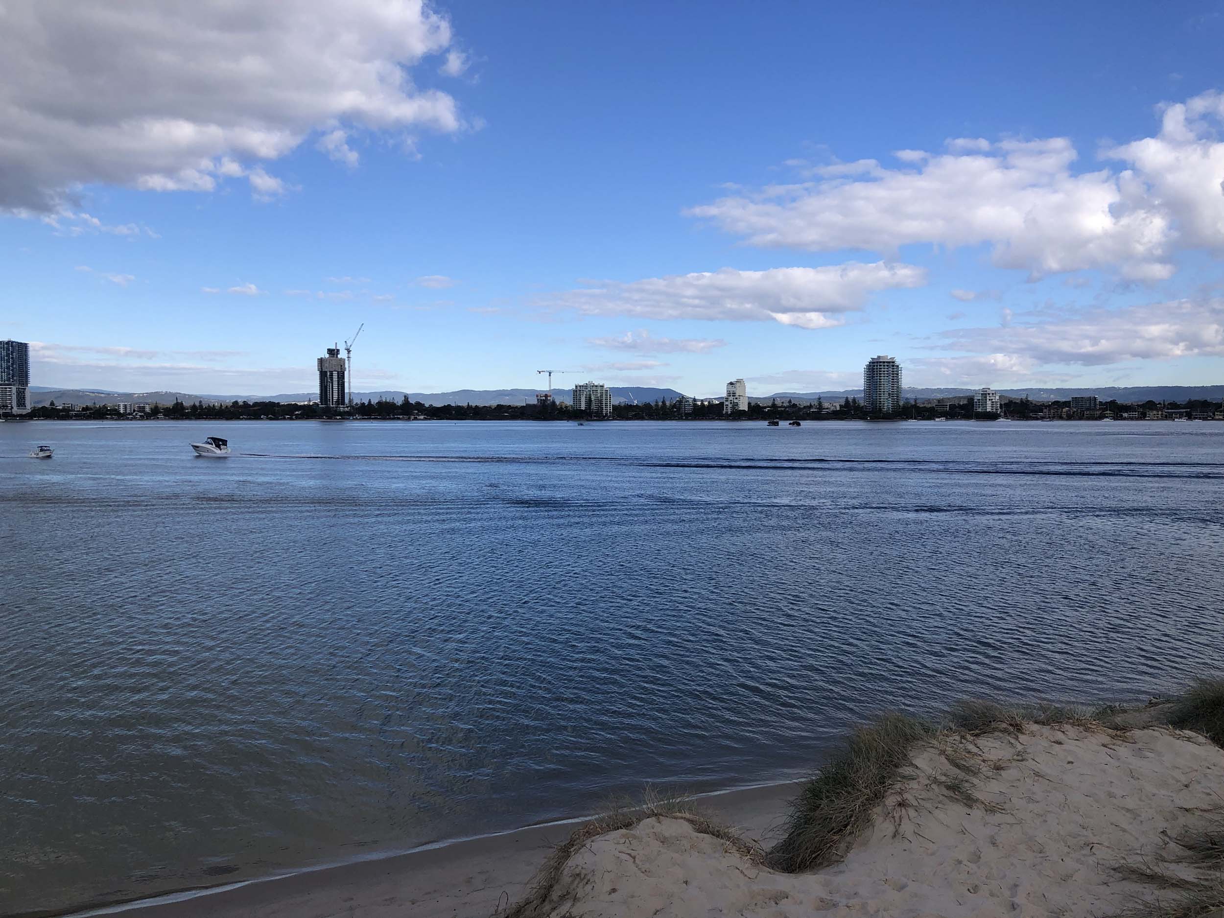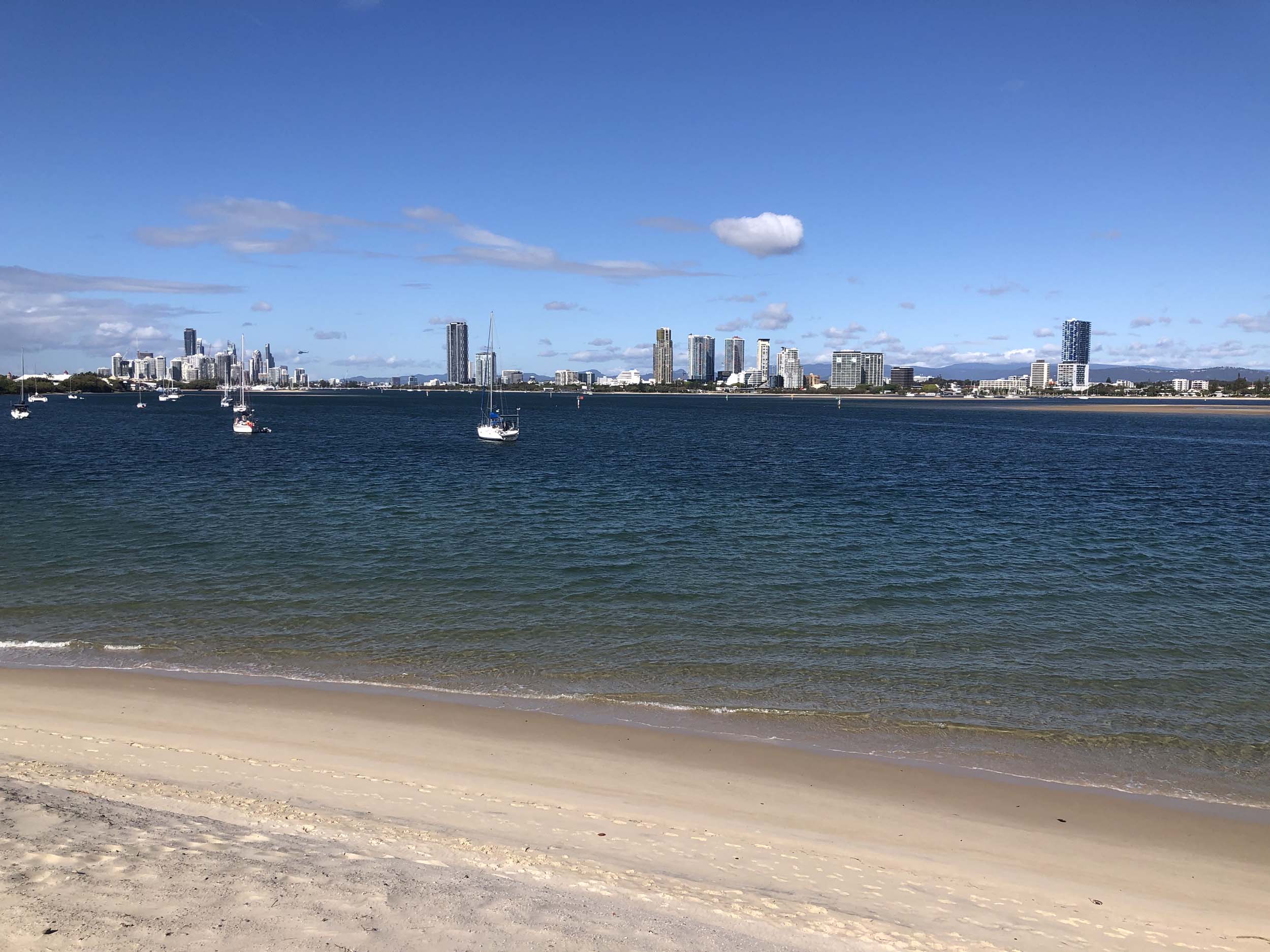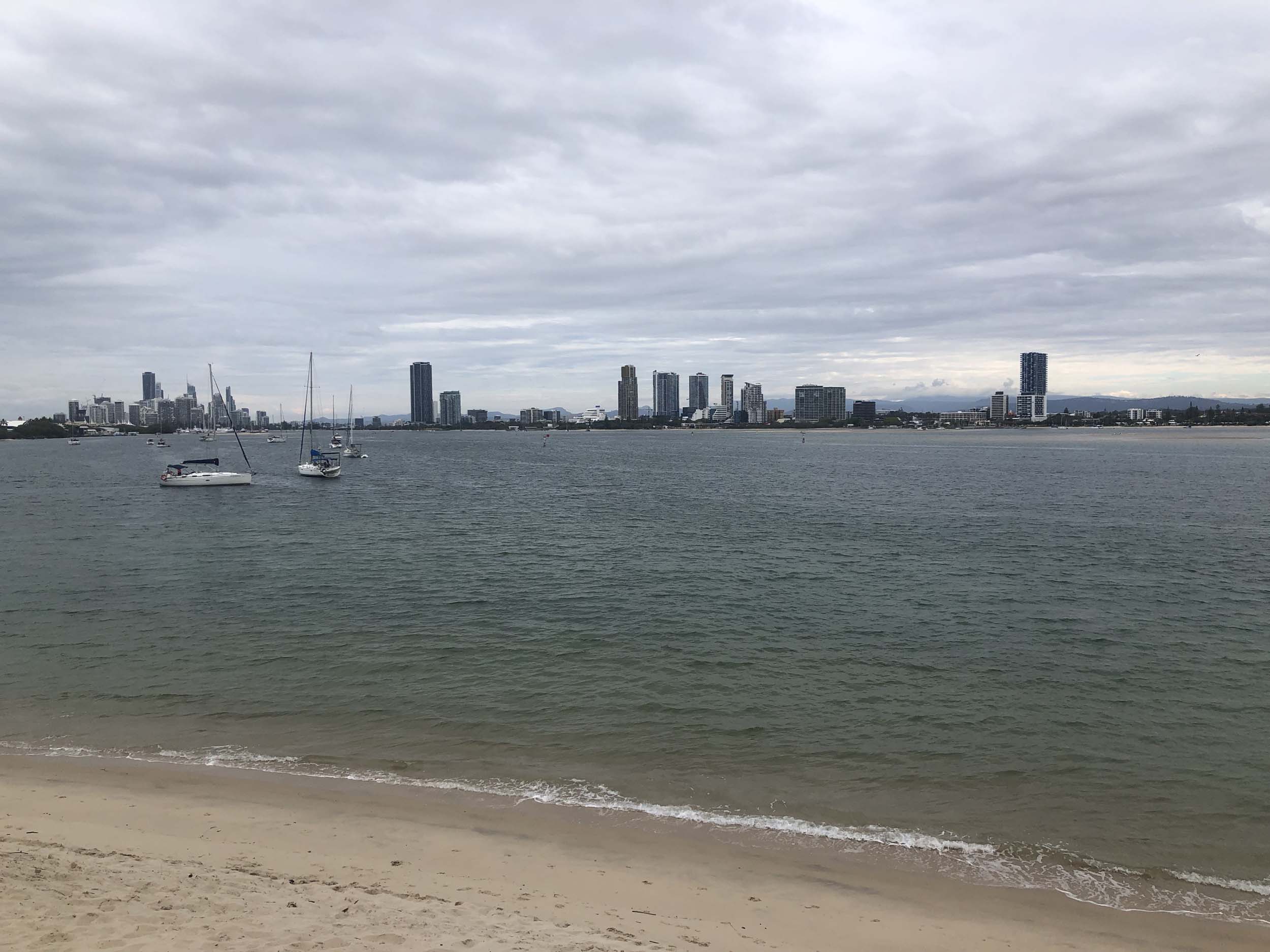 I left home at 7:58am, after going for a coffee and some shopping at Coles Lab Park. The breeze was blowing from the South. The Broadwater had a chop.
