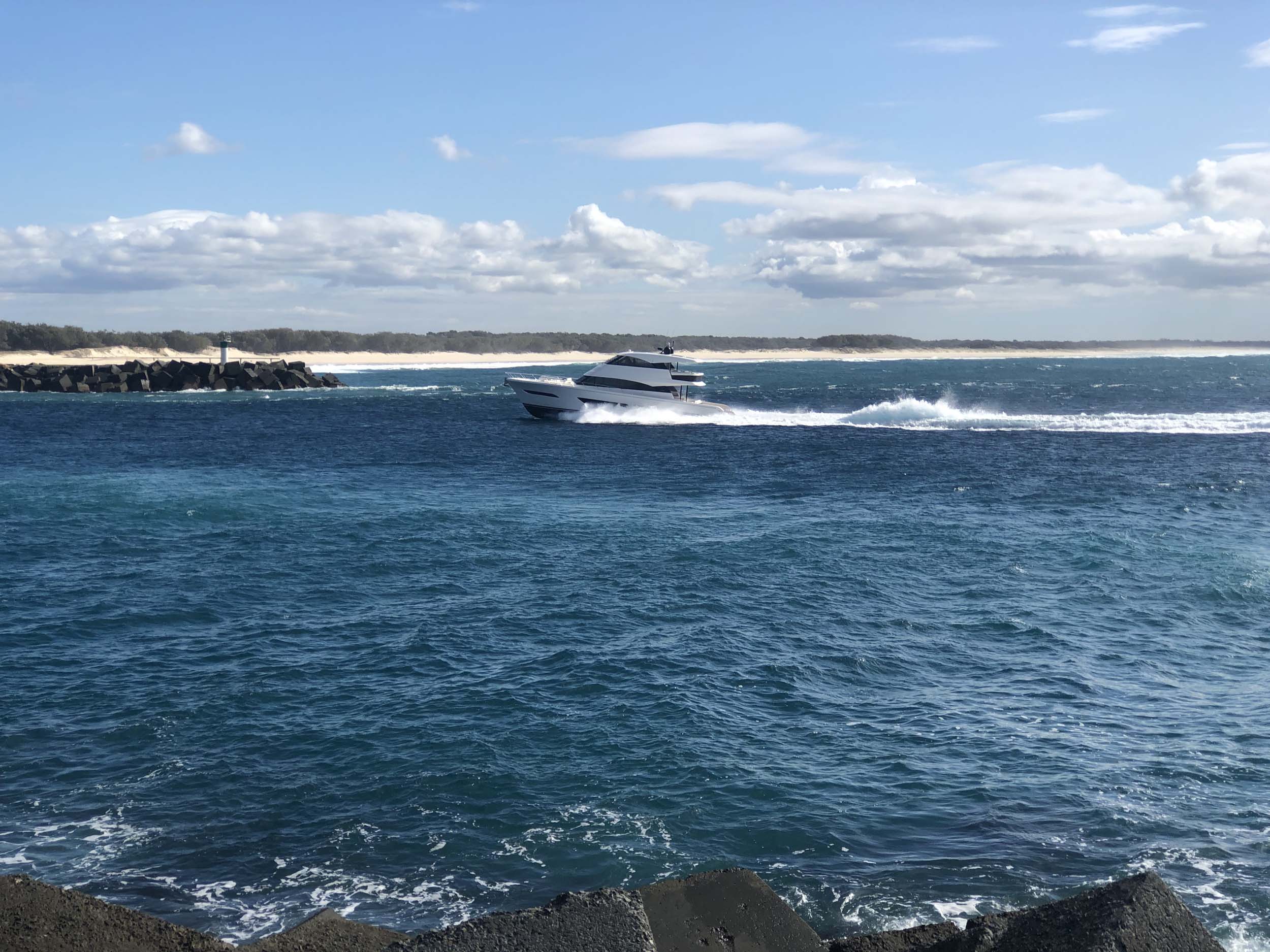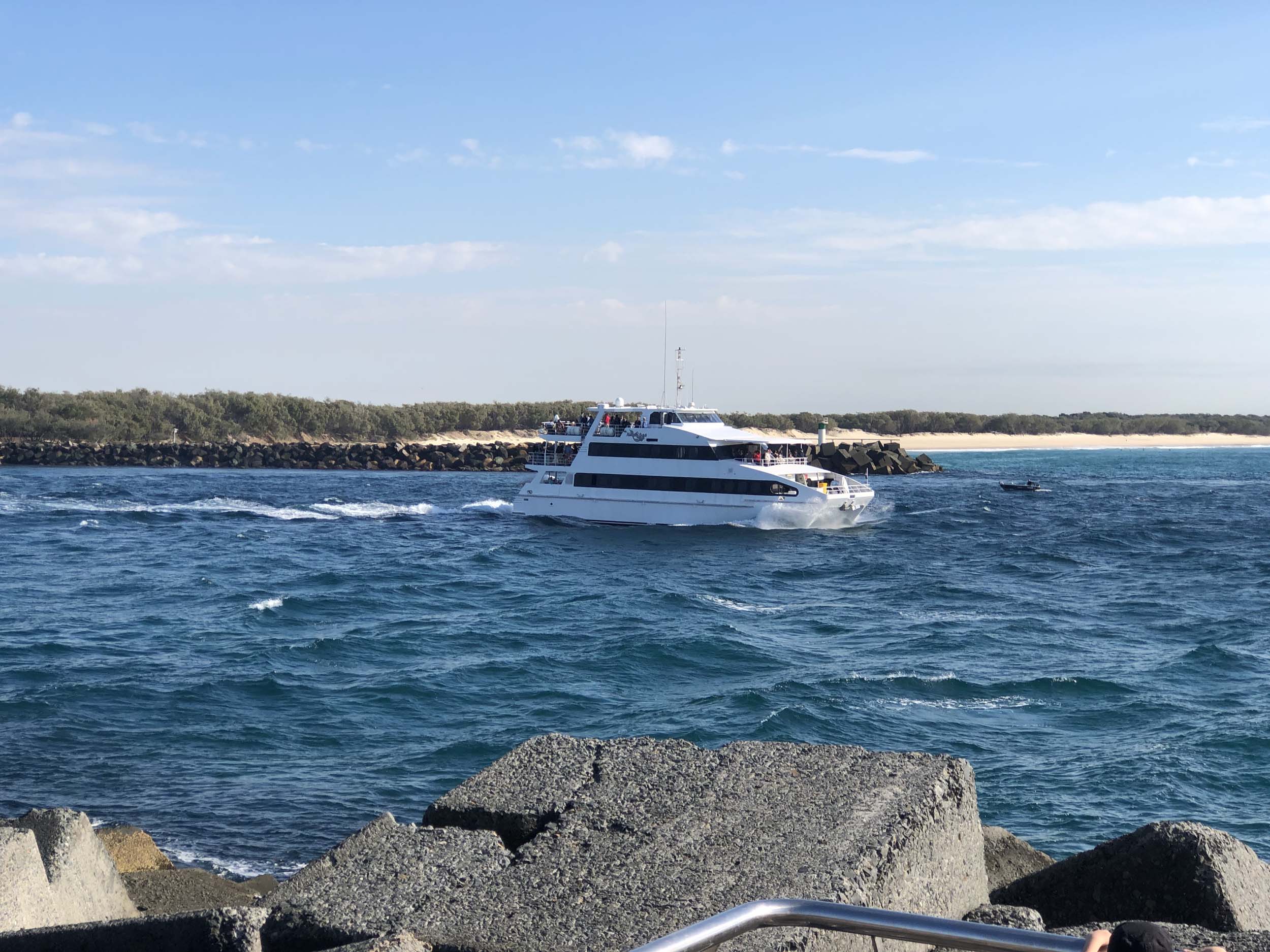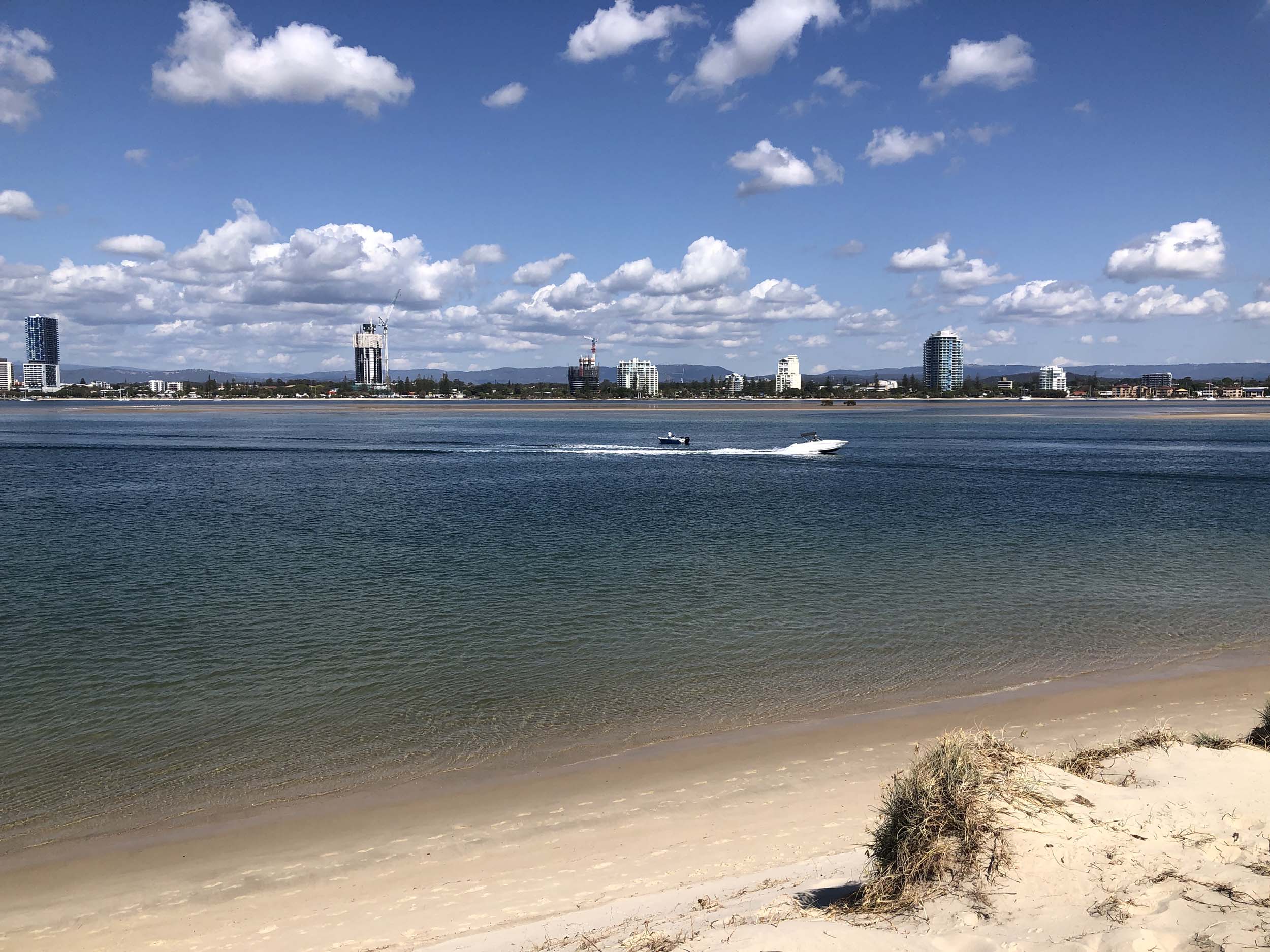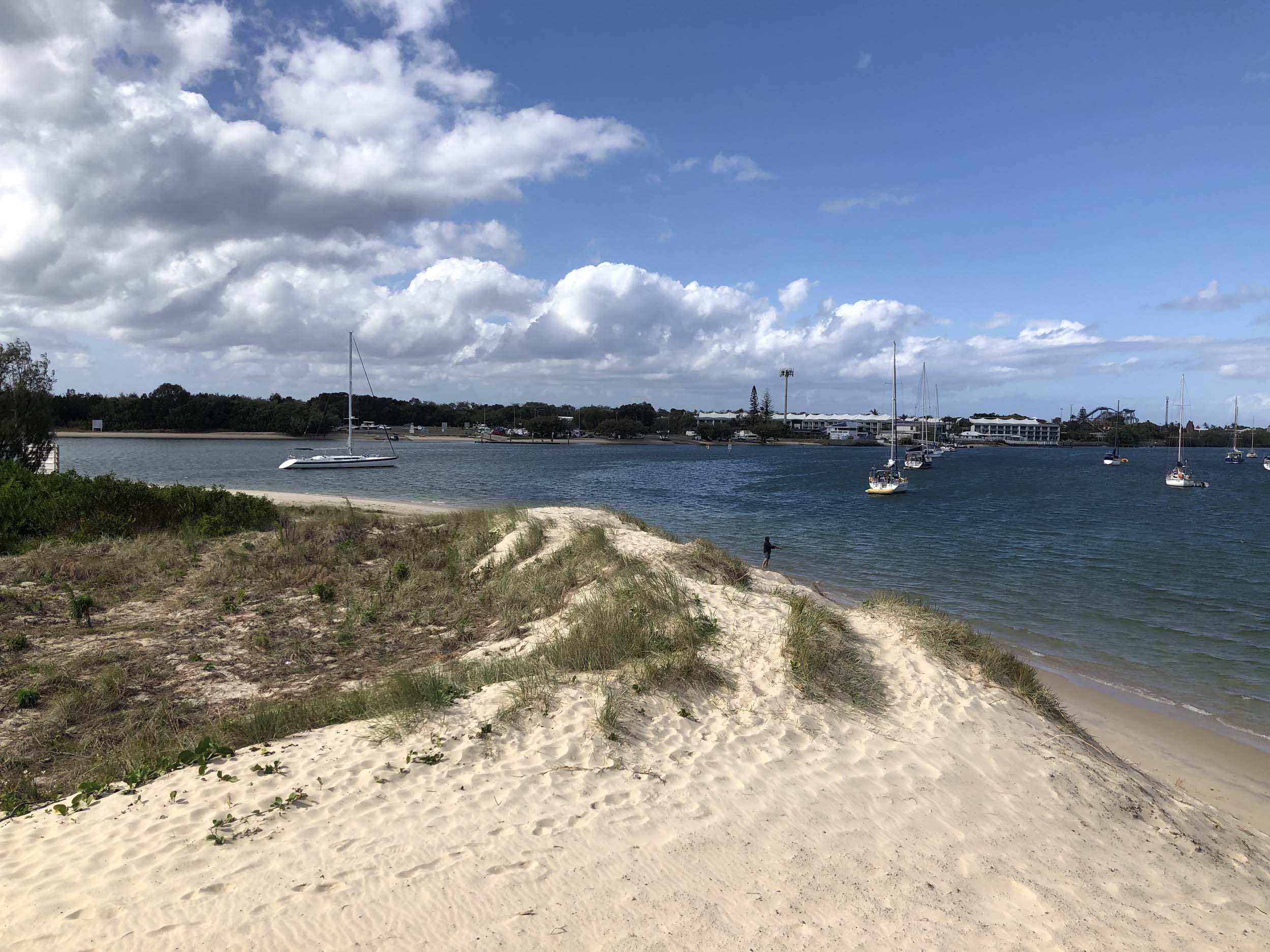 I left home at 7:58am, after going for a coffee and some shopping at Coles Lab Park. The breeze was blowing from the South. The Broadwater had a chop.