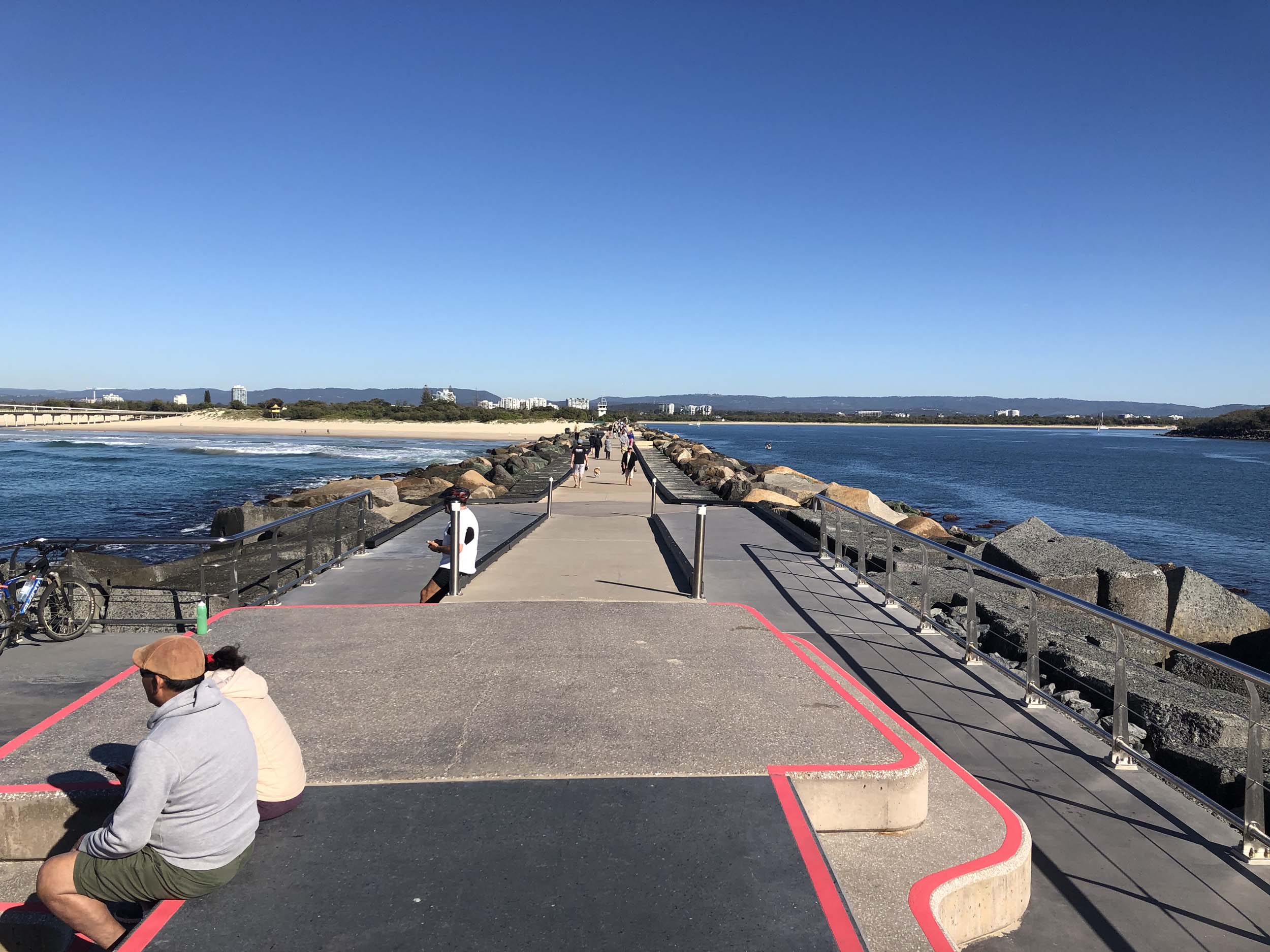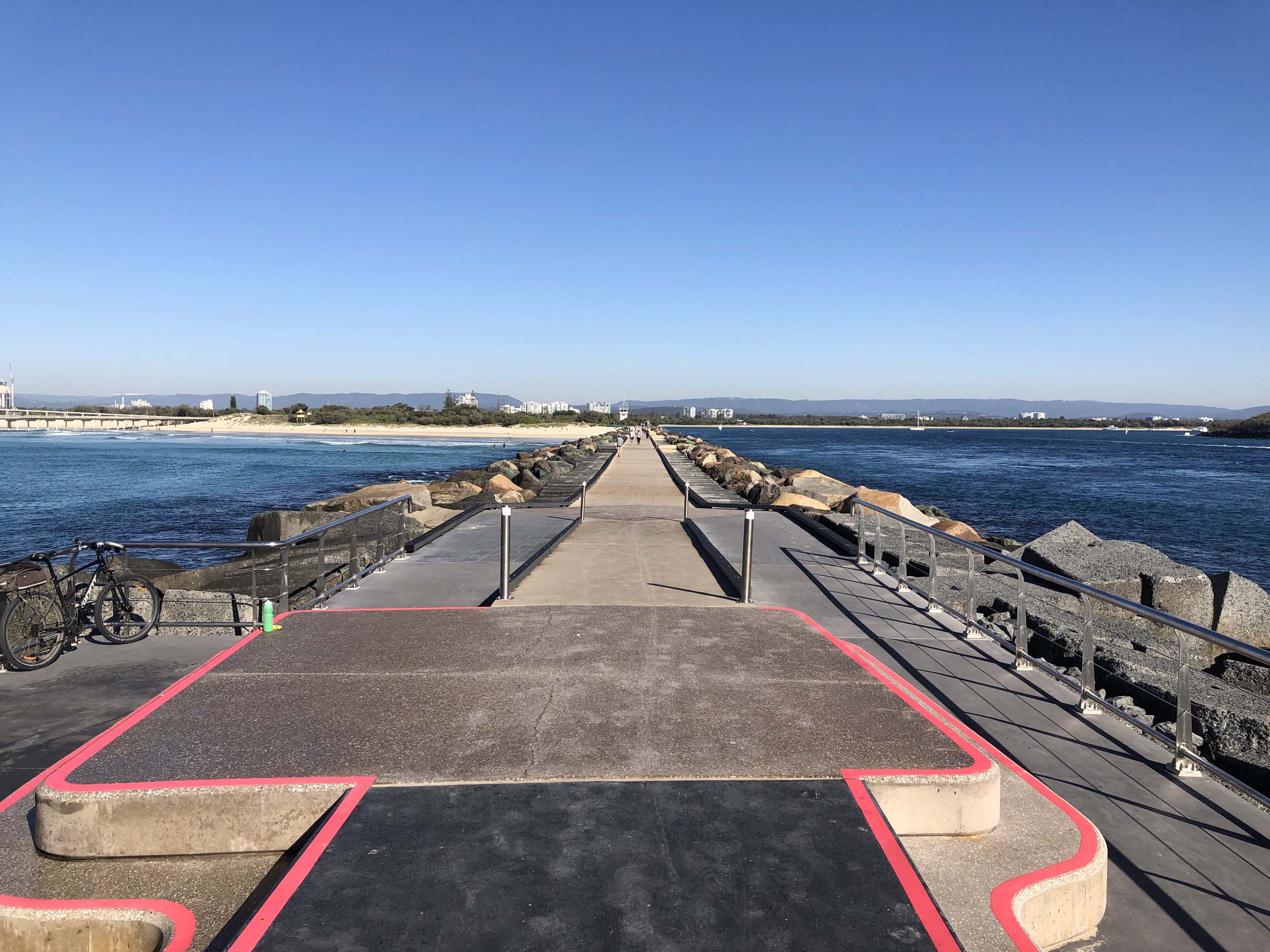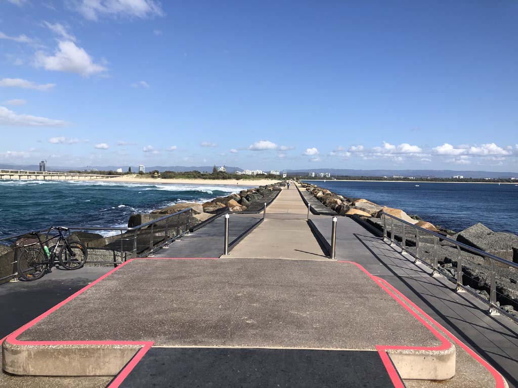 Headed off towards The Seaway/Spit, via the Federation Walk. Continued riding to the tip of the Seawall/Spit. Stopped and took my photos and ate my banana, then rode to the tip of the Moondarewa Spit, took more photos then did another lap to both Spits.