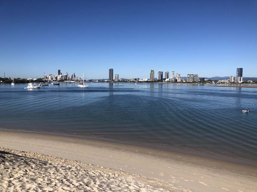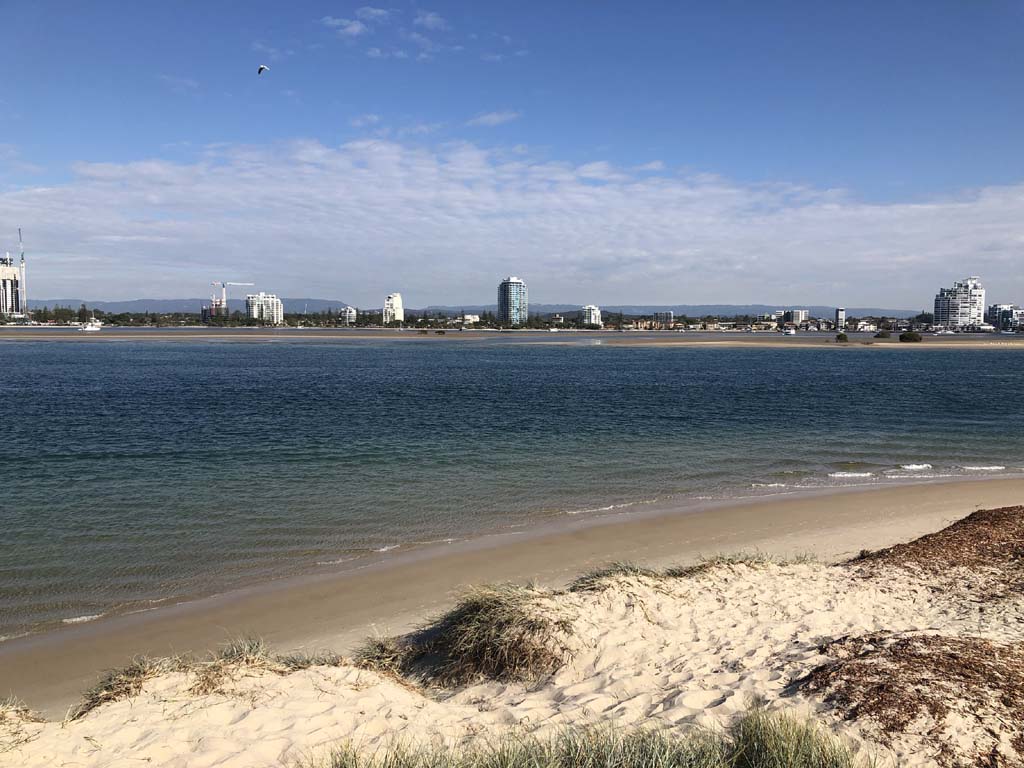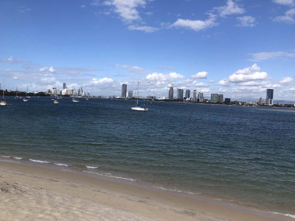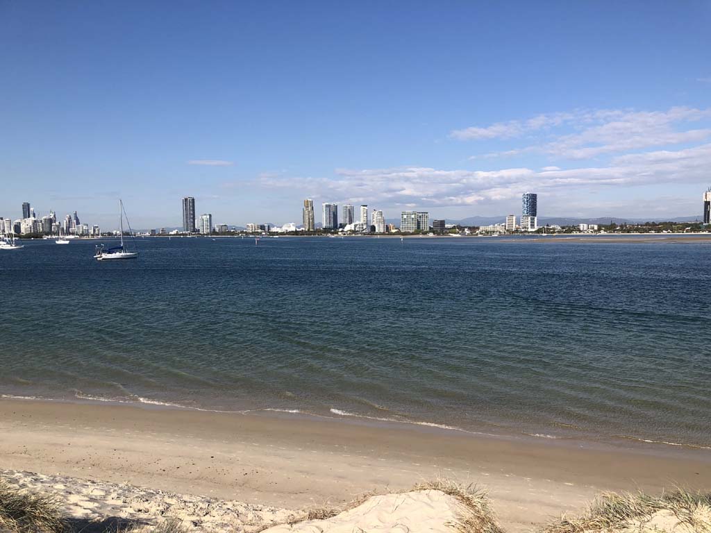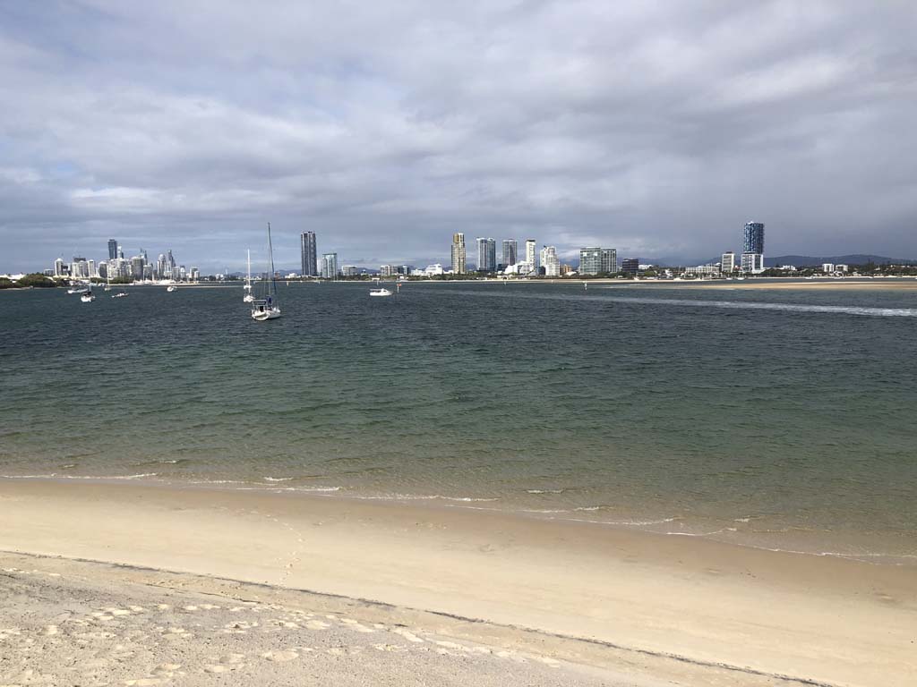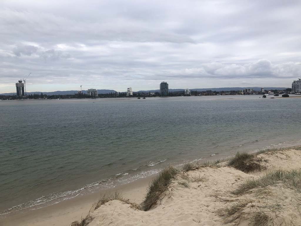 As it was blowing like buggery and very warm, I decided on 1 lap of the Spits, 1 lap of MacIntosh Island and not ride to Surfers.