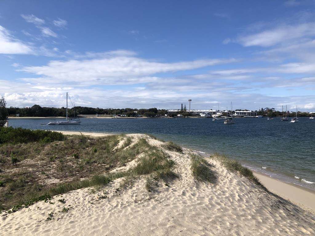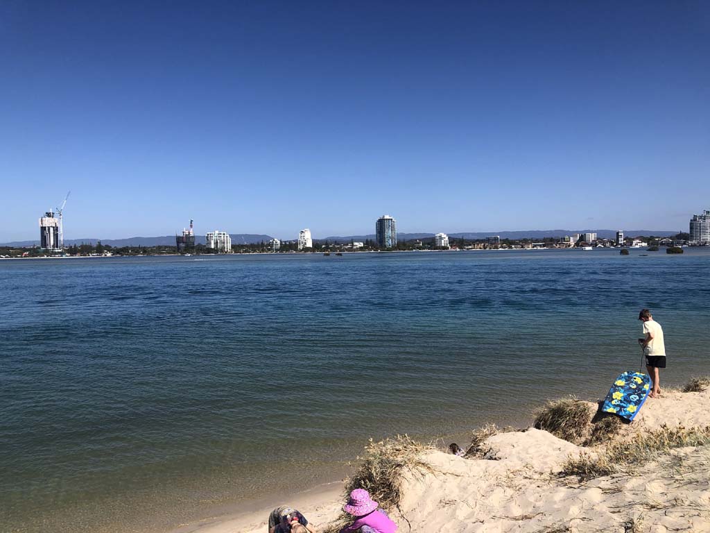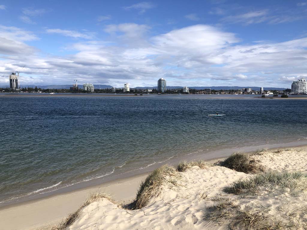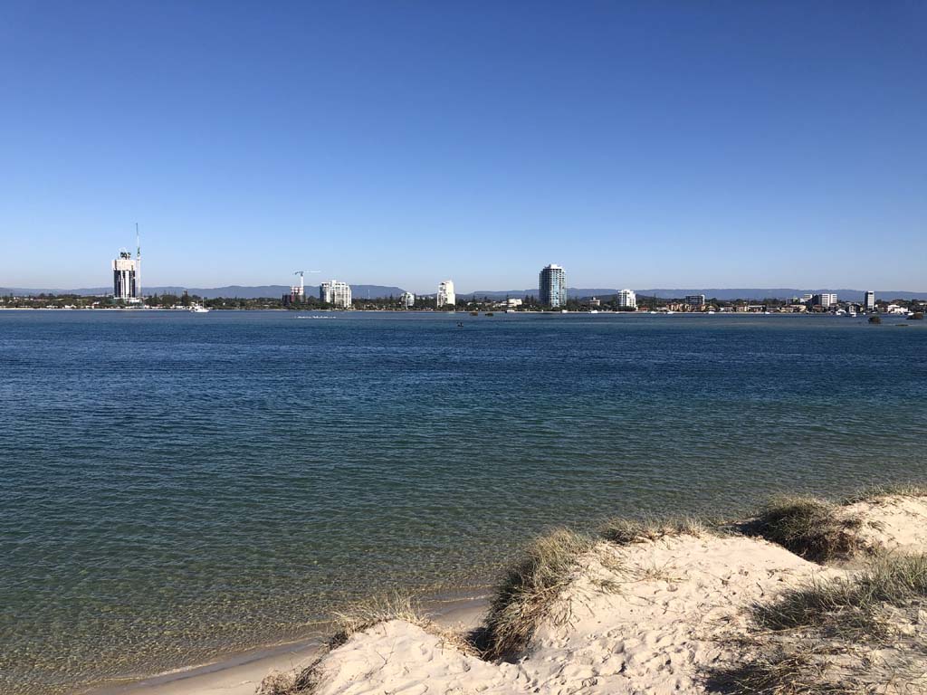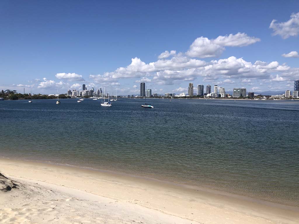 As it was blowing like buggery and very warm, I decided on 1 lap of the Spits, 1 lap of MacIntosh Island and not ride to Surfers.