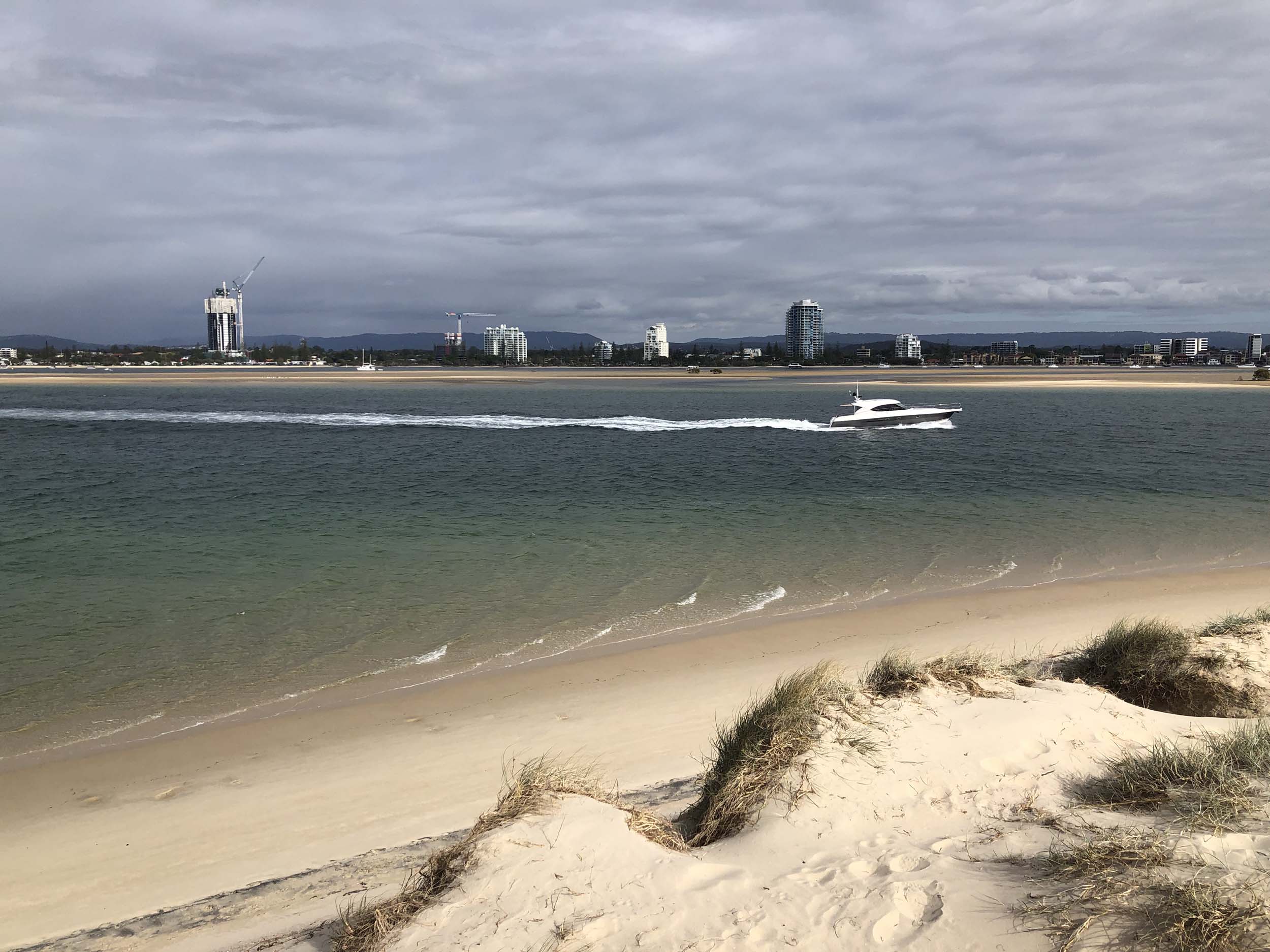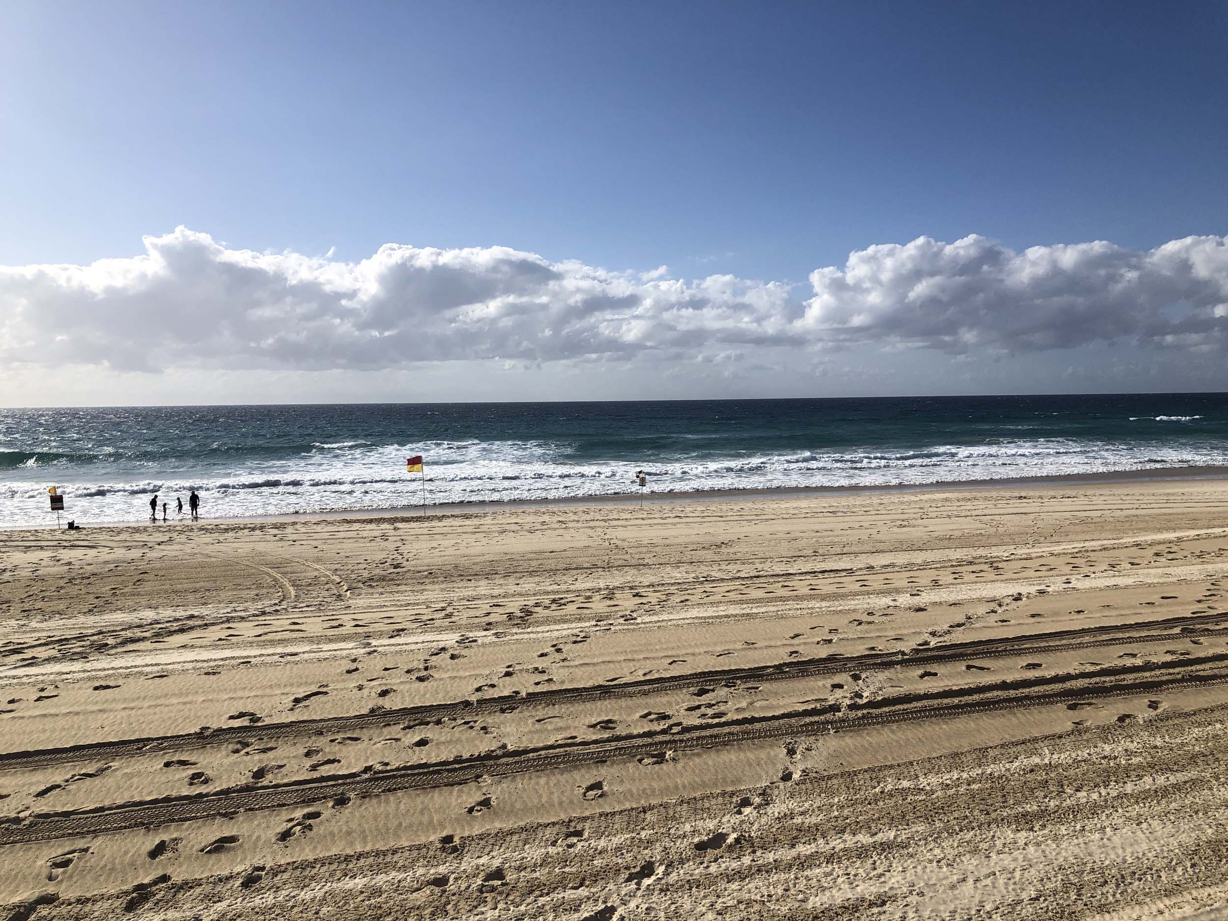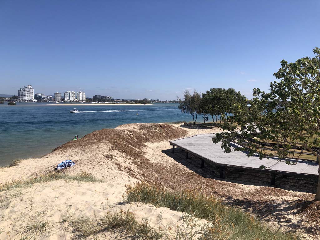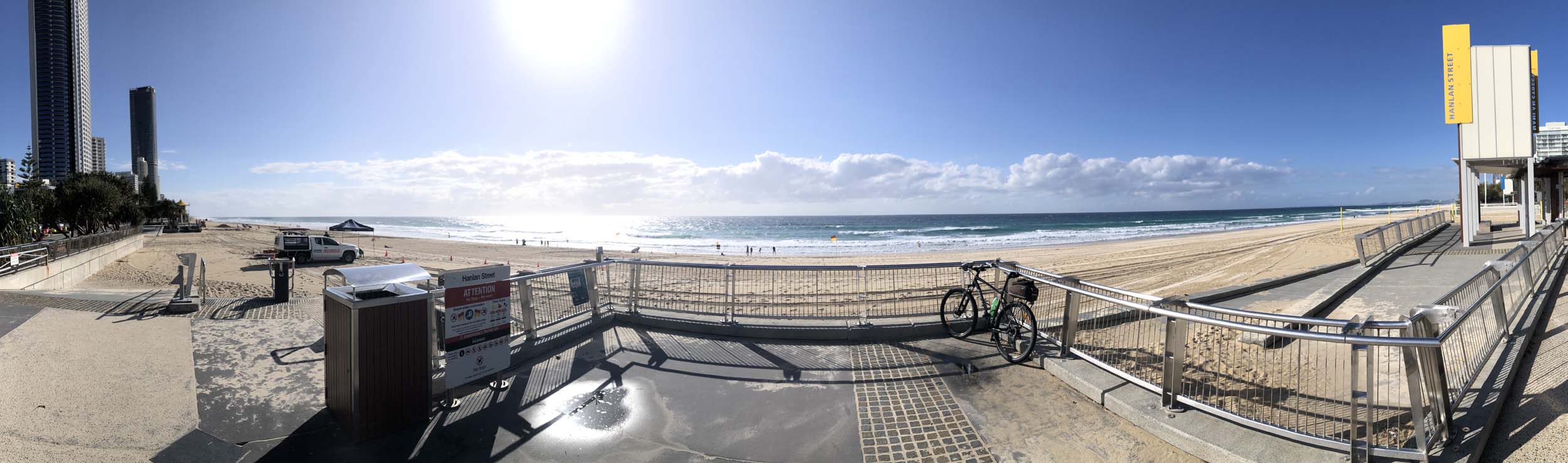 As it was blowing like buggery and very warm, I decided on 1 lap of the Spits, 1 lap of MacIntosh Island and not ride to Surfers.