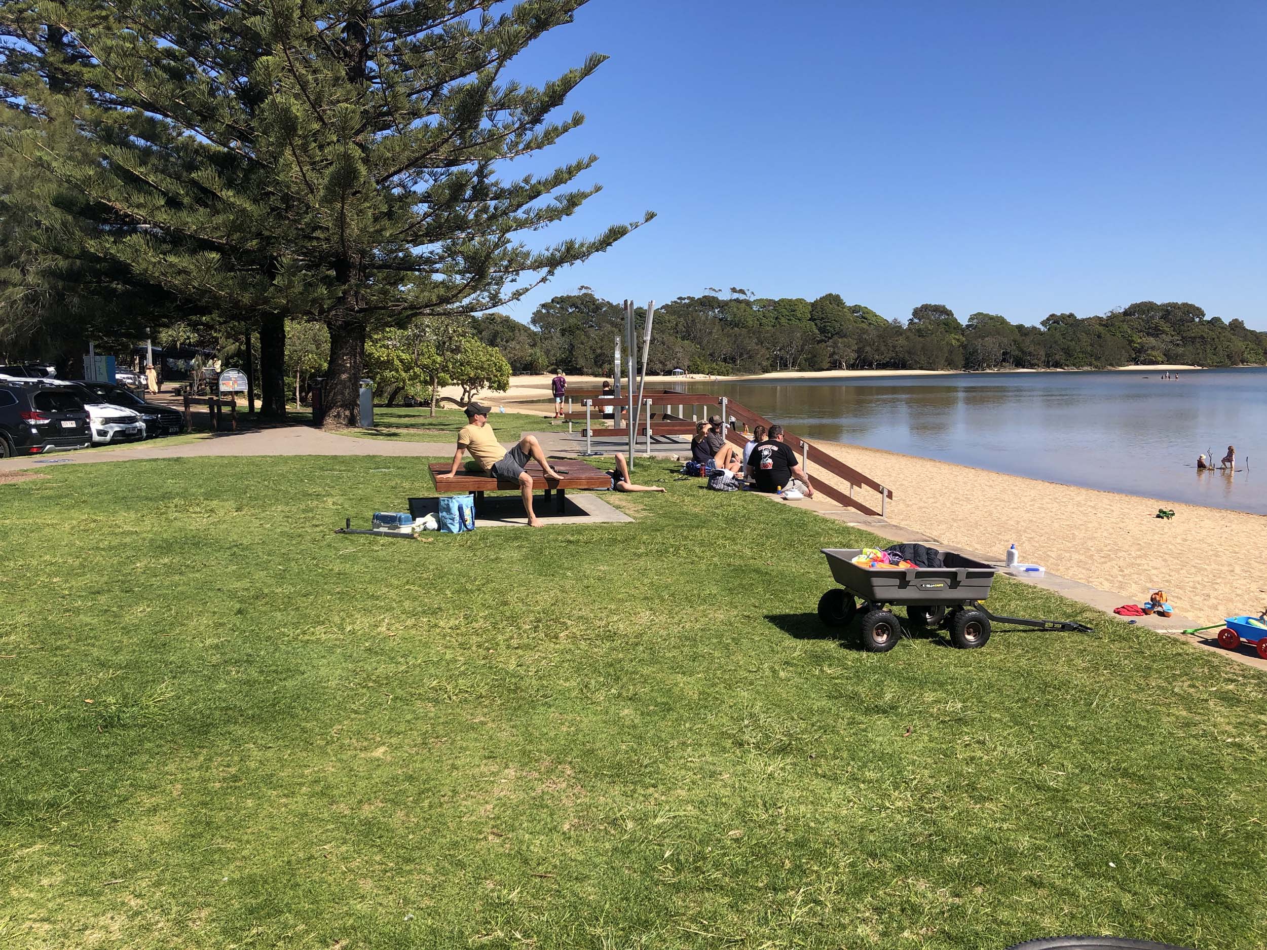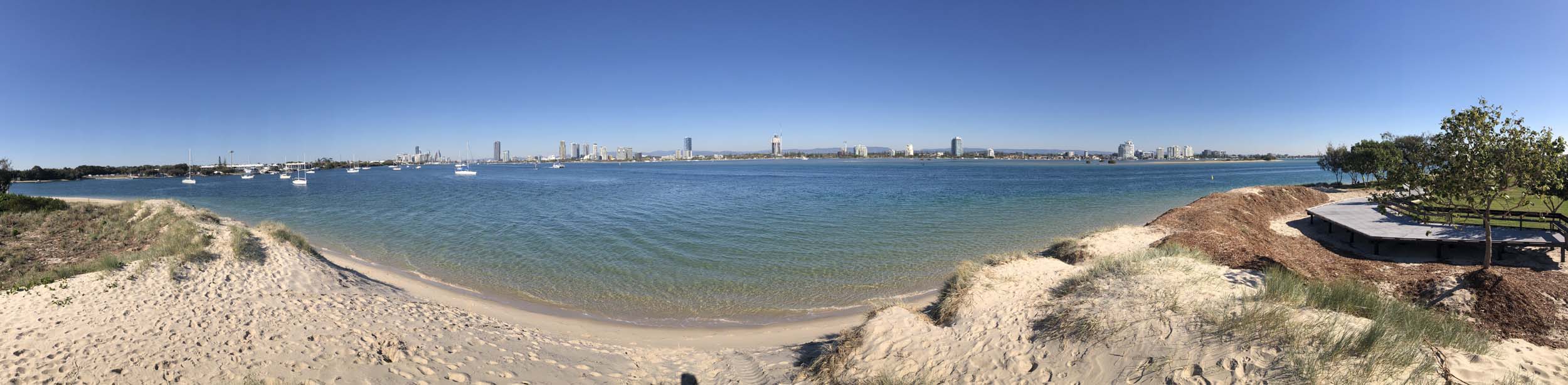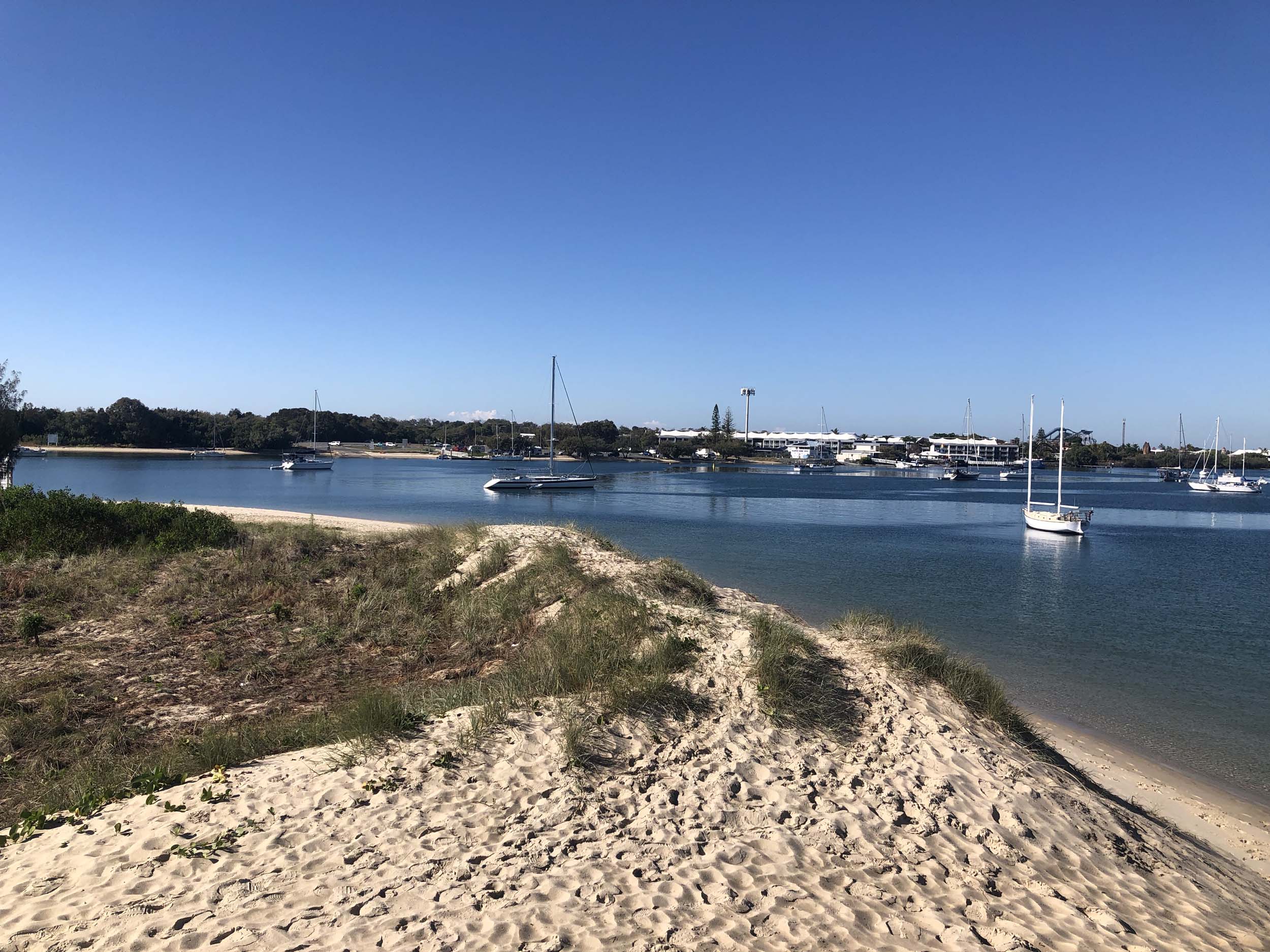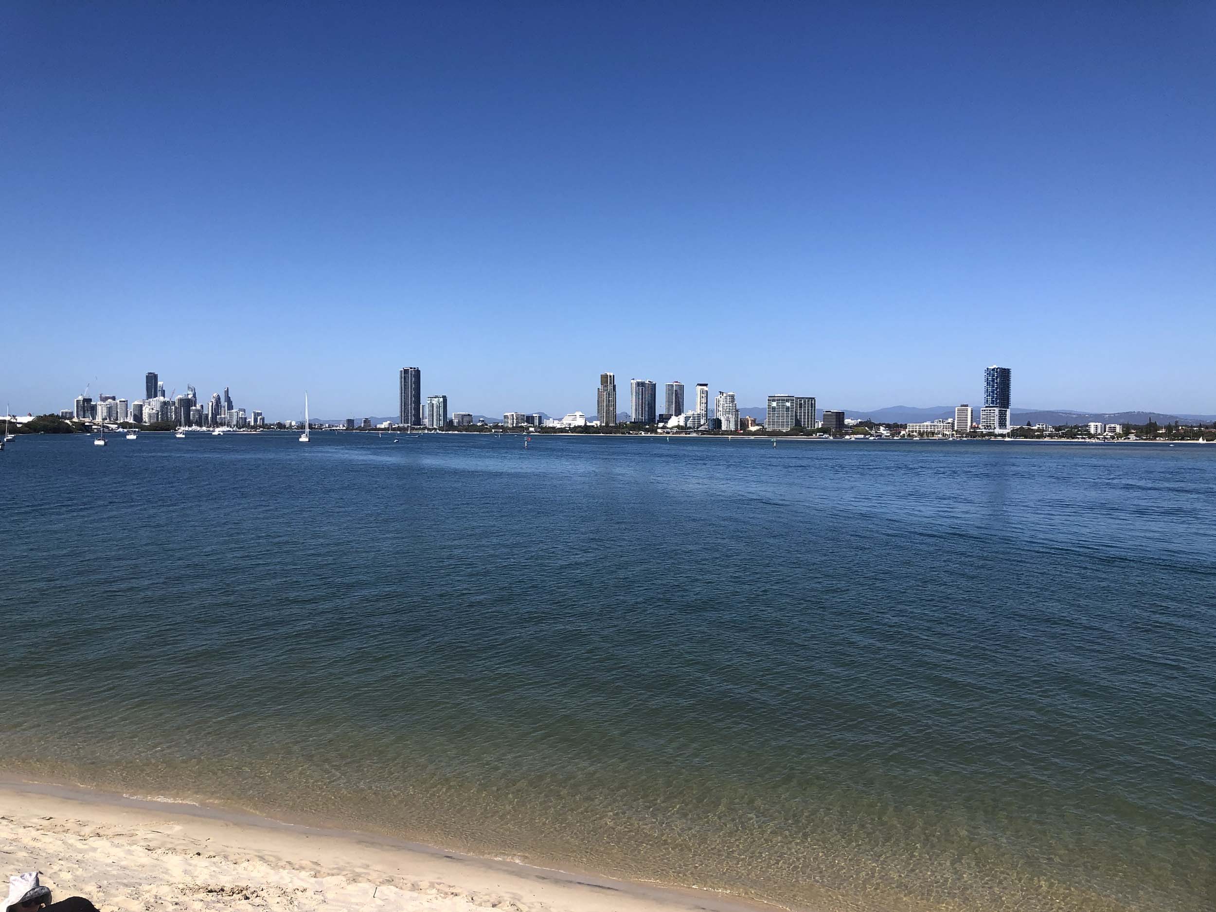 I left home at 7:56am, after going for a coffee and some shopping at Coles Lab Park. The breeze was building from the South East. The Broadwater was calm.