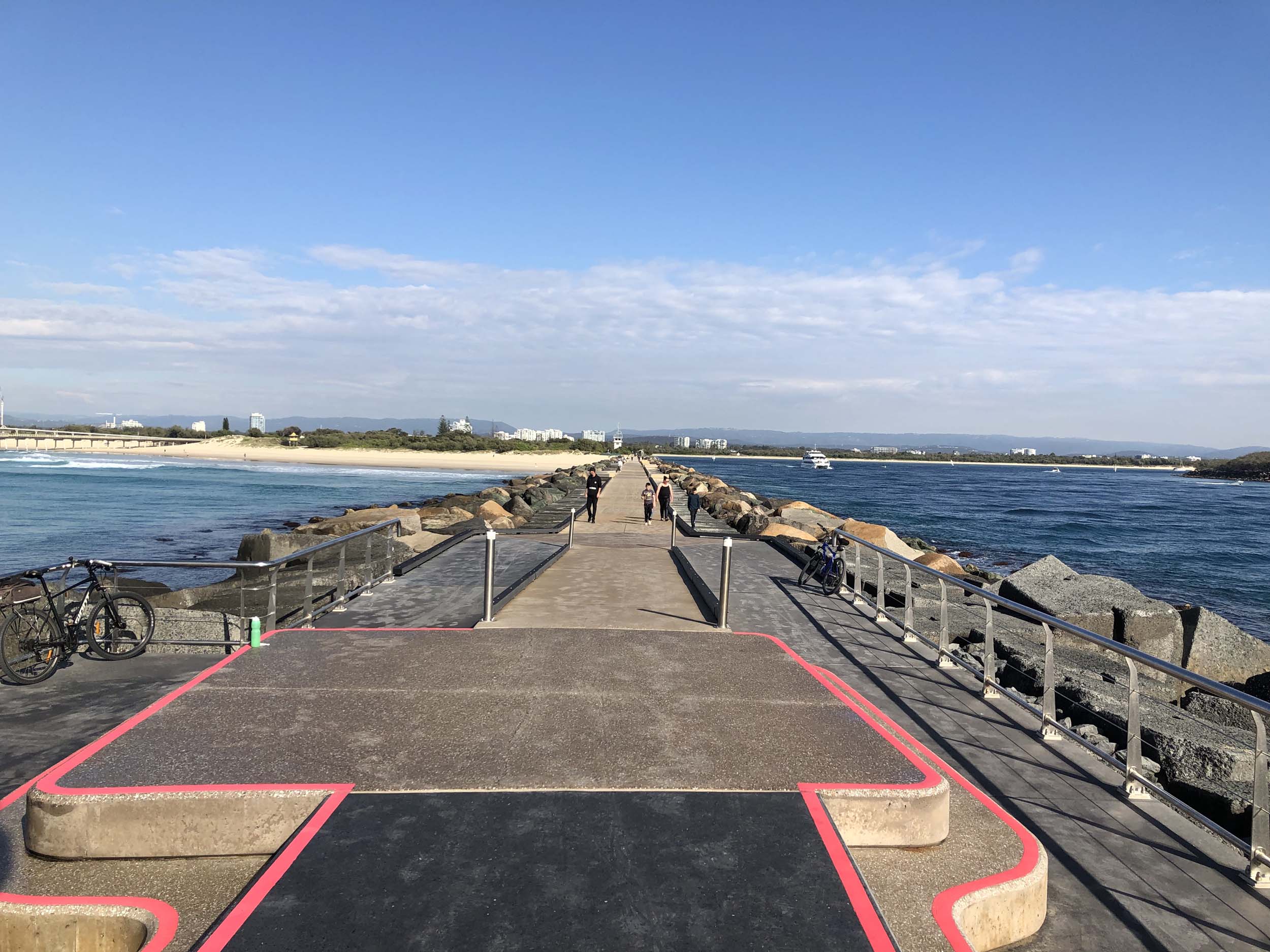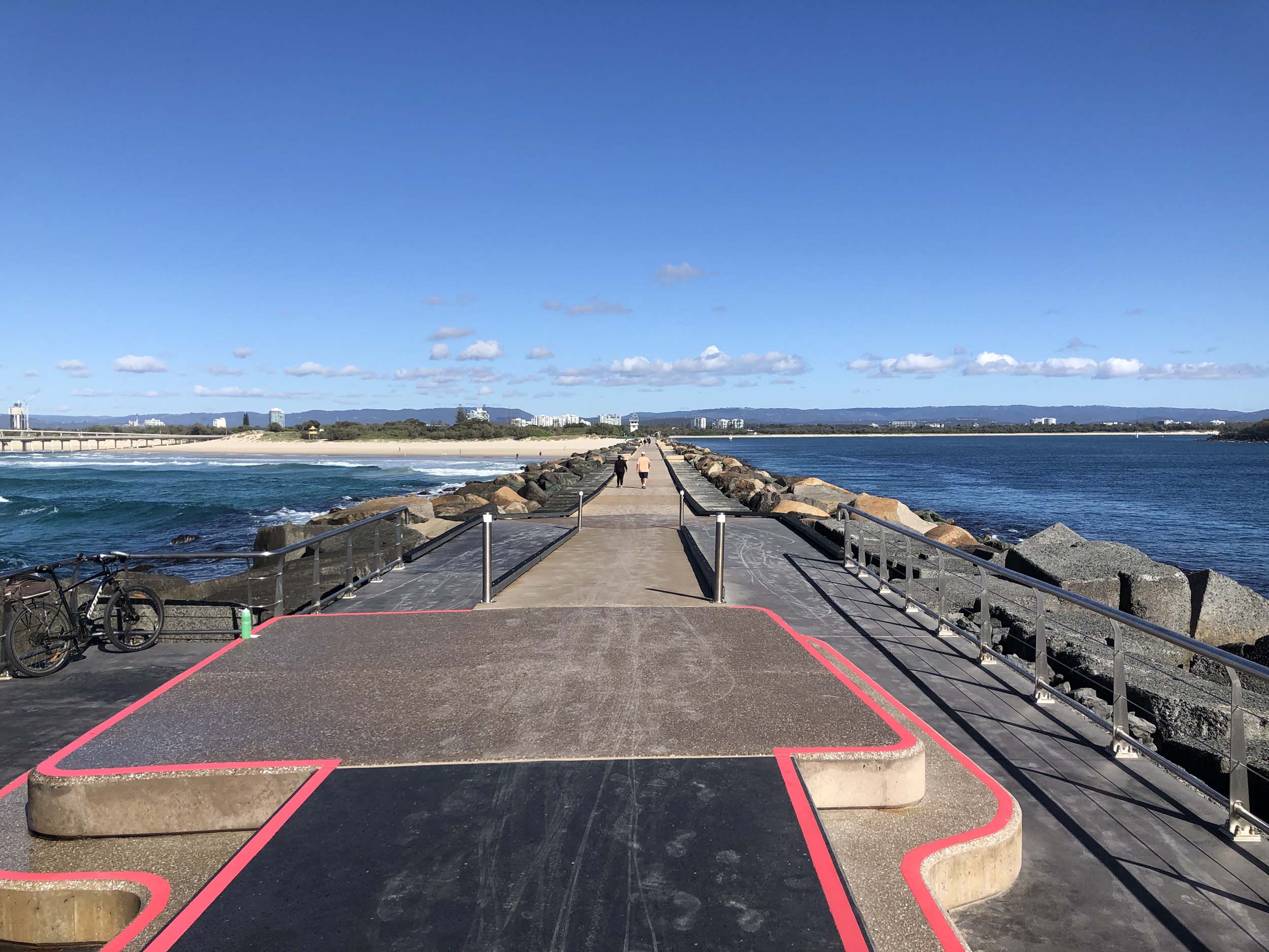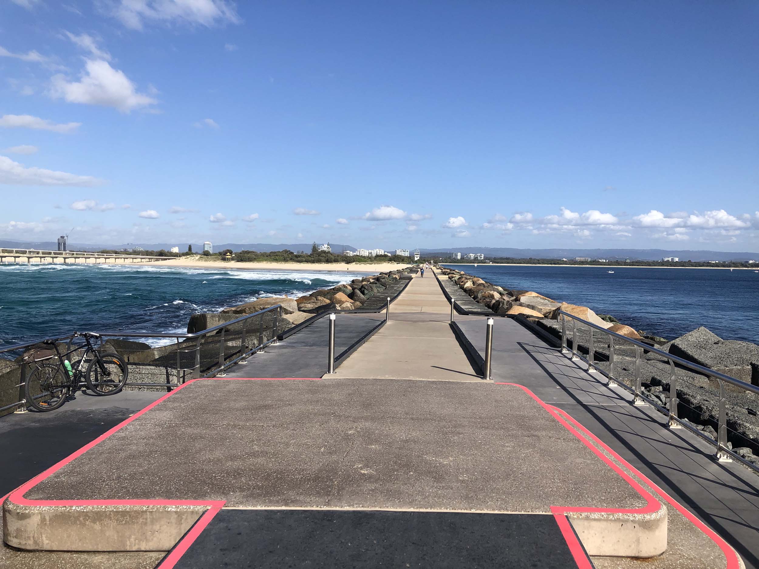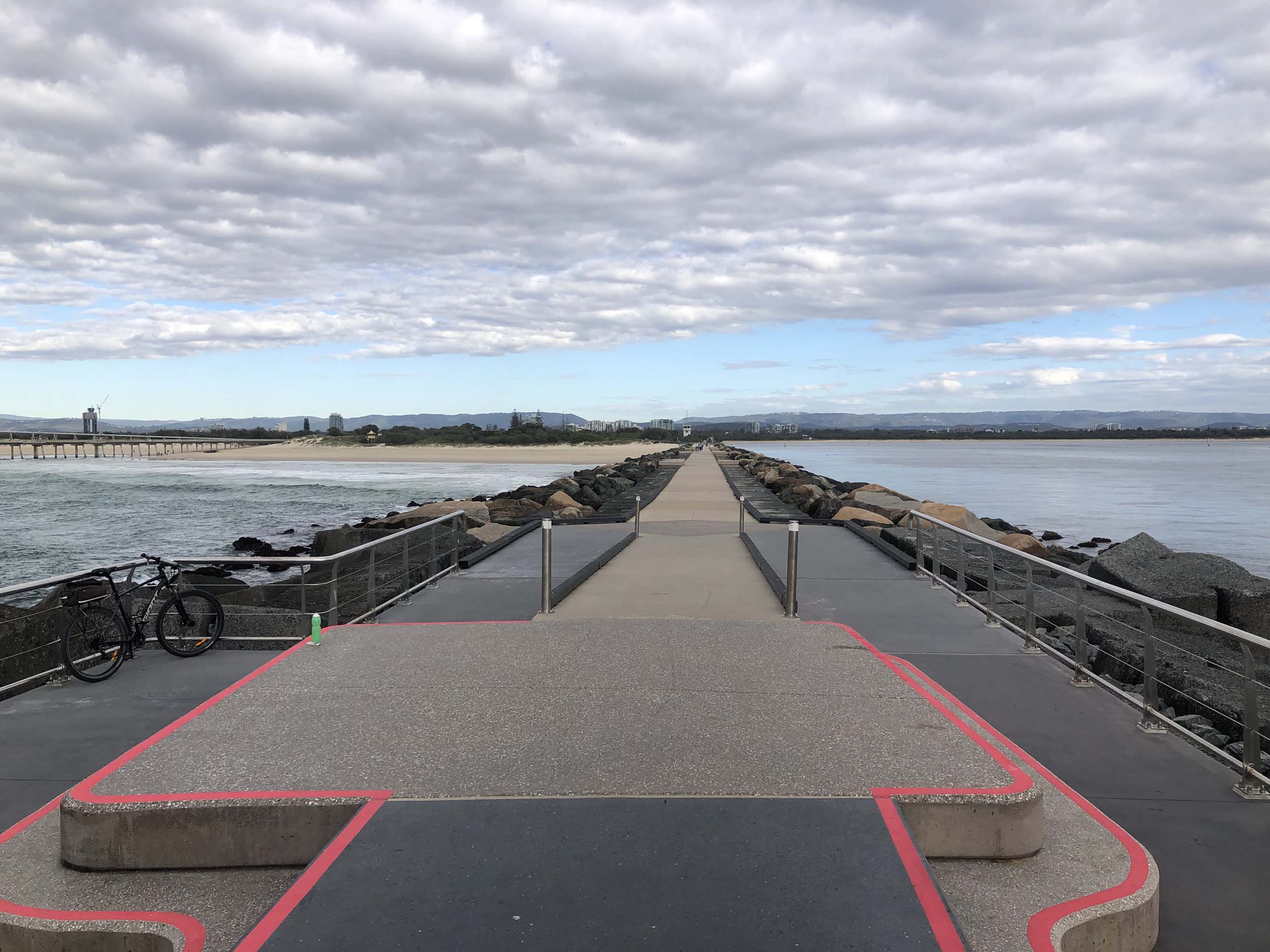 Headed off towards The Seaway/Spit, via the Federation Walk. Continued riding to the tip of the Seawall/Spit. Stopped and took my photos and ate my museli bar, then rode to the tip of the Moondarewa Spit, took more photos then did another lap to both Spits.