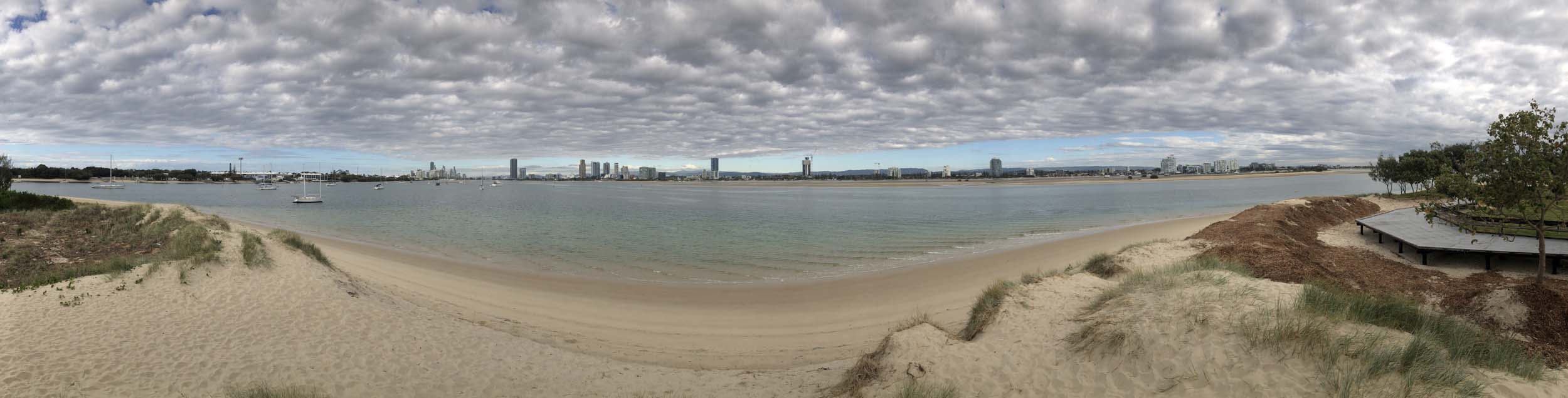 As usual, I rode Northward, to my Lands End turnaround point. Continued through the Broadwater Parklands to MacIntosh Is, did a lap. Over the Bridge at Narrowneck then along the Shared Path, to Surfers, to take my weather photos.