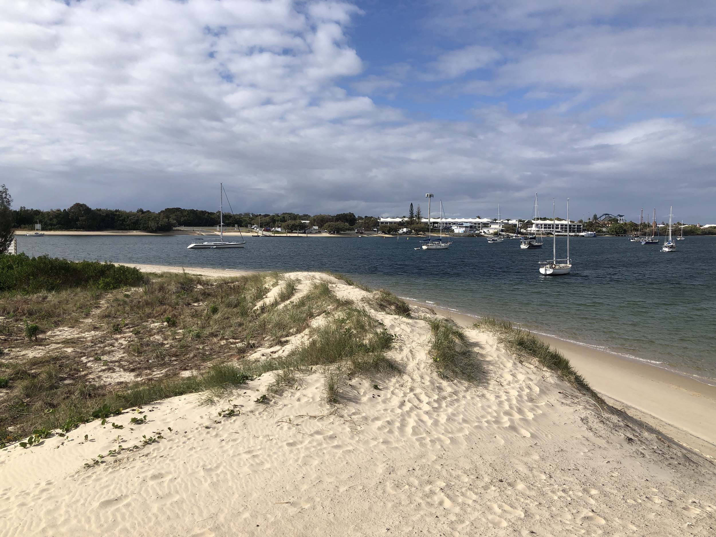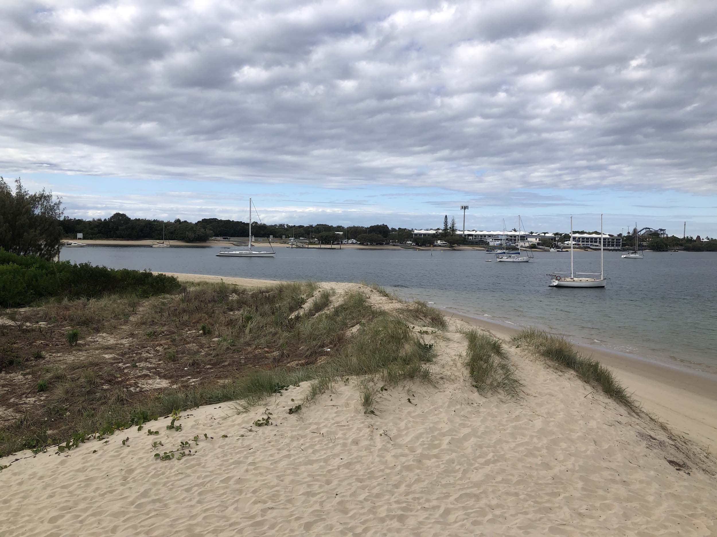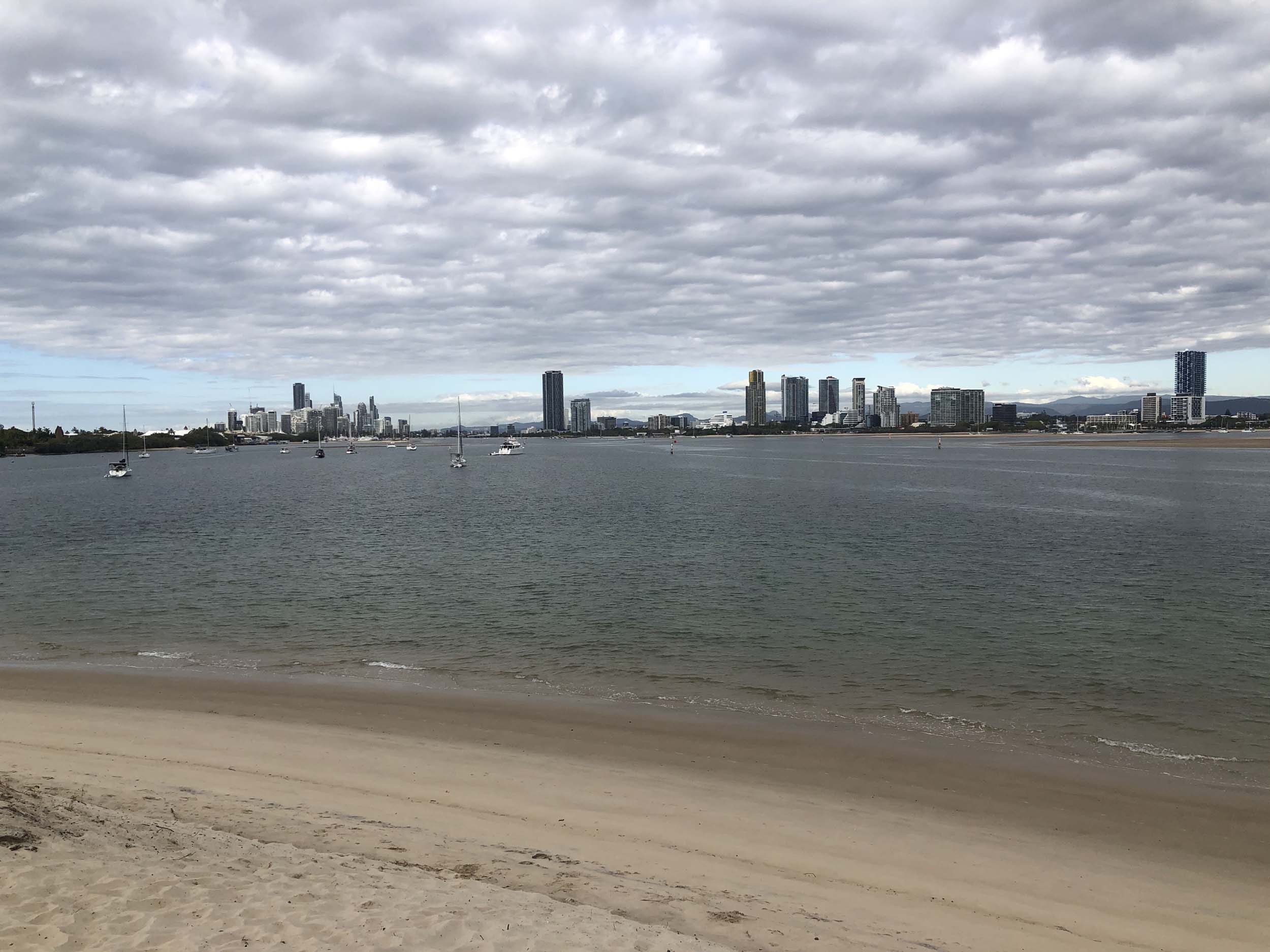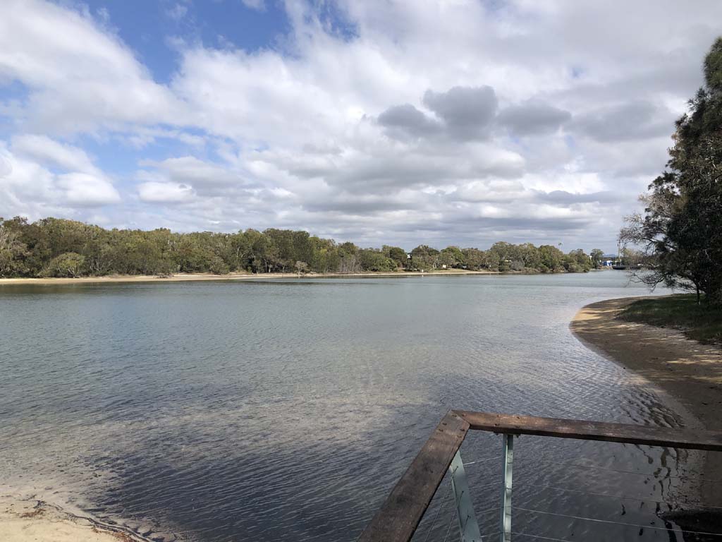 I left home at 7:44am, after going for a coffee and some shopping at Coles Lab Park. The breeze was building from the North East. The Broadwater was calm.