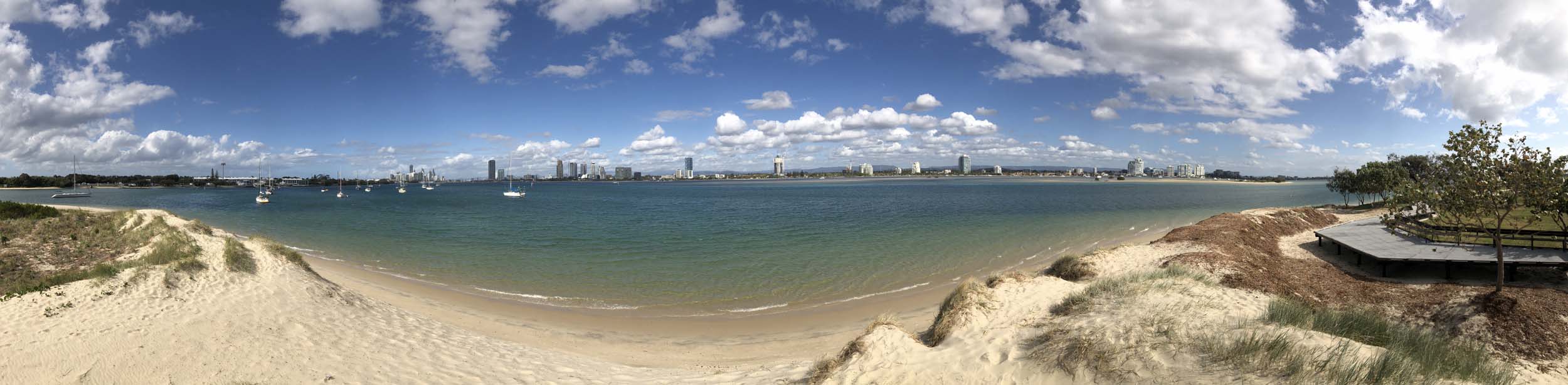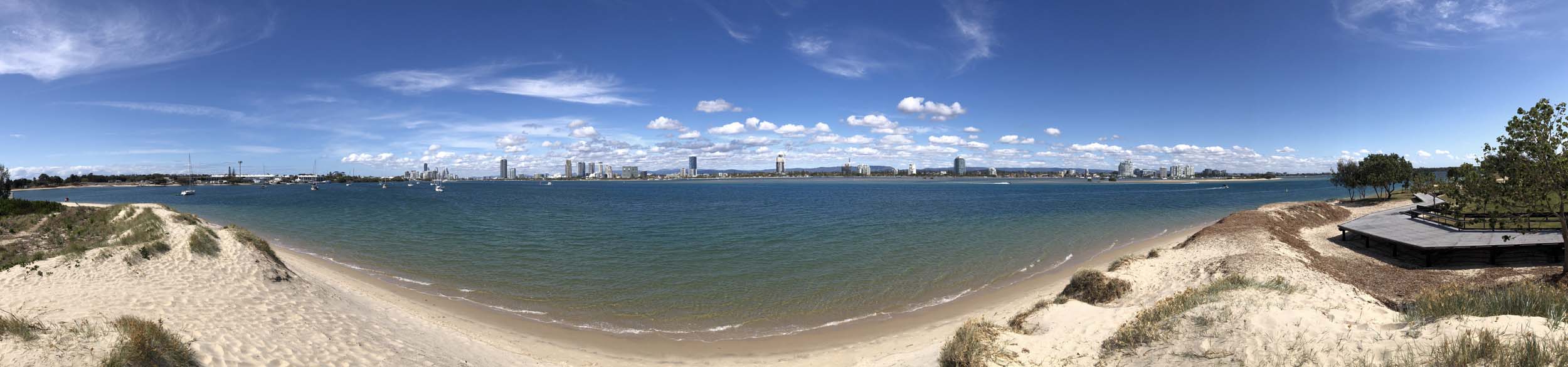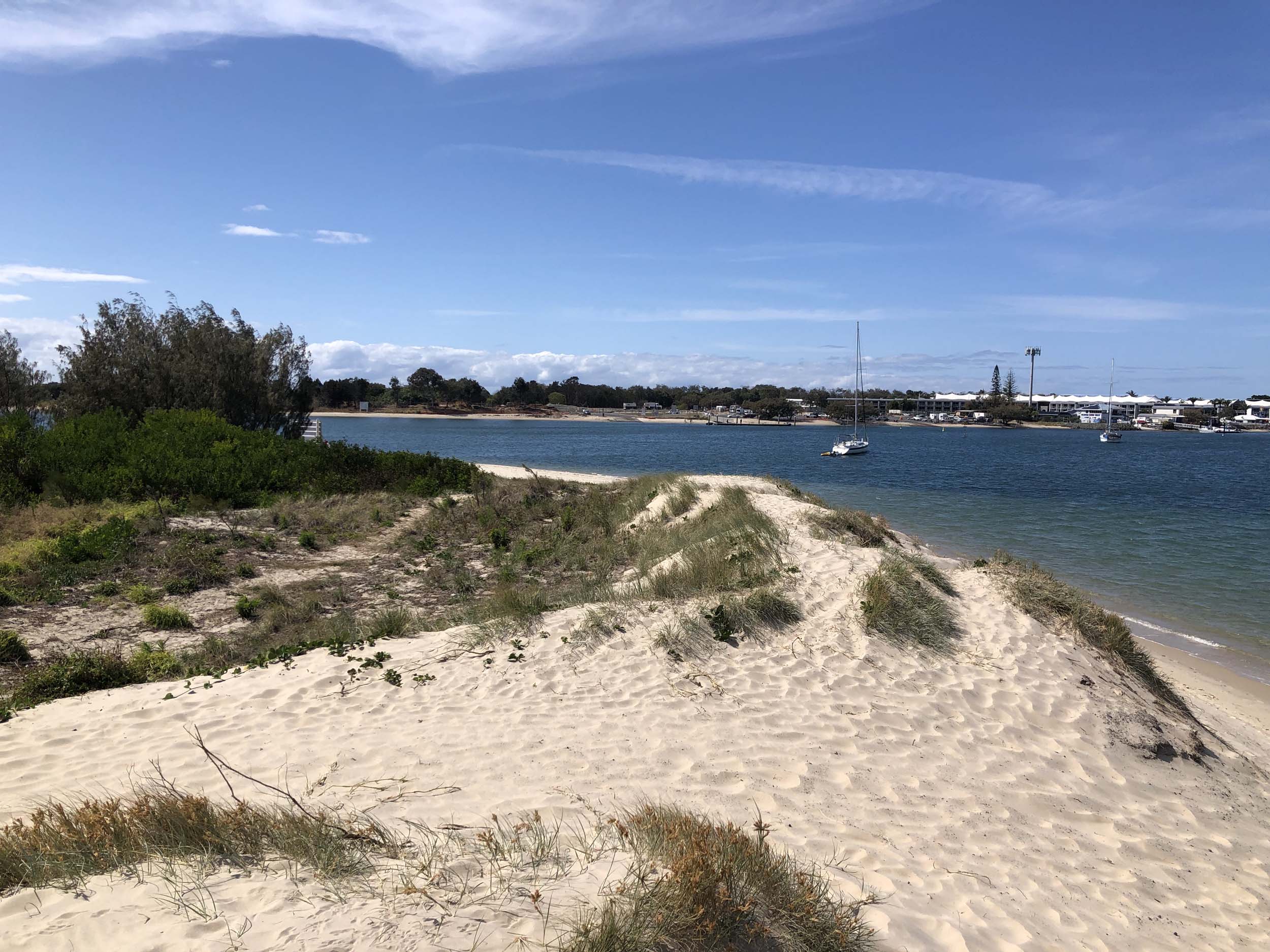 I left home at 7:44am, after going for a coffee and some shopping at Coles Lab Park. The breeze was building from the North East. The Broadwater was calm.