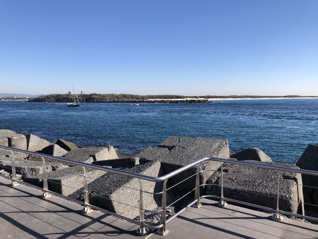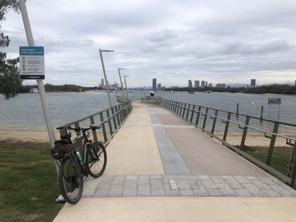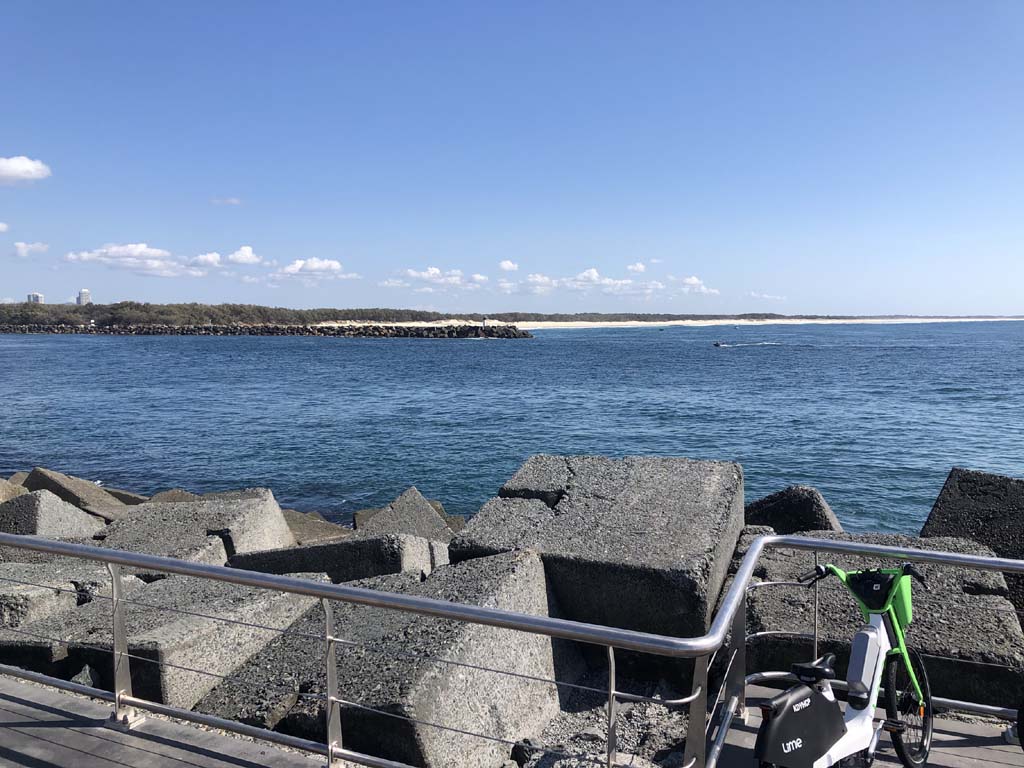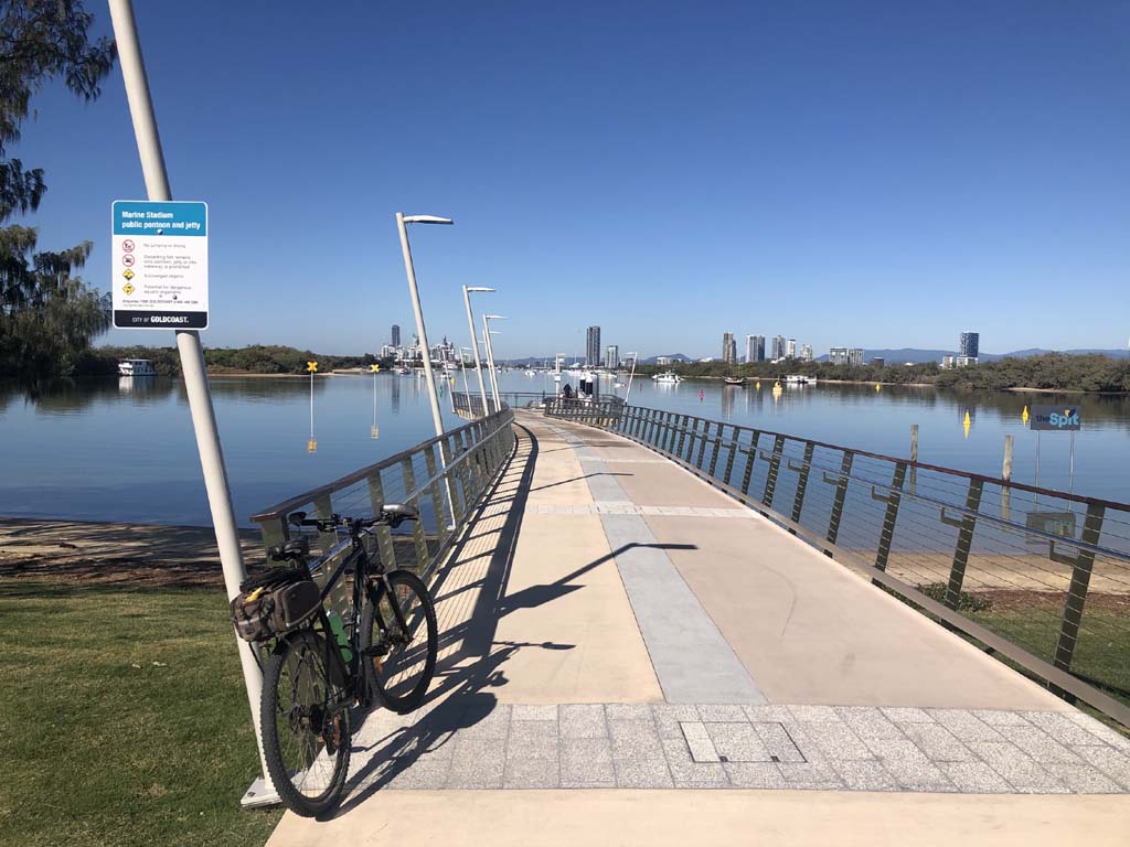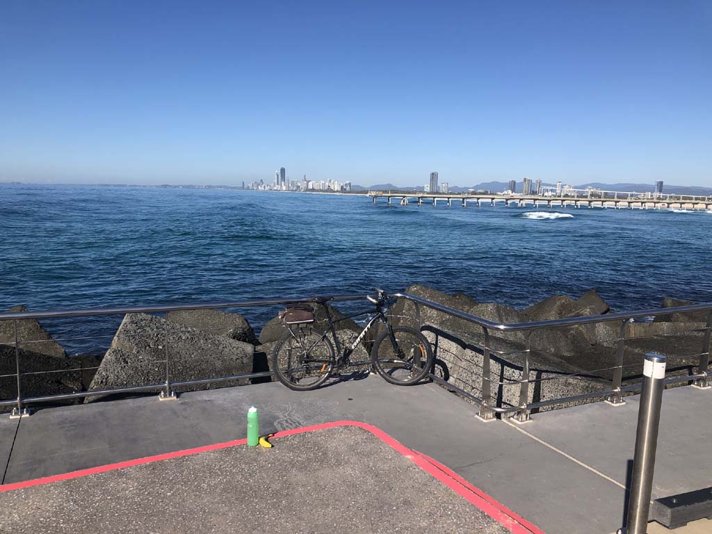 As usual, I rode Northward, to my Lands End turnaround point. Continued through the Broadwater Parklands over the Sundale Bridge and turned left and rode past the Super Yacht jetty, through the Southport YC, along the jetties at Marina Mirage and then around the edge of the Seaworld carpark, continuing along the shared path to The Spit.