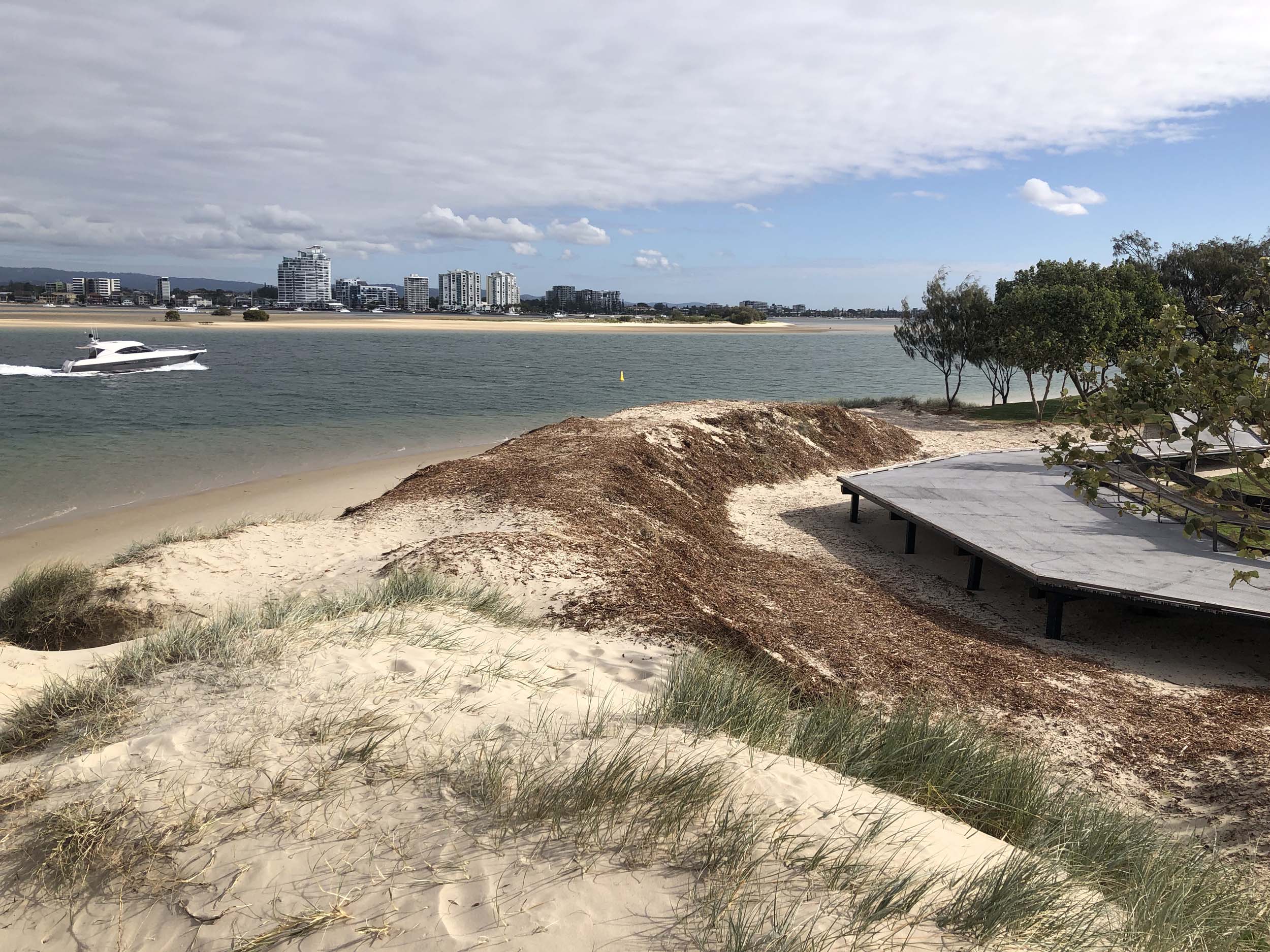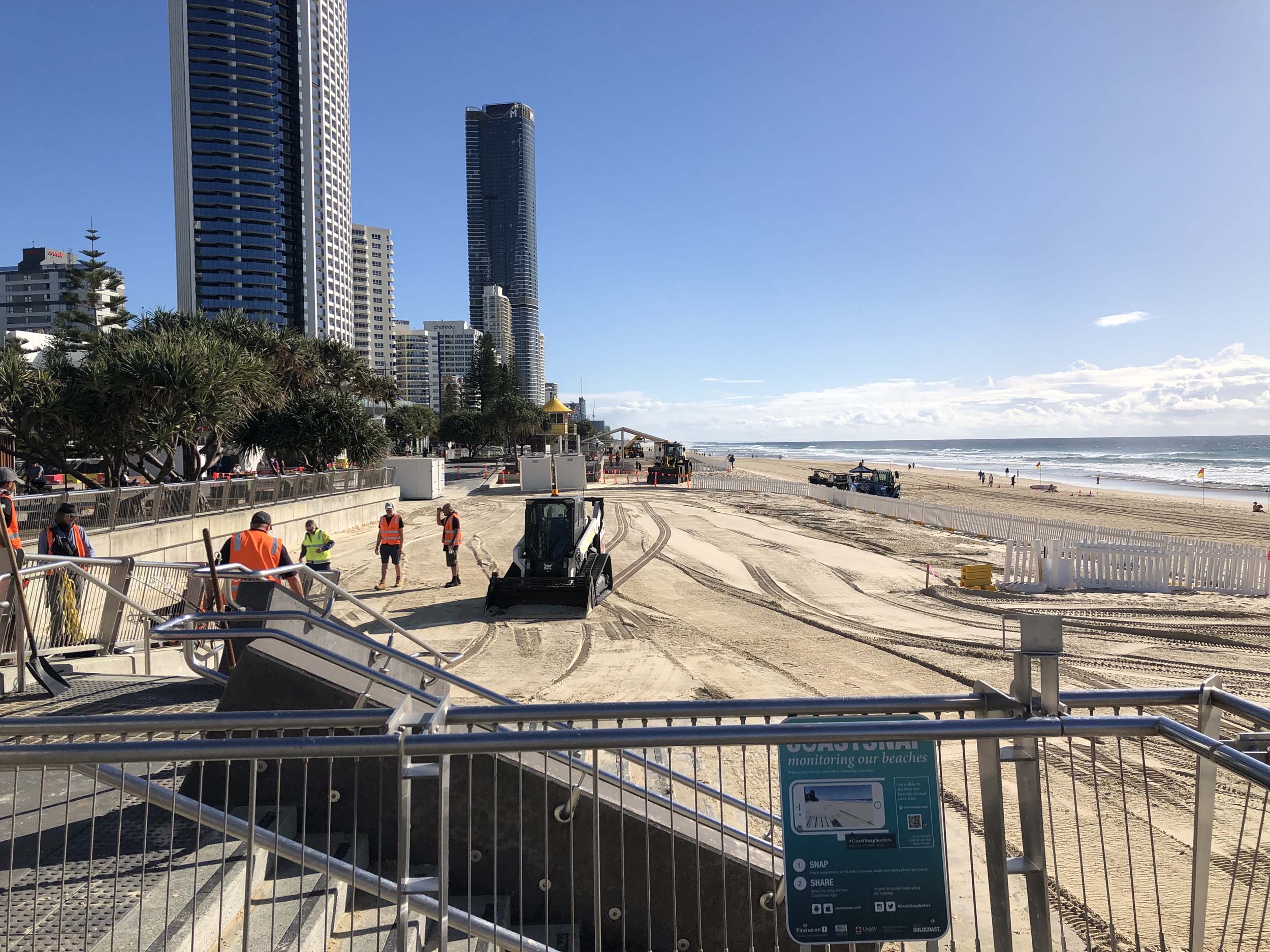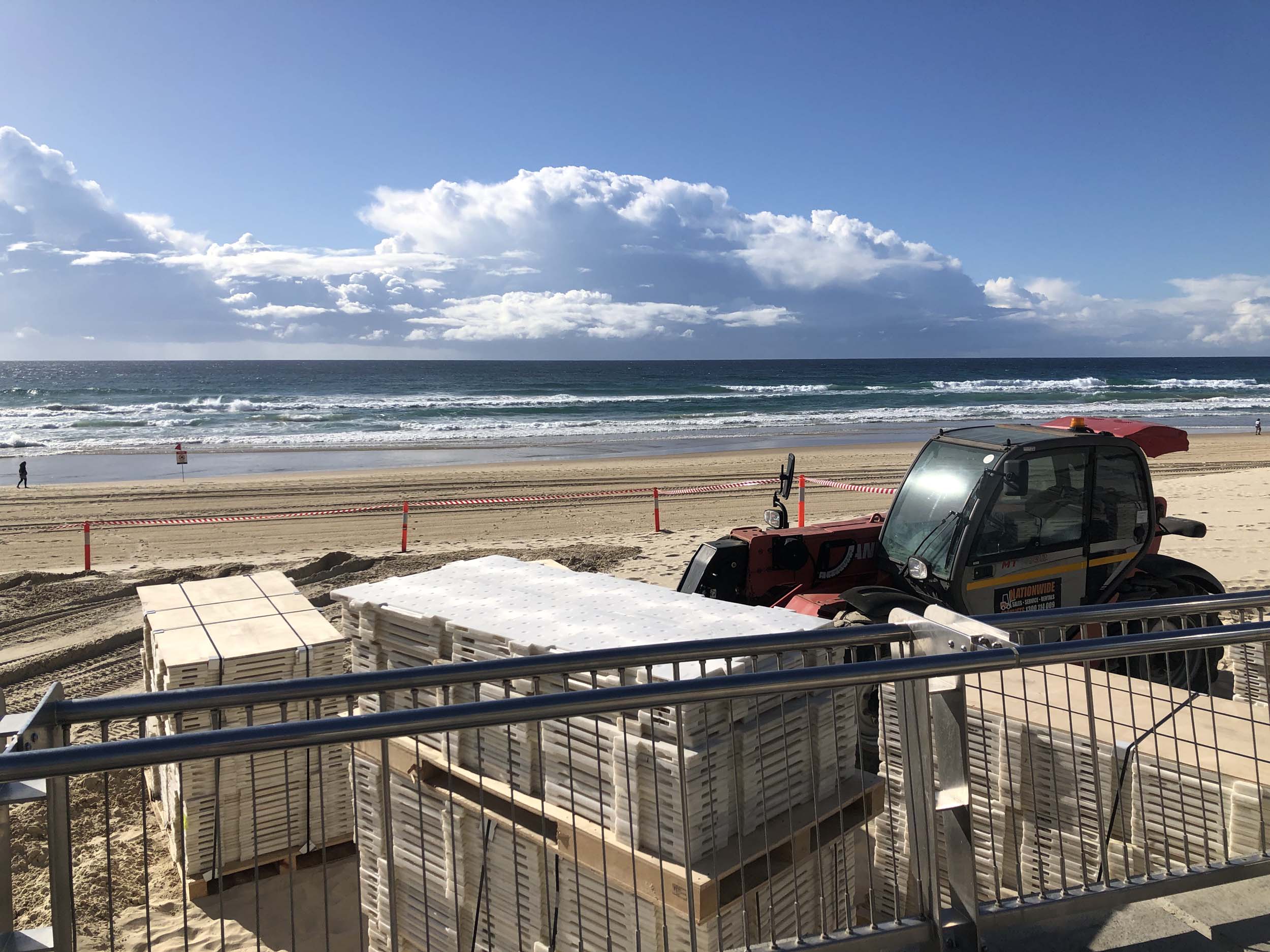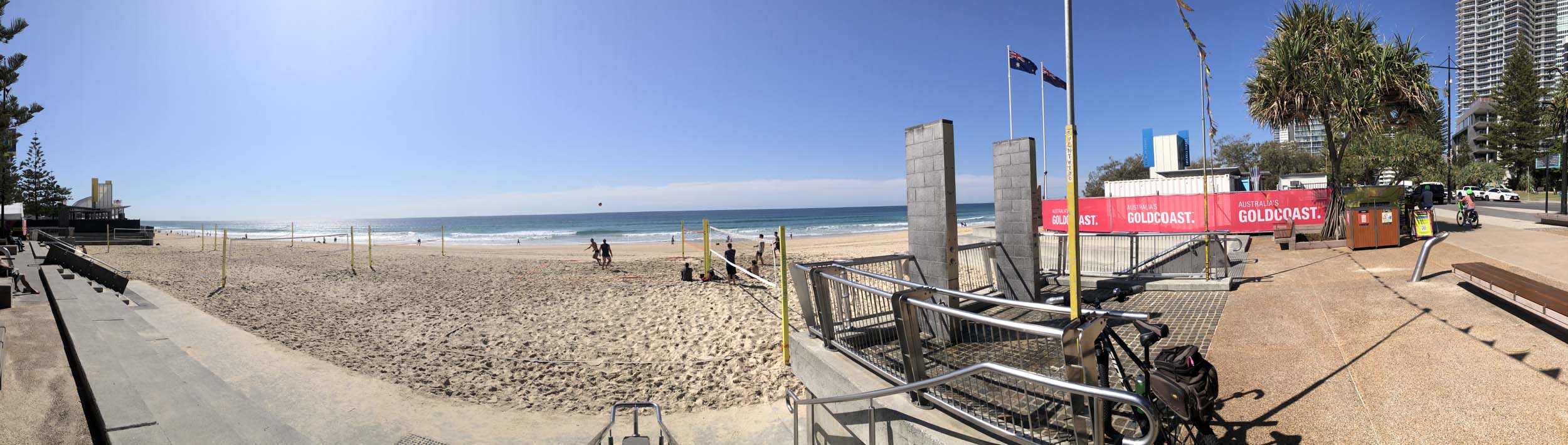 As usual, I rode Northward, to my Lands End turnaround point. Continued through the Broadwater Parklands. The Gold Coast show starts tomorrow and is located in the Parklands, naturally, there was activity everywhere. Did a lap of MacIntosh Is. Over the Bridge at Narrowneck then along the Shared Path, to Surfers, to take my weather photos. They are preparing for the Springtime Festival.