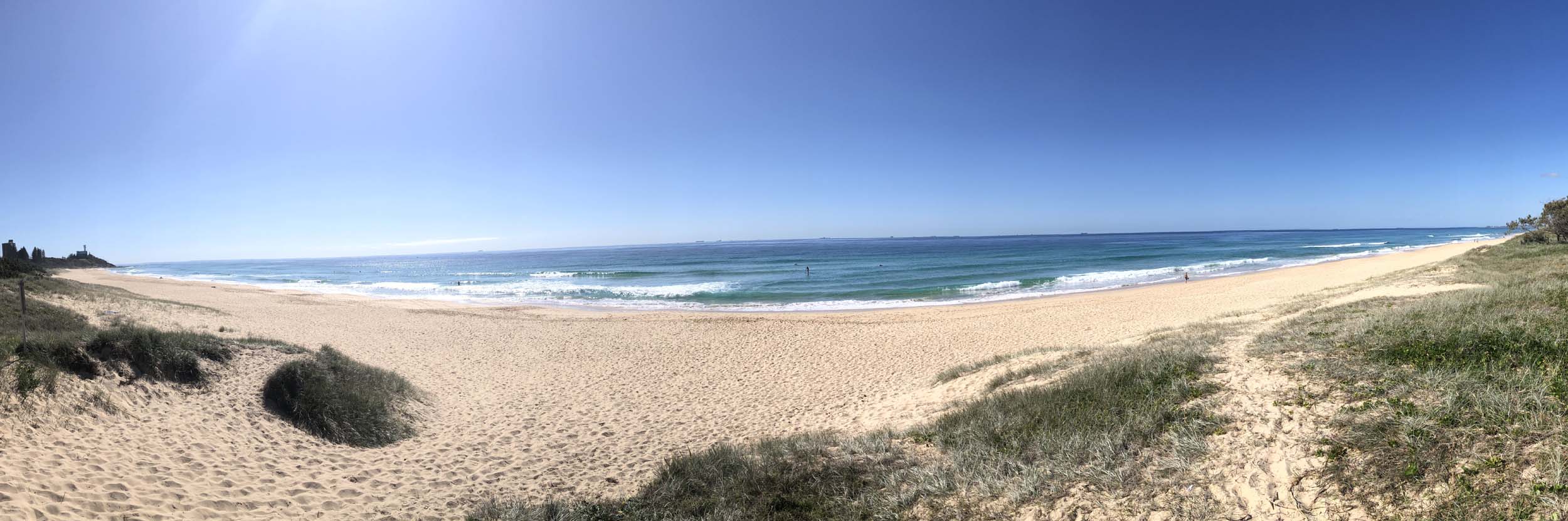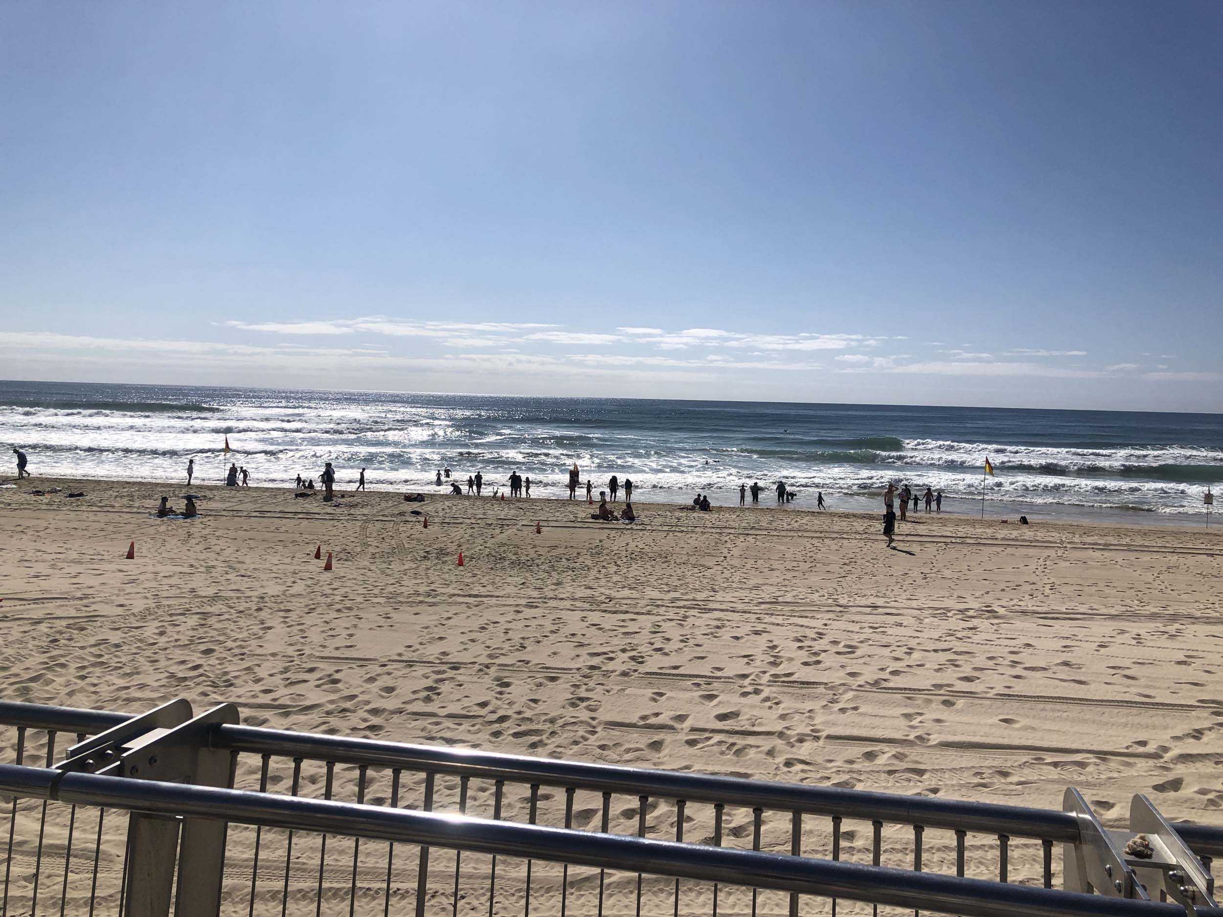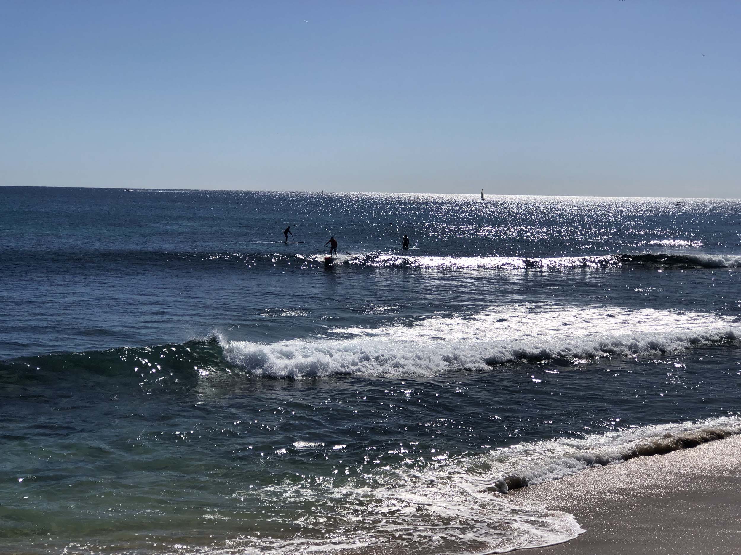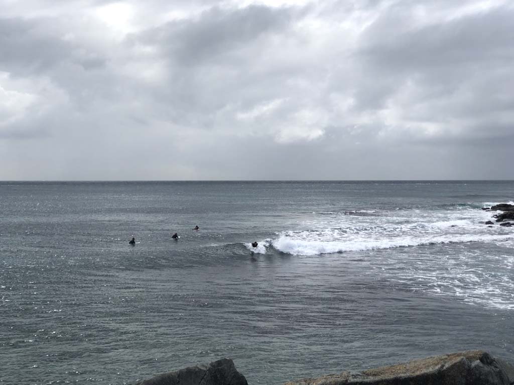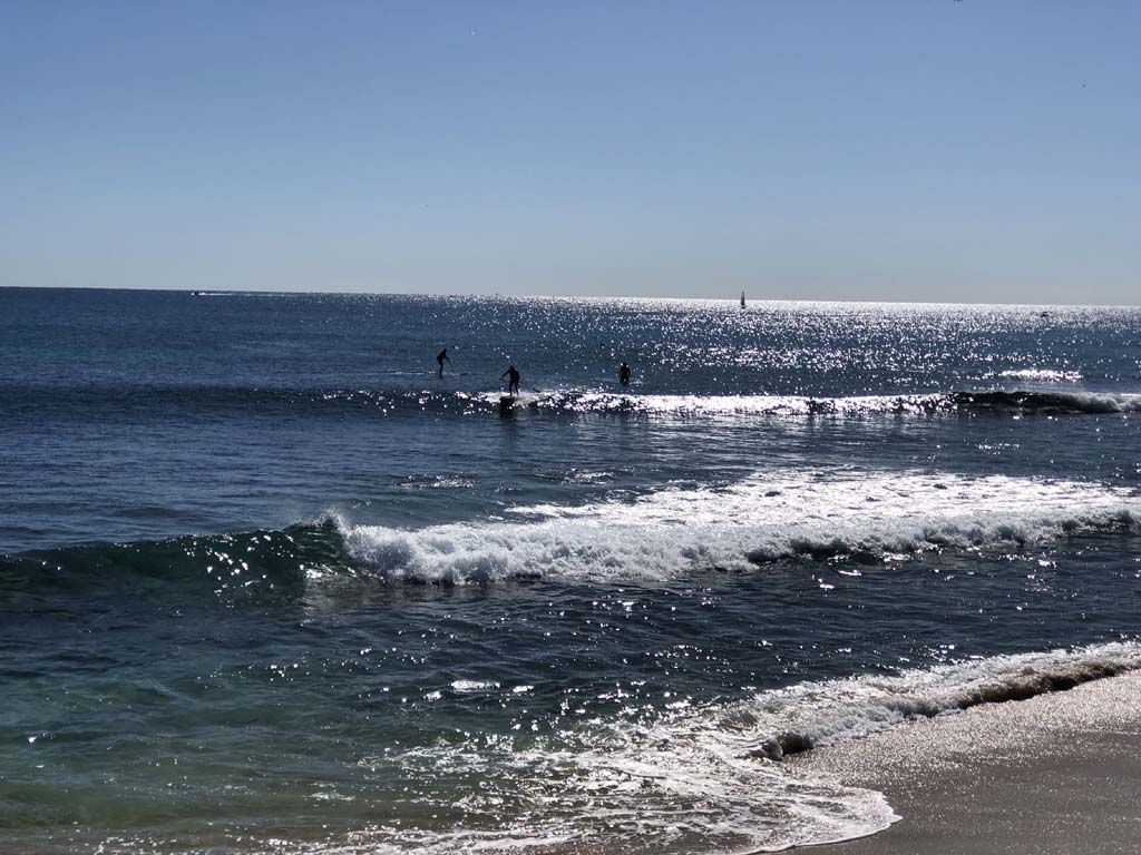 The breeze was blowing from the South East. The ocean had some nice sets of waves coming, which pleased the many surfers.