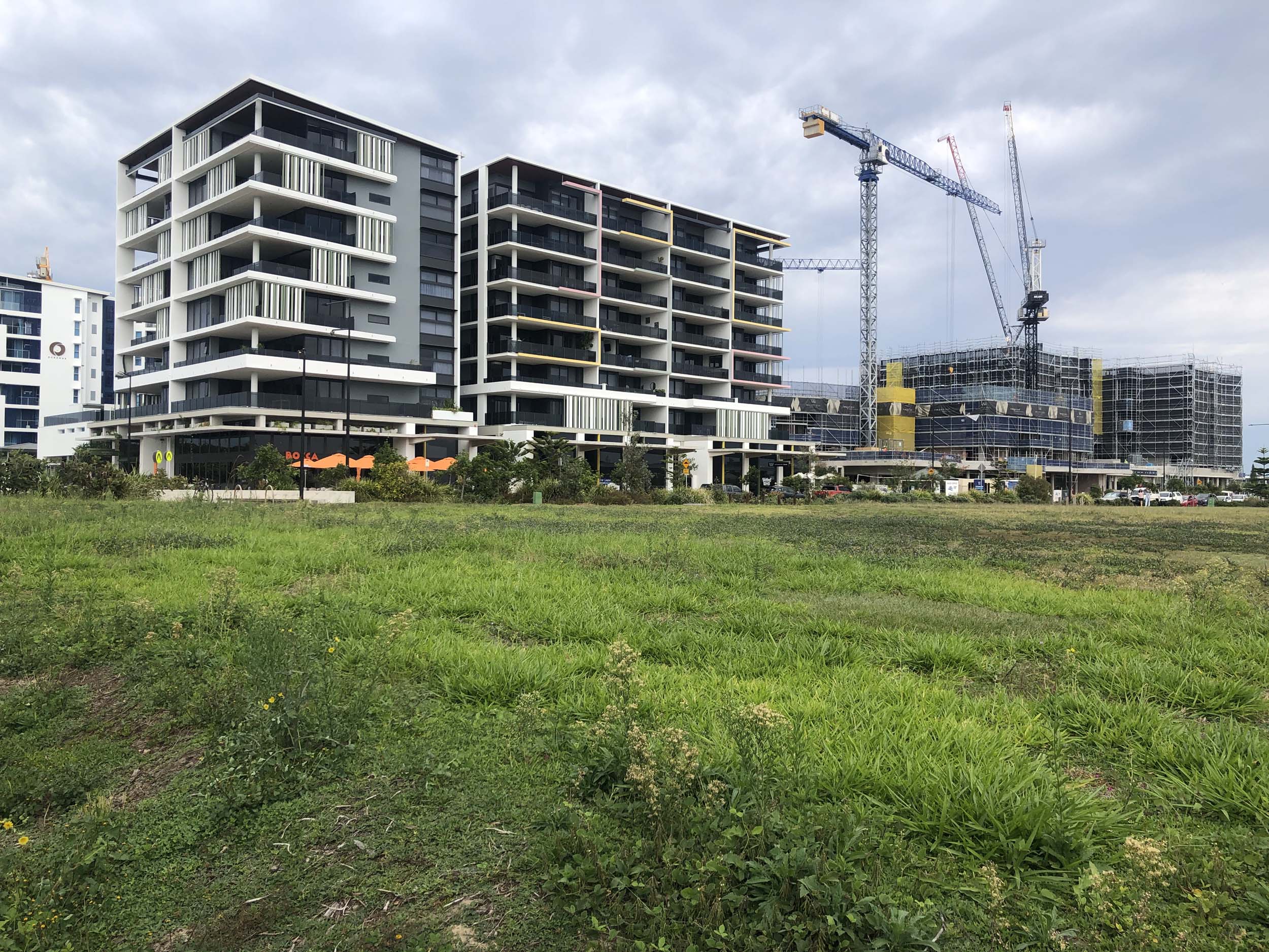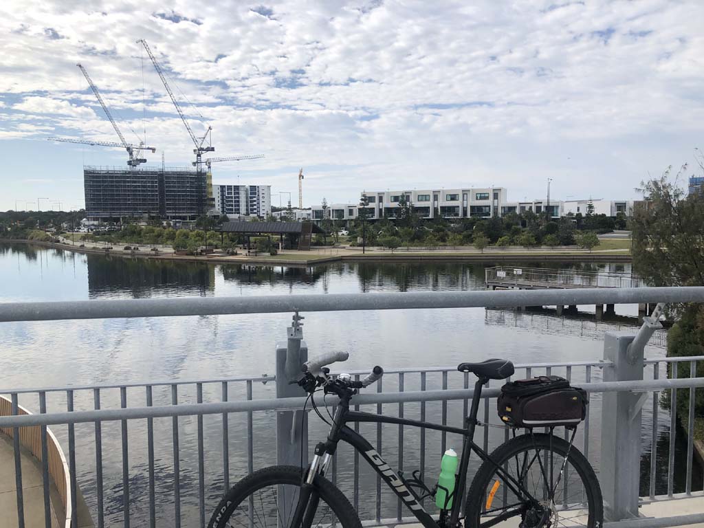 I left the Caravan park and headed along the shared path and sometimes along the quiet back streets parallel to the beach. I rode through the highrises being built in the BIG PADDOCK.