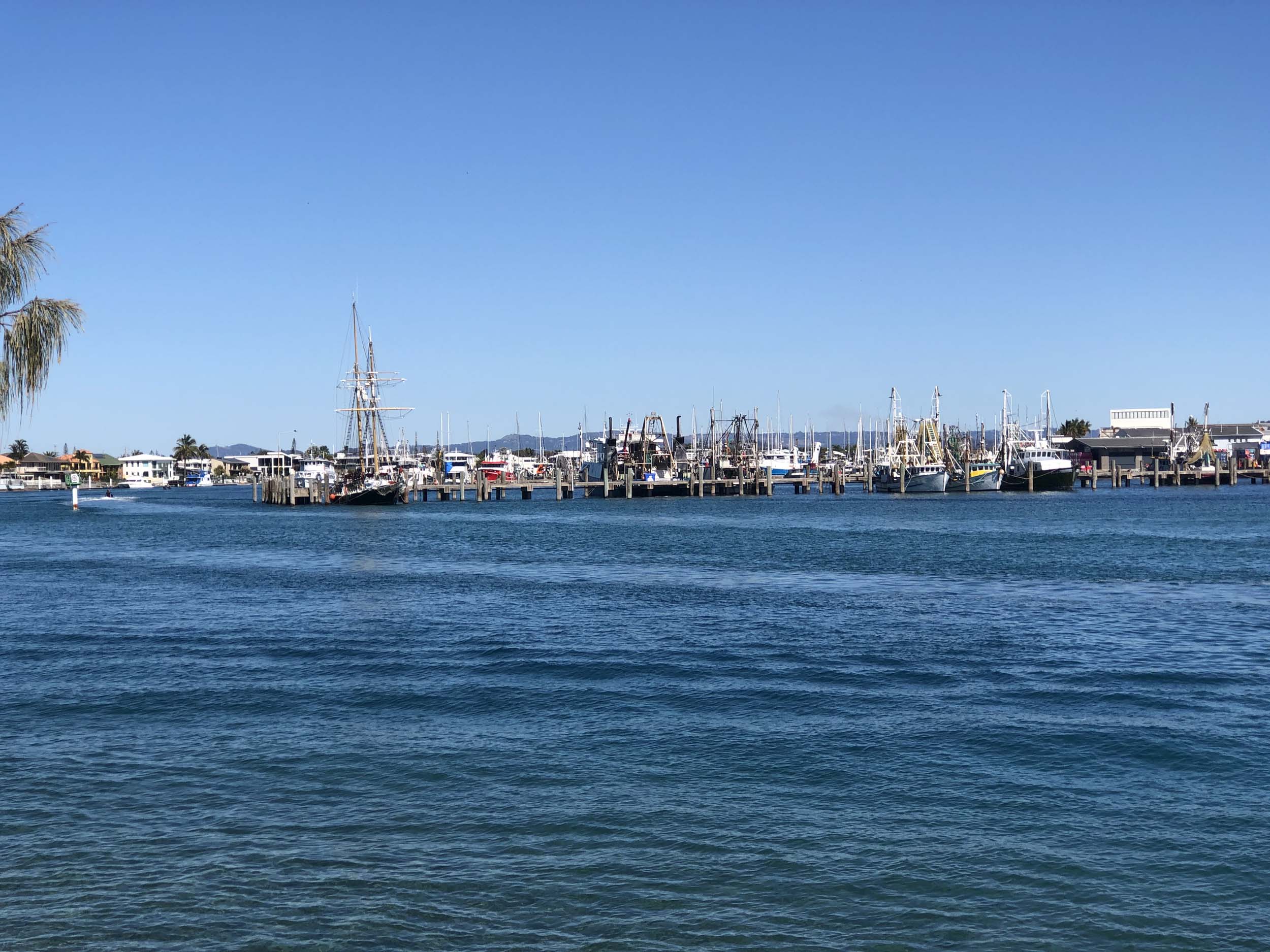 I left home at 7:54am, after going for a coffee and some shopping at Coles Lab Park. The breeze was blowing from the South. The Broadwater had a chop.