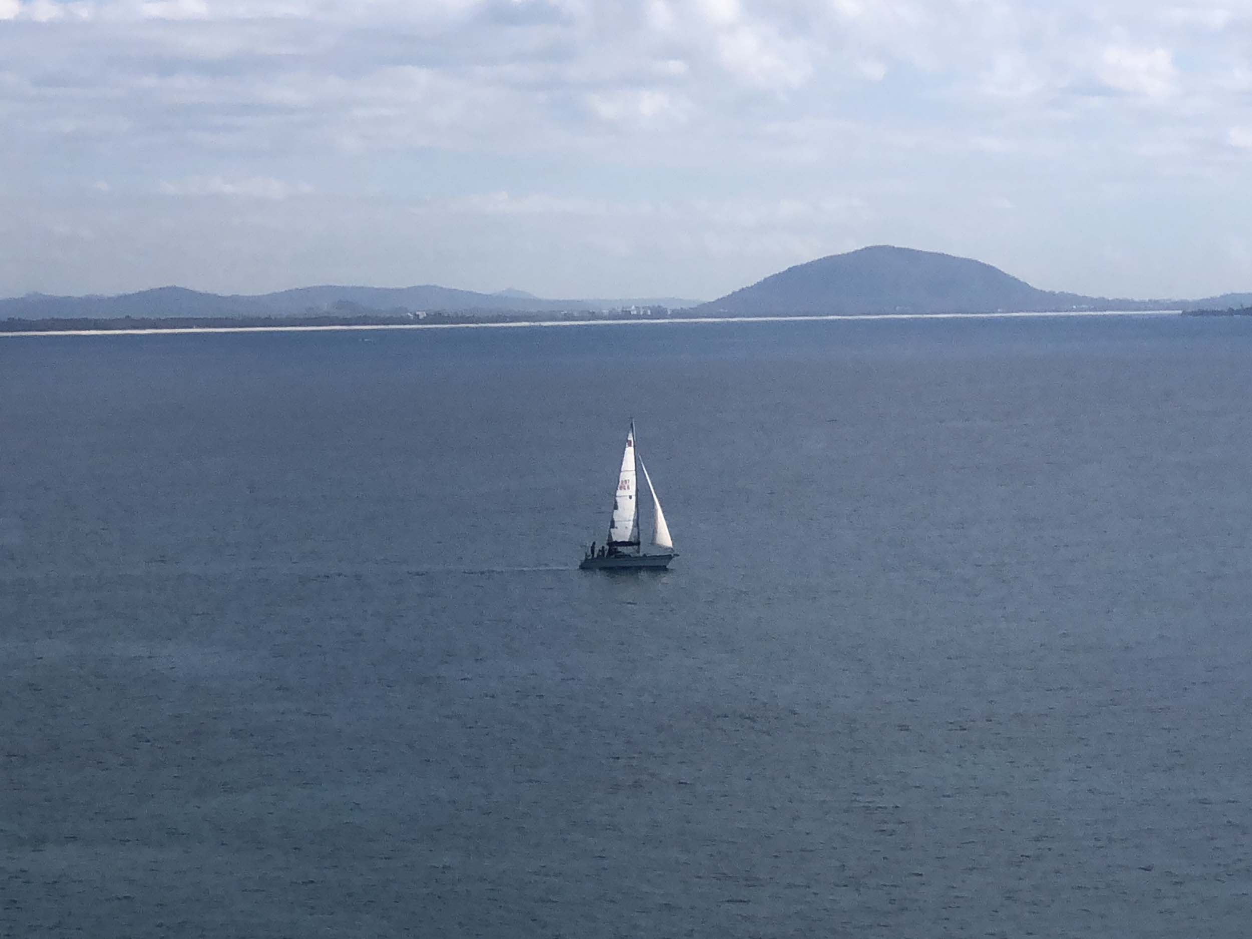 I left home at 7:56am, after going for a coffee and some shopping at Coles Lab Park. The breeze was a light Southerly. The Broadwater was calm.