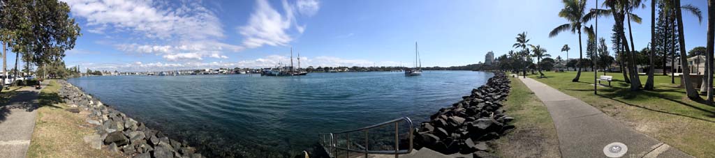 I left The Spit, and continued along the Federation Walk, through the Southport Yacht carpark, beside the Super yacht jetty. Over the Sundale Bridge and continued homeward, giving a lap of 'our' caravan park a miss.