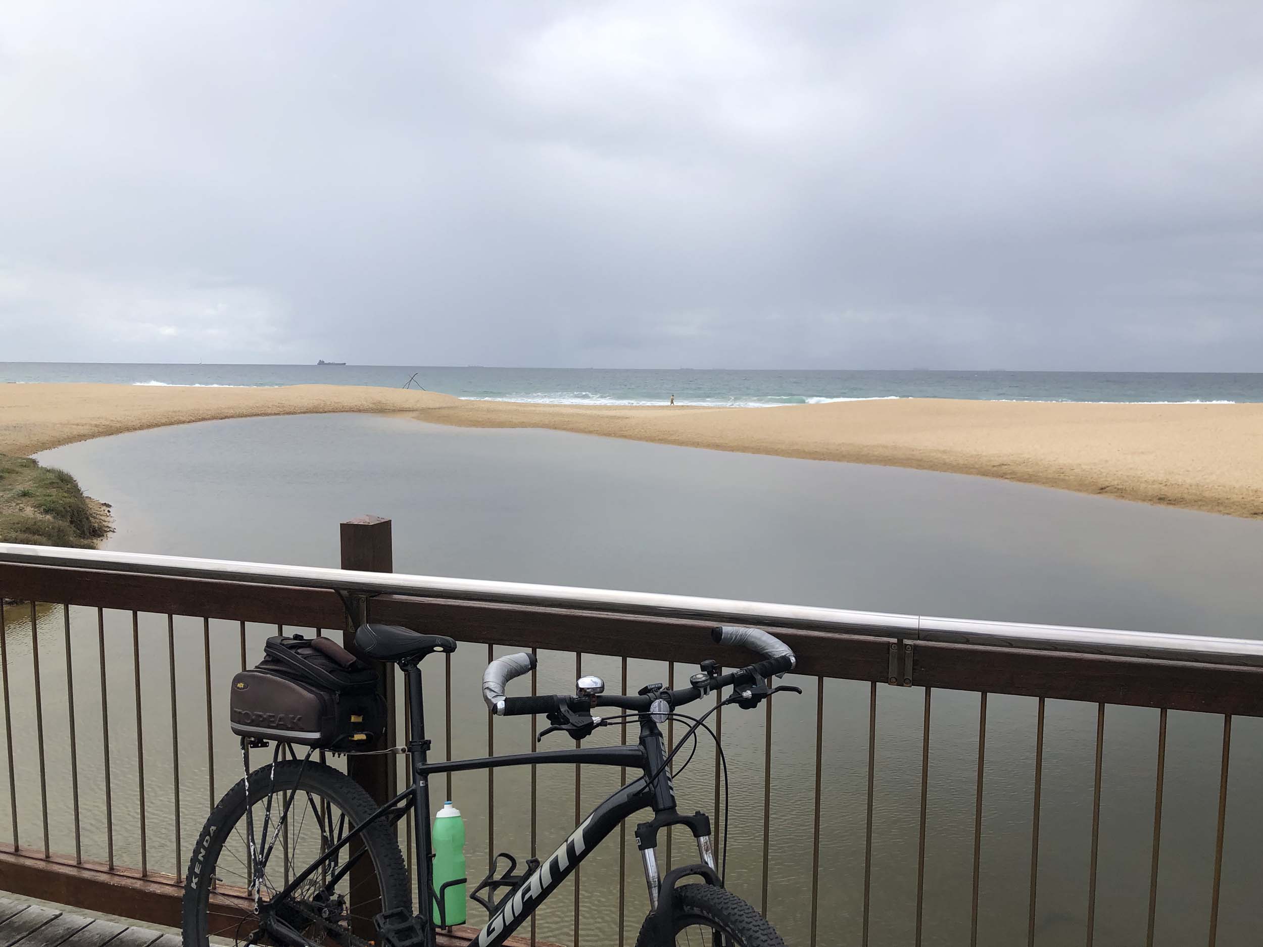 Headed off towards The Seaway/Spit, via the Federation Walk. Continued riding to the tip of the Seawall/Spit. Stopped and took my photos and ate my banana, then rode to the tip of the Moondarewa Spit, took more photos then did another lap to both Spits. During my 2 laps, I was hit 5 times by the same magpie. No damage to me, as I am prepared for their attacks.