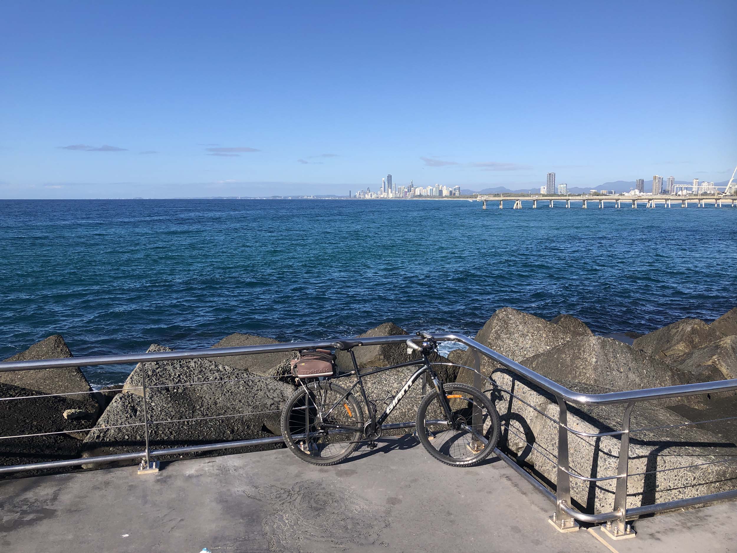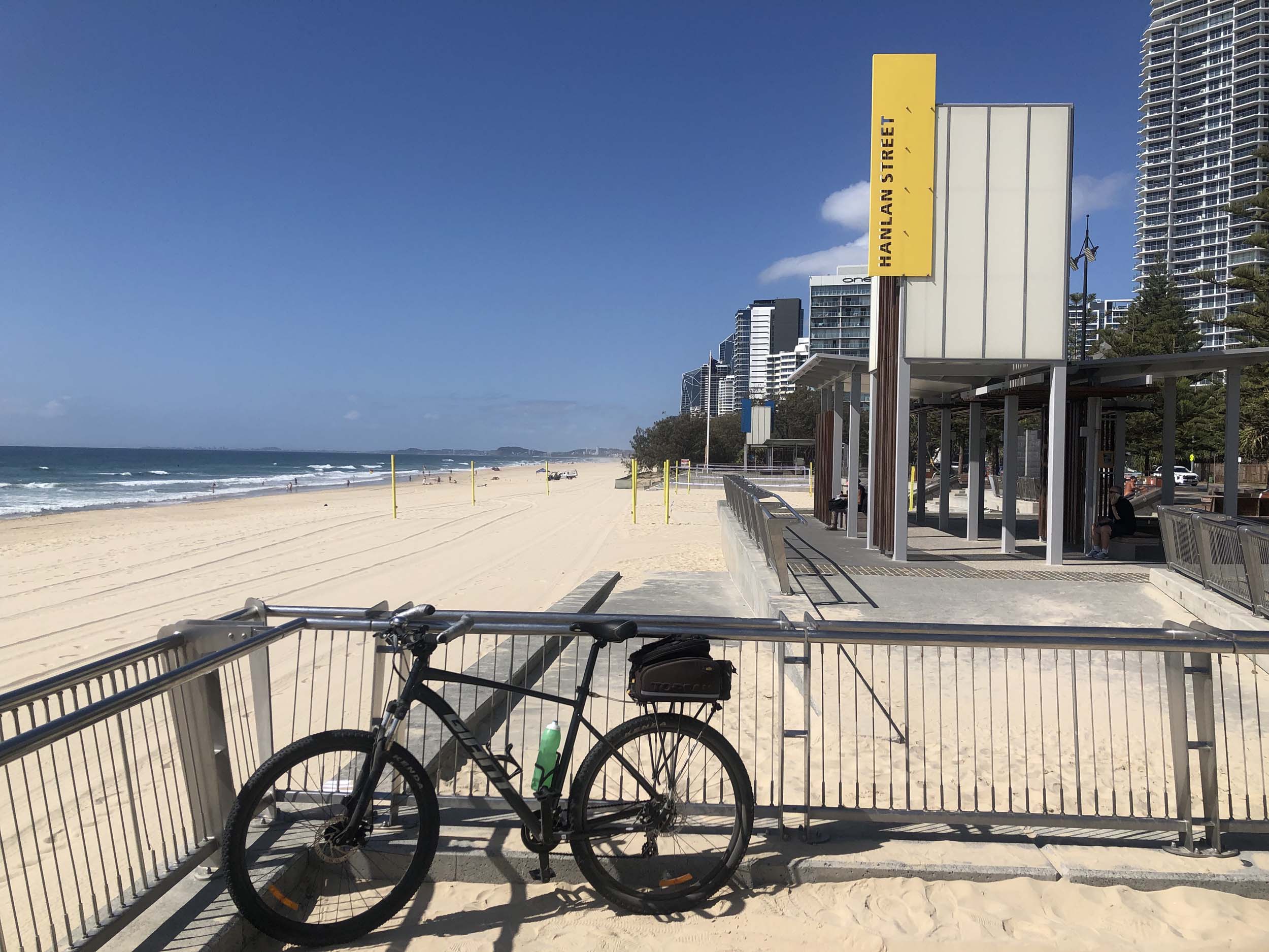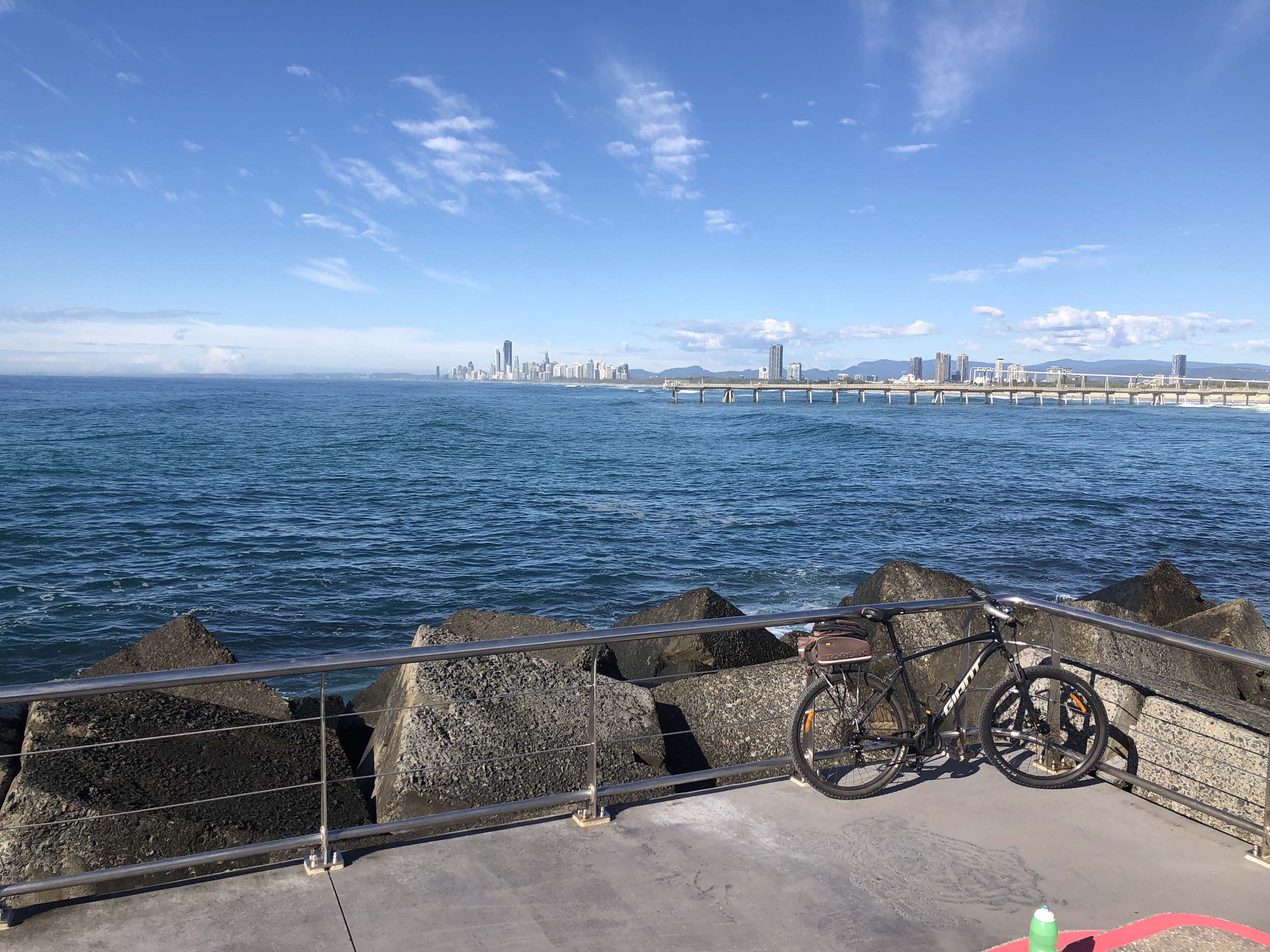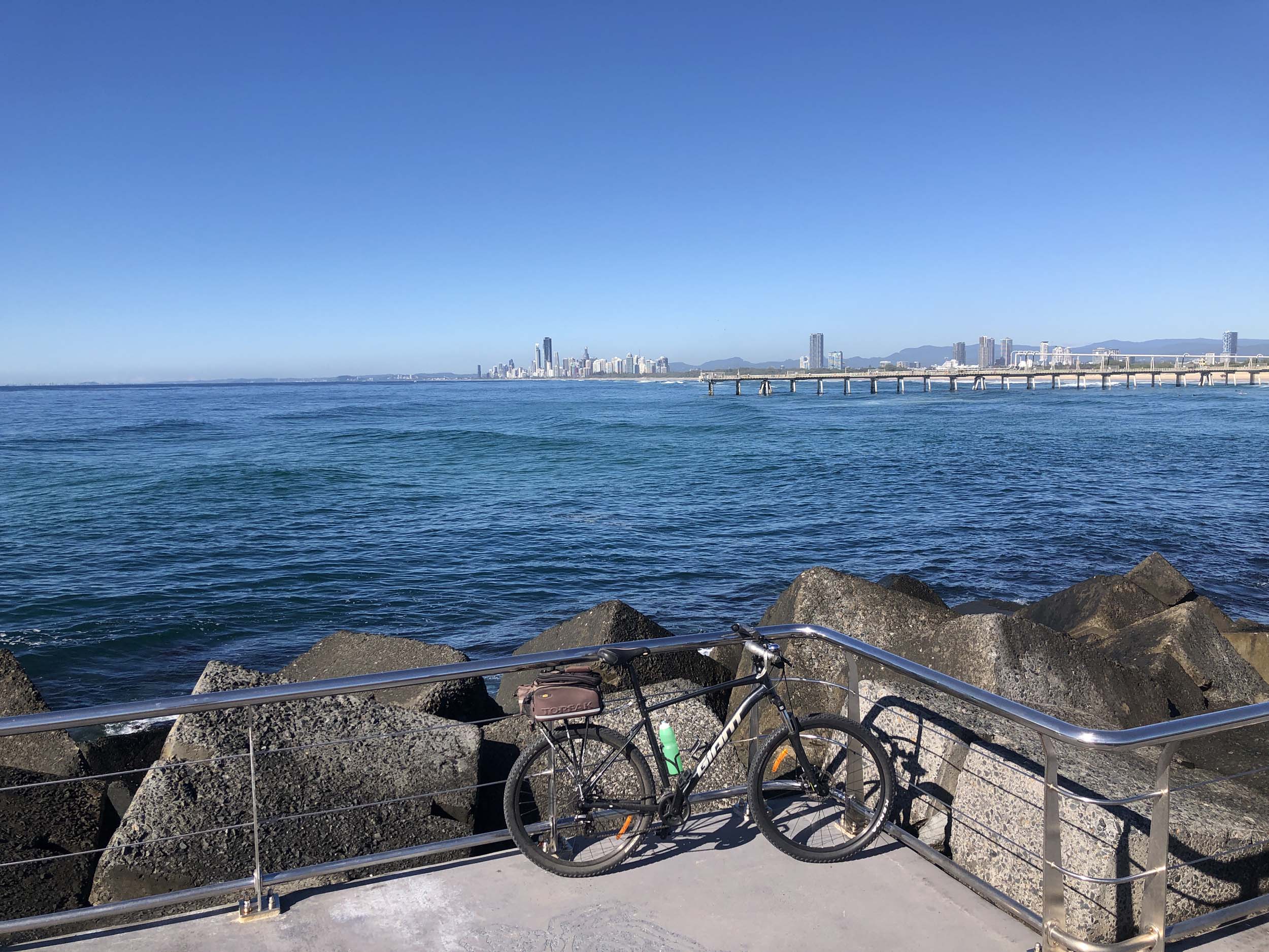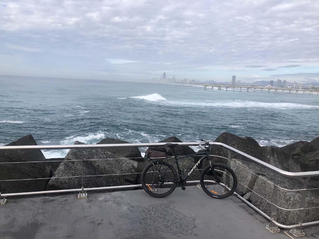 Home to Turnaround Pt down to Surfers via GC600 Park to Surfers to The Spit (both ends - twice) then back through GC600 Park back to Cafe Rockpool and finally back Home about 50+kms.