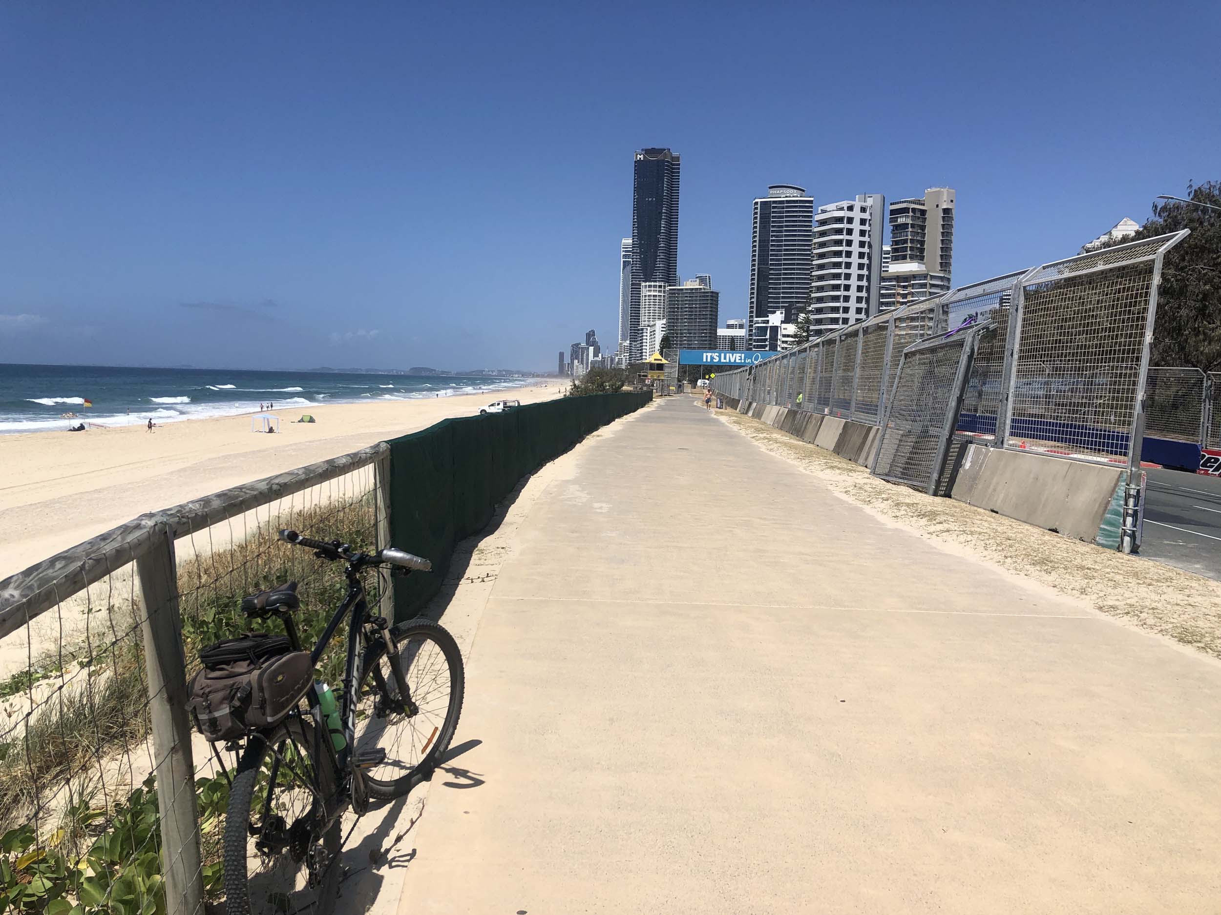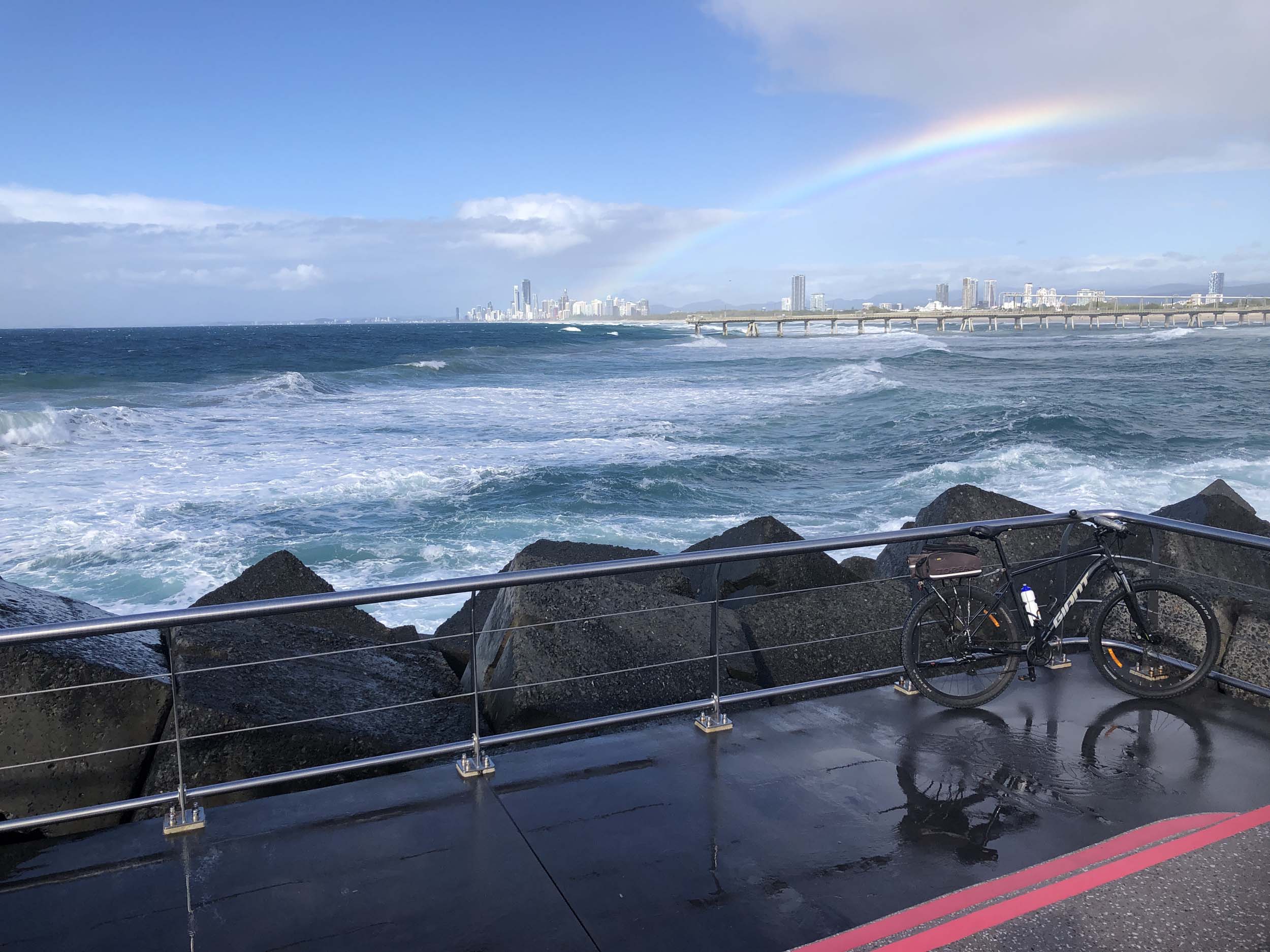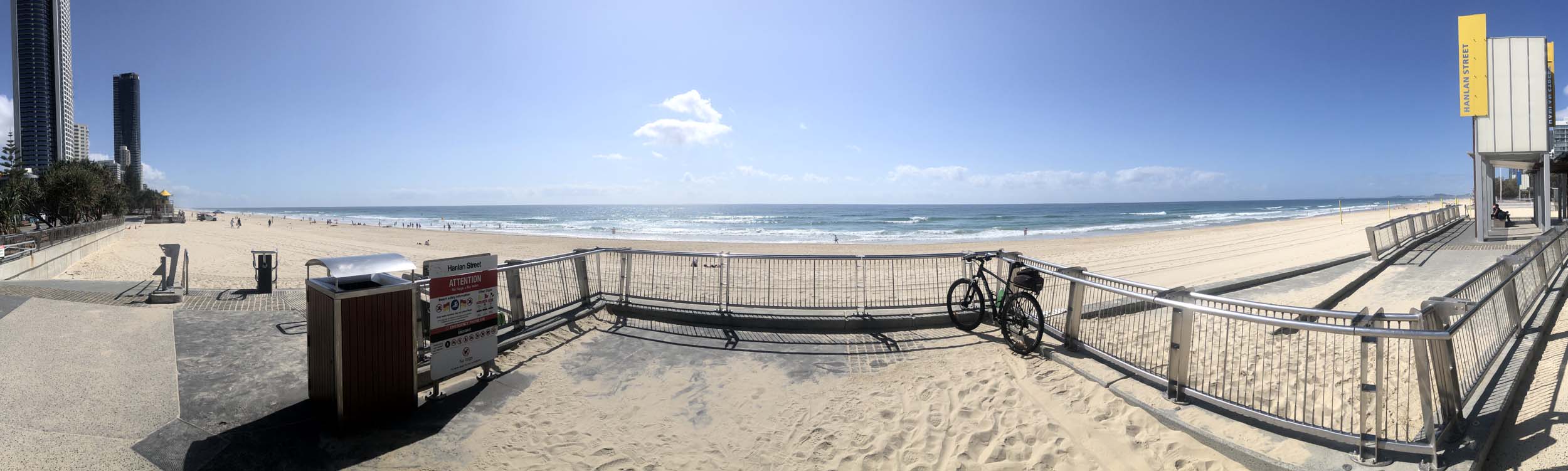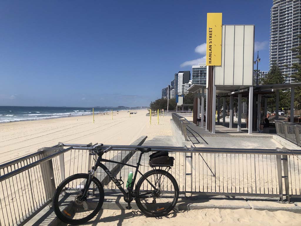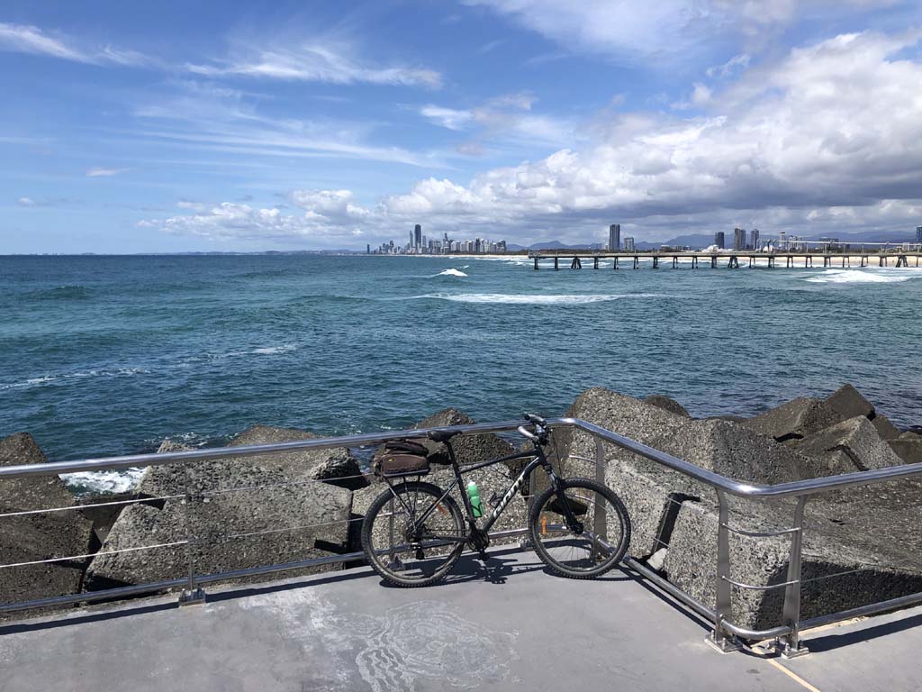Home to Turnaround Pt down to Surfers via GC600 Park to Surfers to The Spit (both ends - twice) then back through GC600 Park back to Cafe Rockpool and finally back Home about 50+kms.