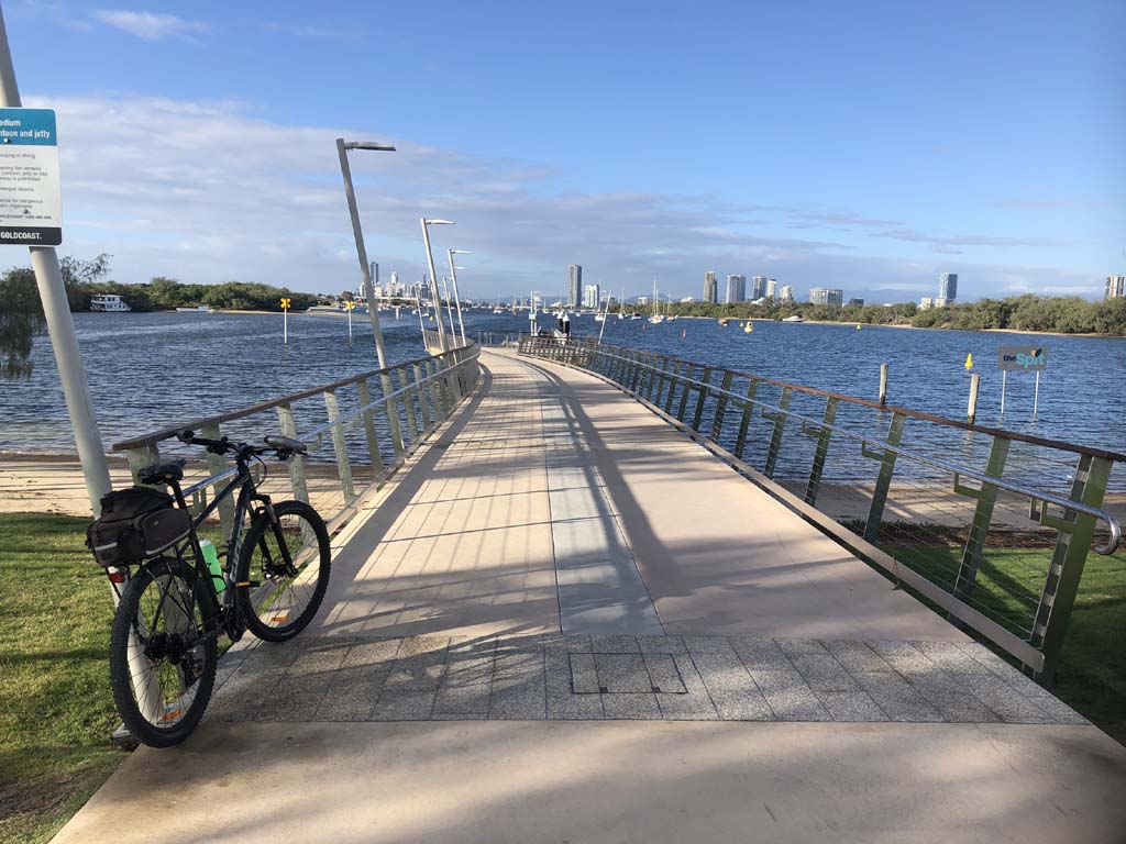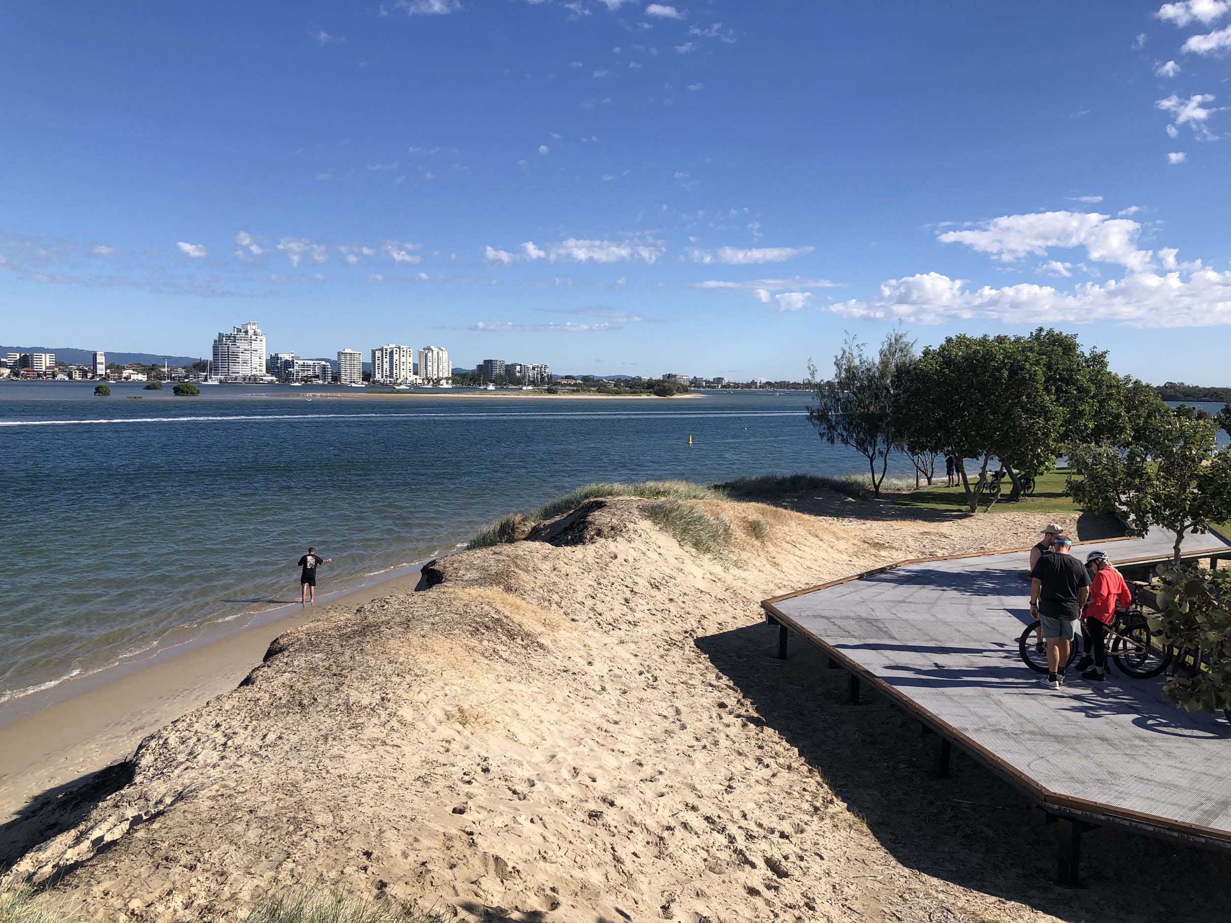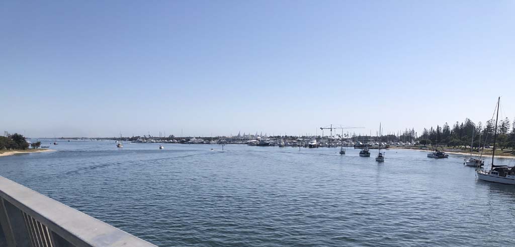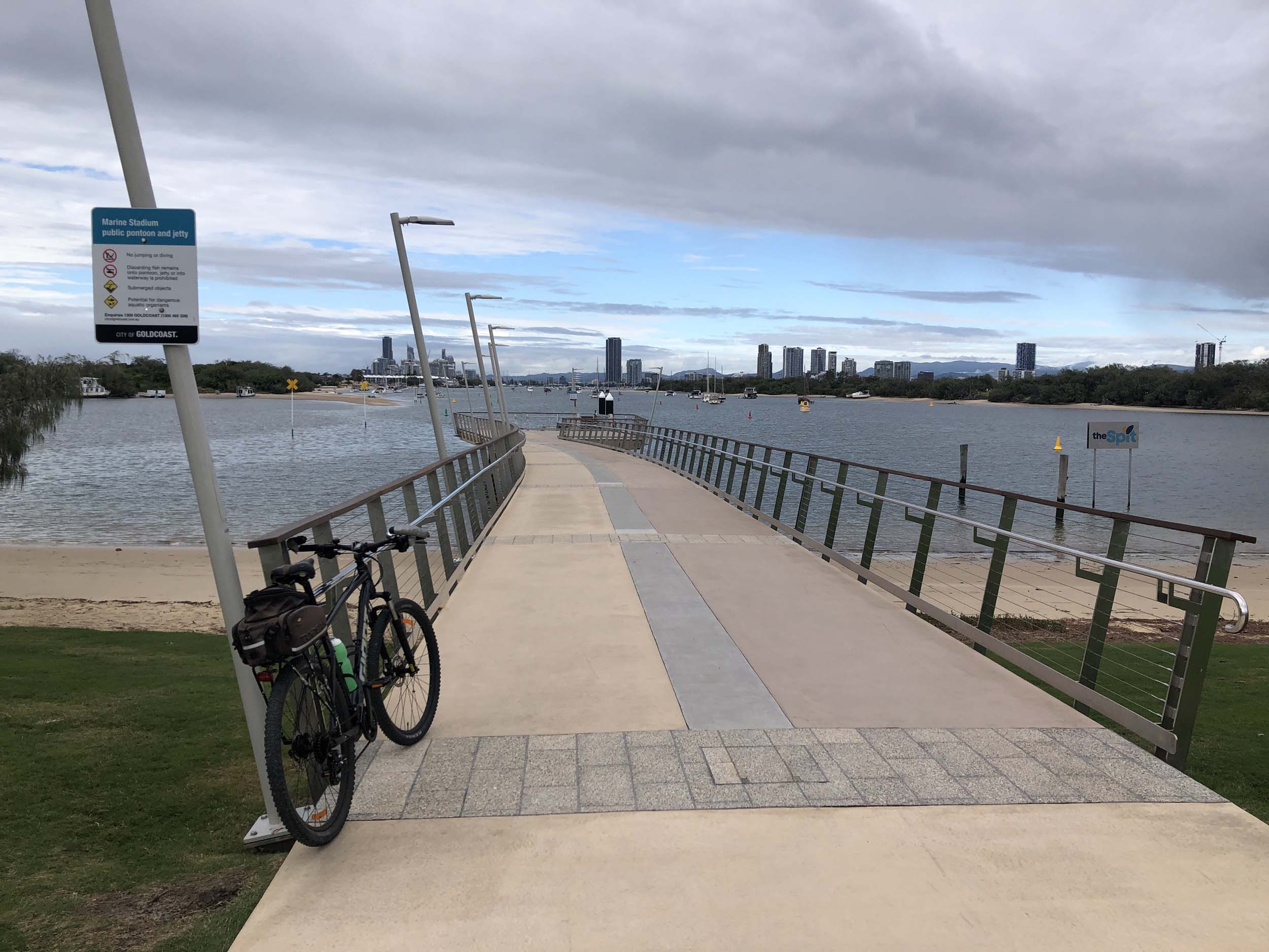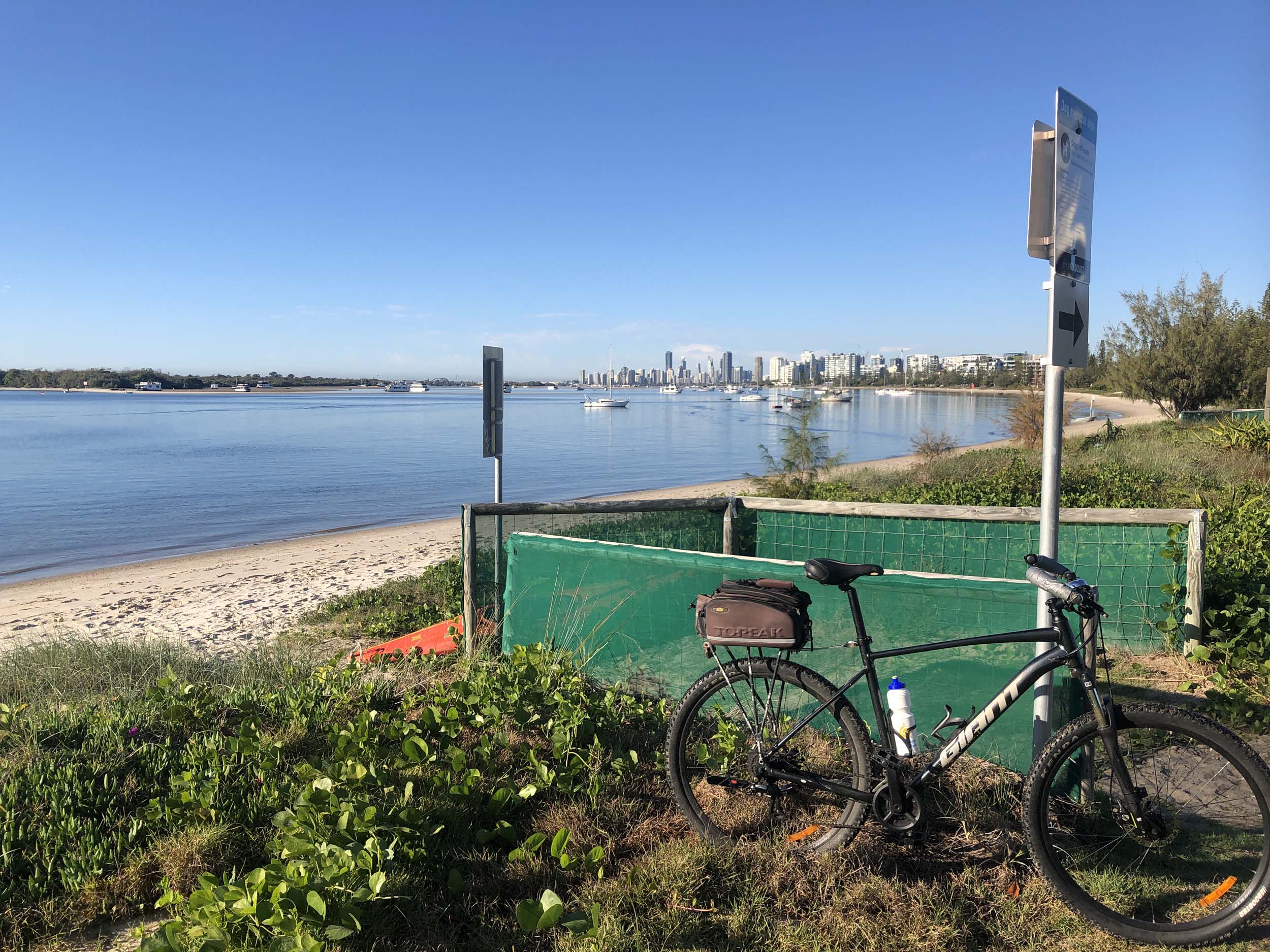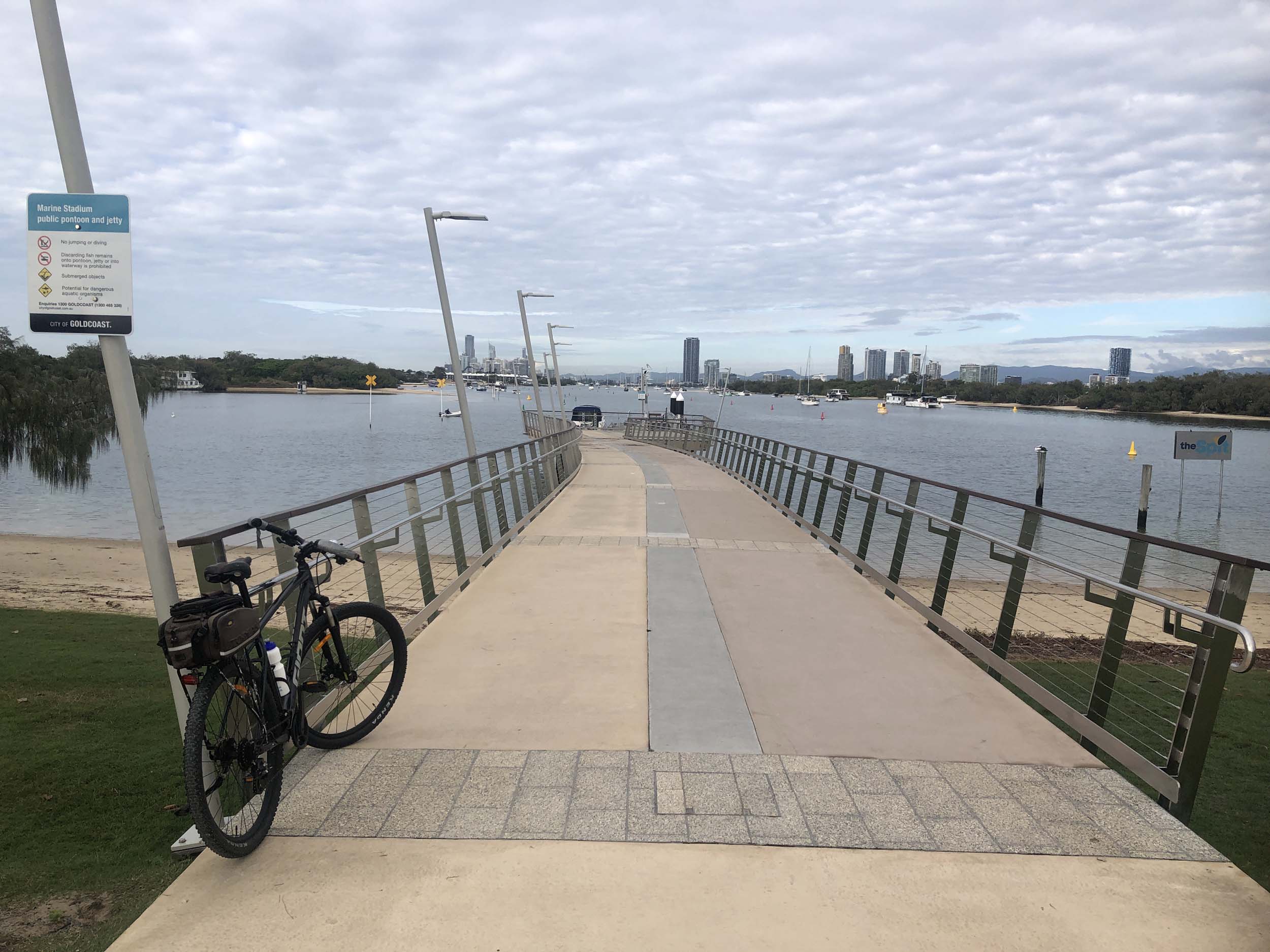 Continued through the Southport YC, along the jetties at Marina Mirage, then around the edge of the Seaworld carpark, then continued along the shared path to The Spit.
