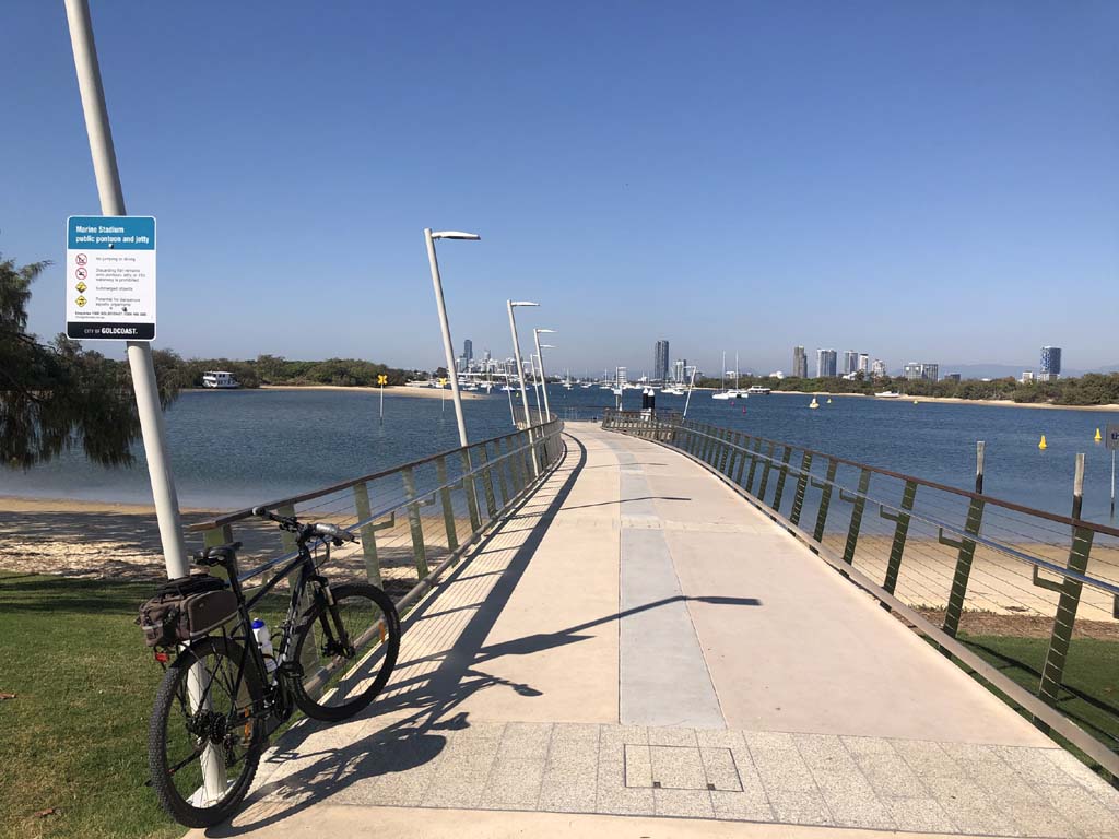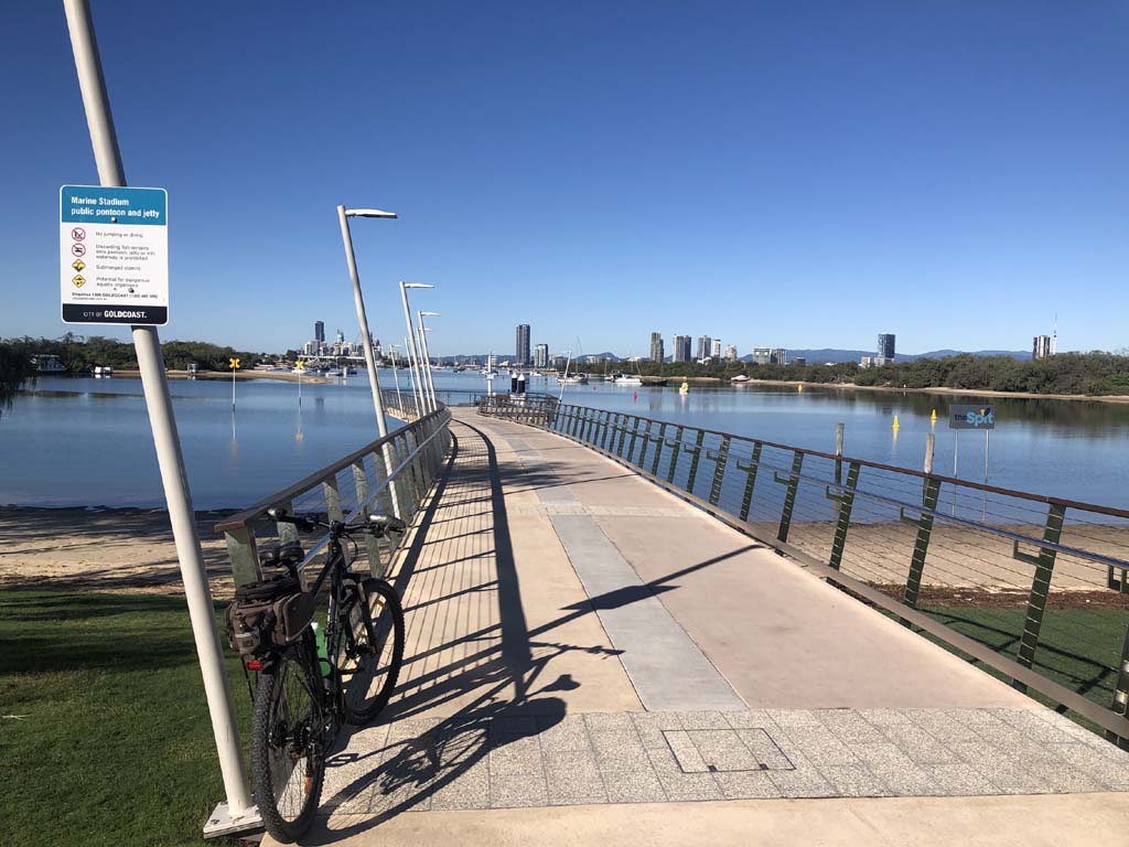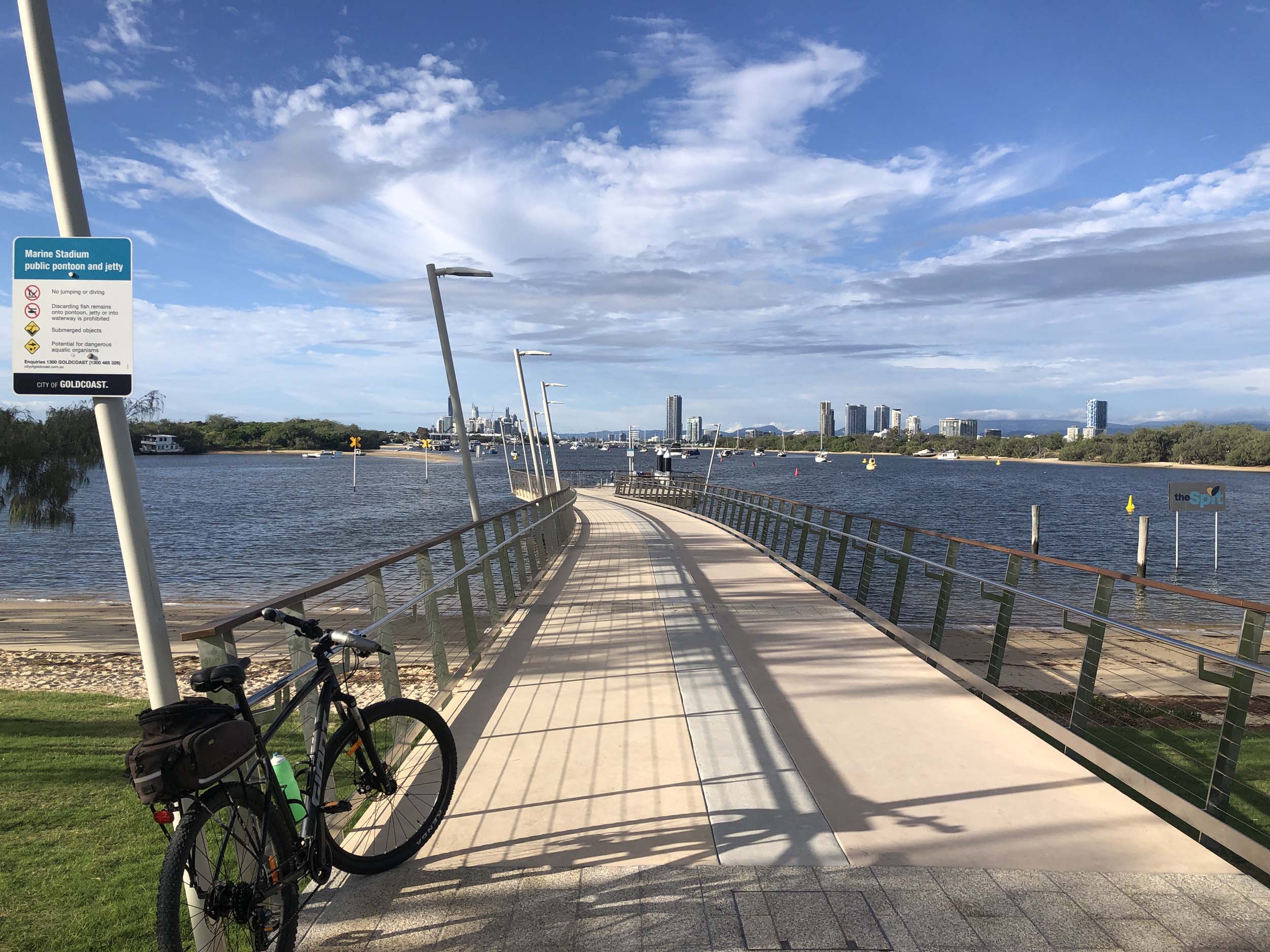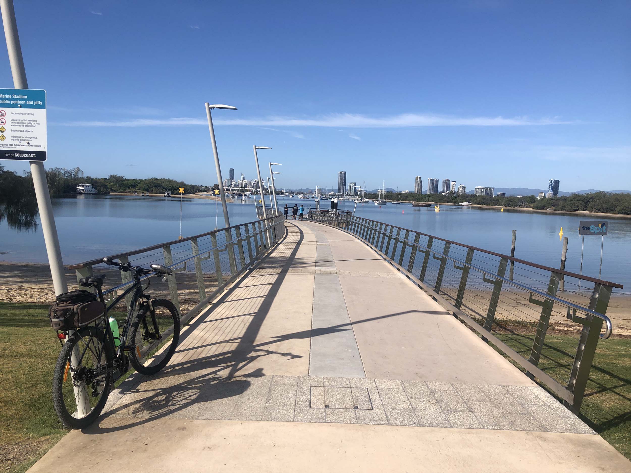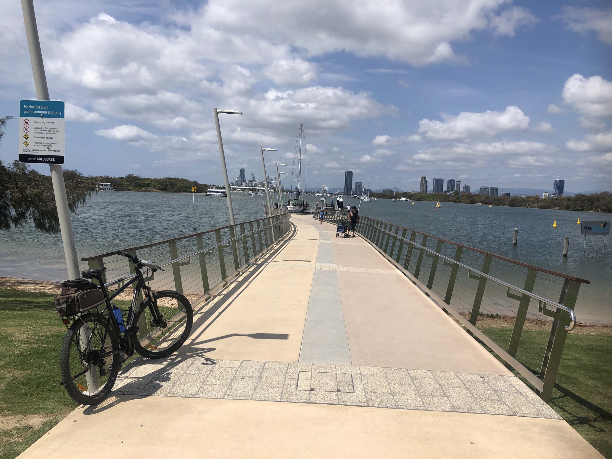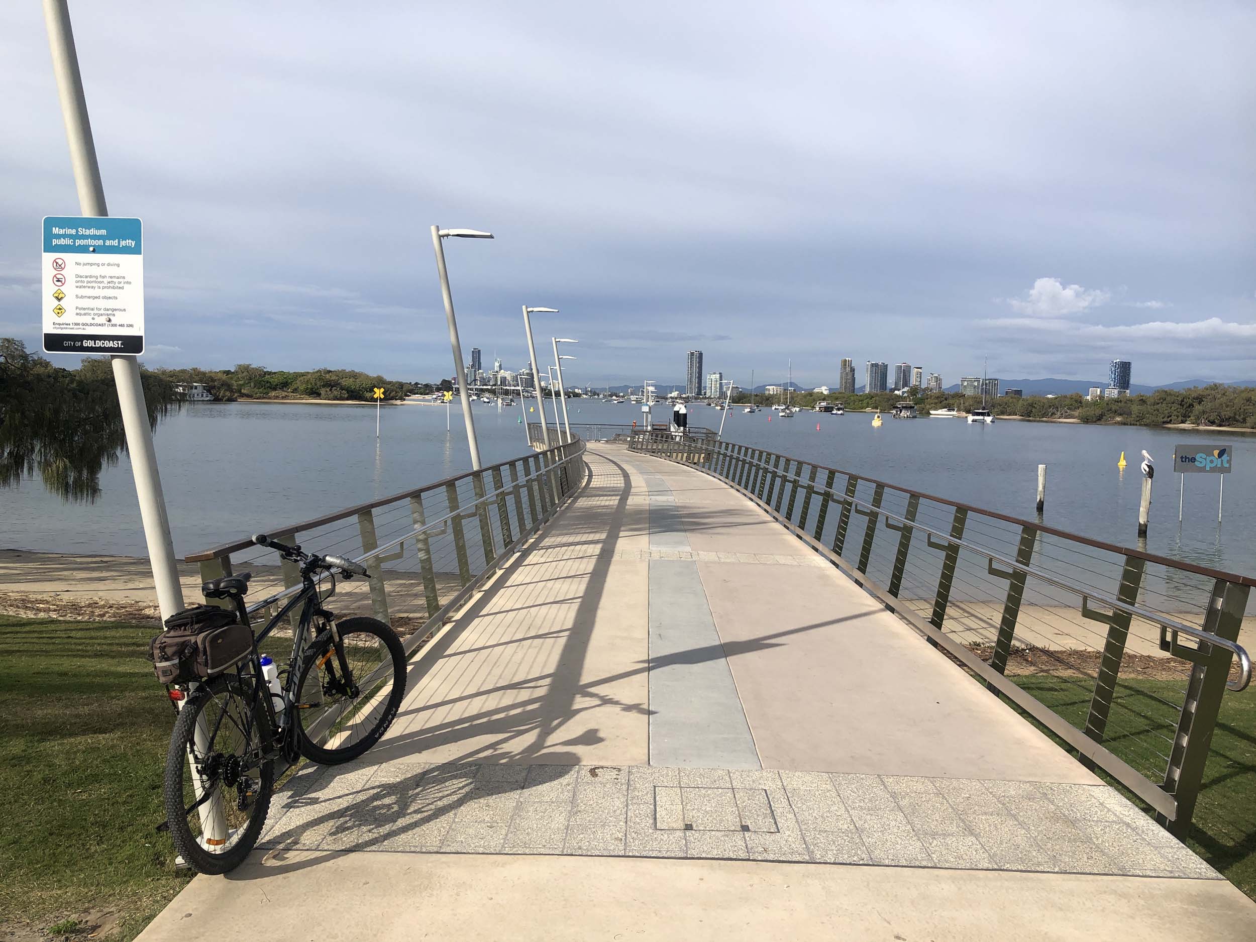 Continued through the Southport YC, along the jetties at Marina Mirage, then around the edge of the Seaworld carpark, then continued along the shared path to The Spit.