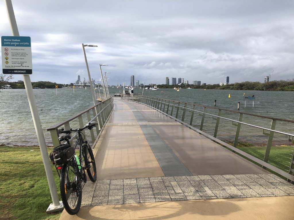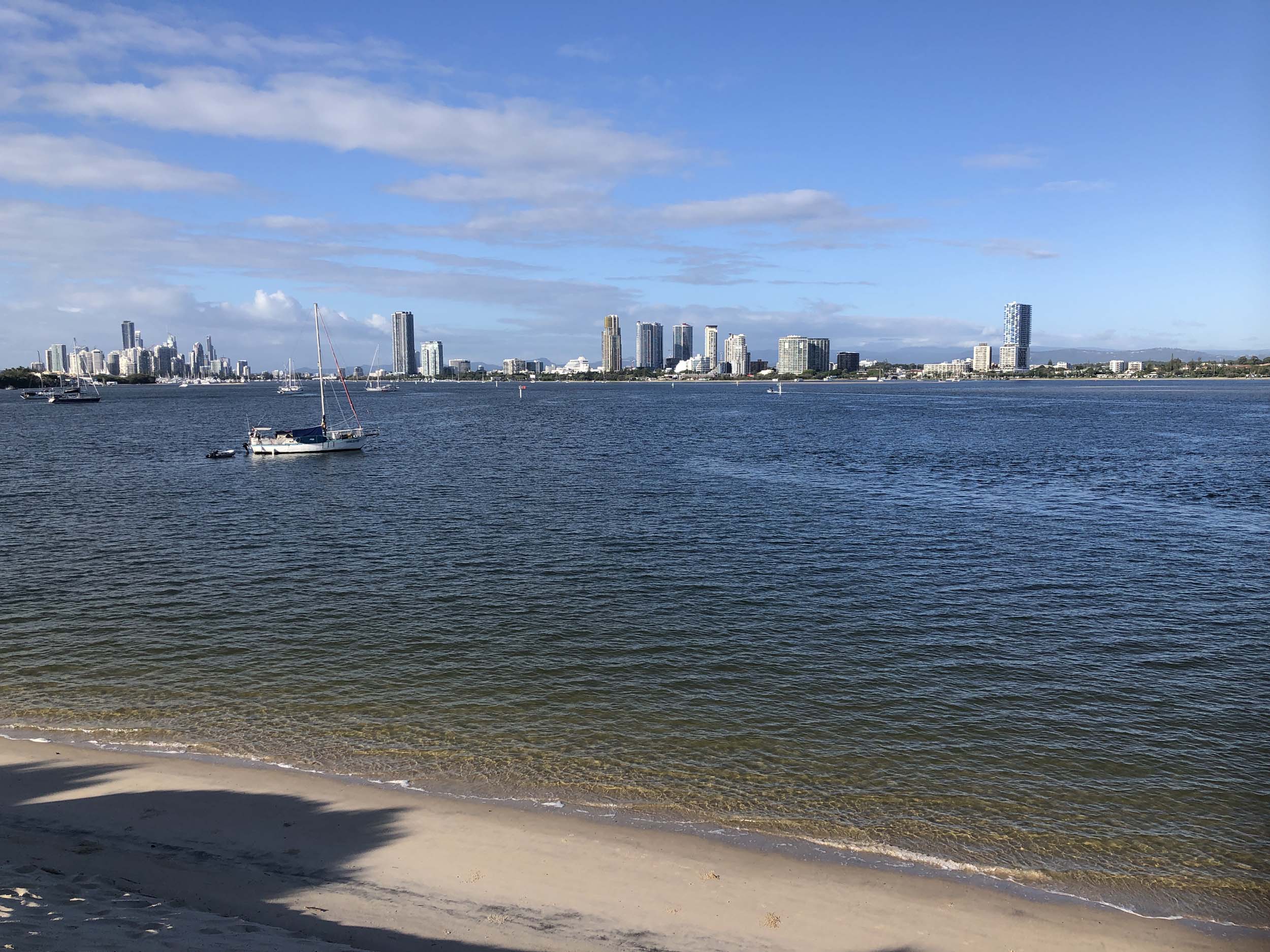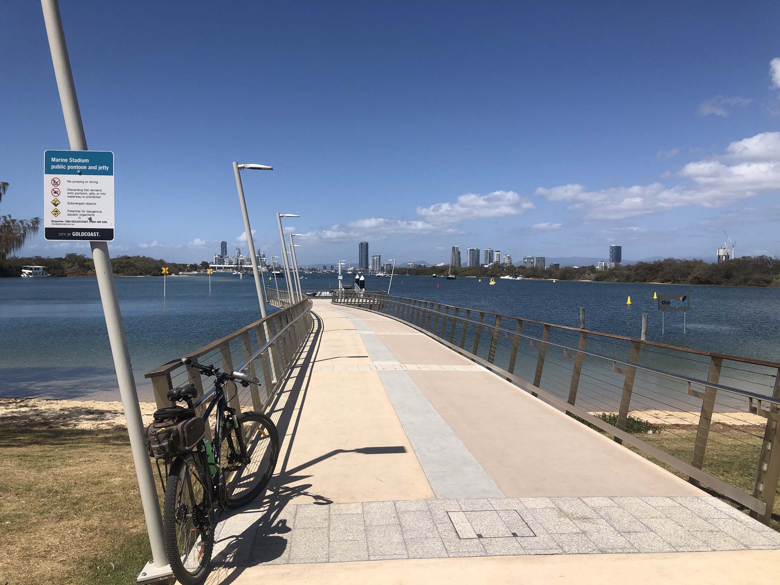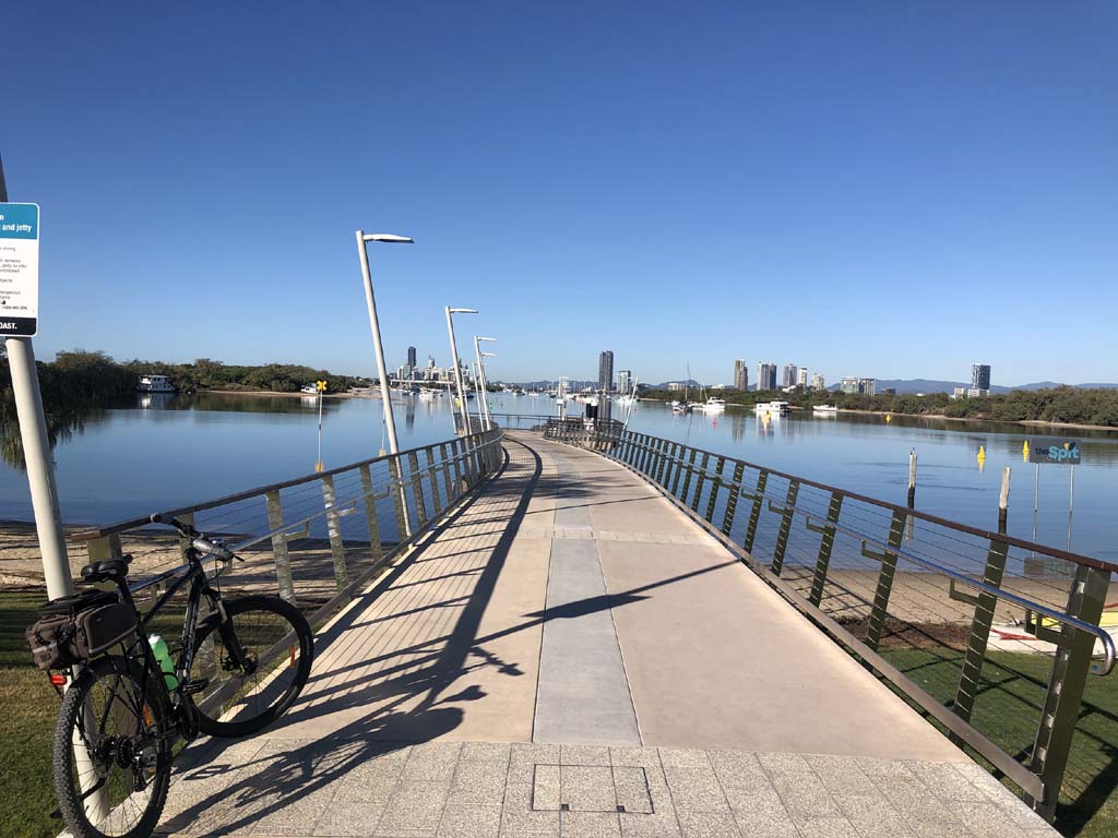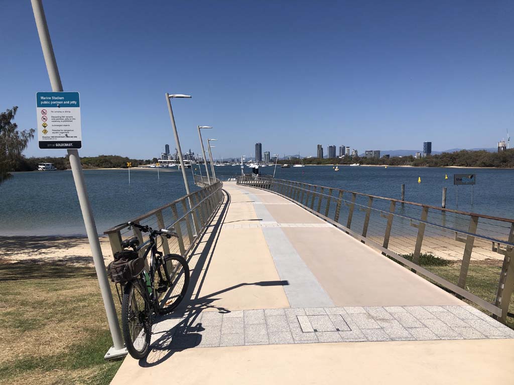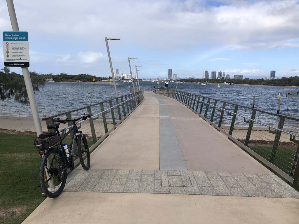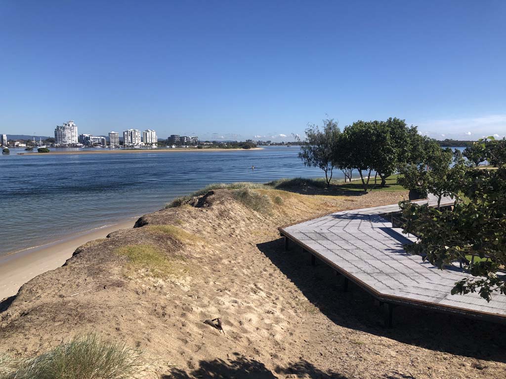 Continued through the Southport YC, along the jetties at Marina Mirage, then around the edge of the Seaworld carpark, then continued along the shared path to The Spit.