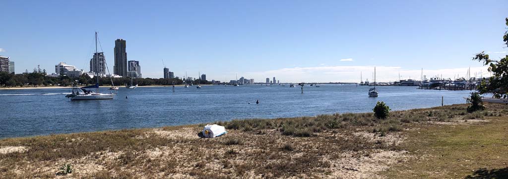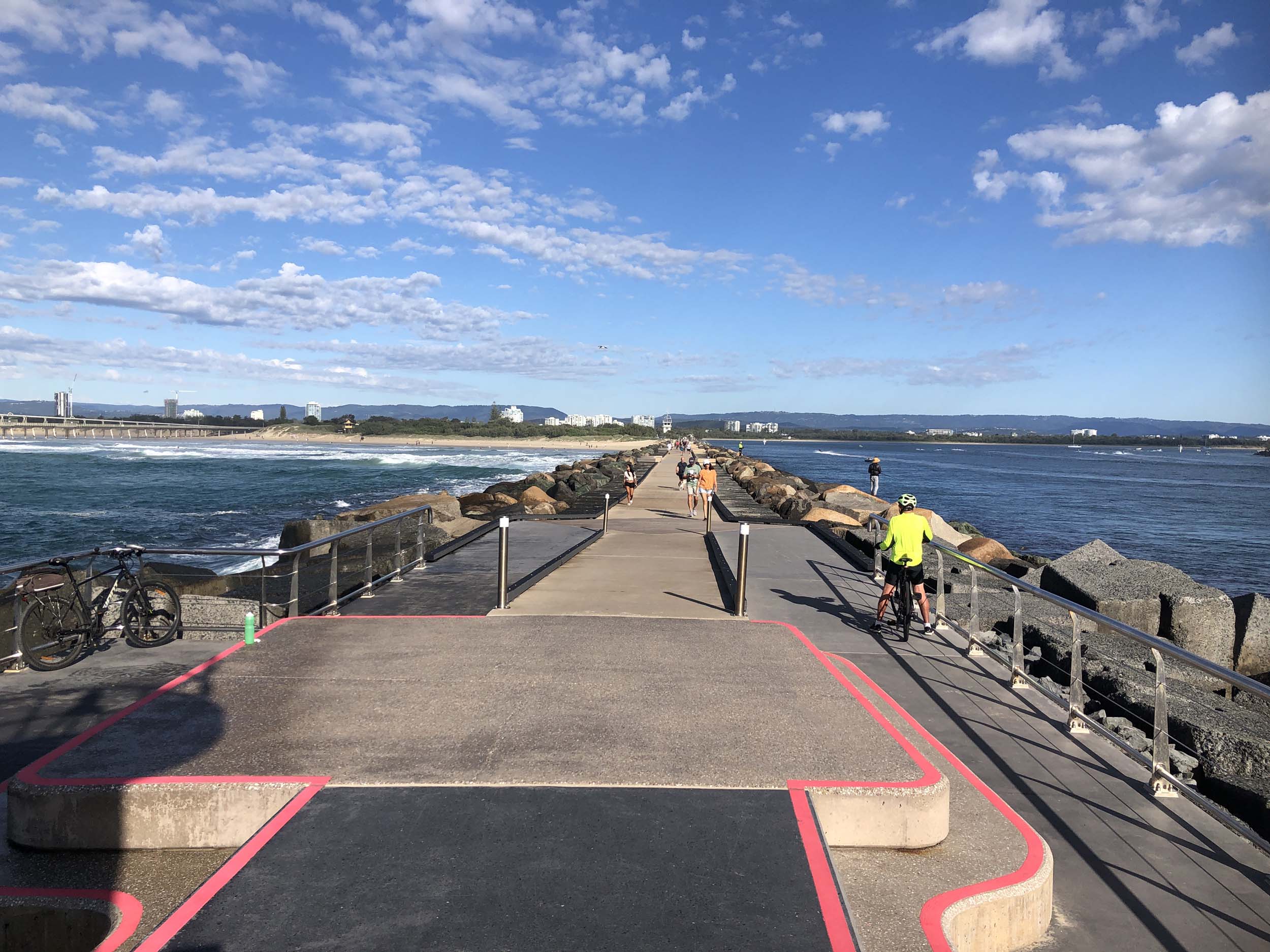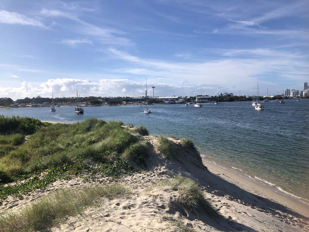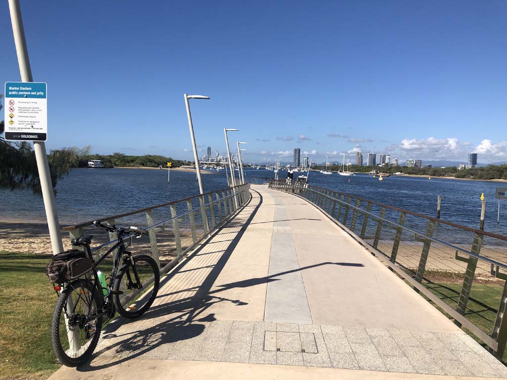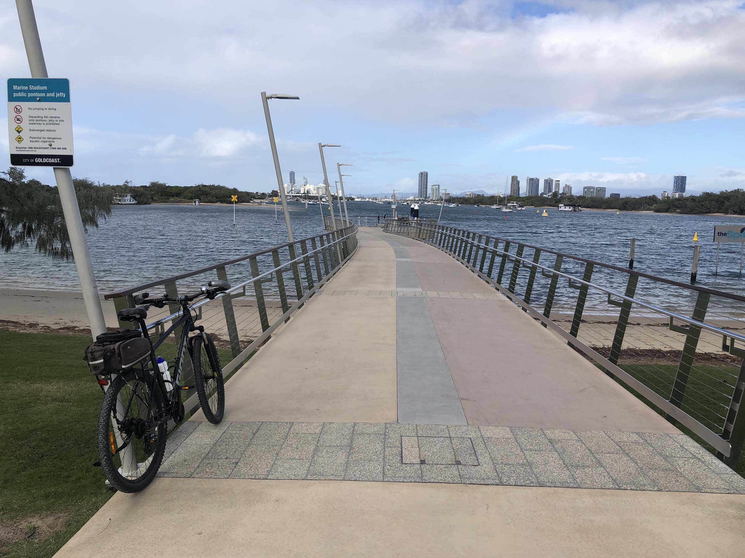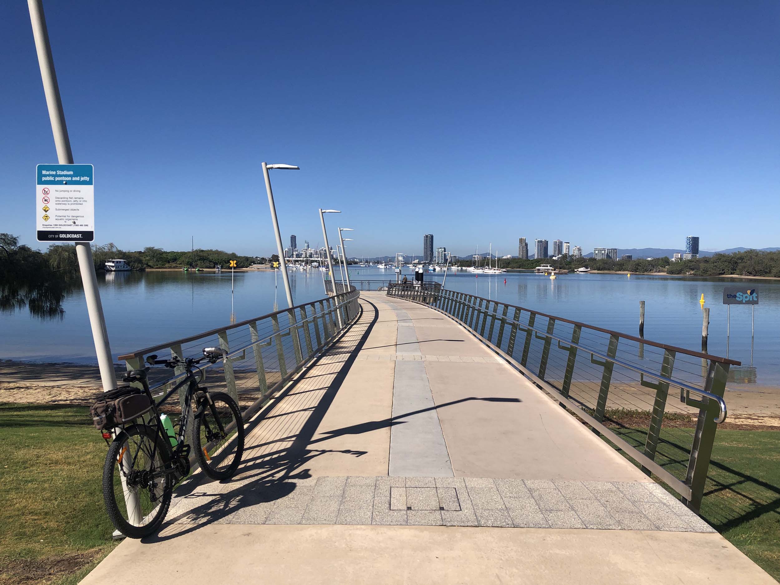 Continued through the Southport YC, along the jetties at Marina Mirage, then around the edge of the Seaworld carpark, then continued along the shared path to The Spit.