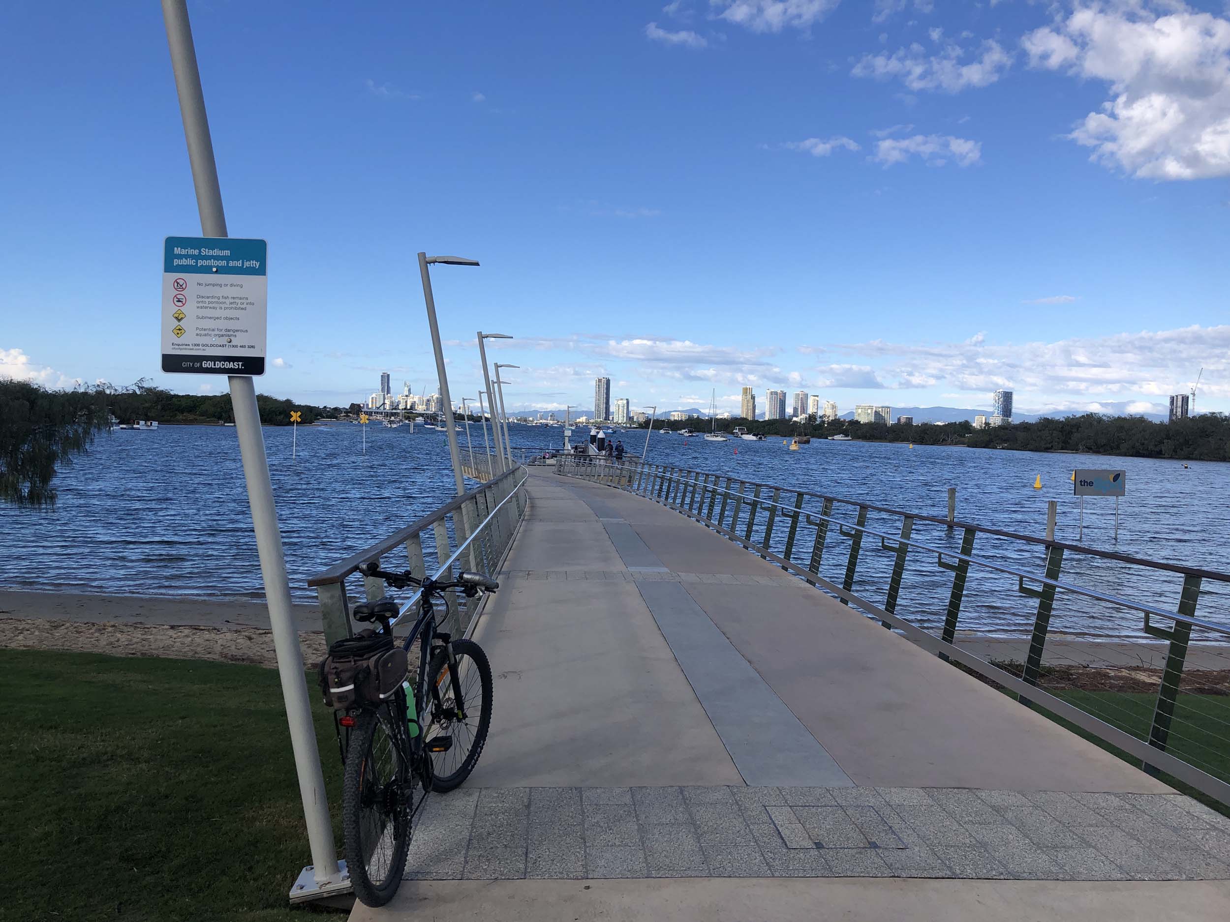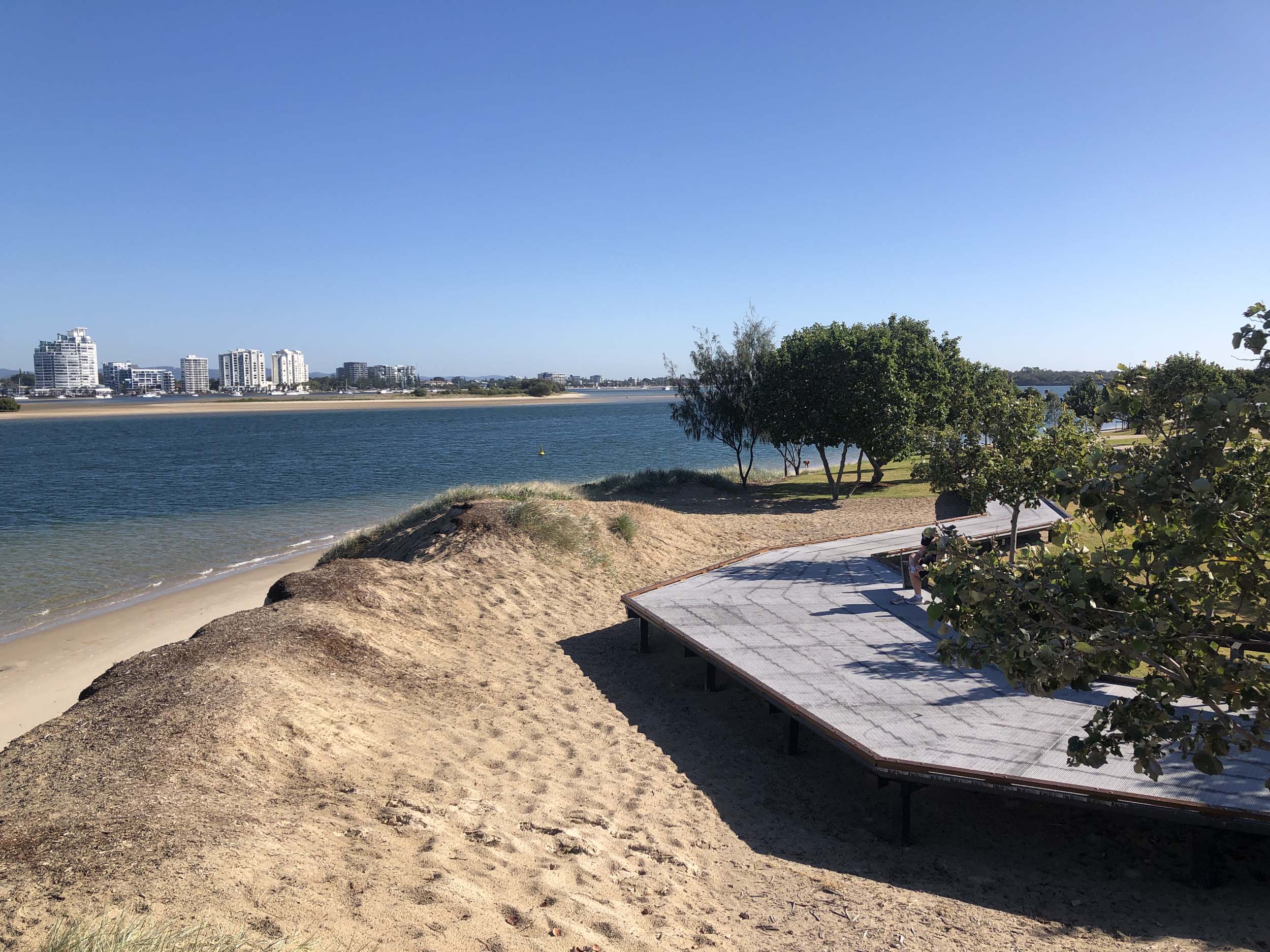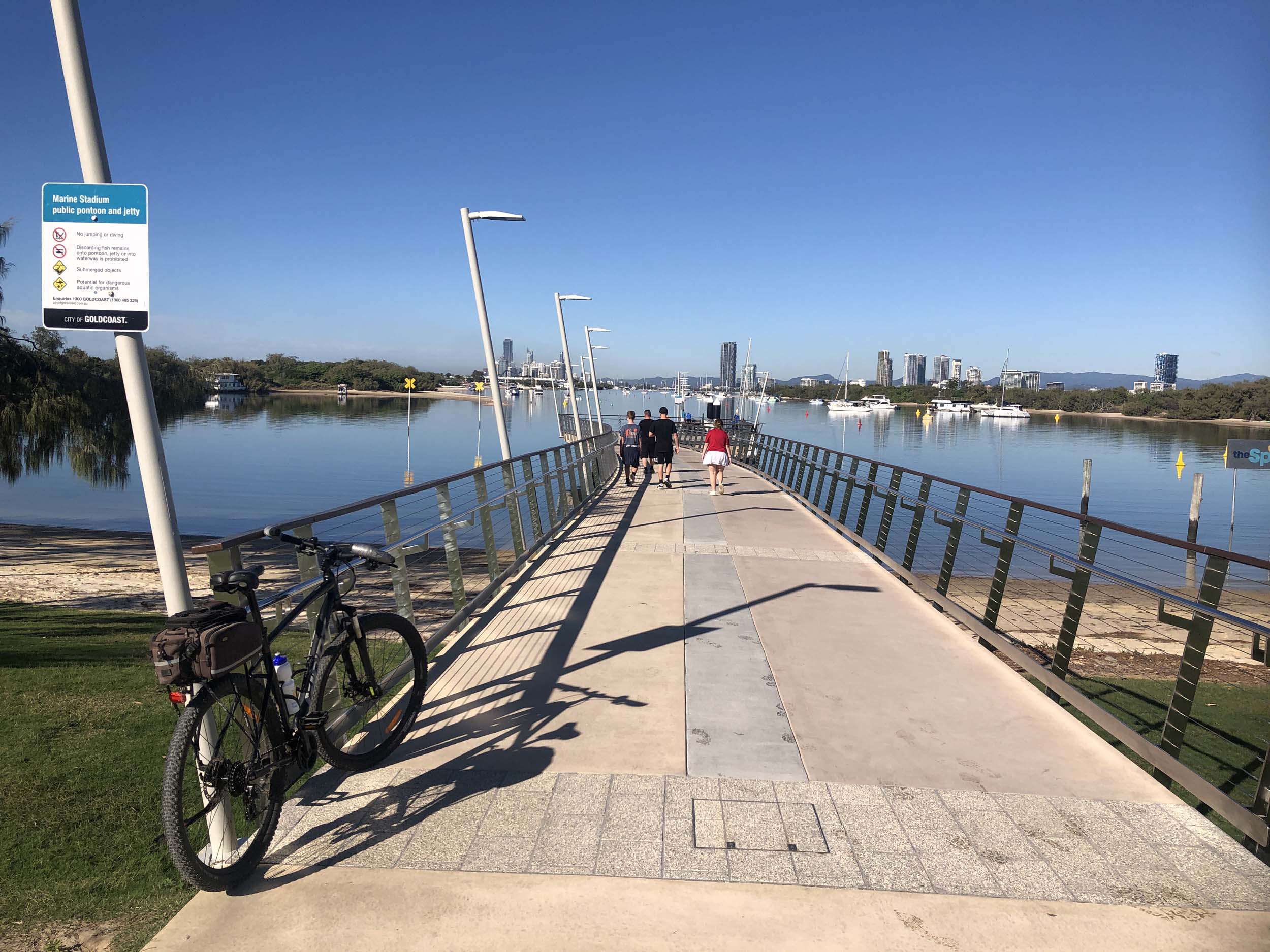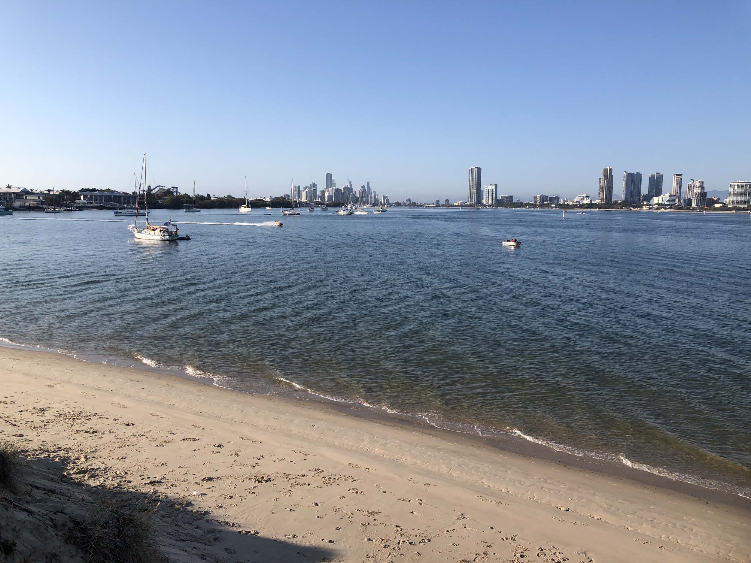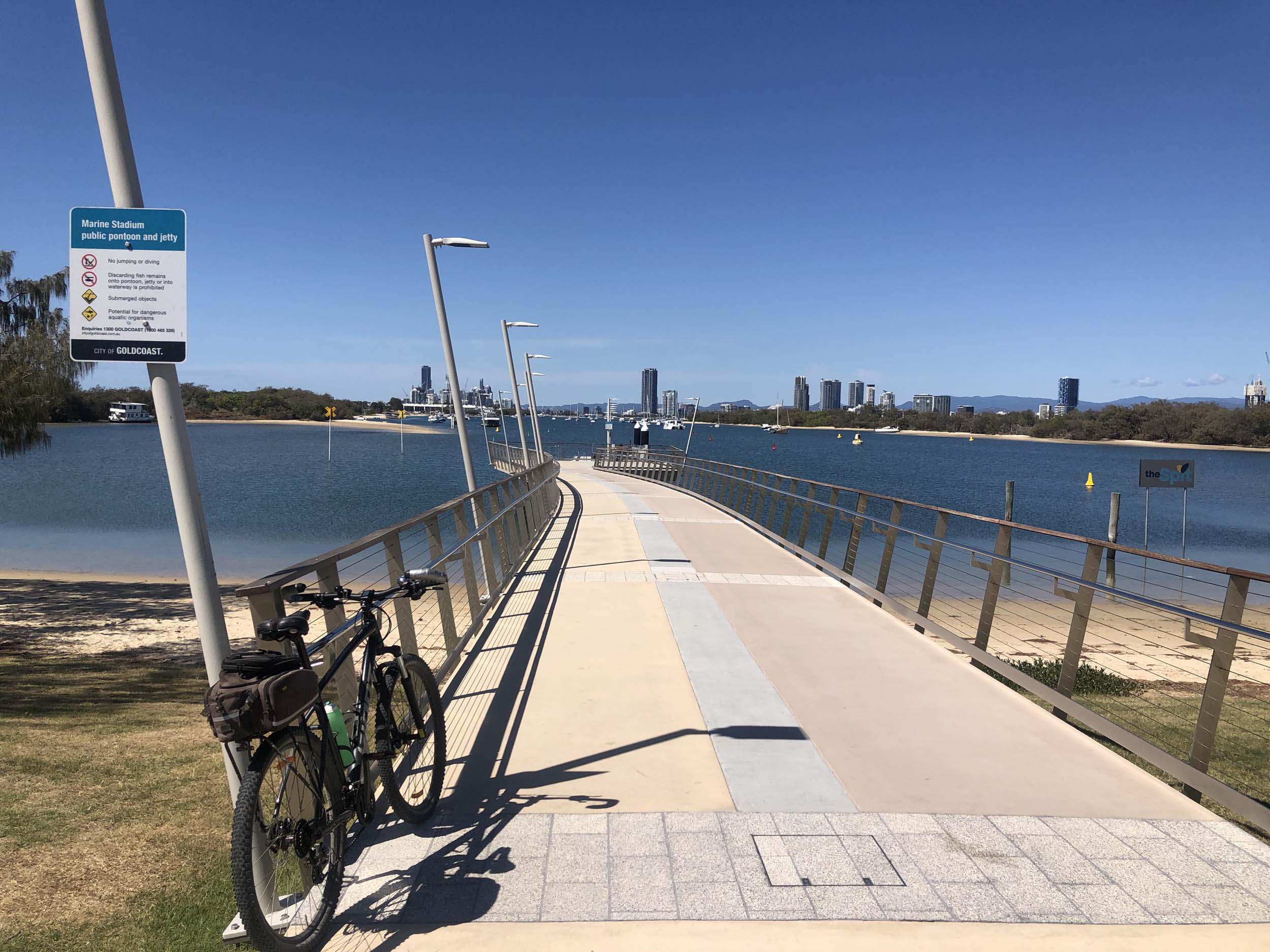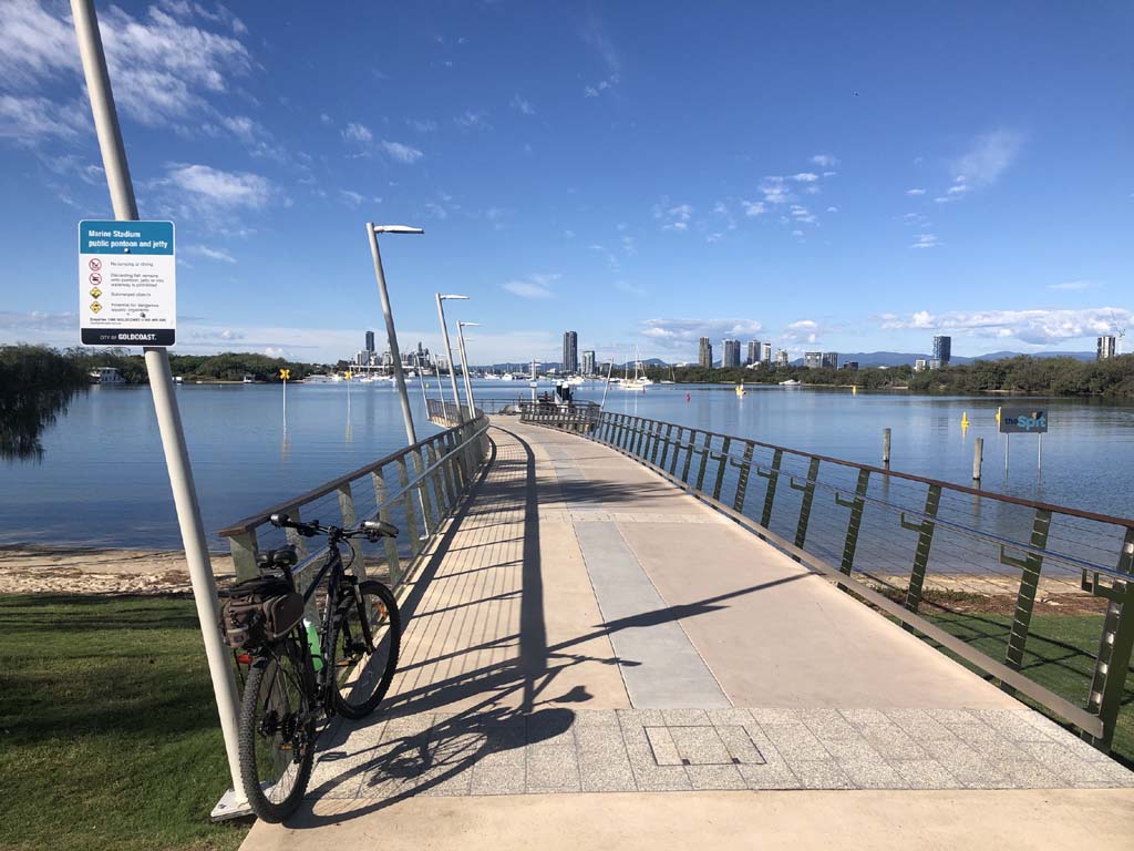 Continued through the Southport YC, along the jetties at Marina Mirage, then around the edge of the Seaworld carpark, then continued along the shared path to The Spit.