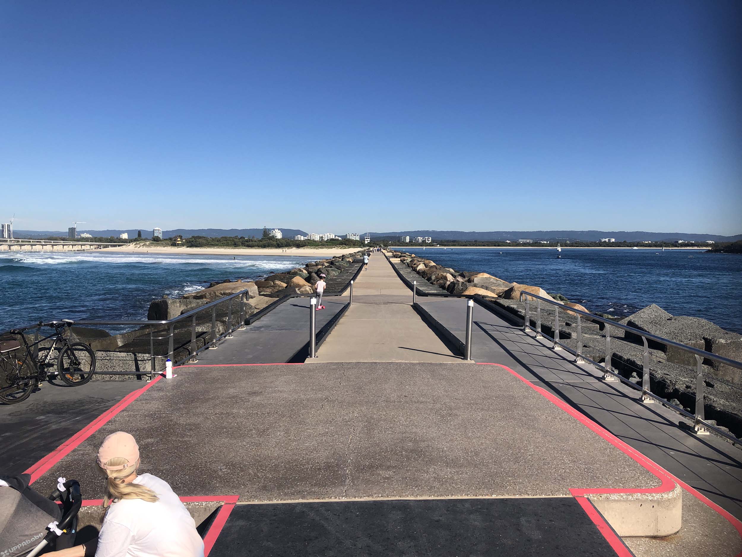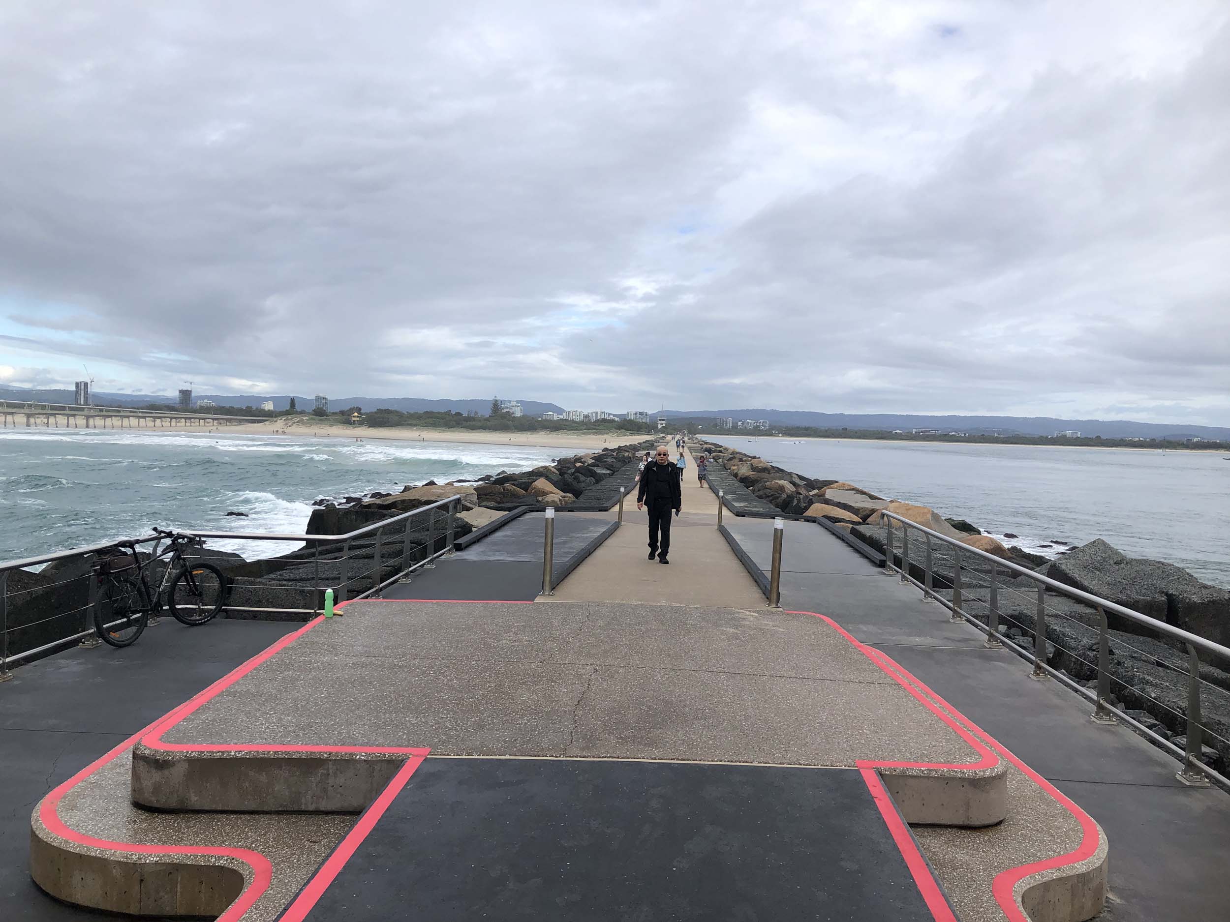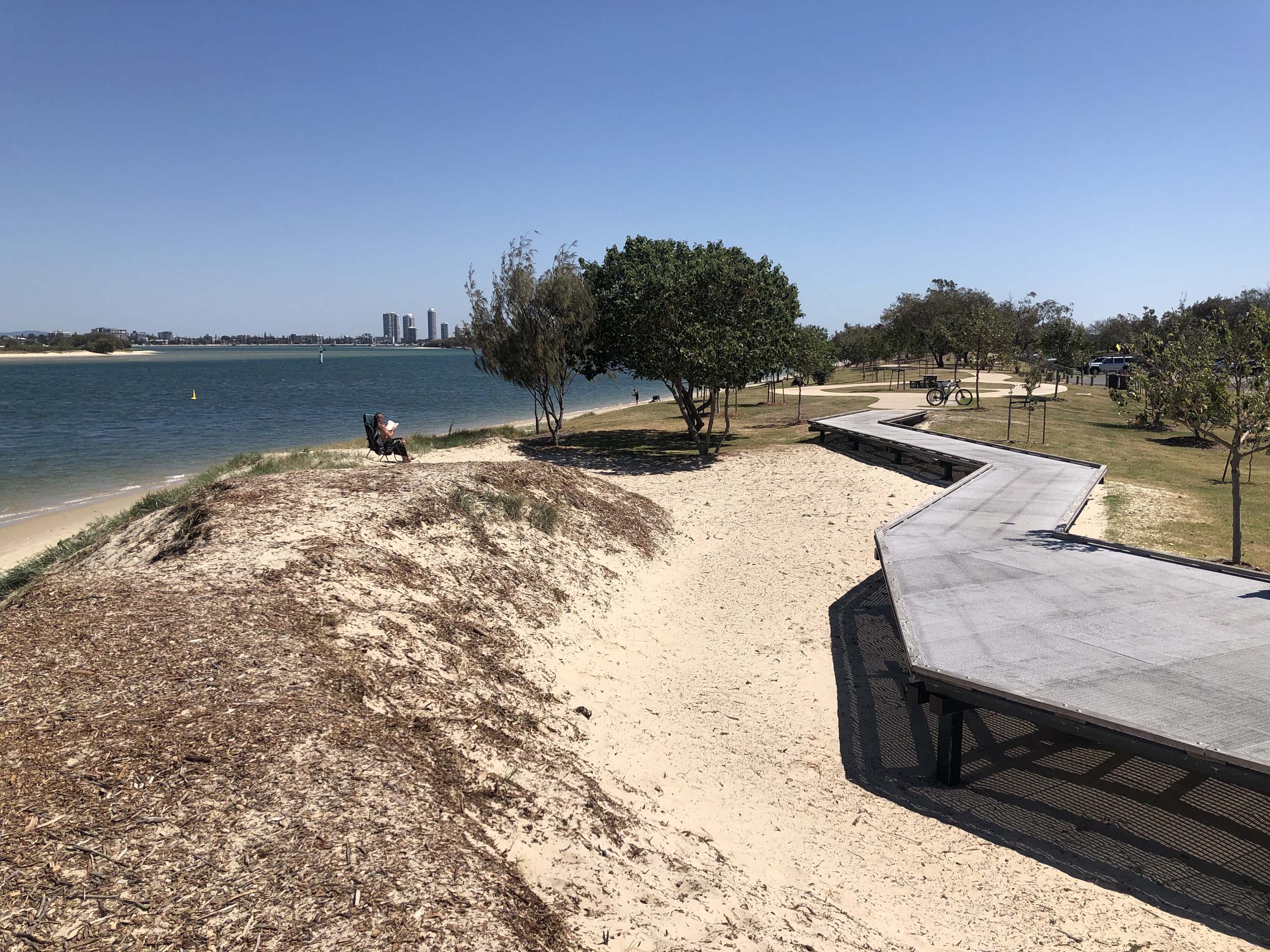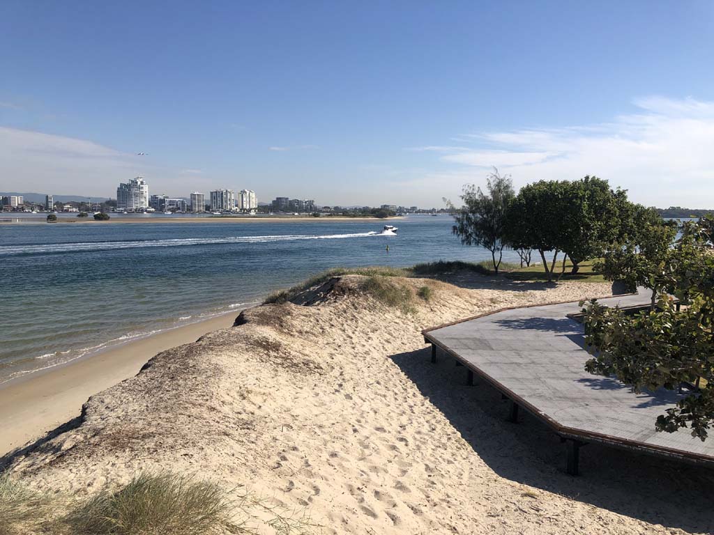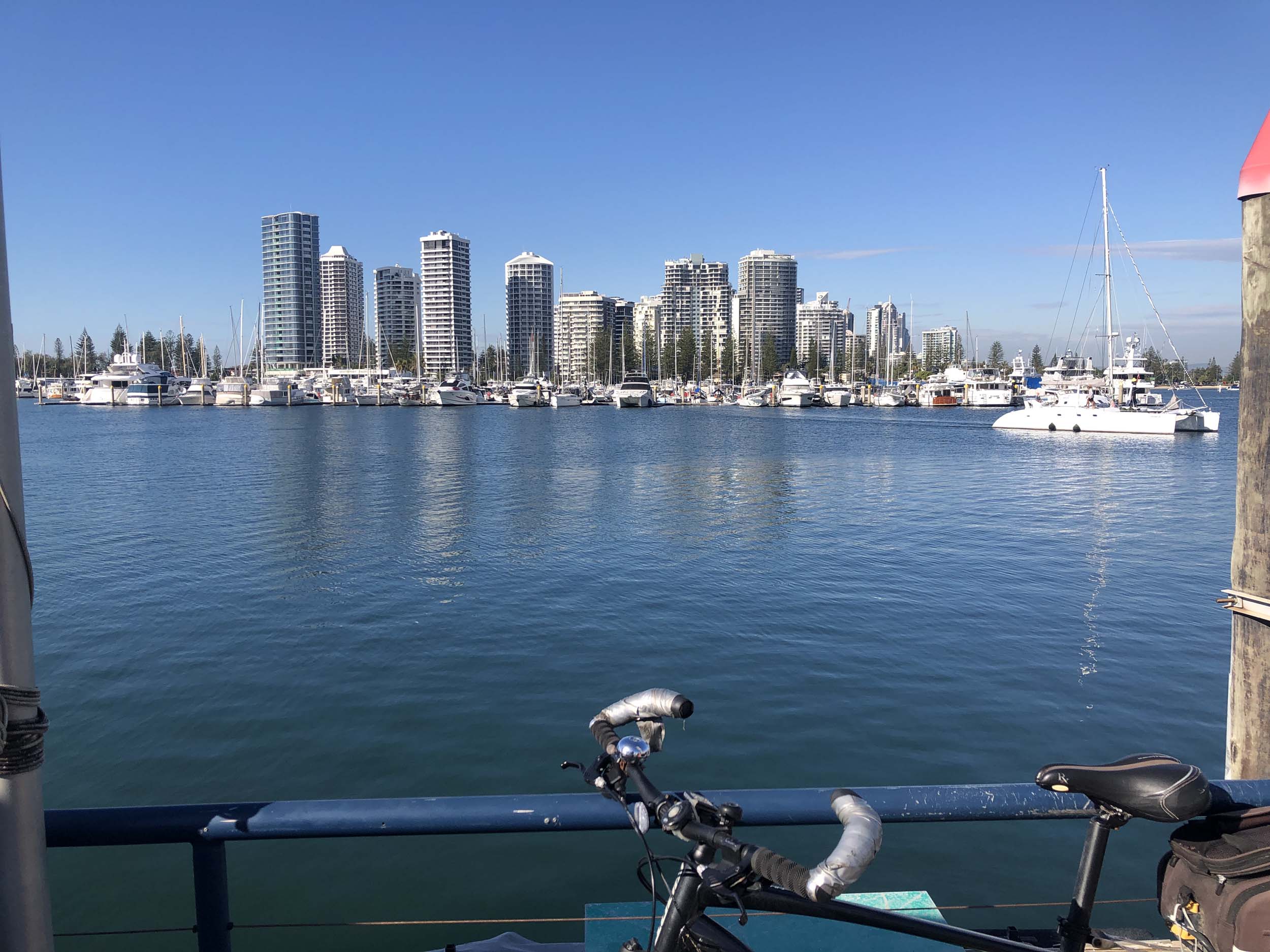 Continued through the Southport YC, along the jetties at Marina Mirage, then around the edge of the Seaworld carpark, then continued along the shared path to The Spit.